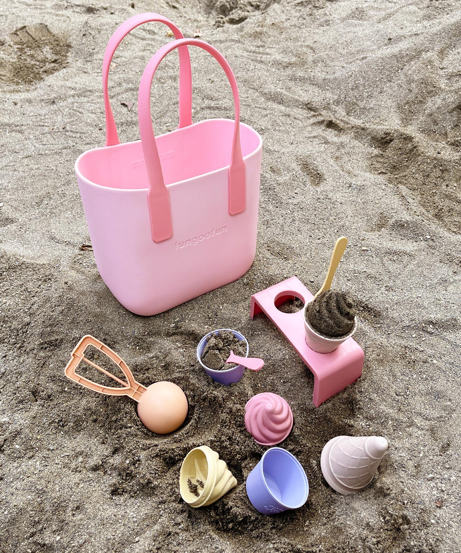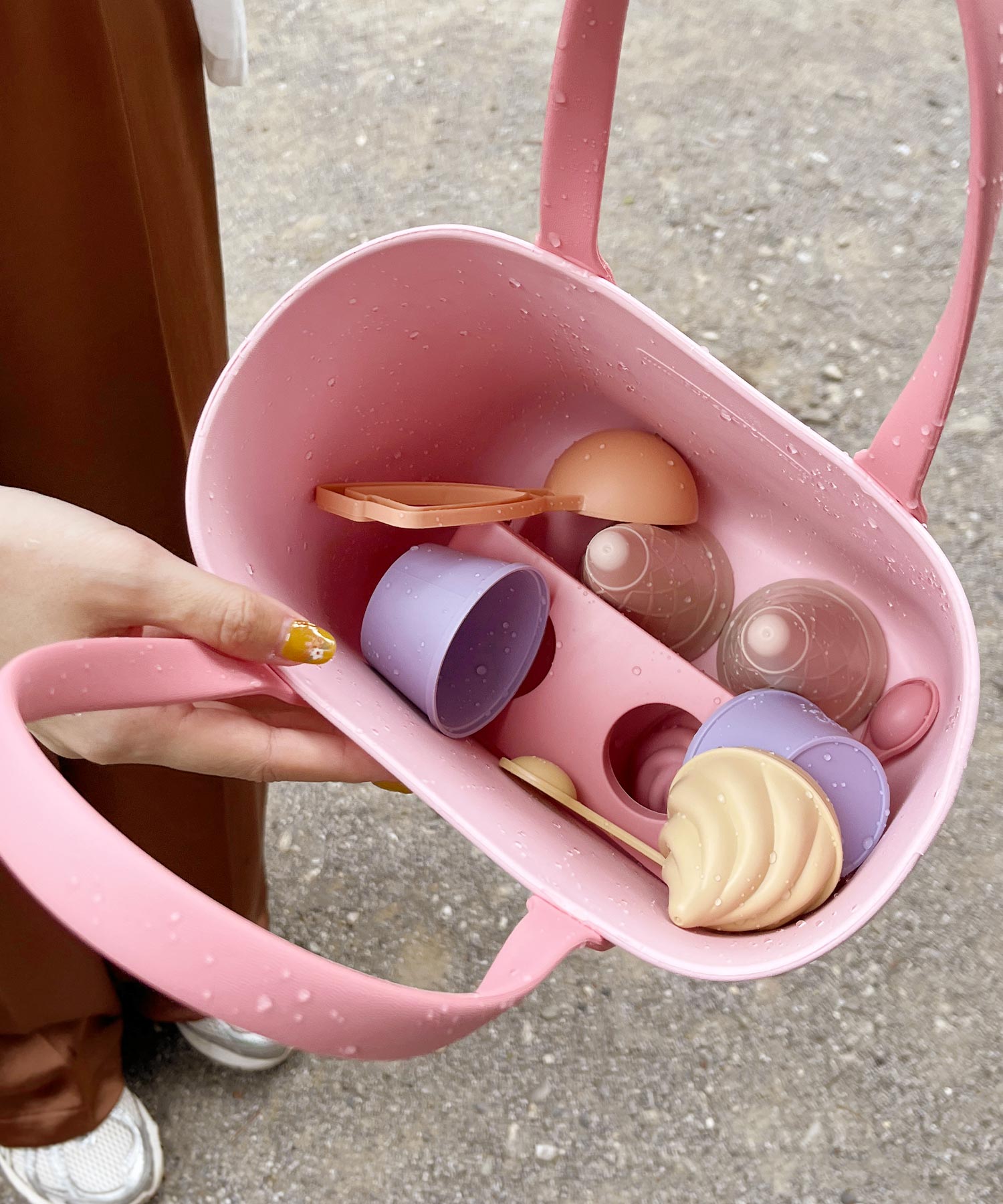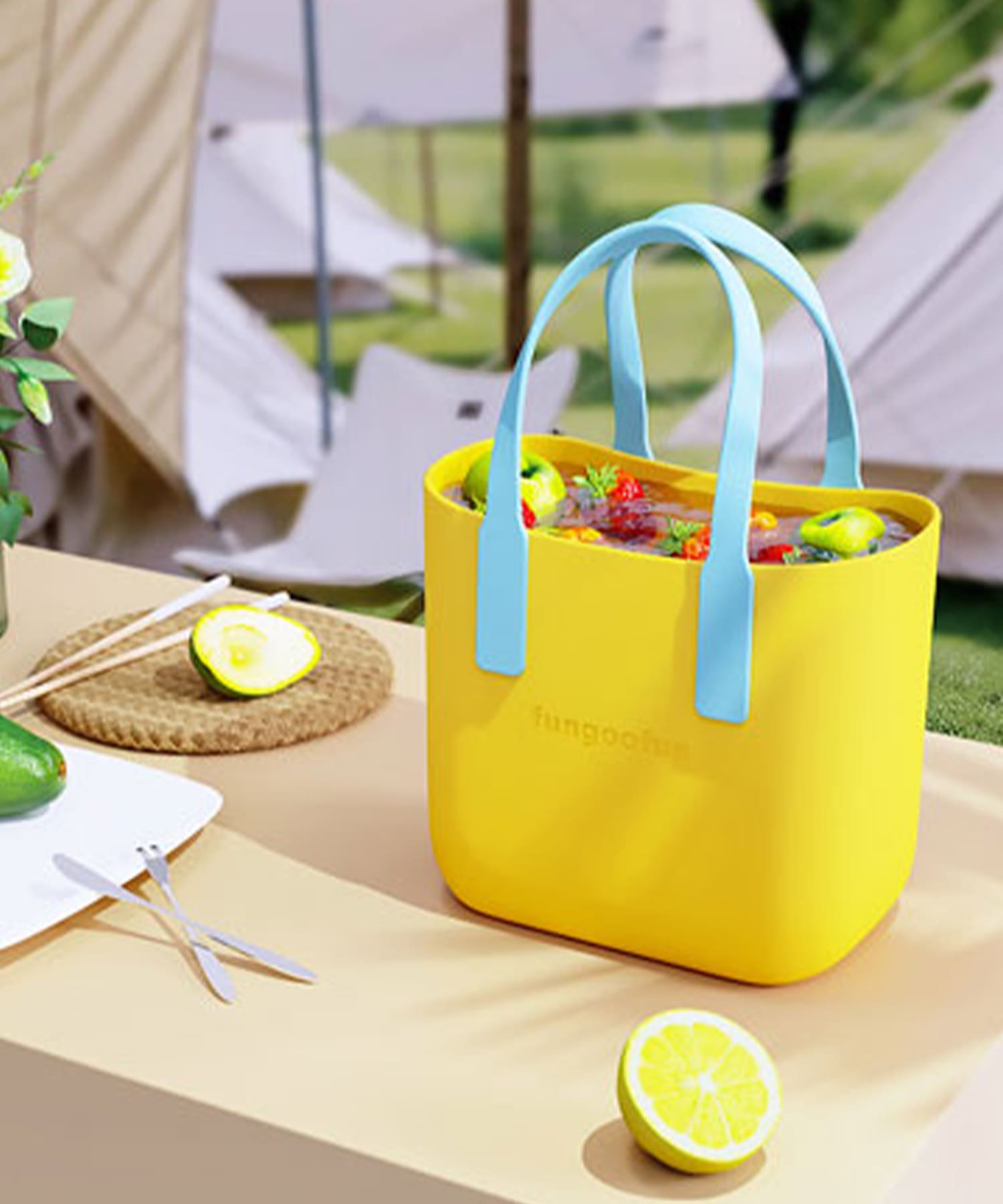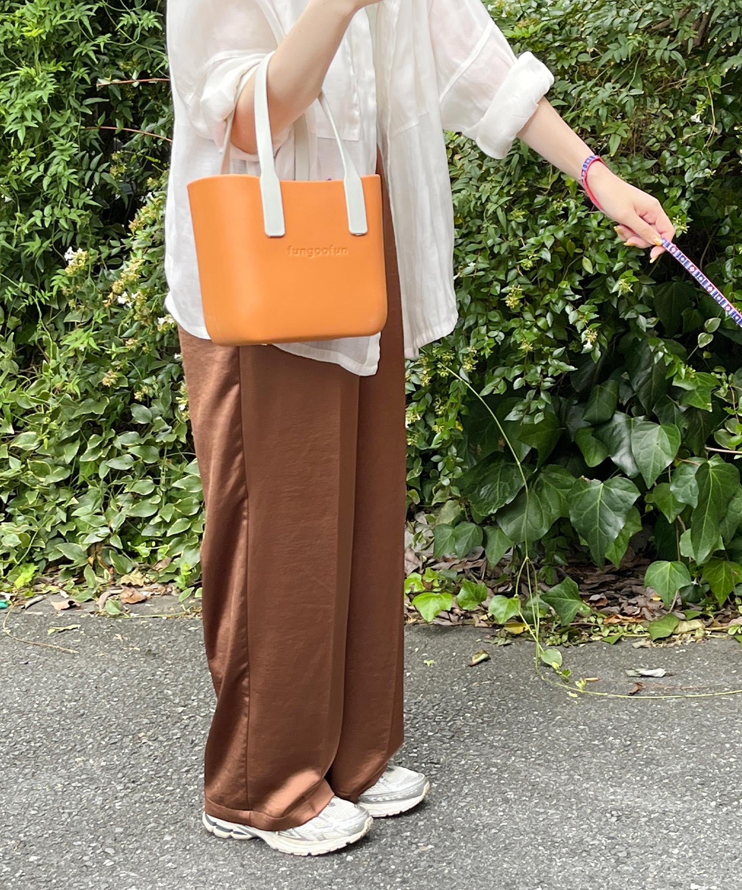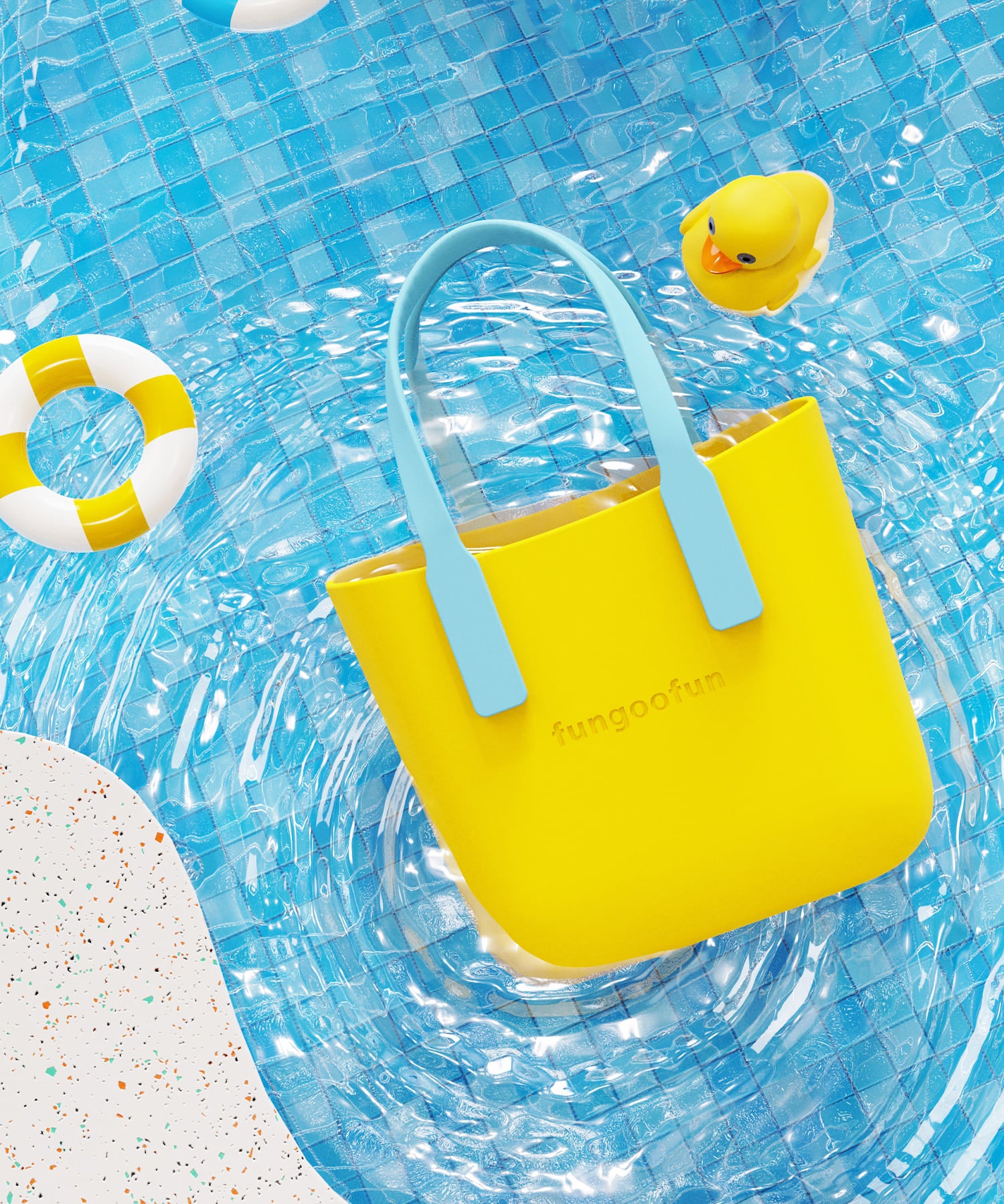 たっぷりのマチと使いやすい深さで収納力抜群のハンドバッグ。柔らかい素材感の持ち手は、滑らかなカーブを付けて手や腕にフィットする形に。さらに本体部分とバイカラーになったカラーリングはコーディネートのアクセントにもおすすめ。底部分は表面に細かい凹凸を付けることで滑り止め効果をプラス。EVA素材を使用しているので軽量で柔軟性も高く、防水性と防汚性に優れたアイテム。汚れても丸洗いができるのでお手入れが楽なのも魅力的。ゆったりとしたマチがあり500㎖のペットボトルもすっぽり入る大容量サイズ。お買い物やお出掛けはもちろん、ペットのお散歩用バッグや海・プールなどのアクティビティ、ピクニック、アウトドアシーンなど幅広く活躍すること間違いなし。