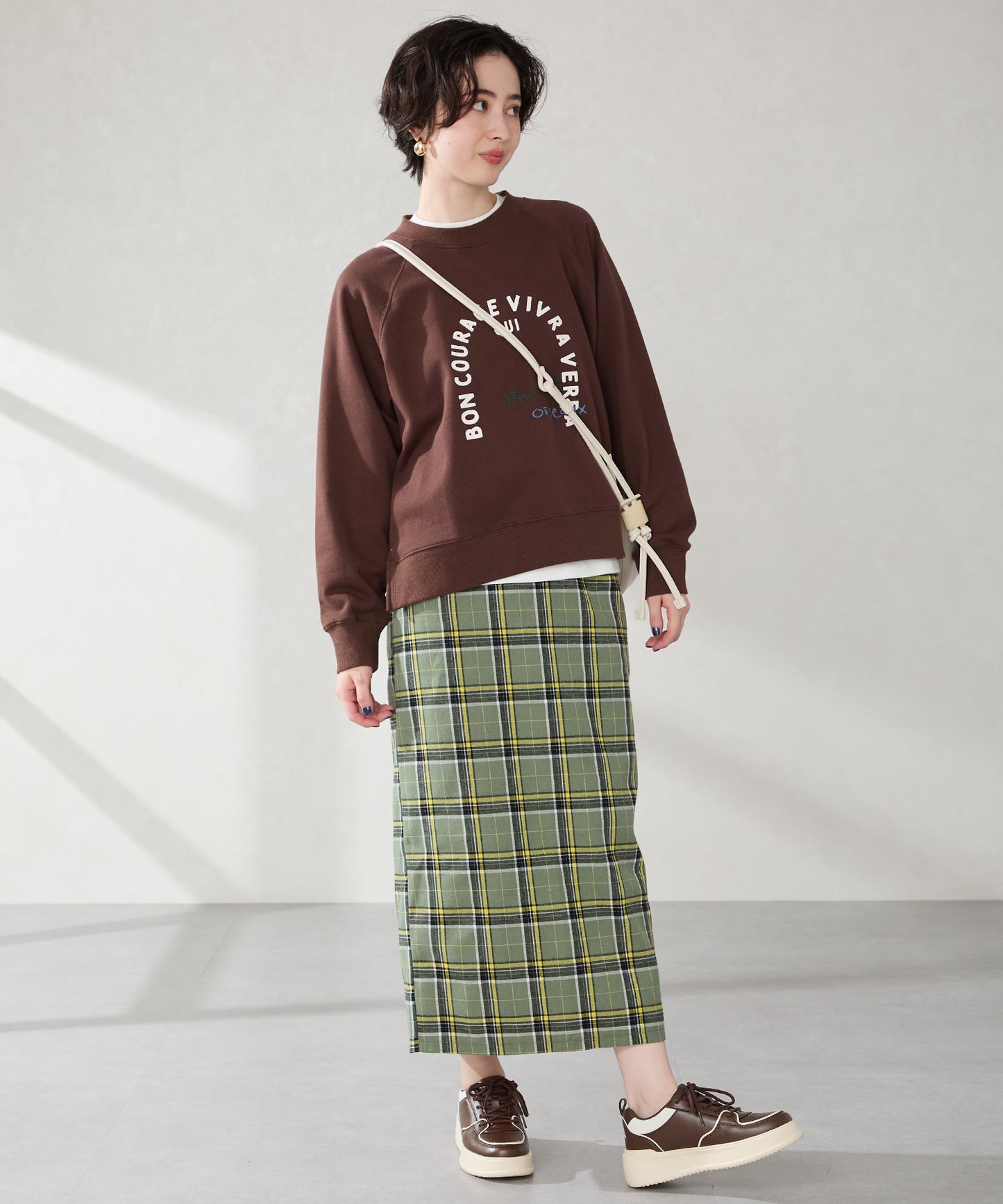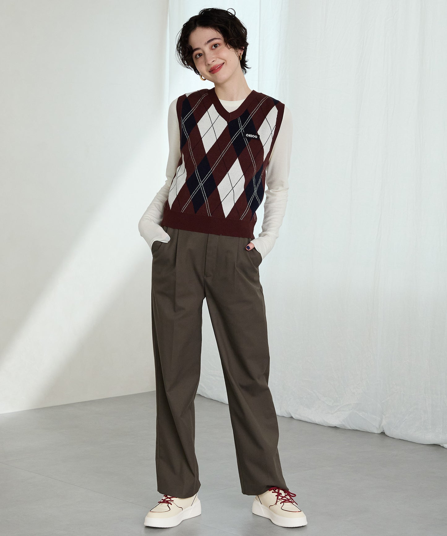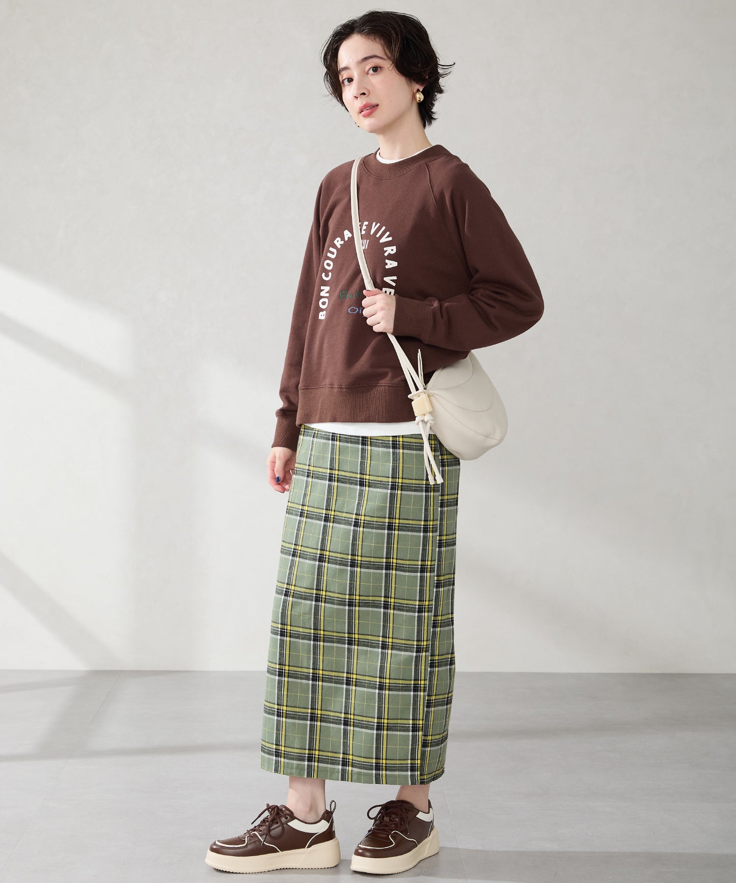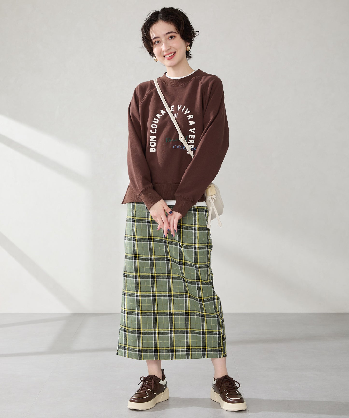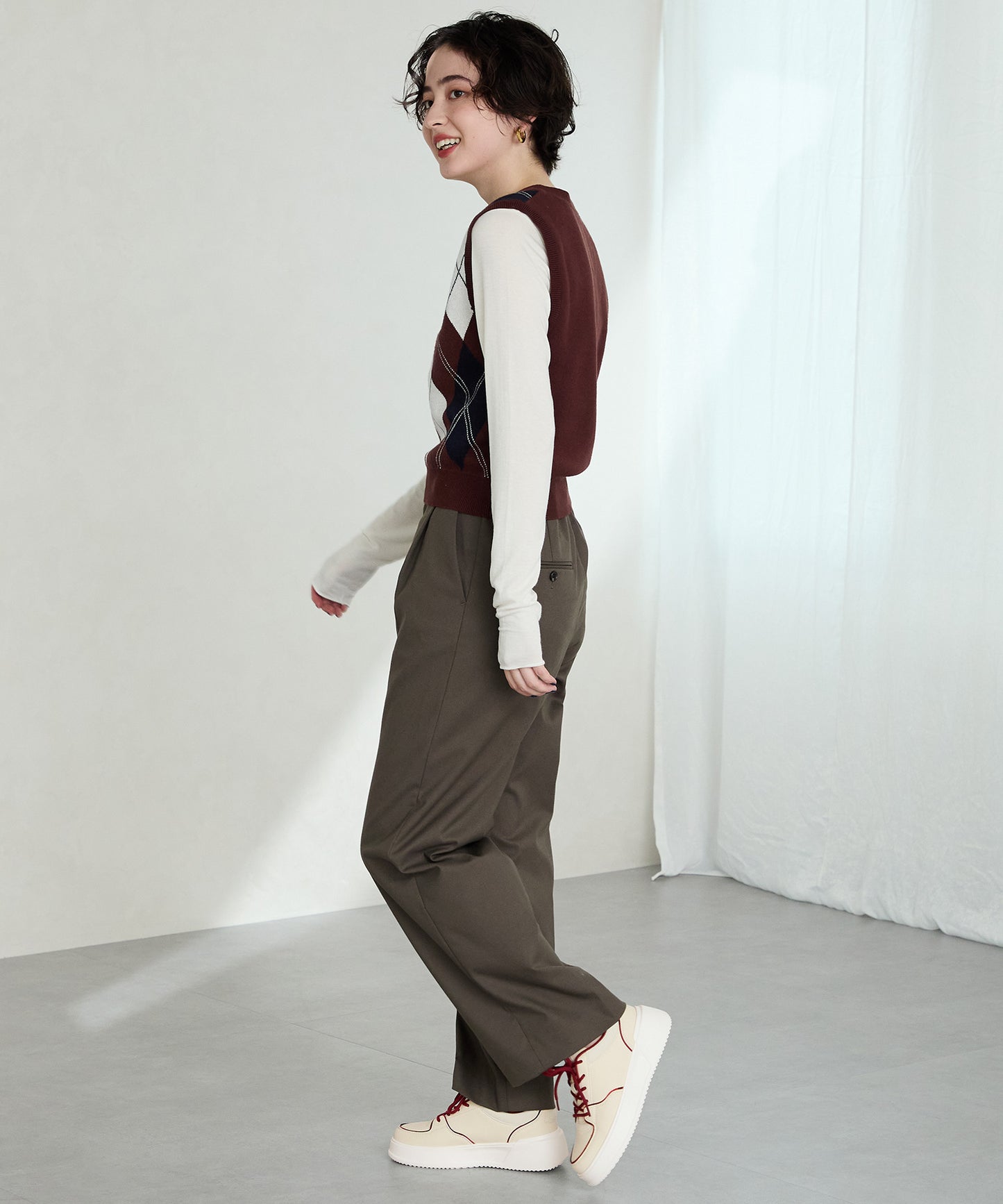 厚みのあるコートソールとパンチングデザインの組み合わせが今っぽいカジュアルなスニーカーは、厚底ながらもすっきりとしたソールで女性らしい柔らかい雰囲気を纏った仕上がりに。さりげないバイカラーのデザインが可愛いブラックとレッド、ワントーンでまとめることでコーデを選ばす履けるホワイト、新色のブラウンの豊富な選べる4色展開。