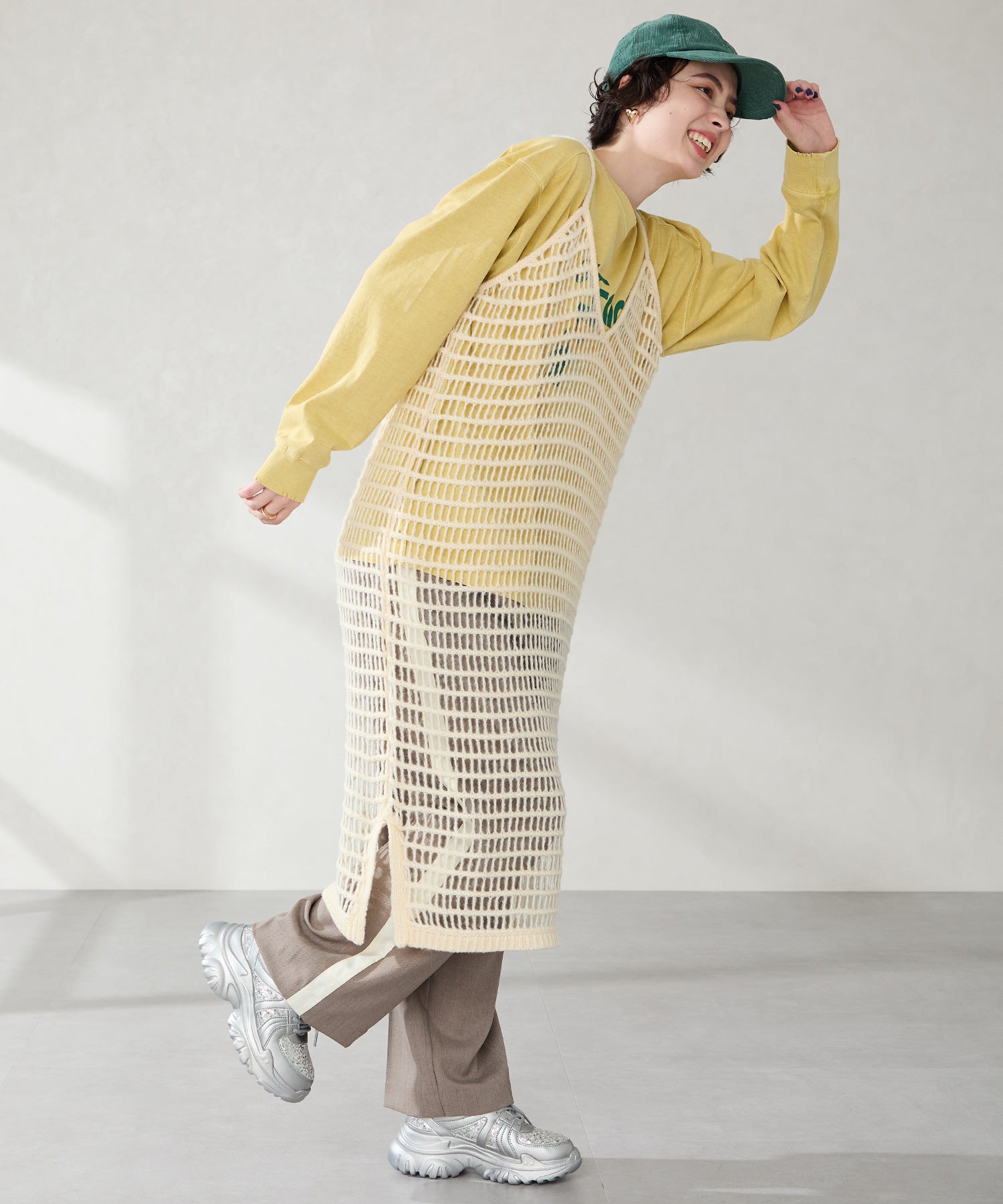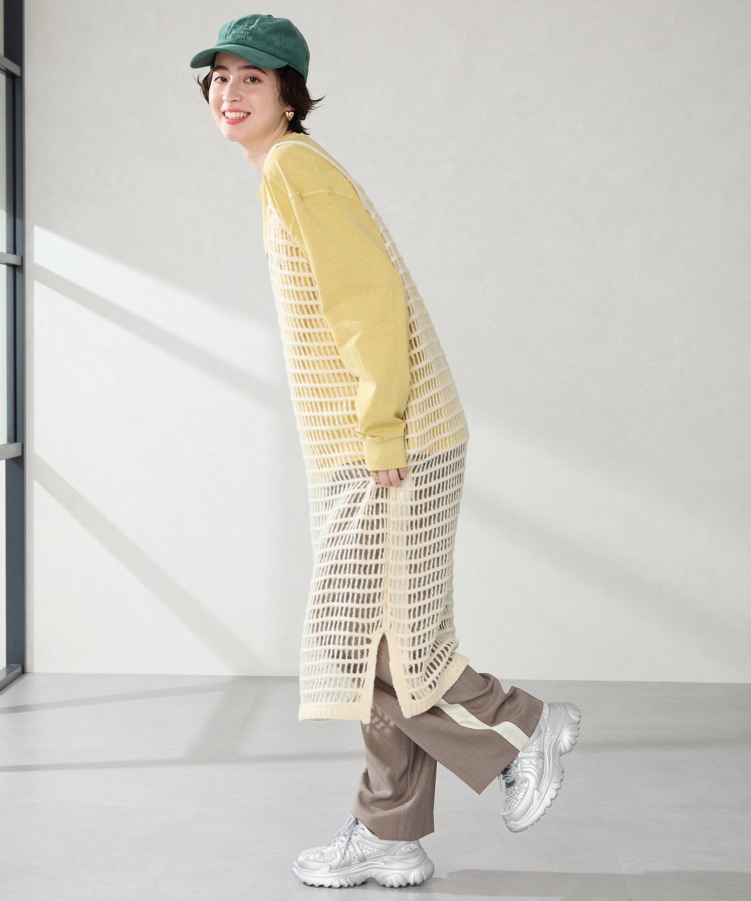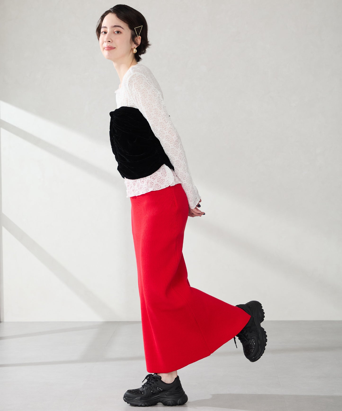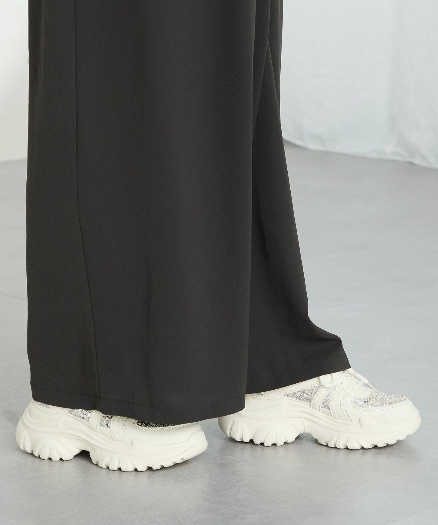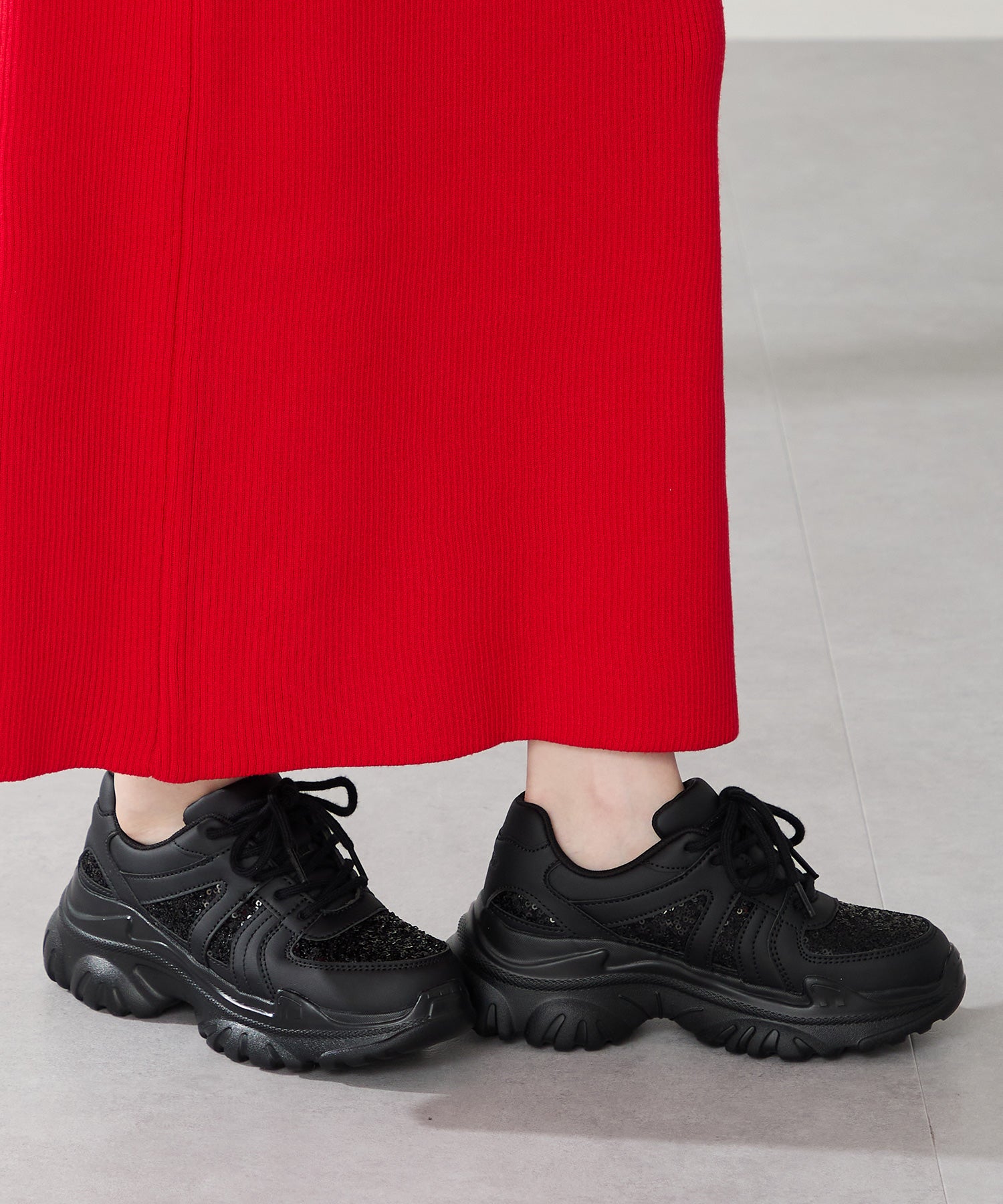 キラキラとしたスパンコールを敷き詰めたアッパーが目を引くスニーカーはあえて厚底ソールを組み合わせてエレガンスになり過ぎずカジュアル要素とのバランスも◎。中敷のクッションは厚みと弾力があり足裏への負担が少ないのも嬉しいポイント。今期も注目のシルバーはソールもメタリックカラーなのが新鮮でコーデの主役にして楽しんで。