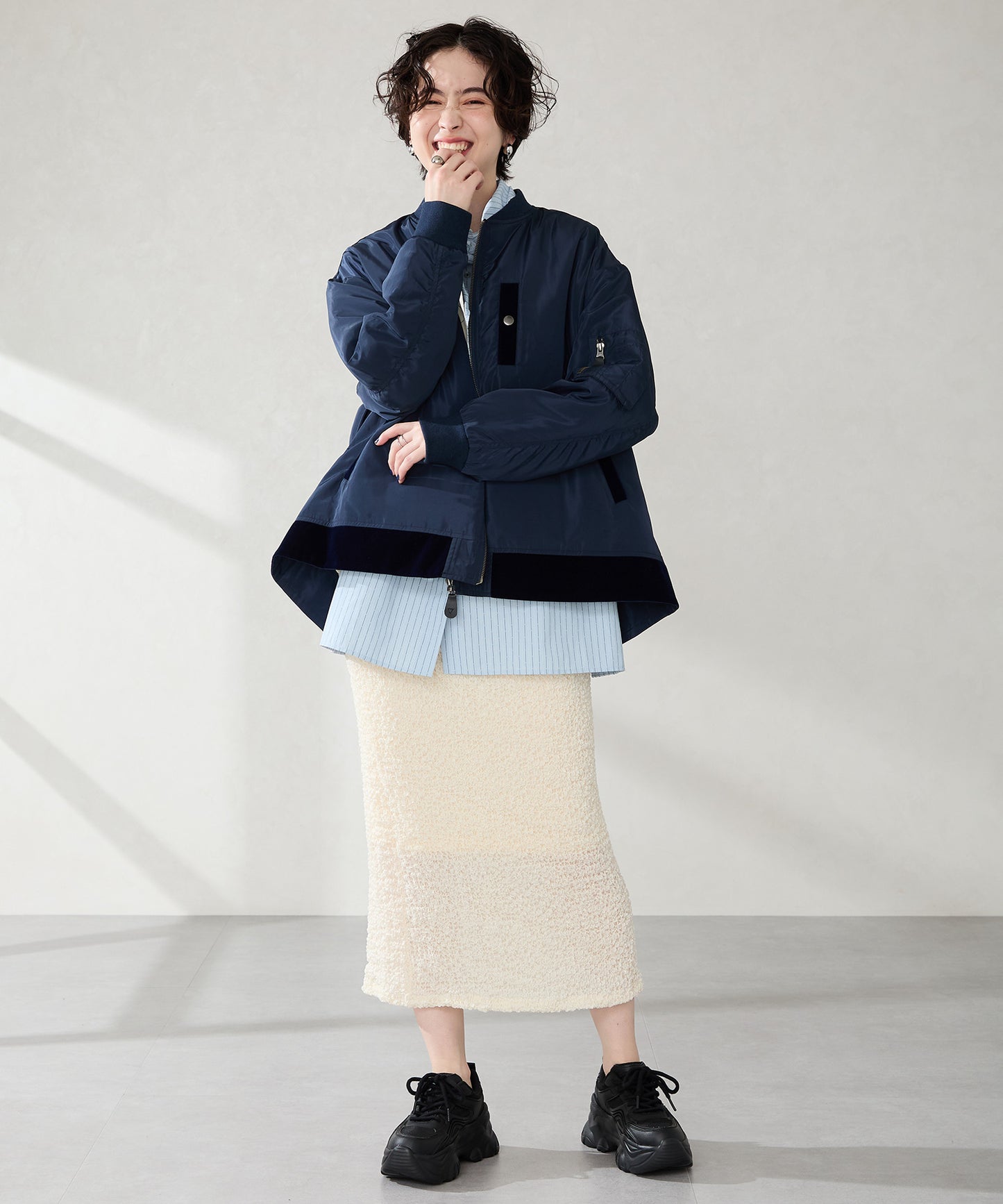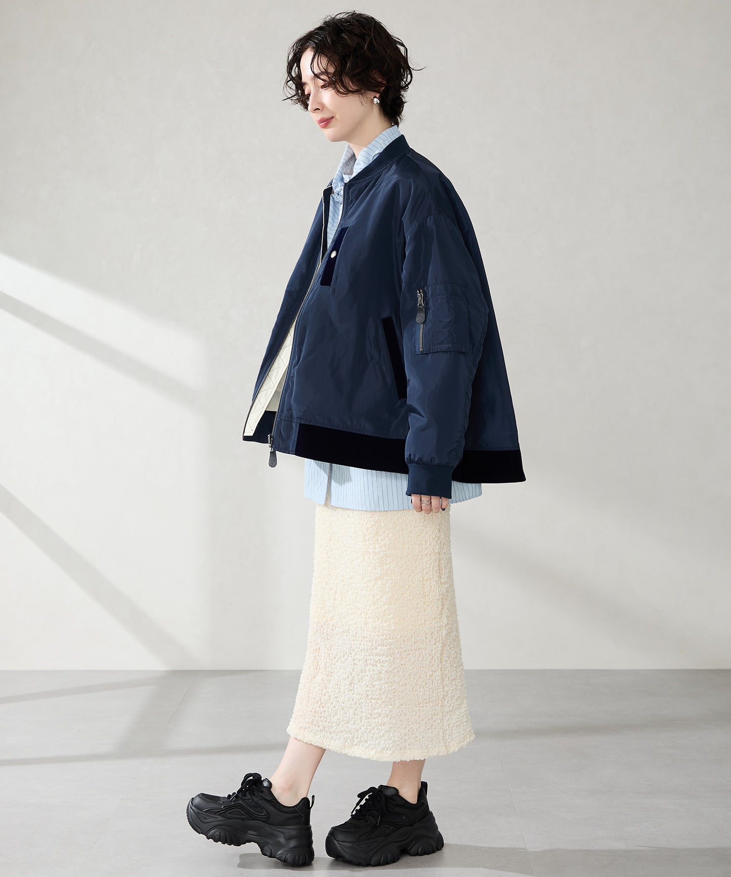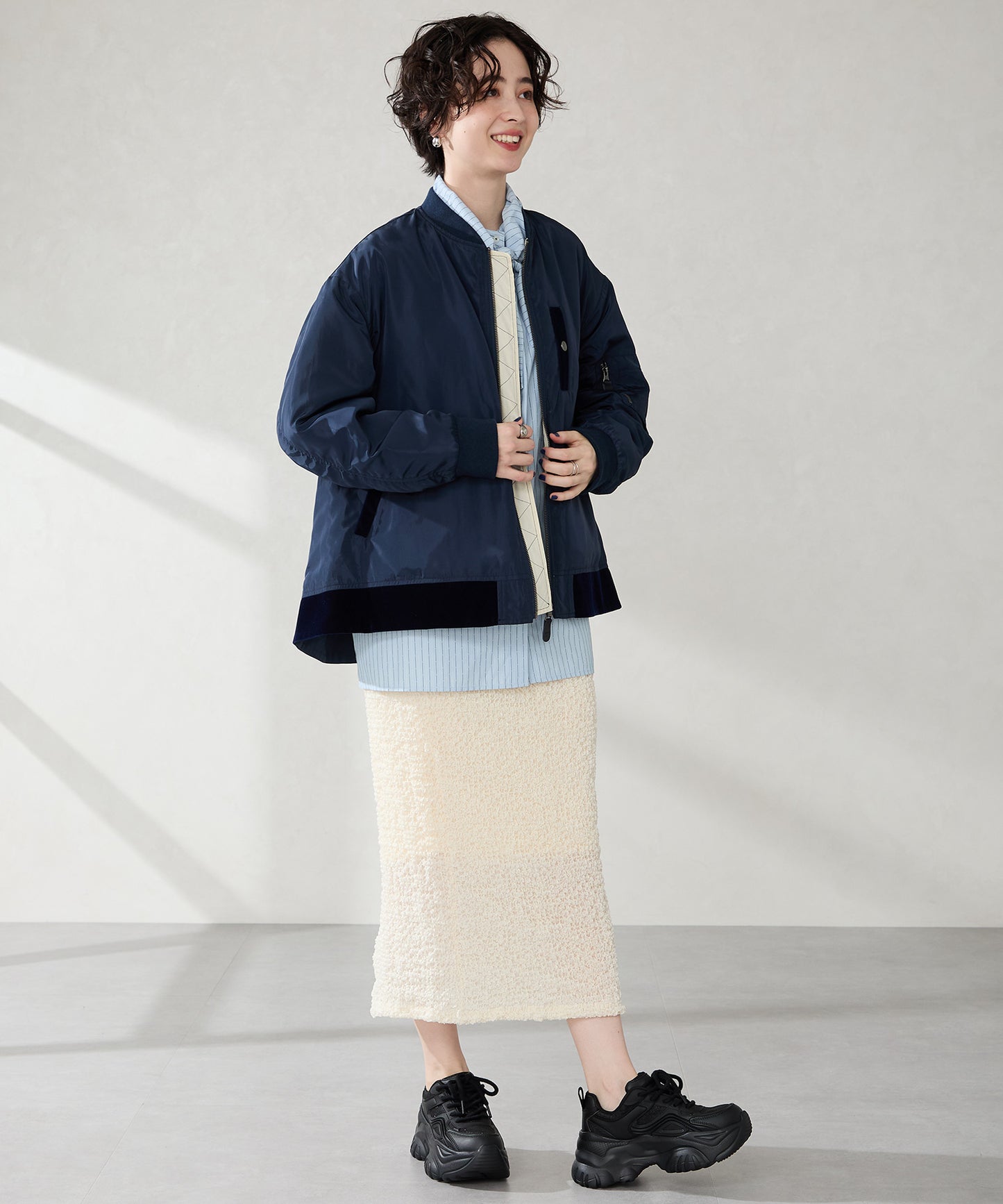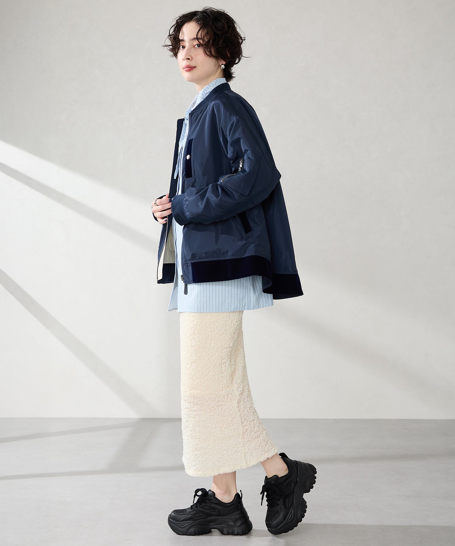 人気継続中のボリューム感たっぷりの厚底スニーカーは、細やかなラメを織り込んだアッパーデザインにすることで上品な印象に。スポーティーになりすぎない落ち着いたワントーンカラーなのでフェミニンコーデにも合わせやすく、スカートやワンピースはもちろん、ミニボトムと合わせて脚長効果が期待できるのも嬉しい。さりげない輝きが足元に軽やかさを与えてくれる。