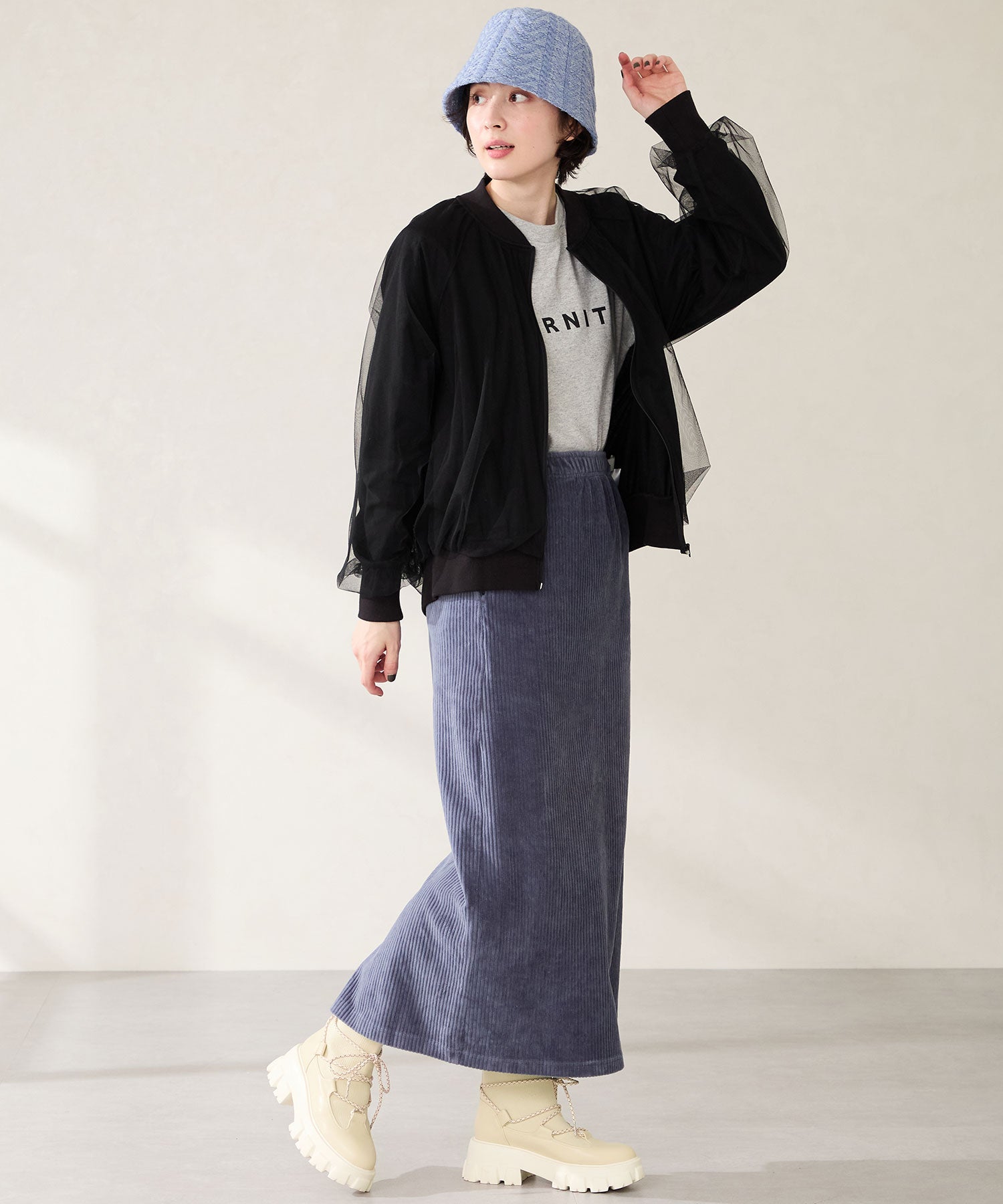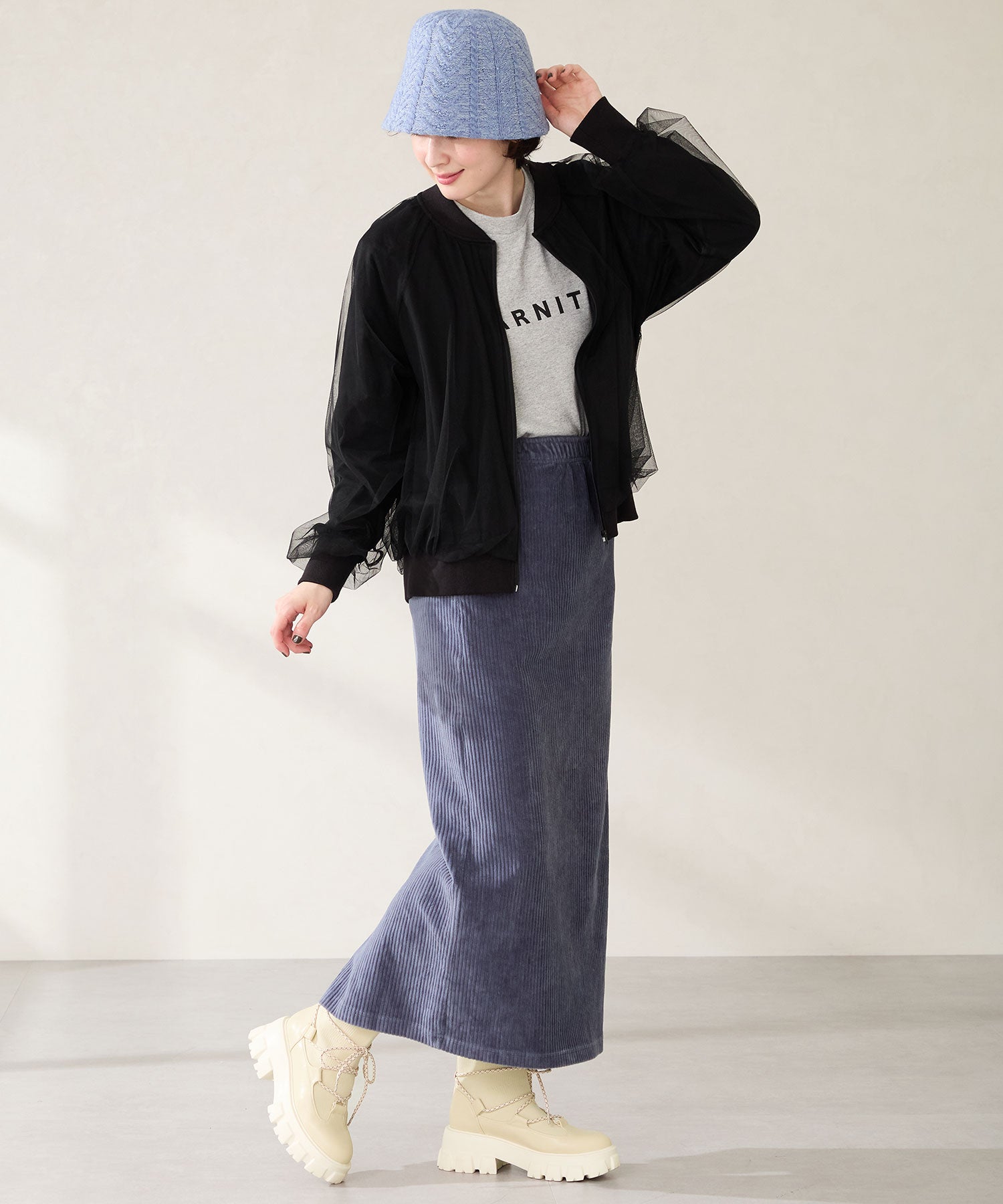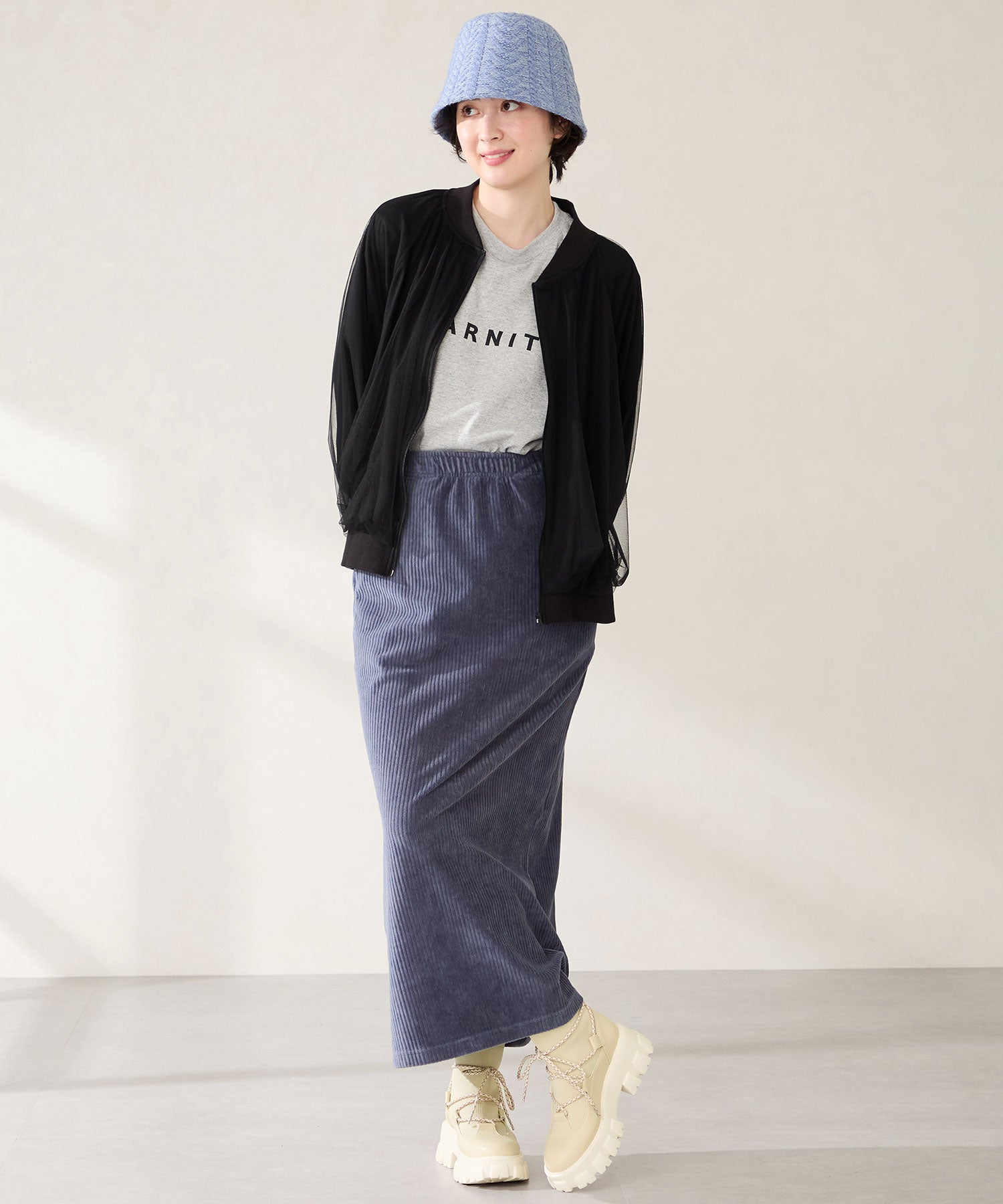 ごつごつとした凹凸のあるソールにストライプ柄のシューレース、柔らかなリブニットを掛け合わせることでスポーティーに仕上げたブーツ。伸縮性のあるニット素材と緩めの筒まわりで着脱がしやすく、肌触りも優しい快適な履き心地。足首を1周するレースアップデザインが足全体を細く見せてくれ、履くだけで旬な足元へアップデート。
