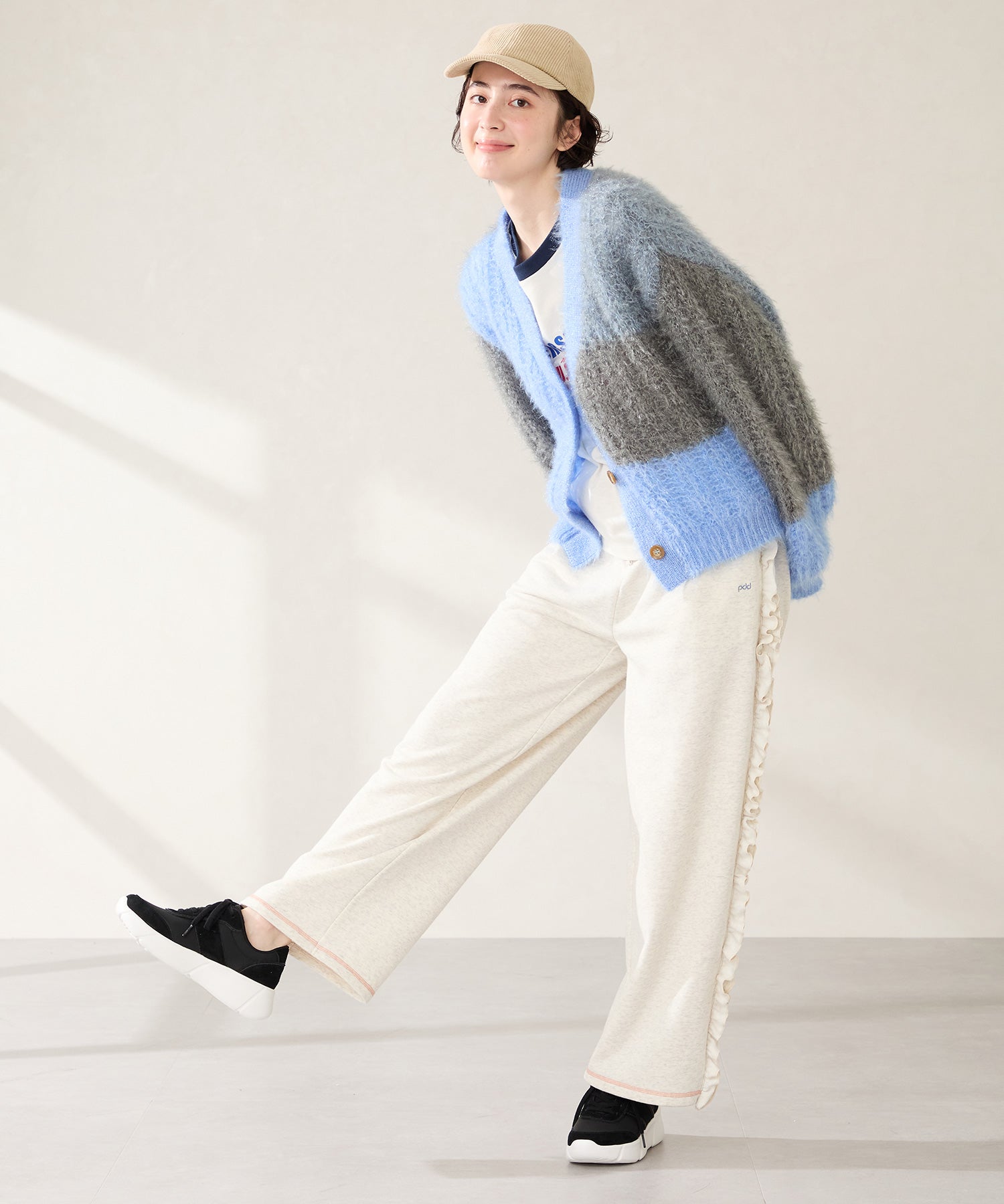 グリッターラインやサイドに付けたラインストーンがポイントのスニーカーはカジュアルな中にも女性らしさを演出できるアイテム。丸みのあるソールがやわらかさを与えてくれて厚底ソールなのにごつくなり過ぎないのも嬉しい。色ごとにカラーパーツの配色のバランスを変えて異なる印象を楽しめ、色鮮やかなブルーはさりげなく個性をアピールできる一押しカラー。