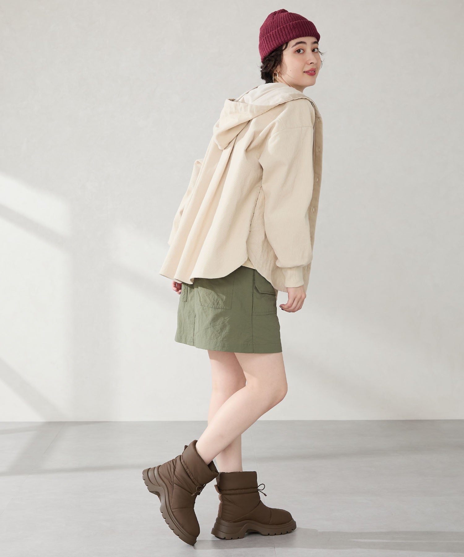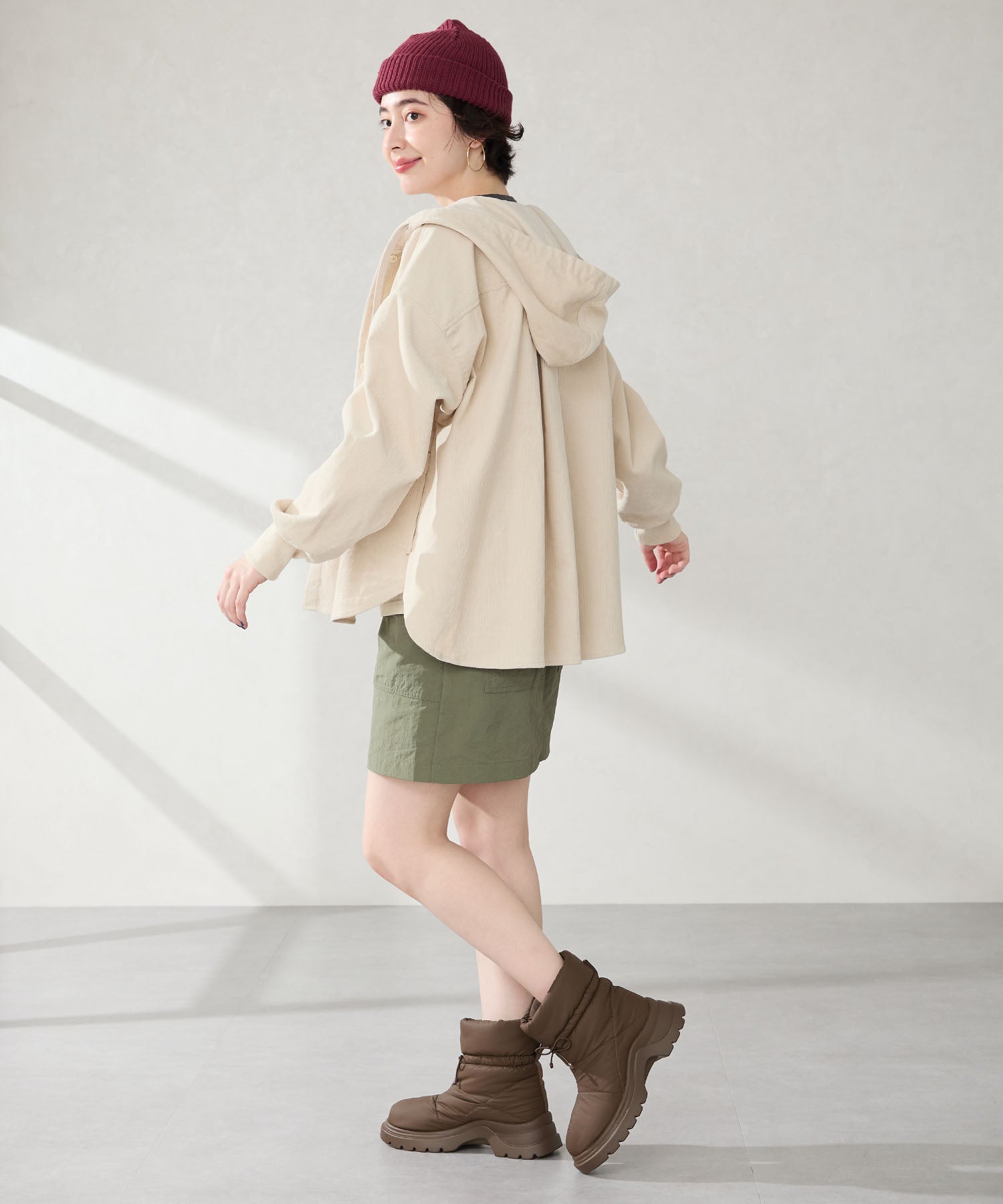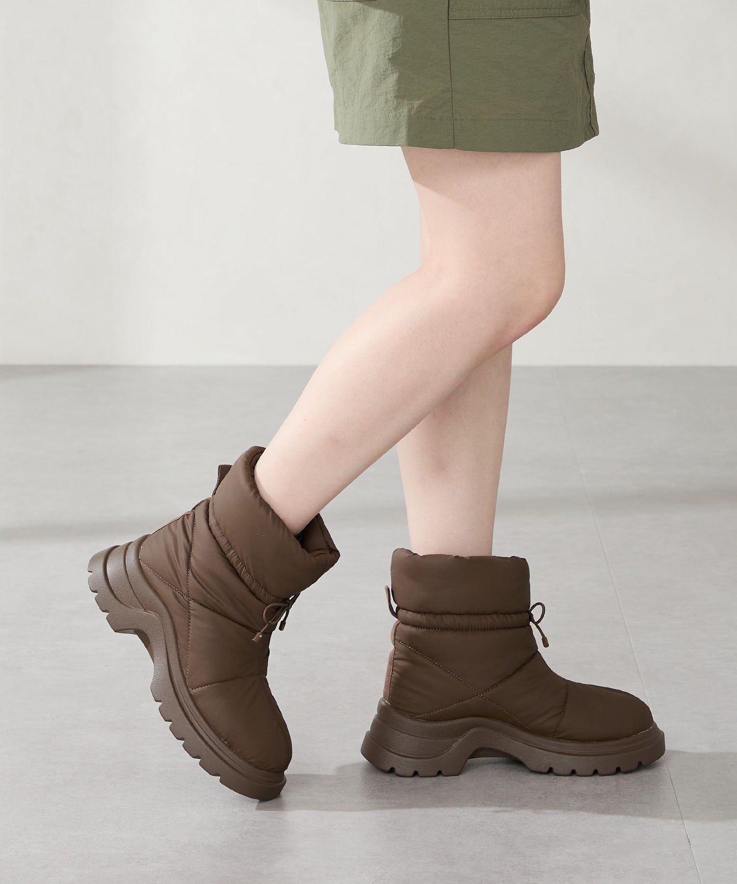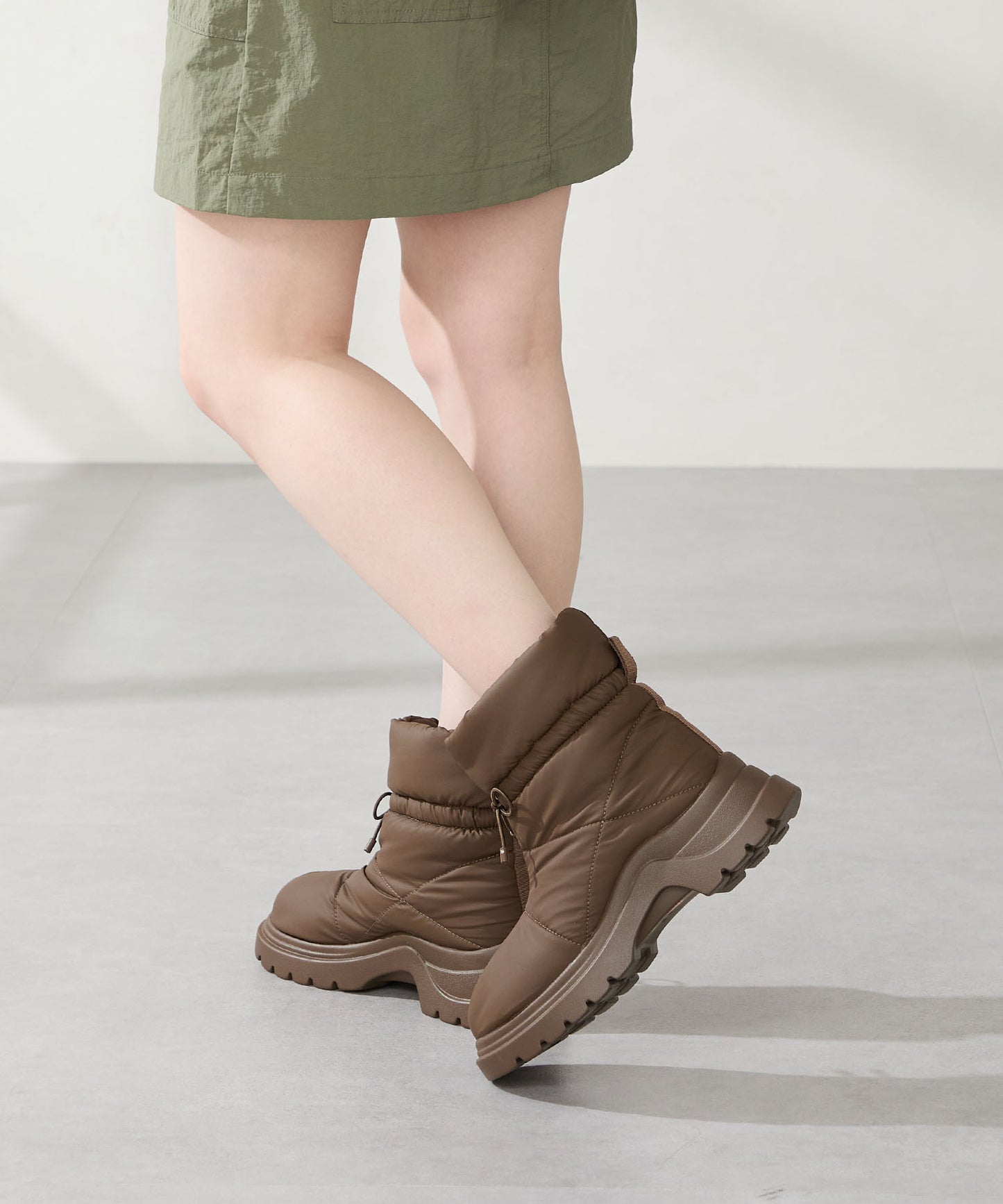 寒い季節にぴったりな防寒性と快適さを兼ね備えたブーツは厚底ソールでボリューム感のあるシルエットがトレンドライクなアイテム。裏側は全面ボア仕様で、足を入れた瞬間から包み込まれるようなあたたかさを感じられる。アッパーはふわふわとした柔らかいパデットデザインにすることで筒全体の足当たりが良く、リボン結びできる紐で絞ることでシルエットの変化も楽しむことができる仕様に。