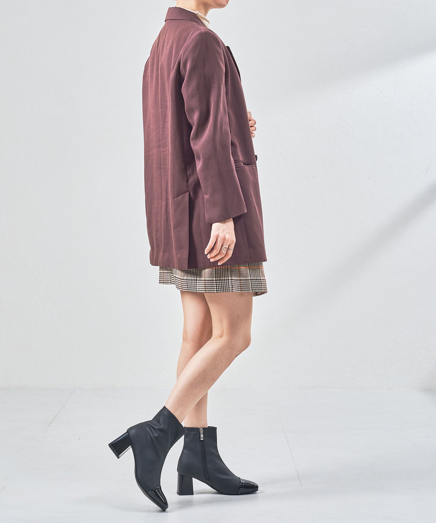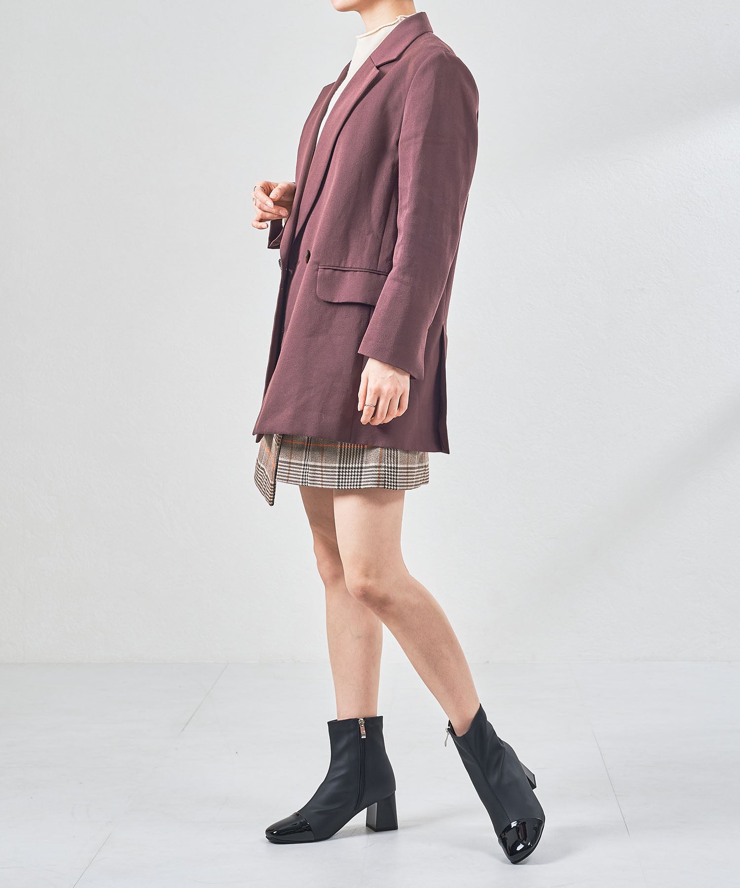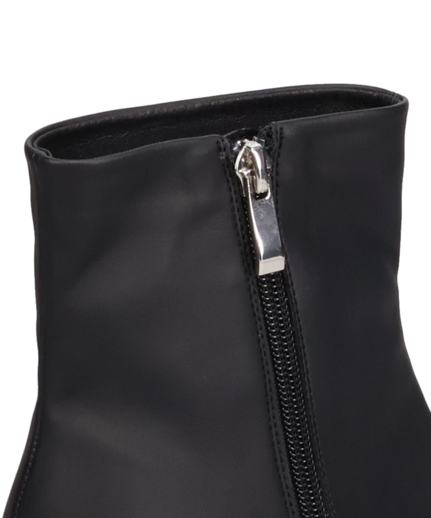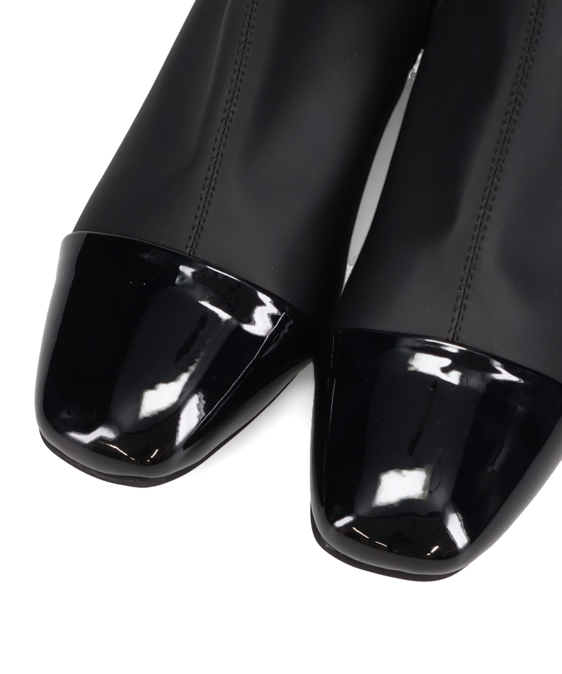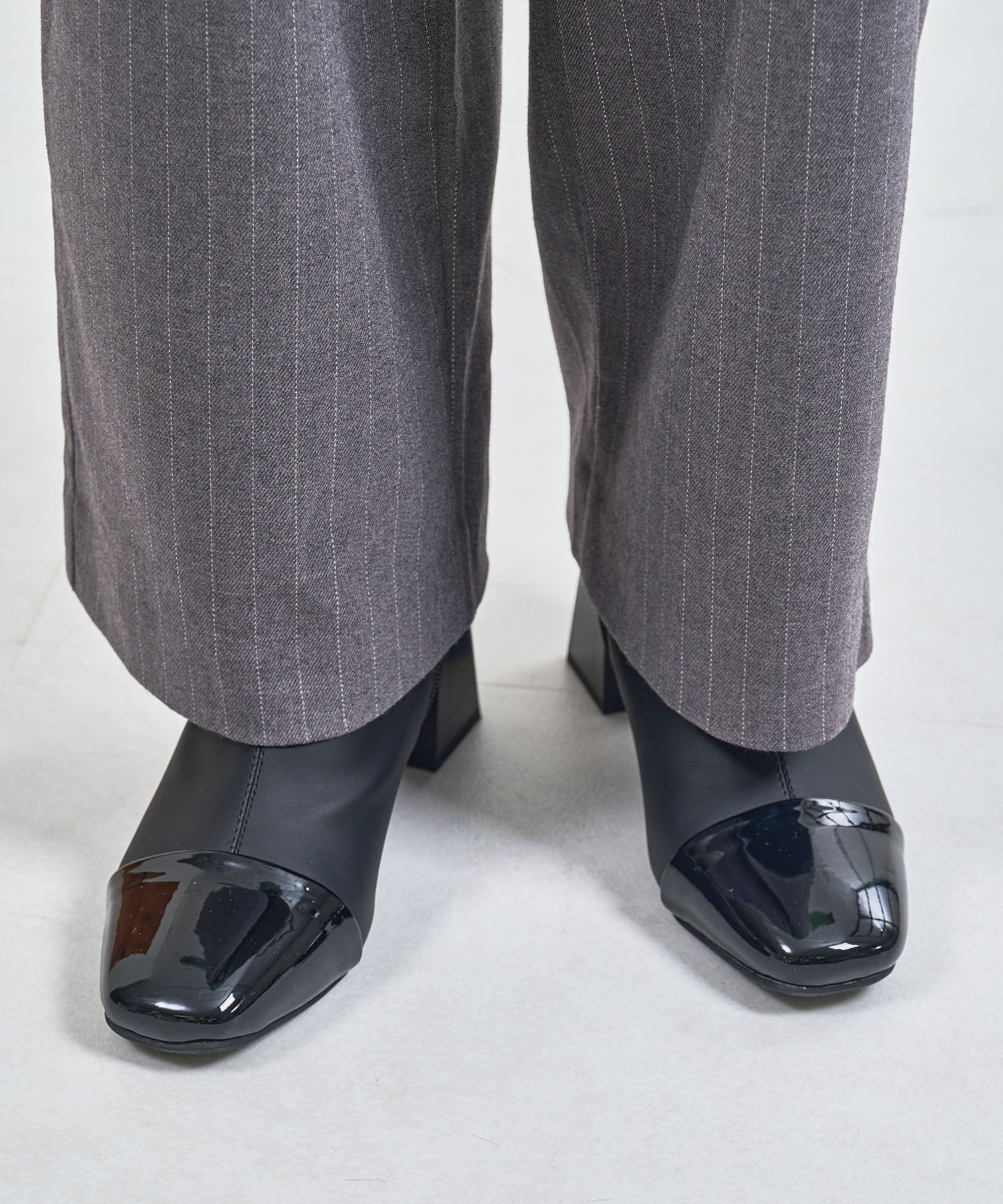 アッパーのマットなスムース素材に対しつま先部分はツヤ感のあるエナメル素材を組み合わせたことで、シンプルながらに履くだけでこなれ感の出る一足に。内側は足当たりの良い起毛素材を使用しており足を入れた瞬間にふわっと包み込まれるような柔らかさ。どんなコーディネートにも合わせやすい異素材ミックスのきれいめショートブーツ。