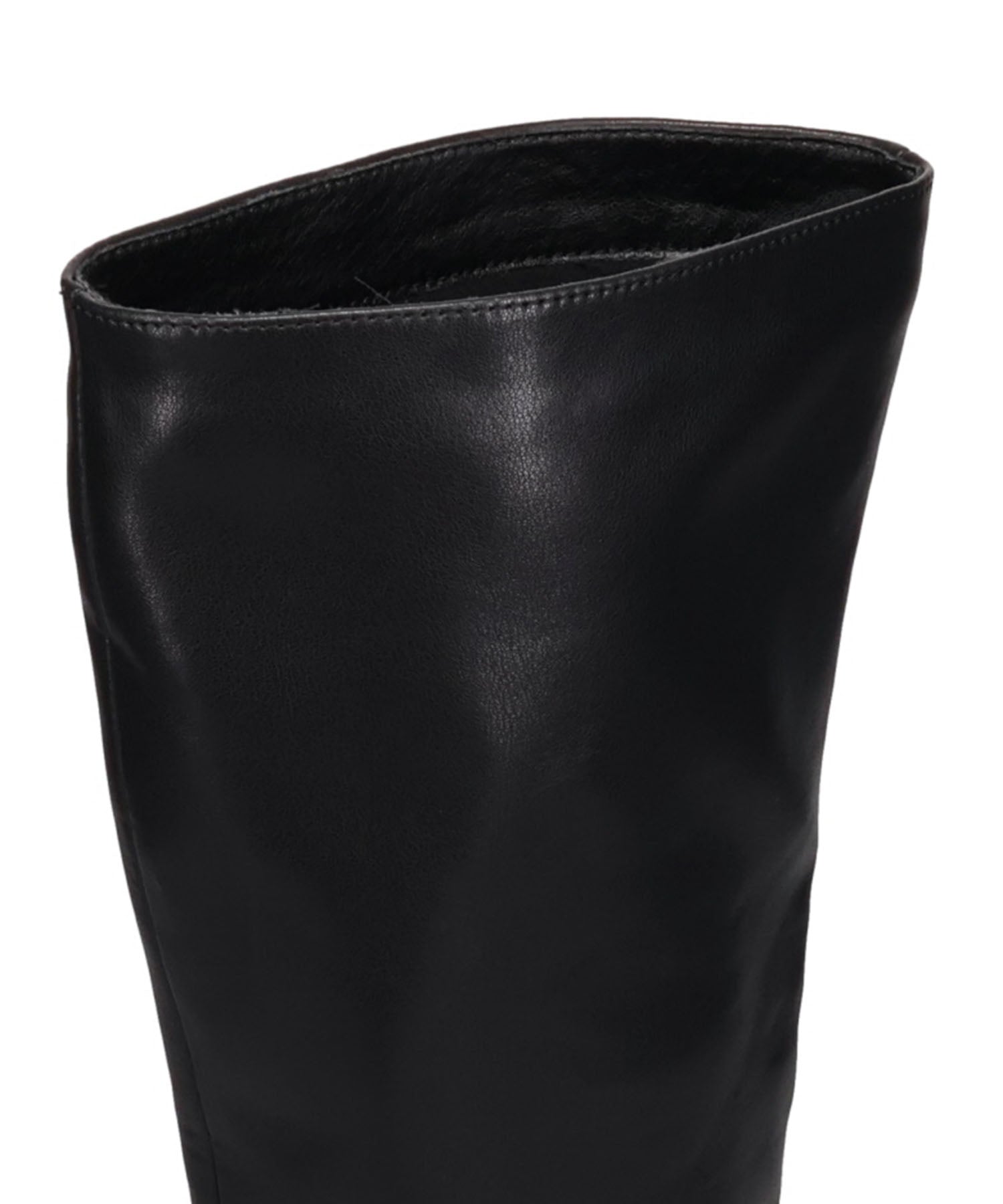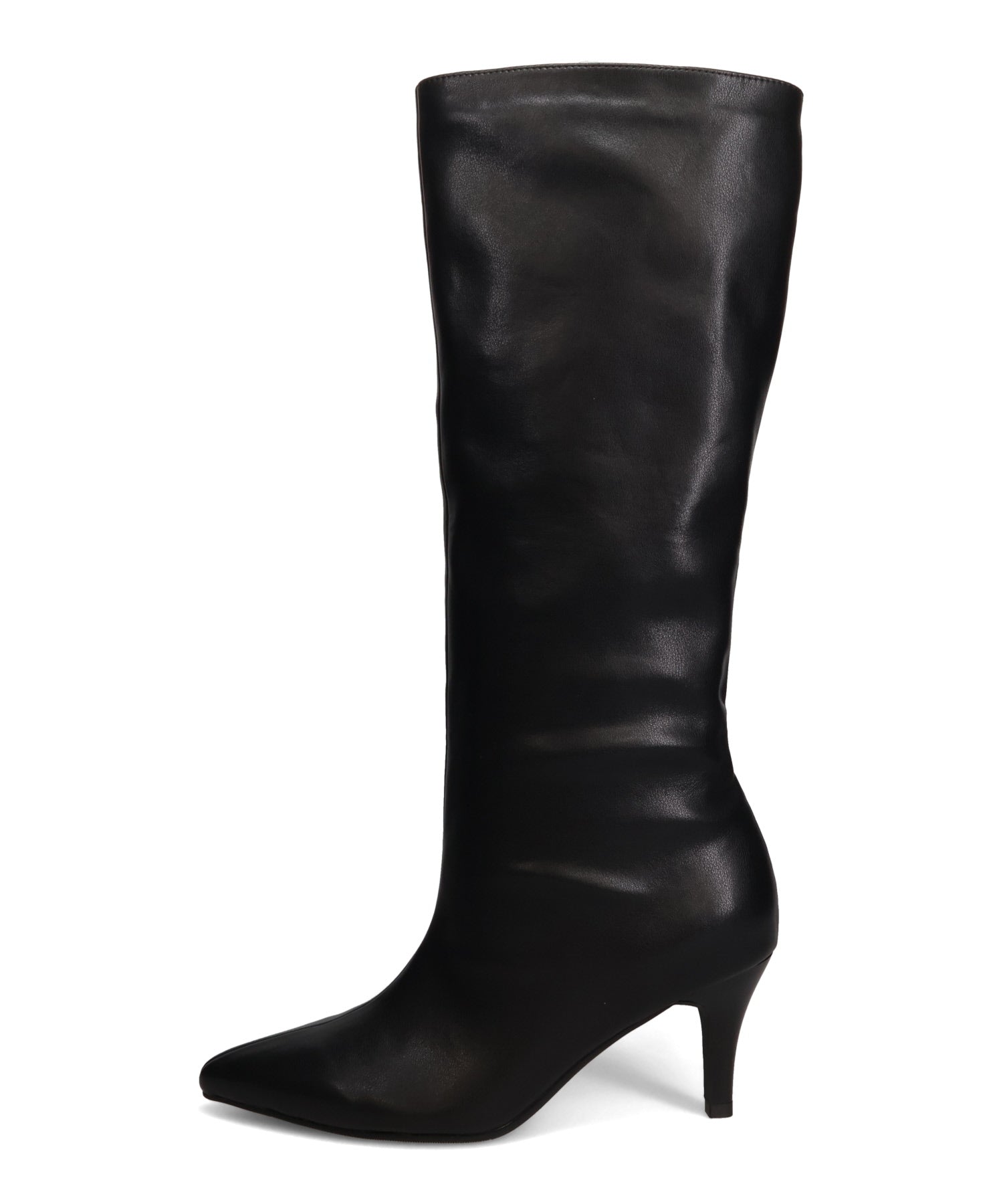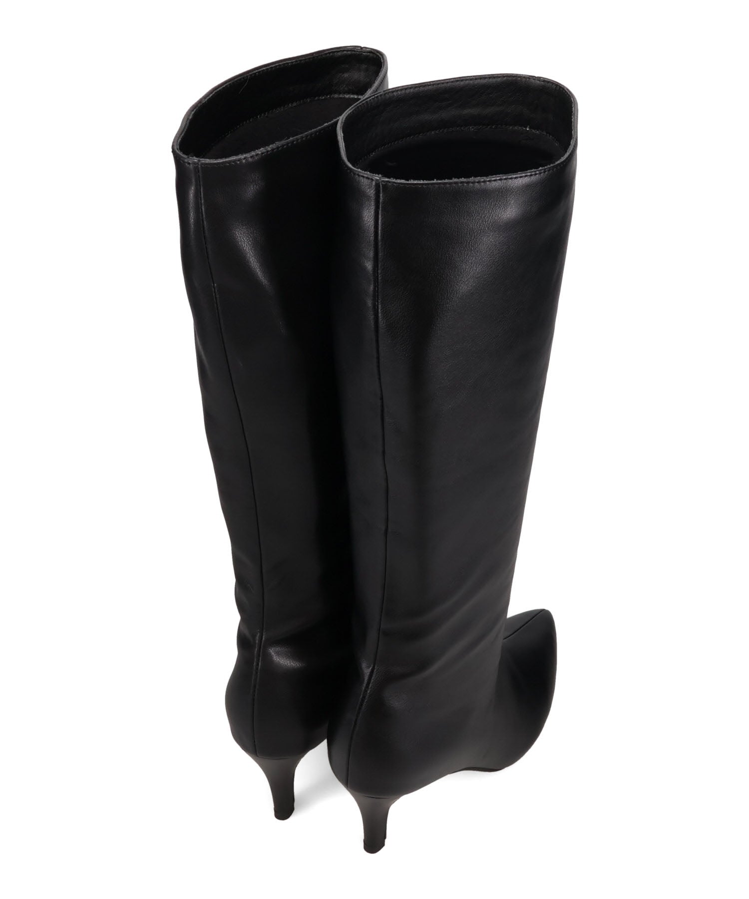 美脚叶うワイドシルエットになった主役級のロングブーツが登場。ポインテッドトゥと華奢ヒールが脚をすっきりと見せてくれてスタイリッシュな印象に。筒回りは柔らかい素材を使用し、ゆとりのある筒周りの設計なので締め付け感がなく履きやすい。裏側と中敷には起毛のベロア素材を採用し、肌あたりが良く上質な履き心地。ミニマムなデザインで大人の余裕を感じさせる1足。