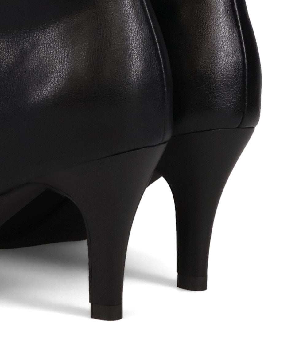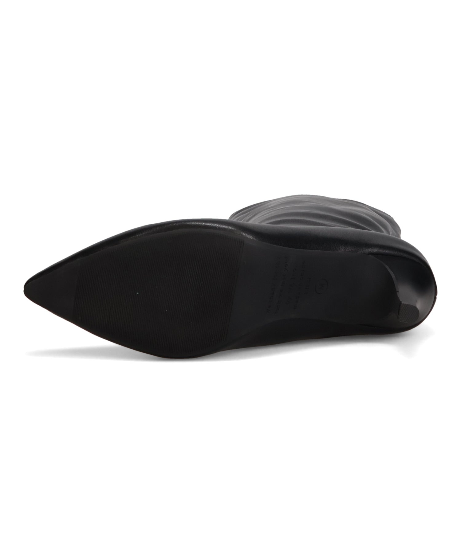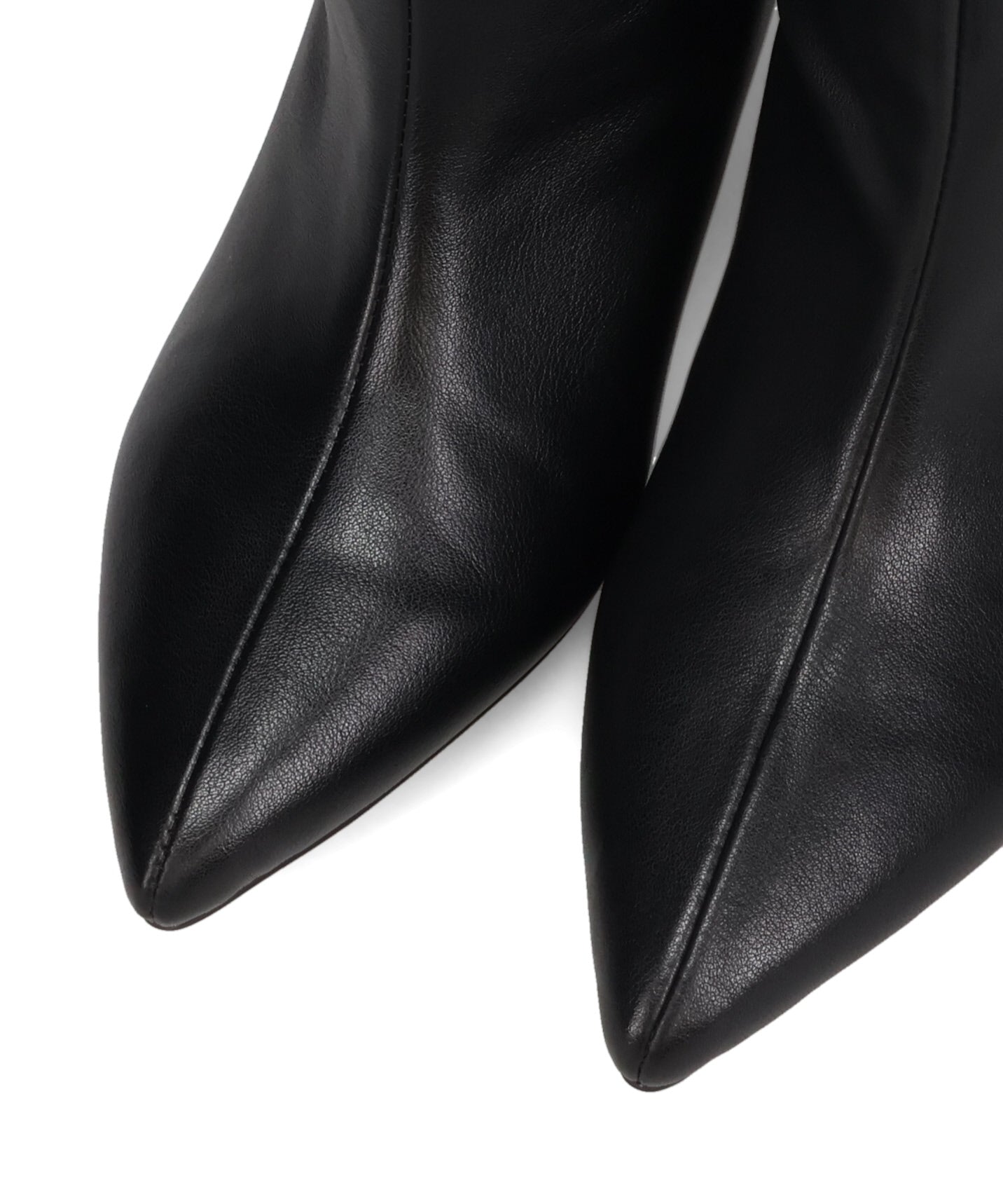 美脚叶うワイドシルエットになった主役級のロングブーツが登場。ポインテッドトゥと華奢ヒールが脚をすっきりと見せてくれてスタイリッシュな印象に。筒回りは柔らかい素材を使用し、ゆとりのある筒周りの設計なので締め付け感がなく履きやすい。裏側と中敷には起毛のベロア素材を採用し、肌あたりが良く上質な履き心地。ミニマムなデザインで大人の余裕を感じさせる1足。