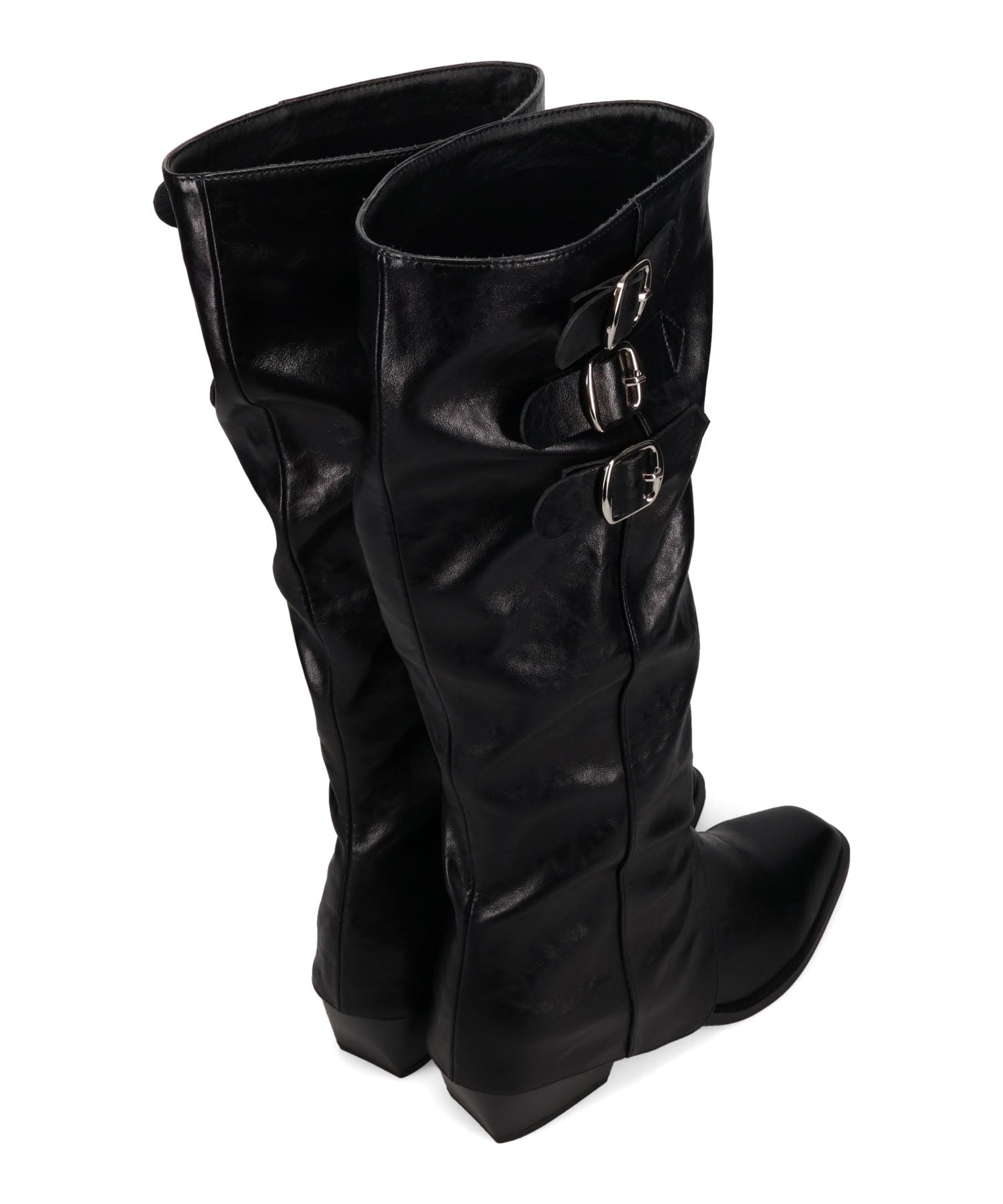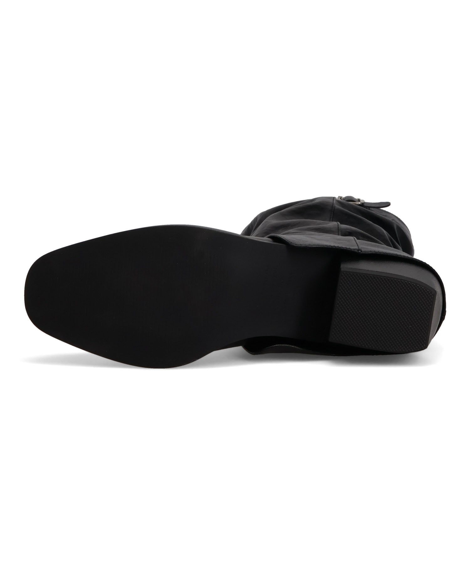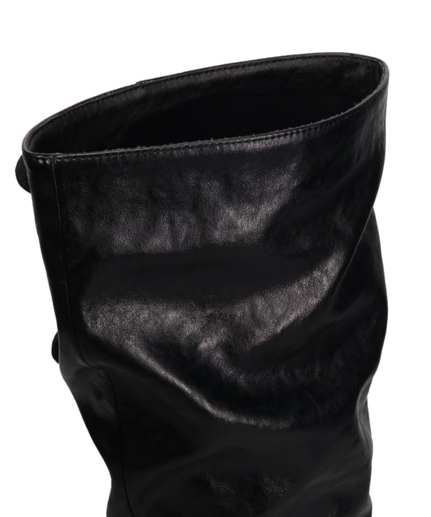 カバー風デザインのロング丈×ポインテッドトゥのシルエットでスタイルアップできる1足。アッパー全体が柔らかいので足への負担が少なく、低めの変形ヒールで長時間の歩行でも安心の履き心地。内側が起毛になったベロア素材は足当たりが滑らかで冬でも暖かいのが嬉しい。長めのソックスを筒丈から覗かせるれば一気にトレンドスタイルが完成する旬のブーツ。