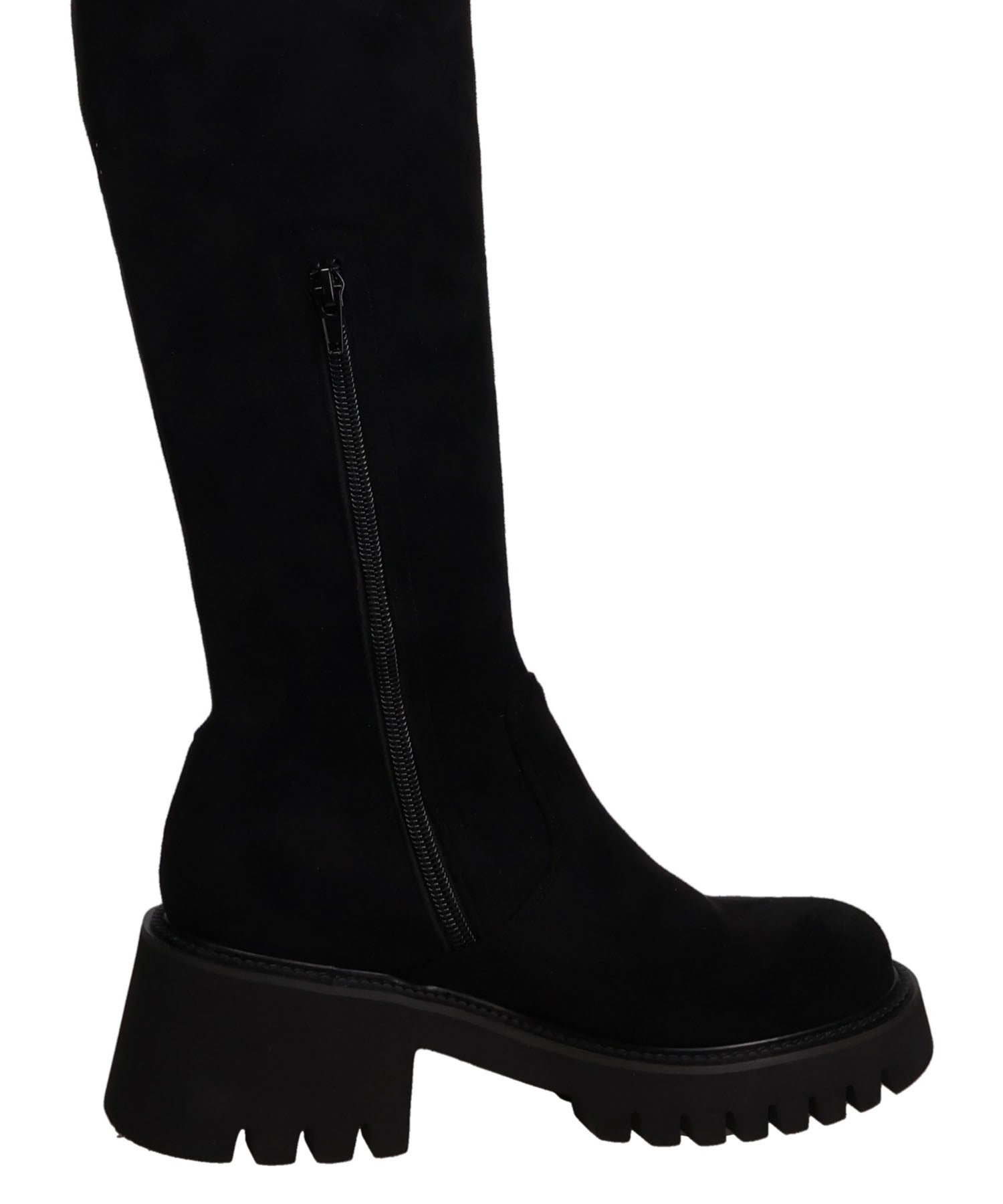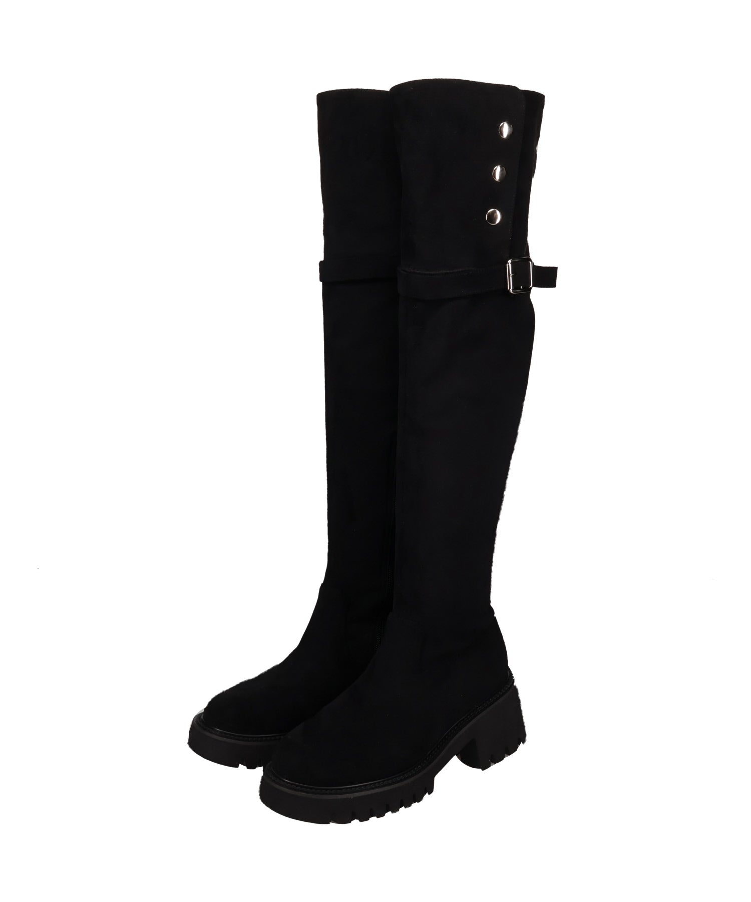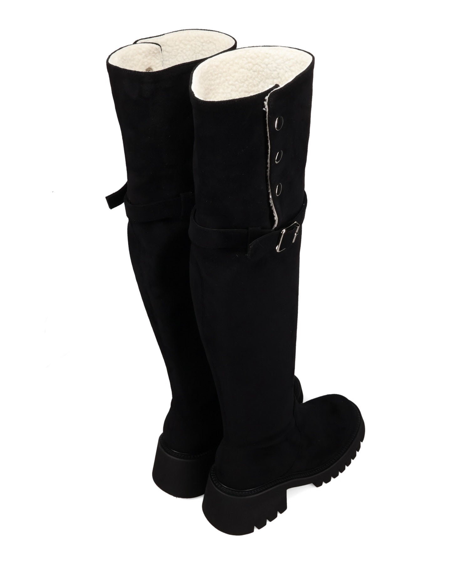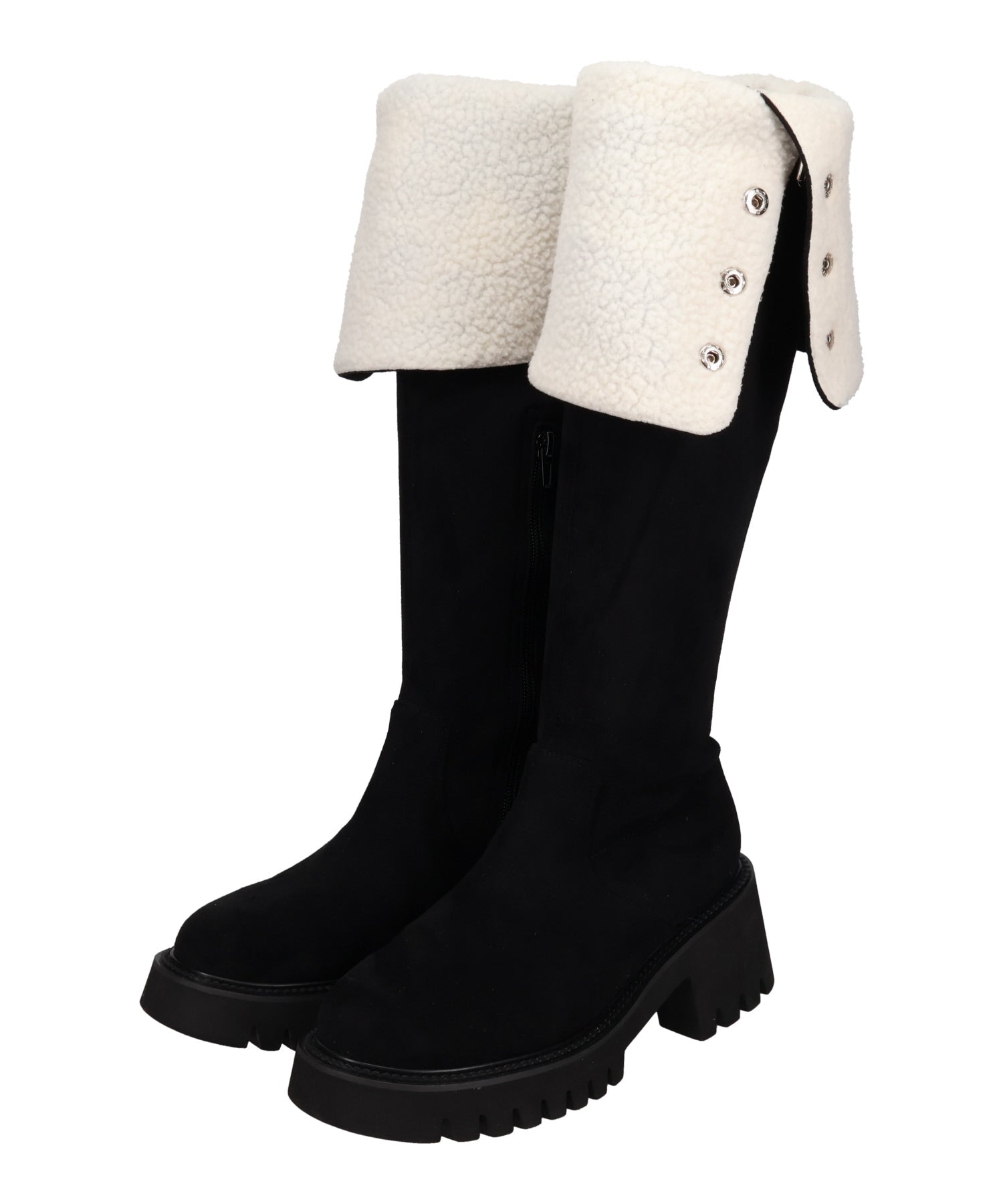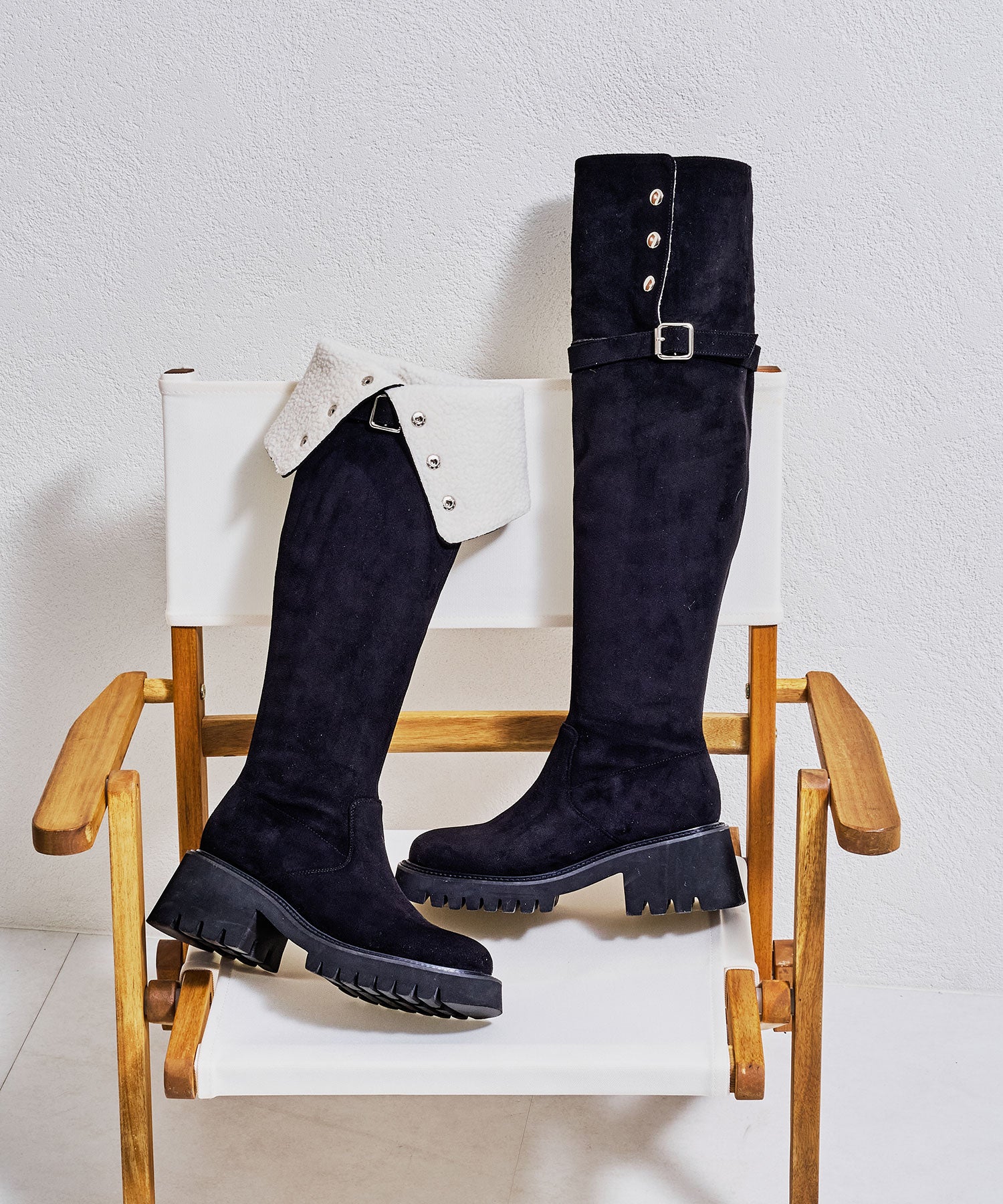長めのニーハイ丈が目を惹くブーツは、そのまま履くのはもちろん、スナップボタンを外して折り返せば、ボアが主役のロングブーツとしても履ける2way仕様。程よい厚底のボリューム感が可愛く、スエード素材がハードになりすぎず優しいニュアンスを与えてくれる1足。内側にはファスナーが付いているので、着脱も簡単にできるのが嬉しい。