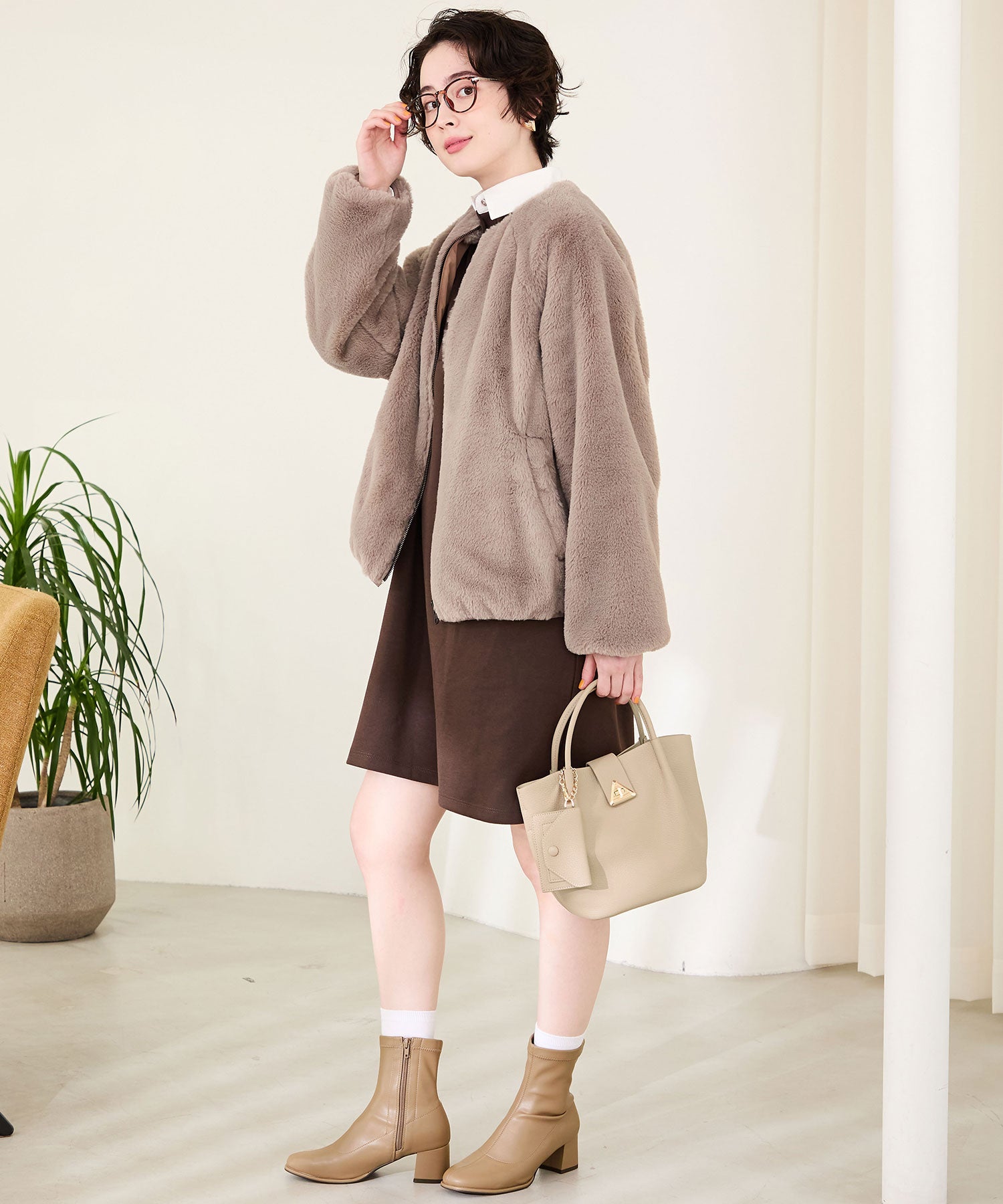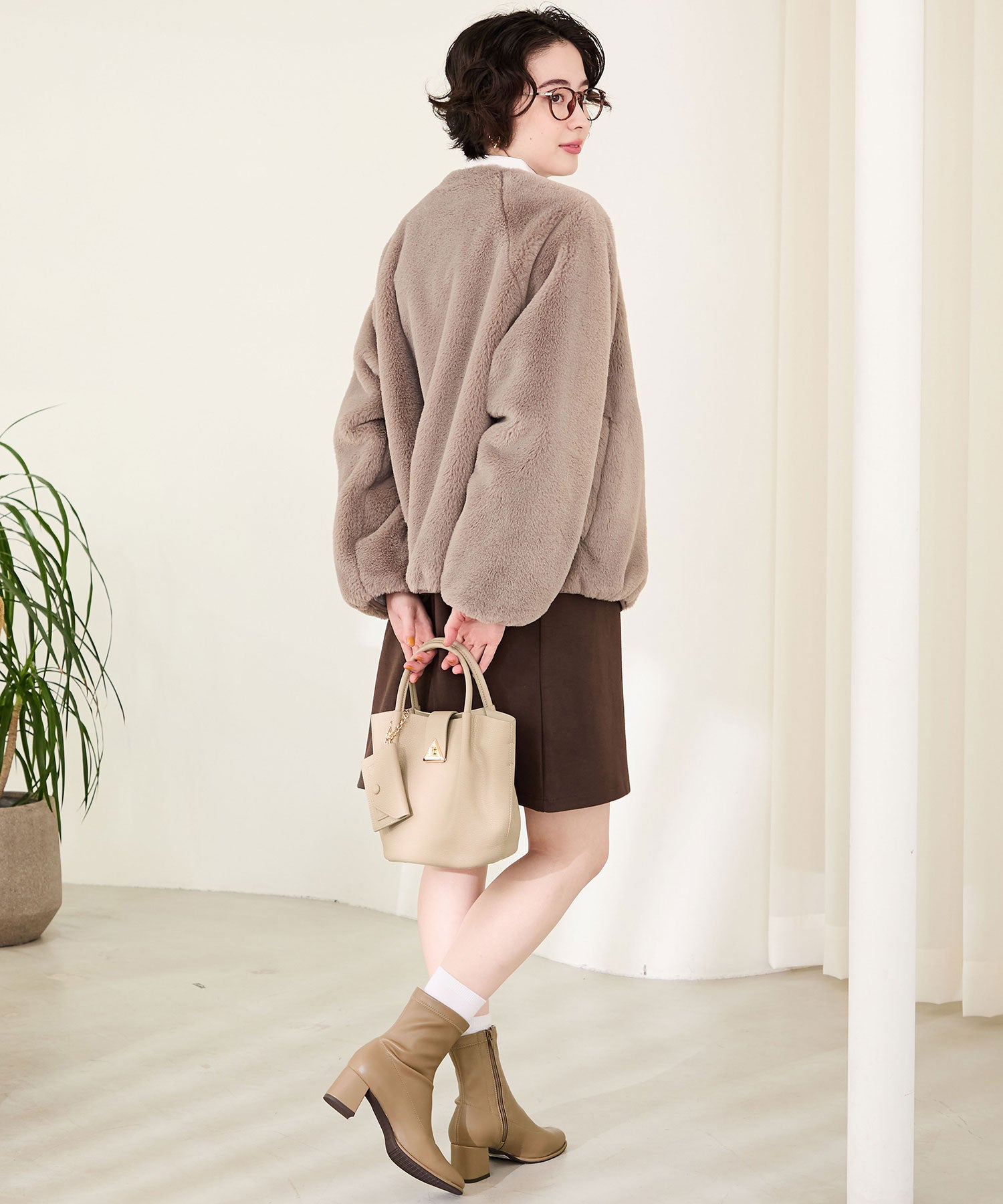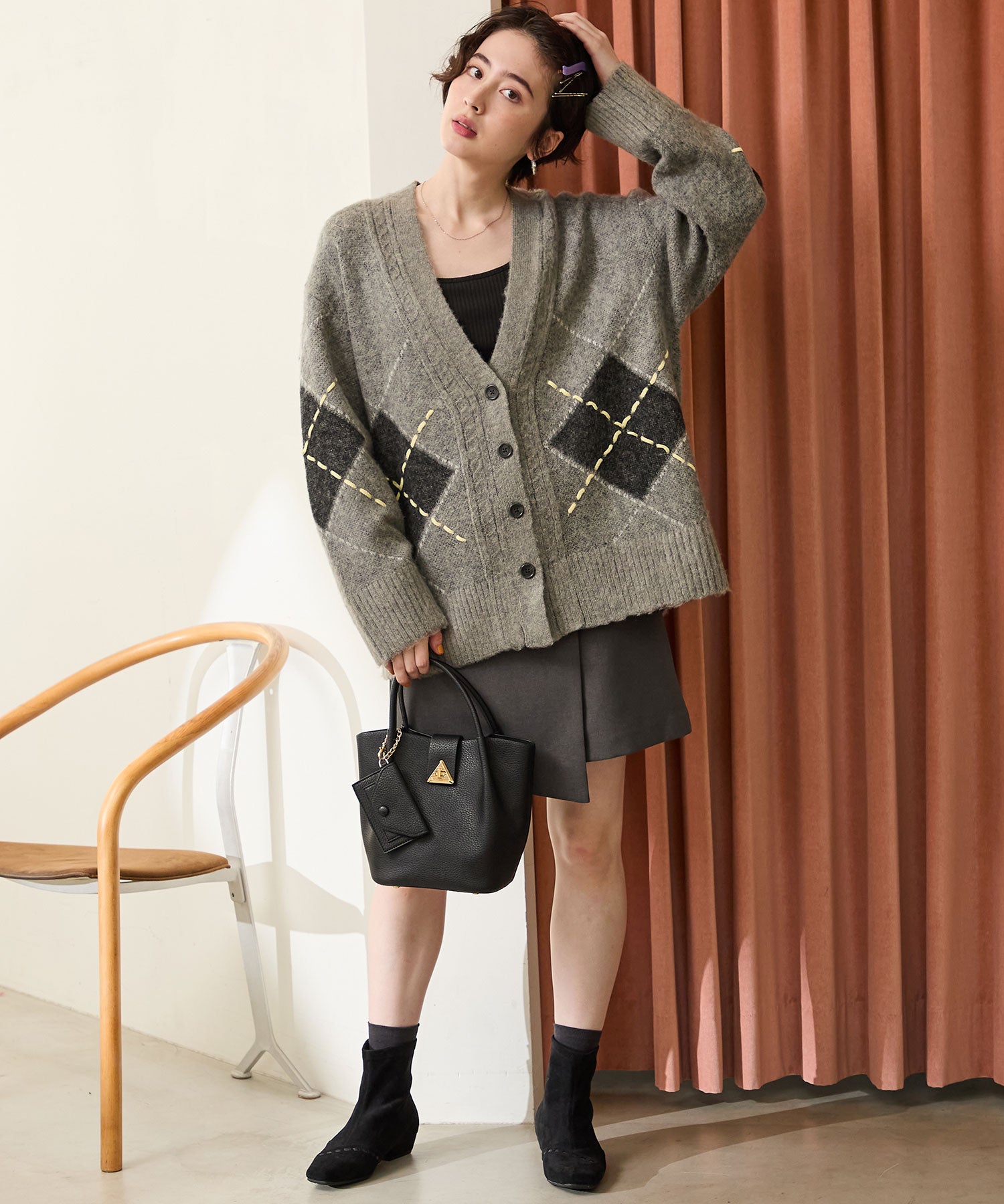 三角形のバックルモチーフや立体的なストラップデザインが高見えするハンドバッグは、シボ感のある素材を使用し上品な印象に。コンパクトなシルエットながらマチのある底回りで見た目以上に収納力があるのも嬉しい。取り外し可能なショルダーやポーチ付きで気分によってスタイルを変えて楽しめるのもポイント。