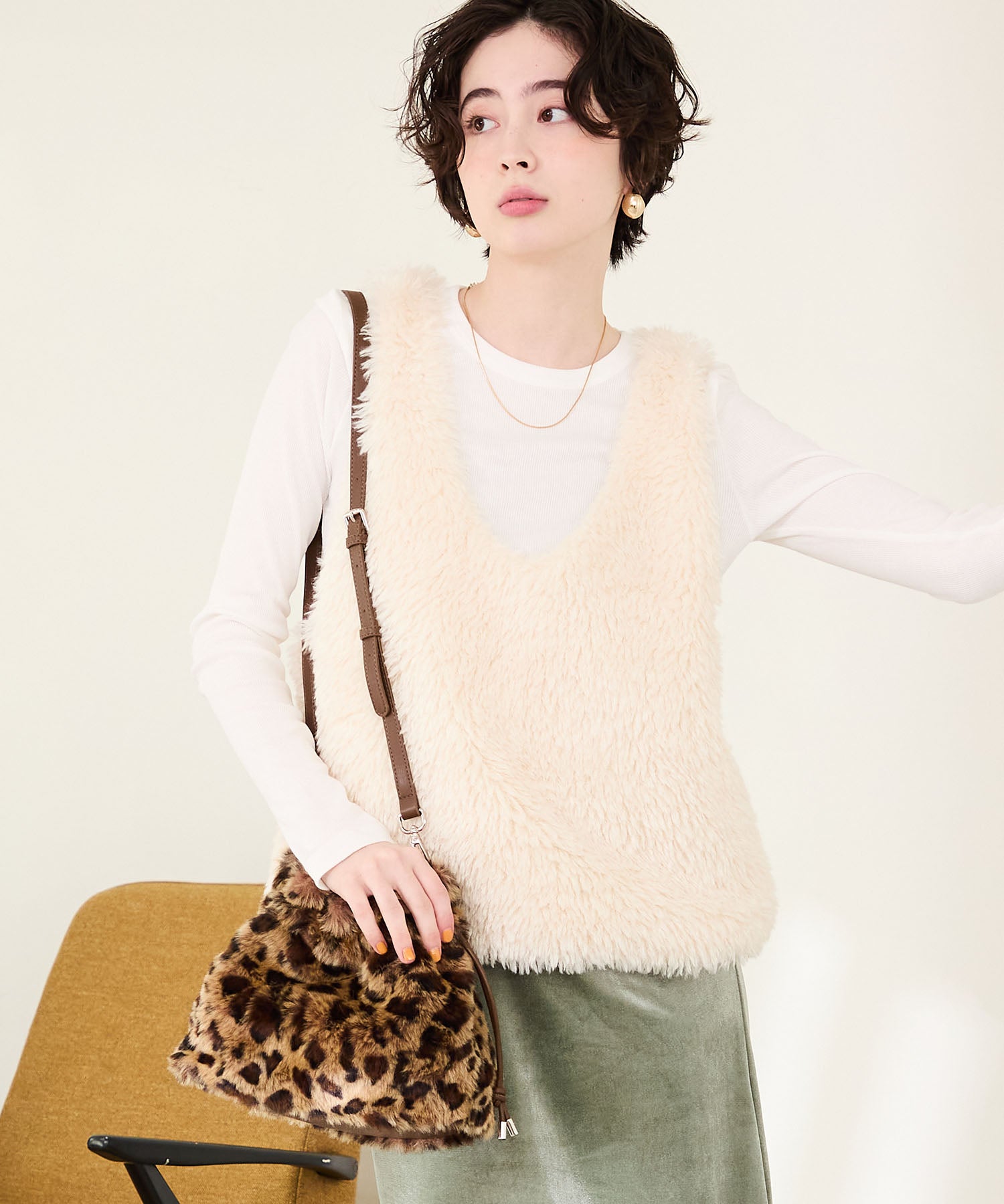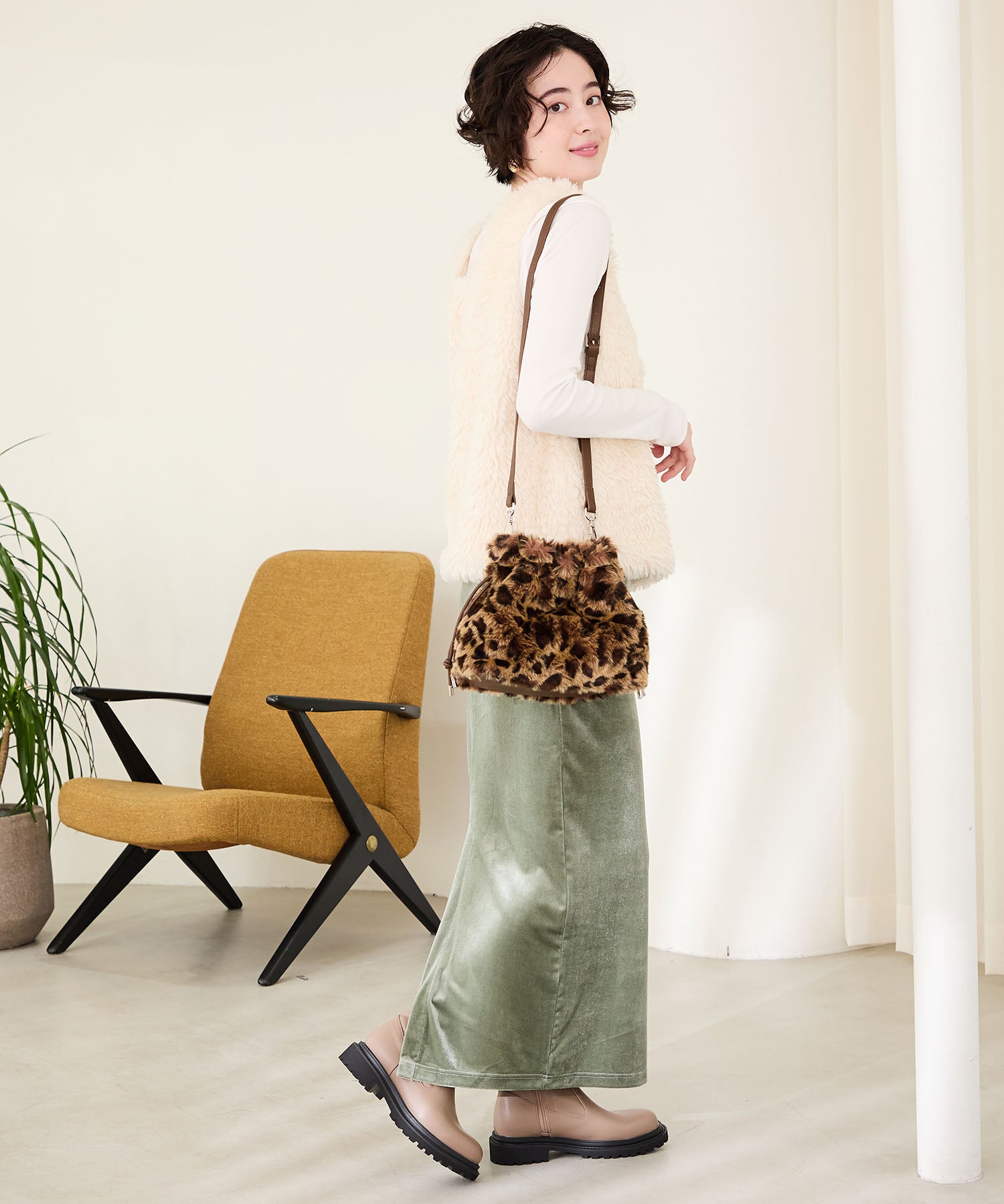 思わず触りたくなるふわふわのファーがキャッチ―な巾着バッグは、トレンドライクなレオパード柄がコーディネートのアクセントにぴったり。ちょっとしたお出かけにぴったりなサイズ感が使いやすく、付属のストラップを付ければショルダーバッグにもなるので身軽に出かけたい時にもぴったり。