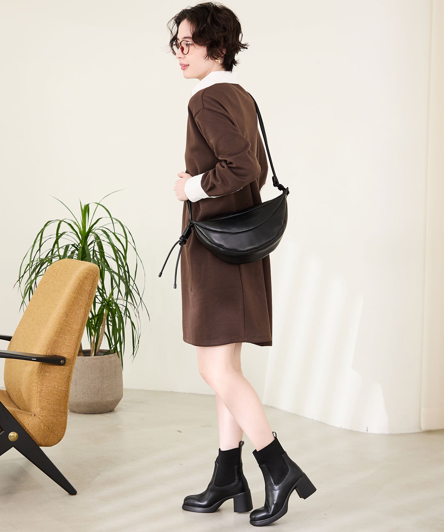 ハーフムーン型のシンプルなデザインでカジュアルからフェミニンまでスタイリングを選ばず使える万能バッグ。柔らかい素材感で使いやすく、ショルダーは結び目の位置を変えて長さの調節が可能。見た目以上に入るサイズ感は荷物が多い日にも大活躍。ベーシックなブラックとホワイトのカラー展開も魅力的。