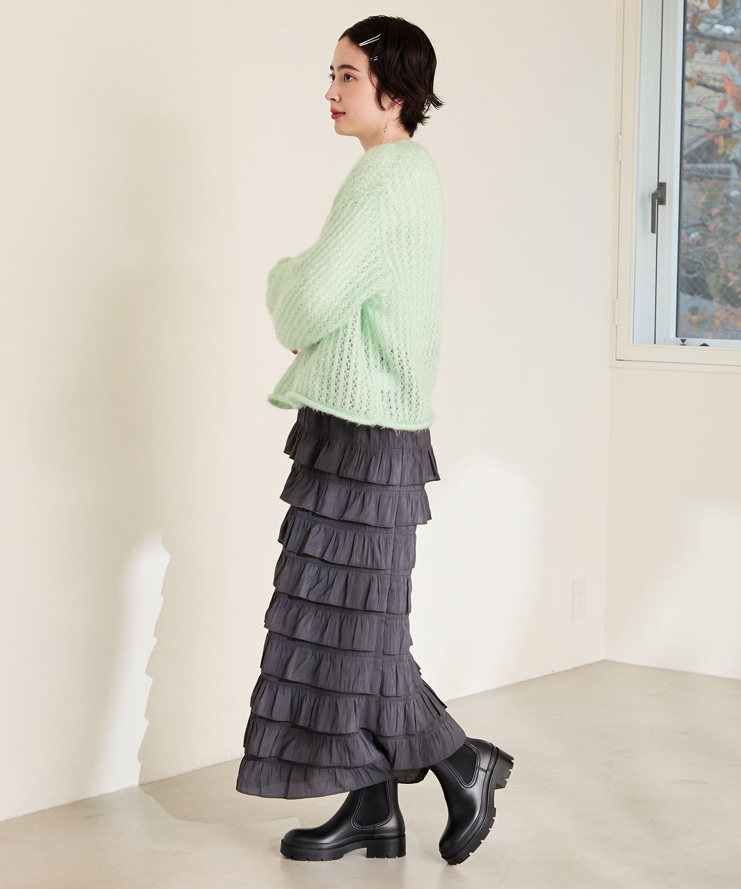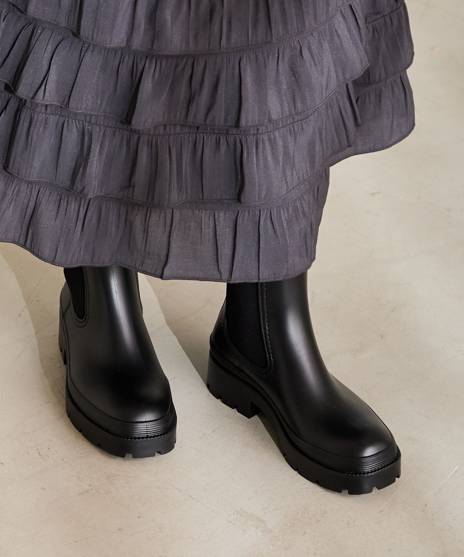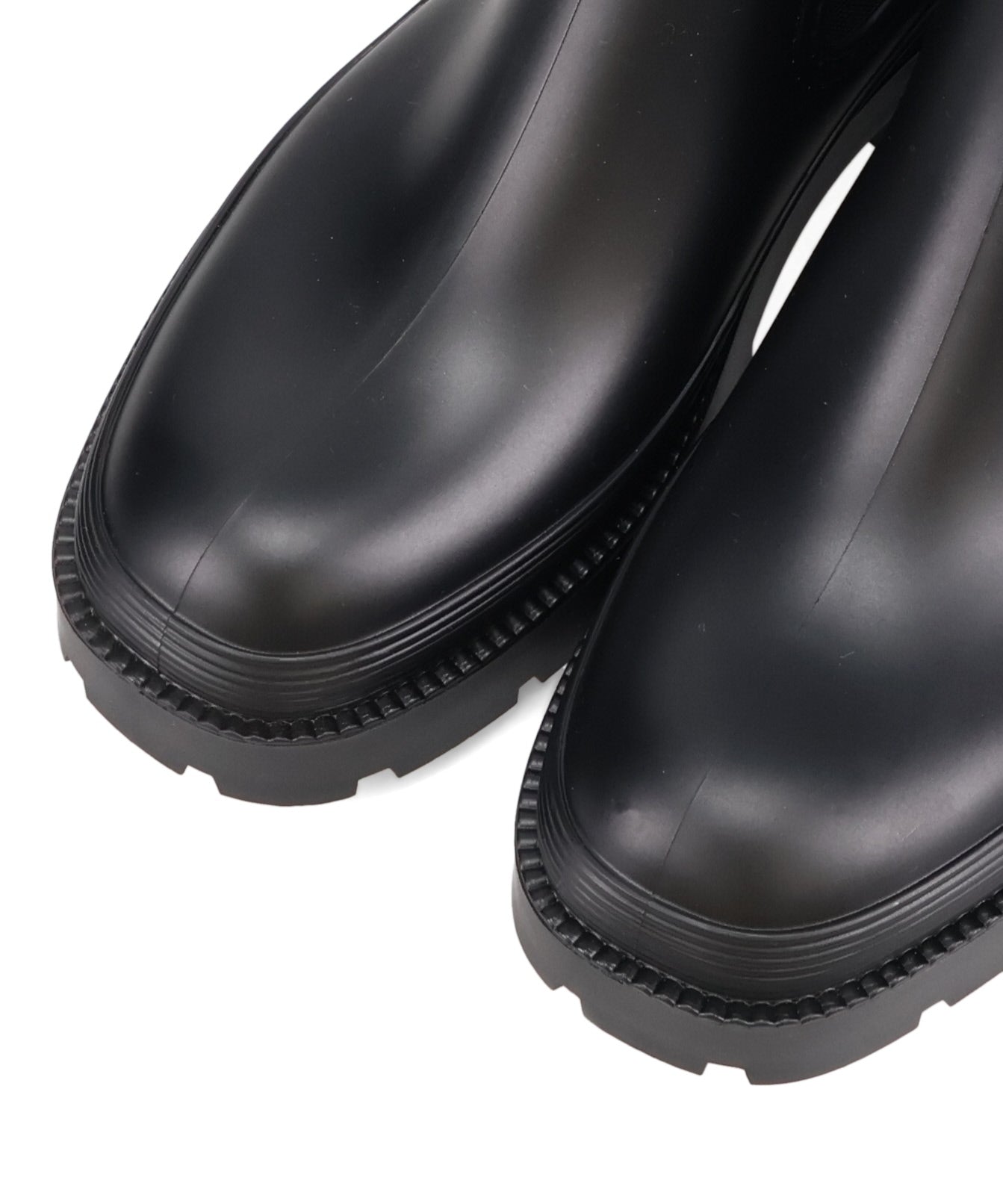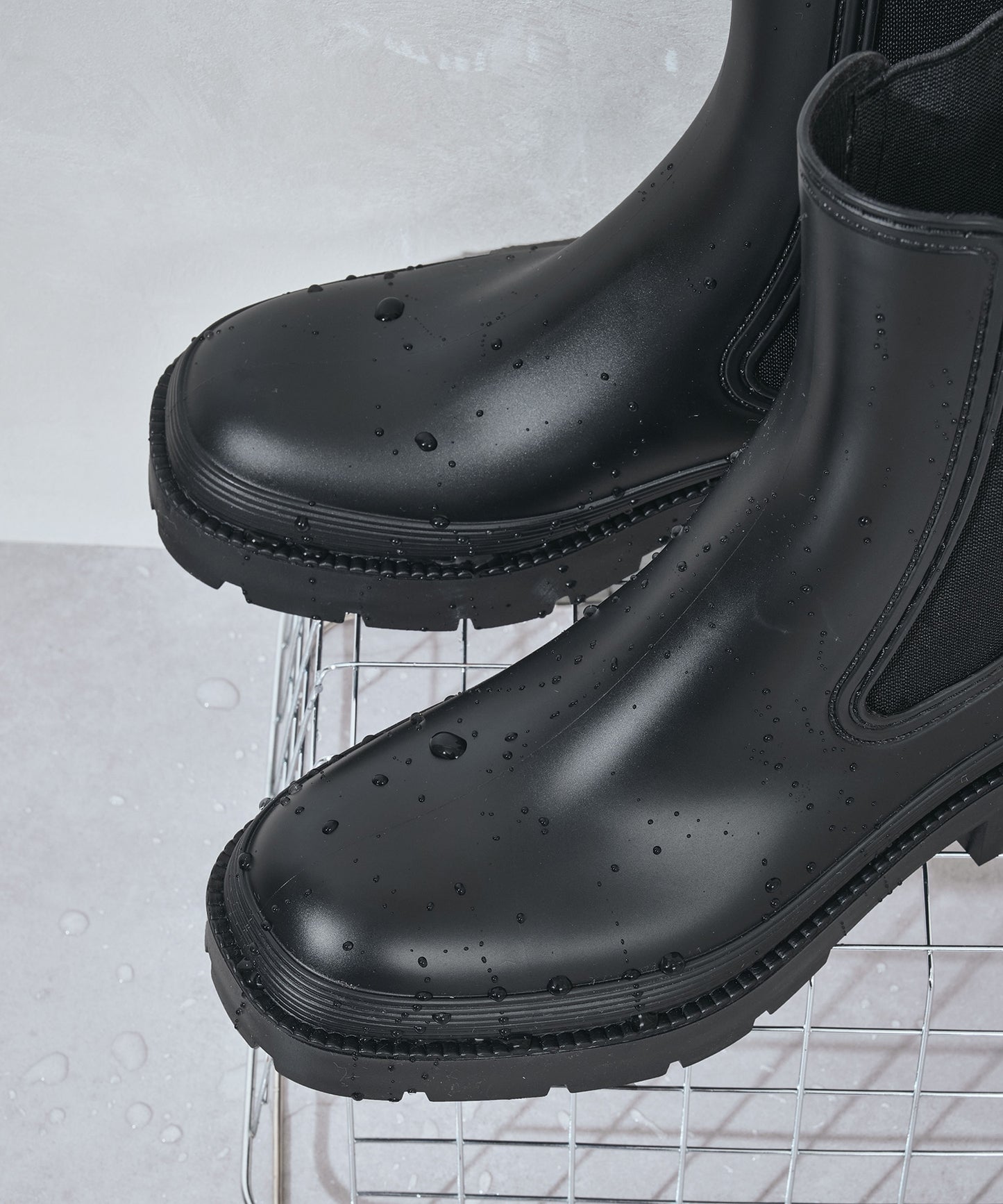 雨水が入るのを防ぐ長めの丈感に、凹凸を付けたボリュームソールを組み合わせた履くだけでおしゃれ度アップするレインブーツ。ほんのりスクエアのつま先でスタイリッシュに仕上げ、雨の日でも気分のあがるシルエットに。定番のサイドゴアデザインで、カジュアルスタイルにもきれいめの外しアイテムとしても幅広く活躍する1足。