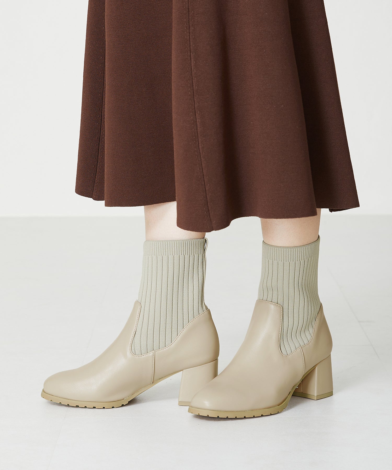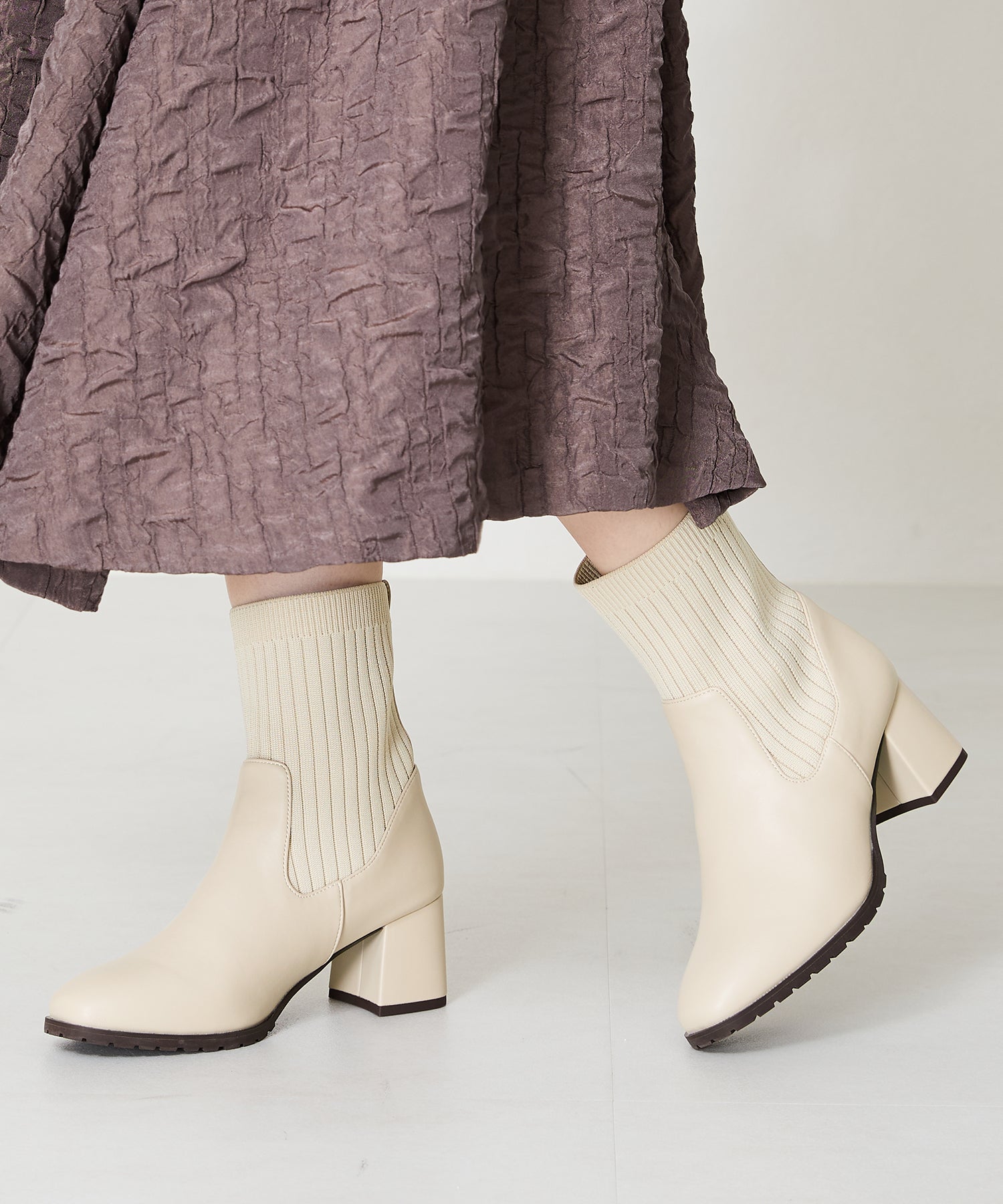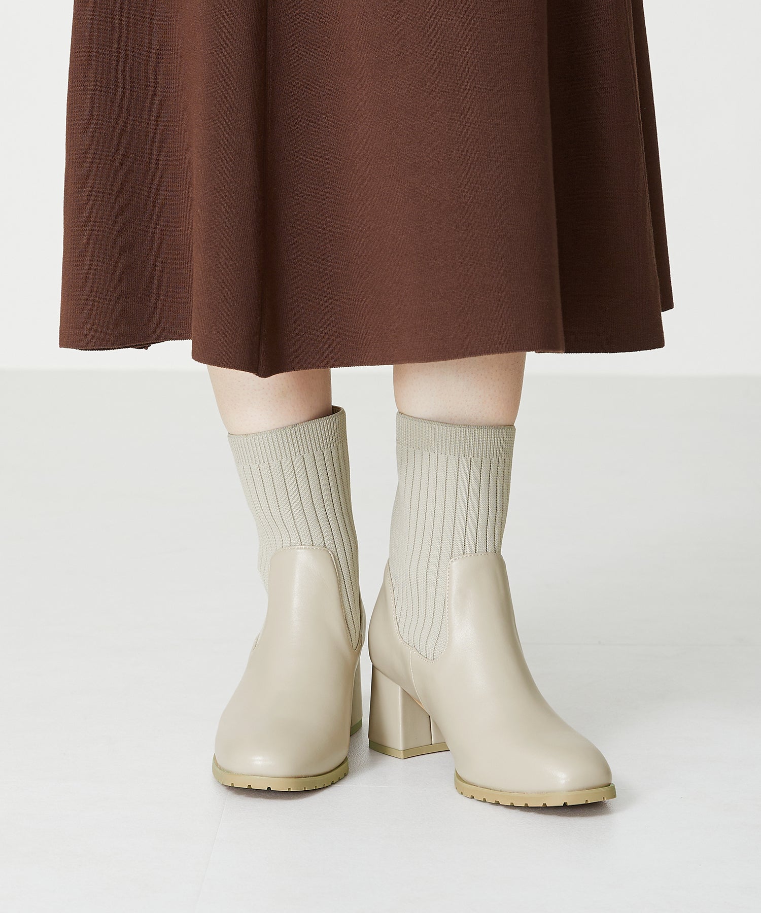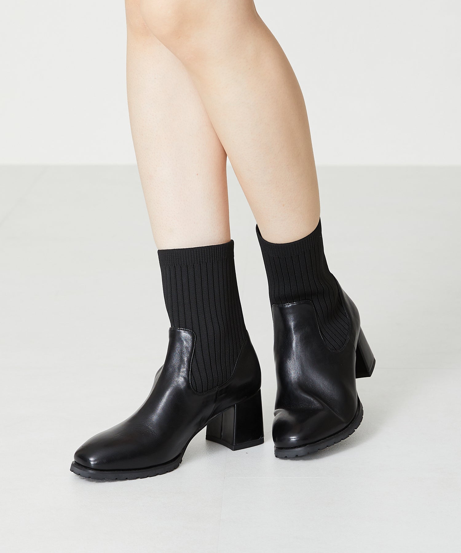 今シーズンのスタイリングには欠かせないニットブーツは履くだけで旬な足元になり大活躍間違いなしの1足。足首周りにニット素材を使用しているので足当たりが良くストレスのない履き心地。細身のスクエアトゥと6㎝のヒールできちんと感がありつつ、ソールを少しゴツゴツさせているので程よくカジュアルダウンし、どんなお洋服にも合わせやすい。落ち着いたカラーリングで大人っぽく決まる。
