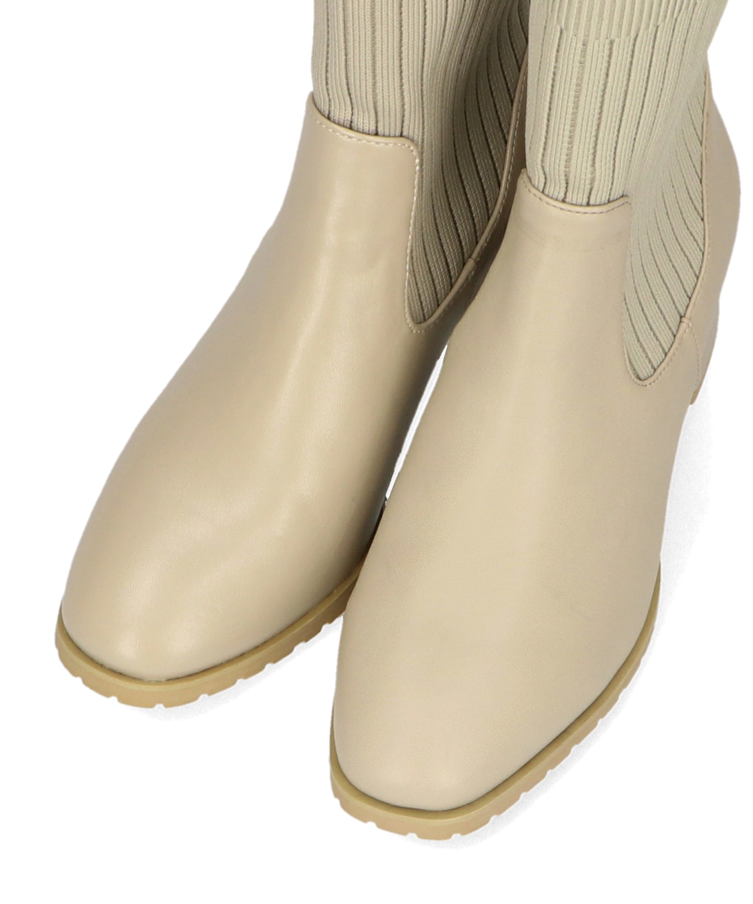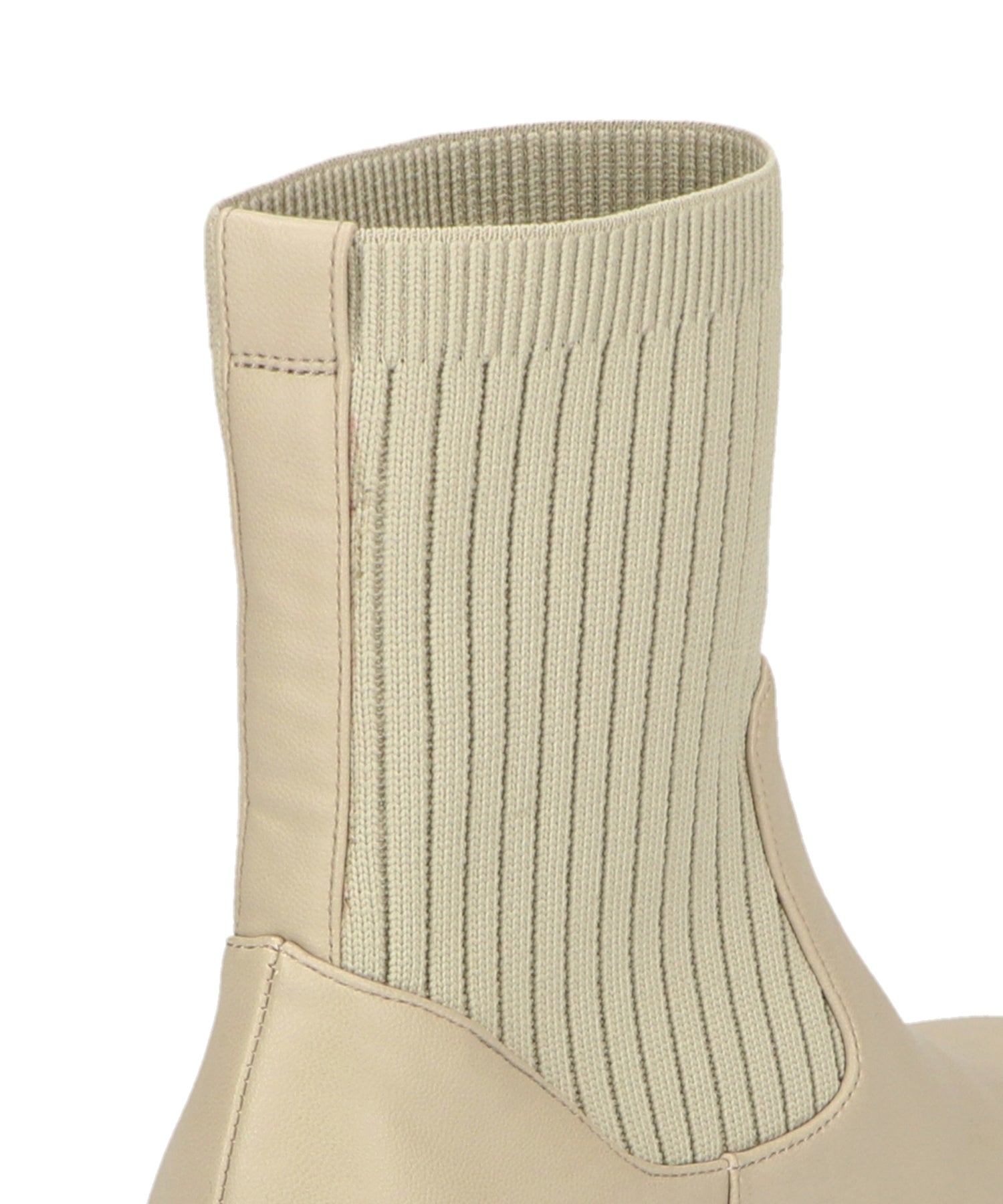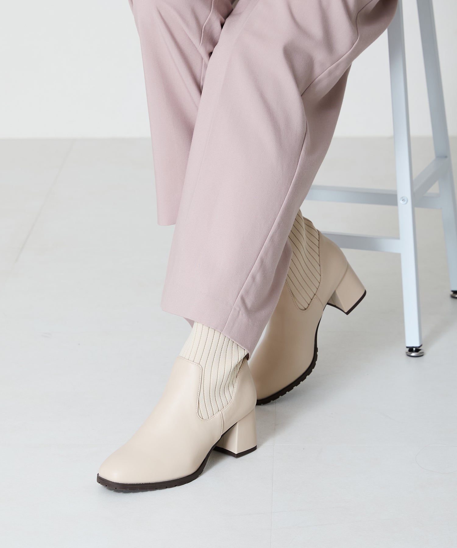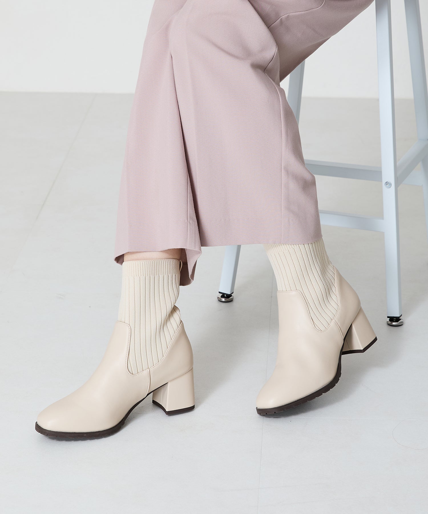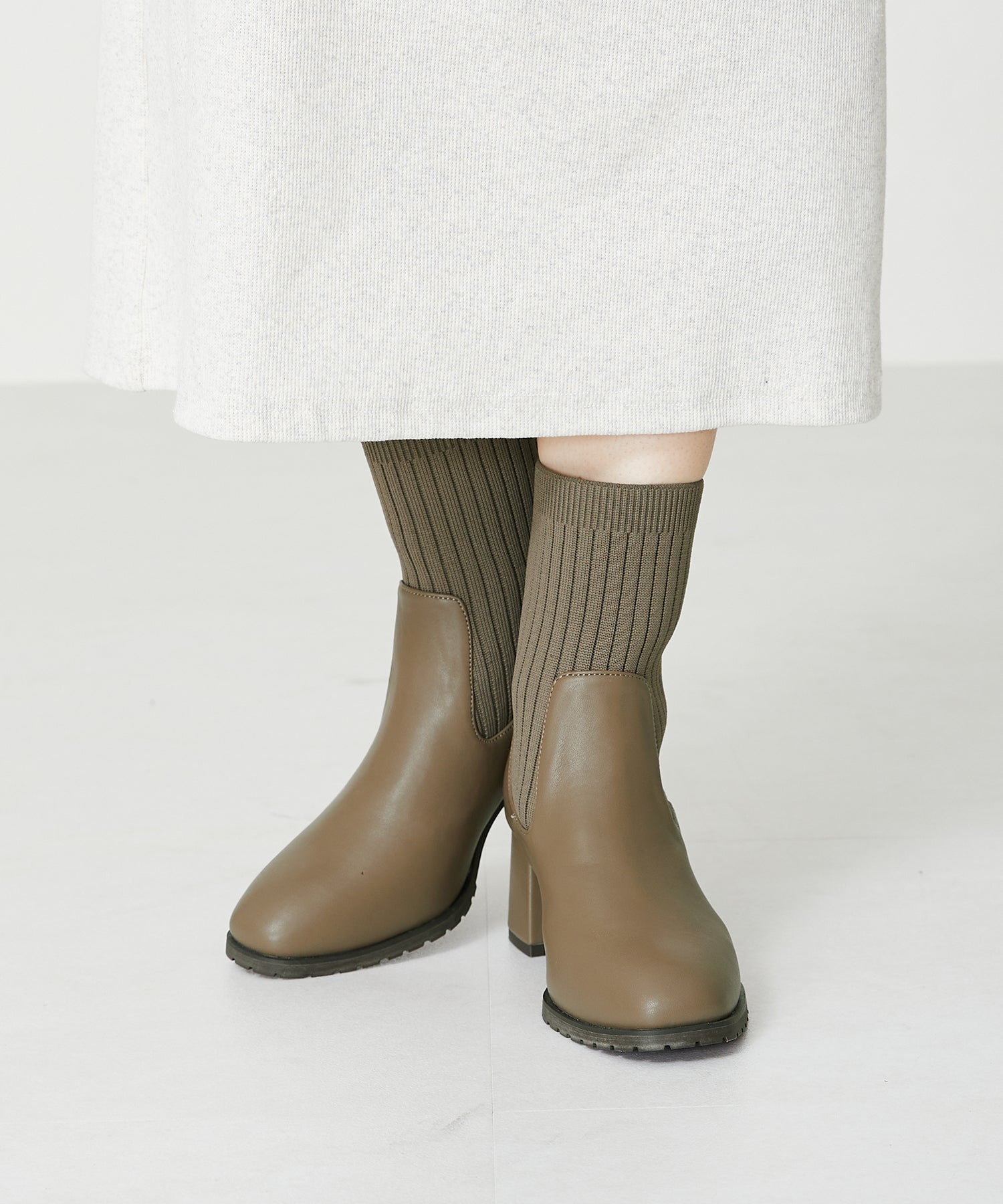 今シーズンのスタイリングには欠かせないニットブーツは履くだけで旬な足元になり大活躍間違いなしの1足。足首周りにニット素材を使用しているので足当たりが良くストレスのない履き心地。細身のスクエアトゥと6㎝のヒールできちんと感がありつつ、ソールを少しゴツゴツさせているので程よくカジュアルダウンし、どんなお洋服にも合わせやすい。落ち着いたカラーリングで大人っぽく決まる。