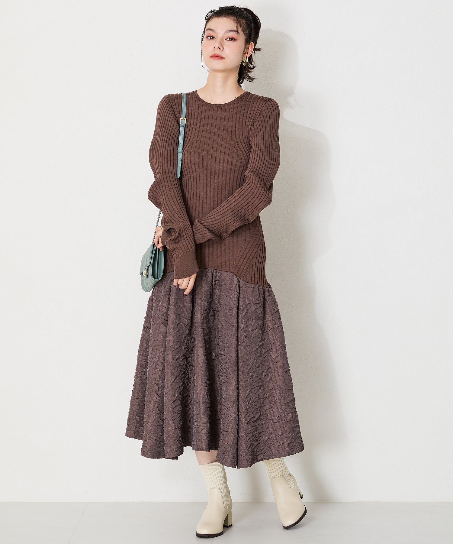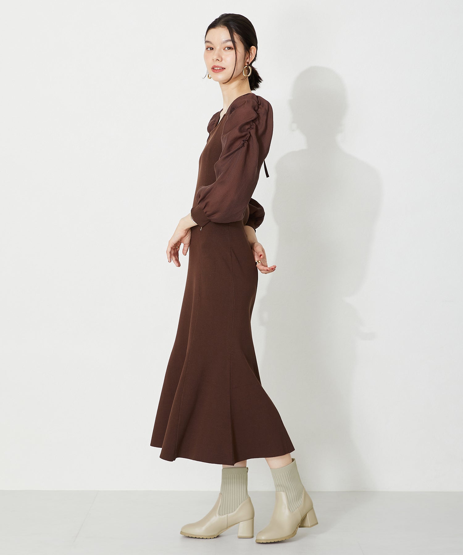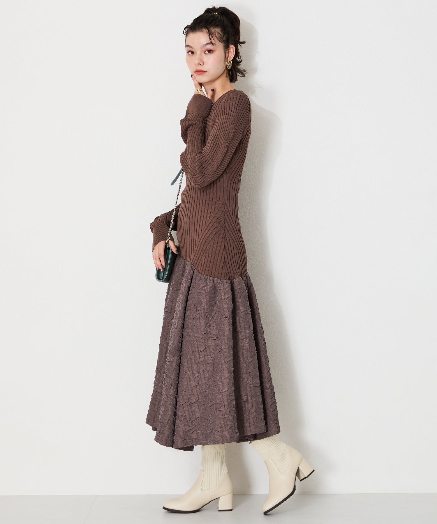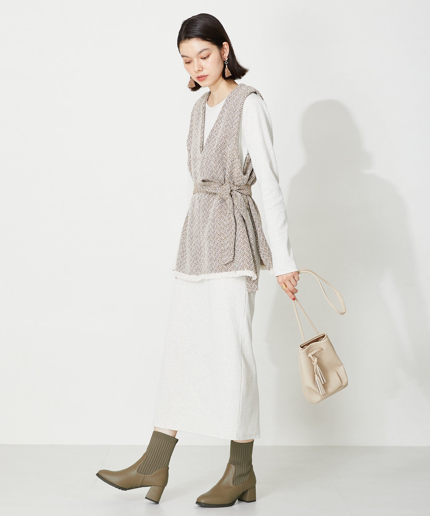 今シーズンのスタイリングには欠かせないニットブーツは履くだけで旬な足元になり大活躍間違いなしの1足。足首周りにニット素材を使用しているので足当たりが良くストレスのない履き心地。細身のスクエアトゥと6㎝のヒールできちんと感がありつつ、ソールを少しゴツゴツさせているので程よくカジュアルダウンし、どんなお洋服にも合わせやすい。落ち着いたカラーリングで大人っぽく決まる。