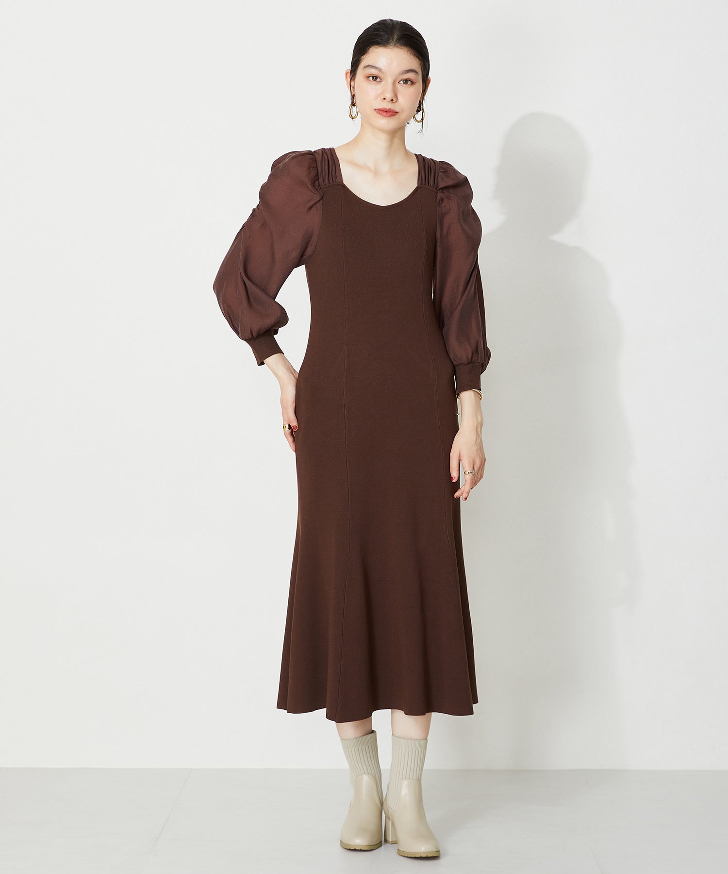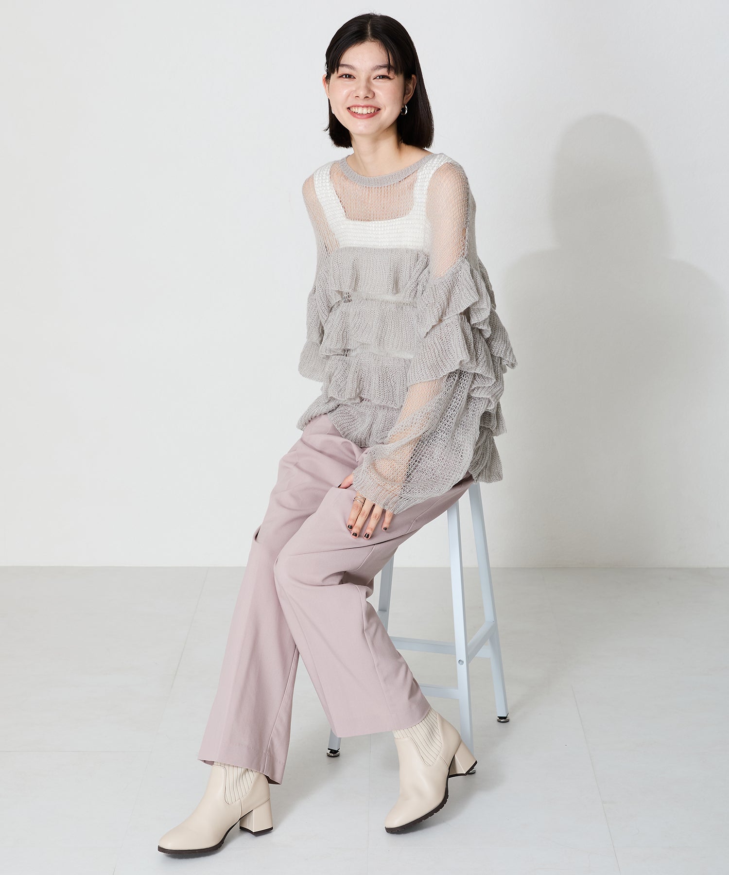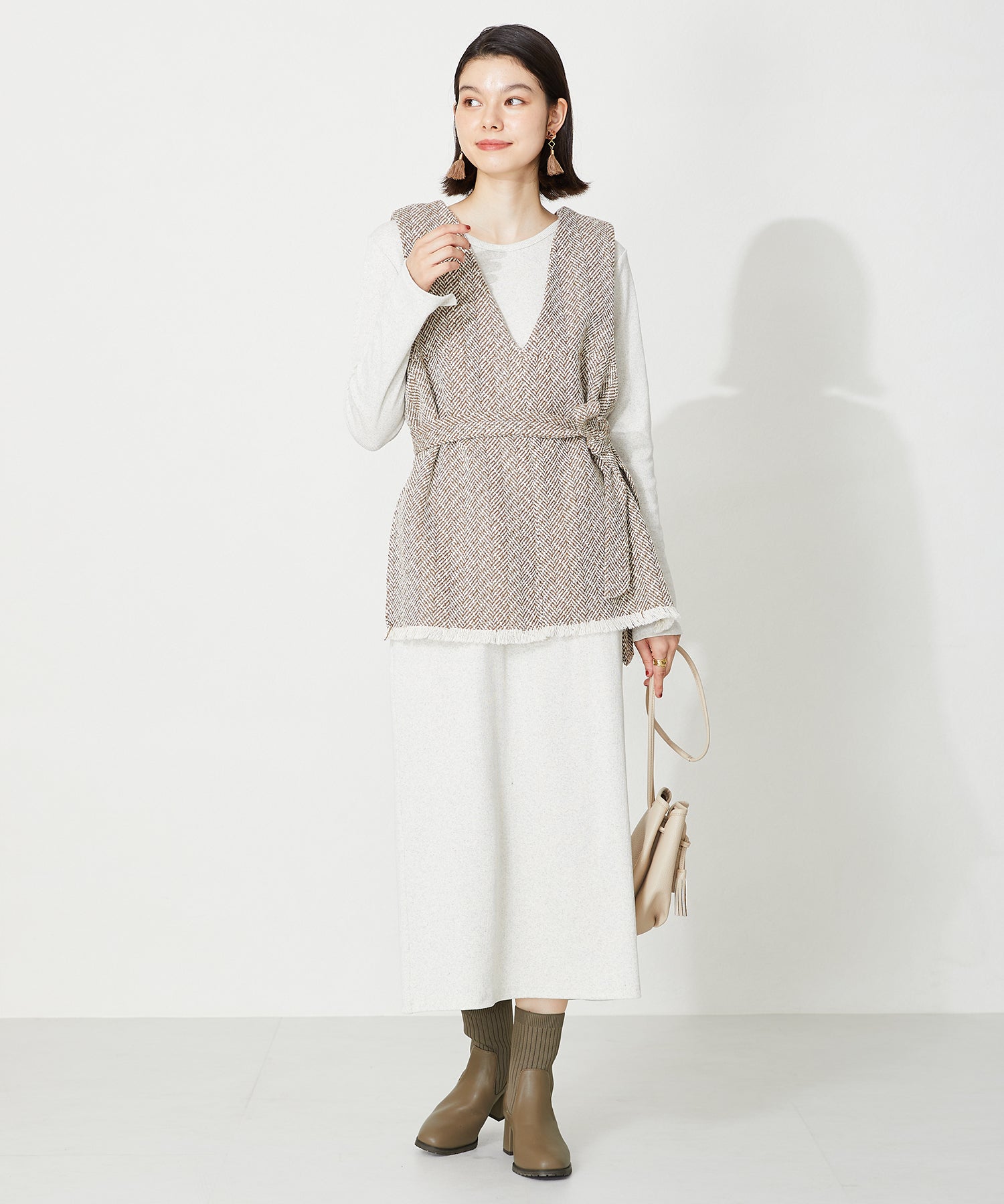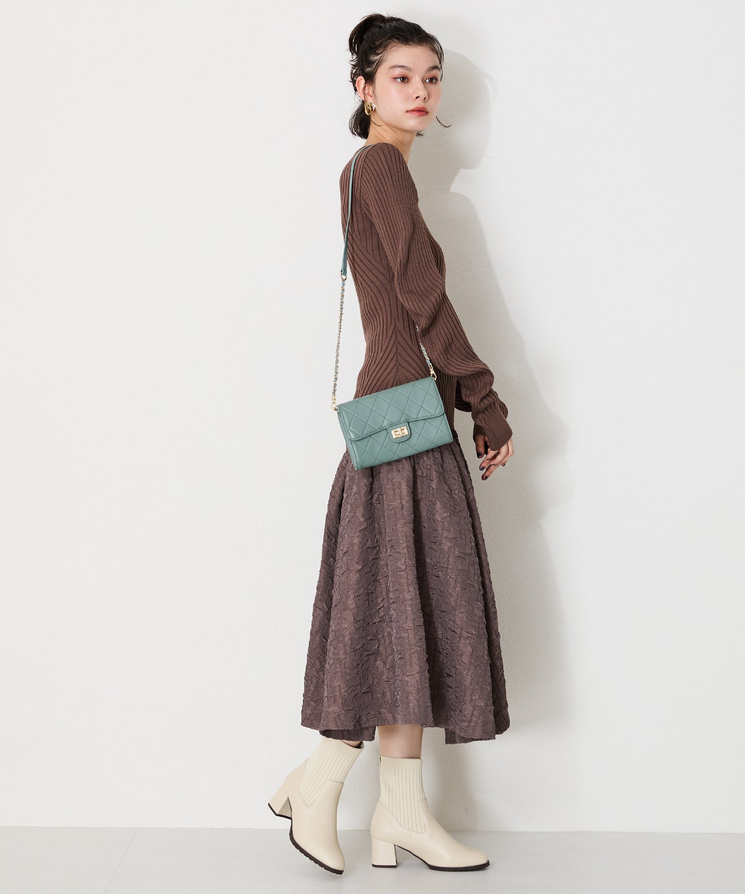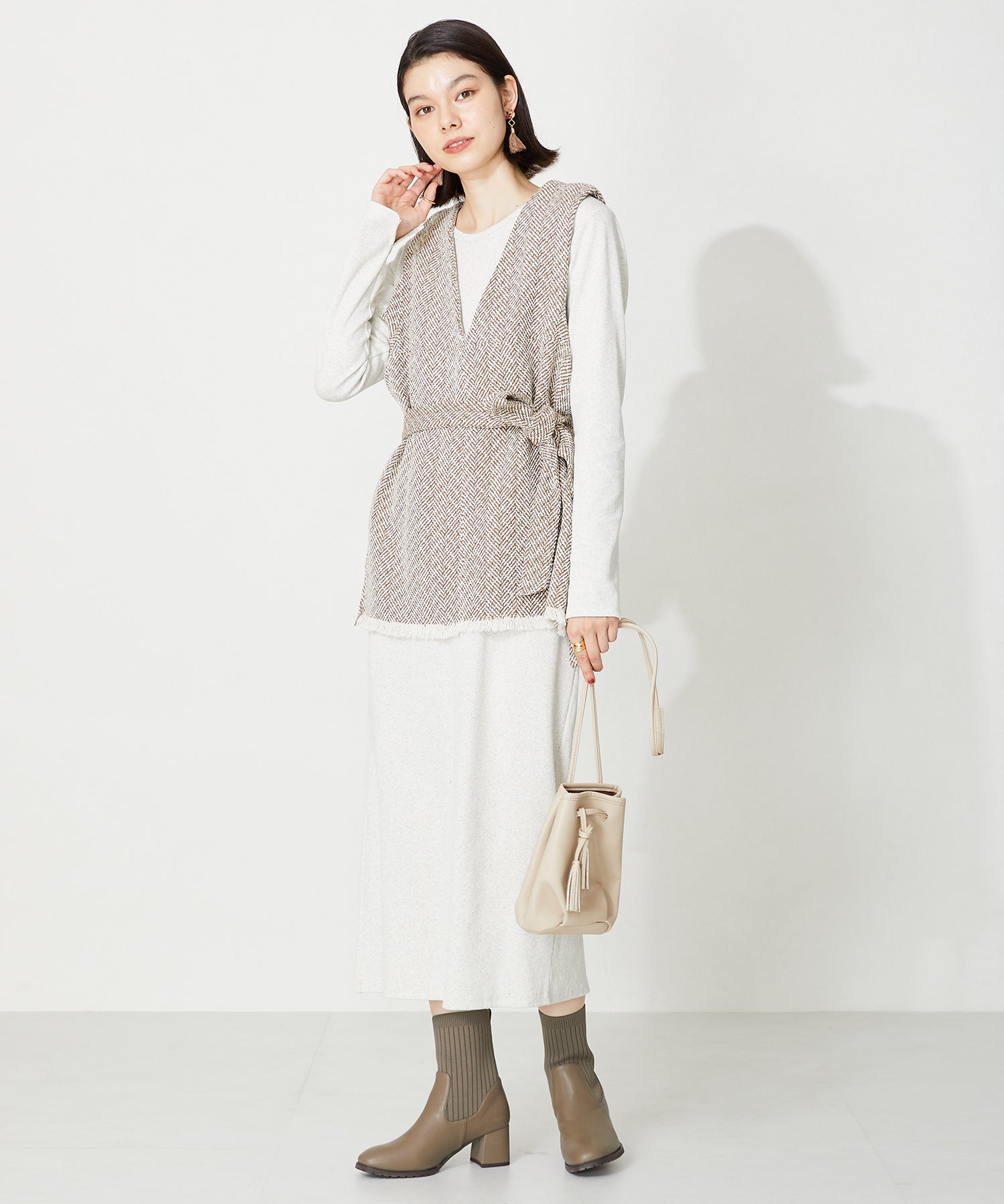 今シーズンのスタイリングには欠かせないニットブーツは履くだけで旬な足元になり大活躍間違いなしの1足。足首周りにニット素材を使用しているので足当たりが良くストレスのない履き心地。細身のスクエアトゥと6㎝のヒールできちんと感がありつつ、ソールを少しゴツゴツさせているので程よくカジュアルダウンし、どんなお洋服にも合わせやすい。落ち着いたカラーリングで大人っぽく決まる。