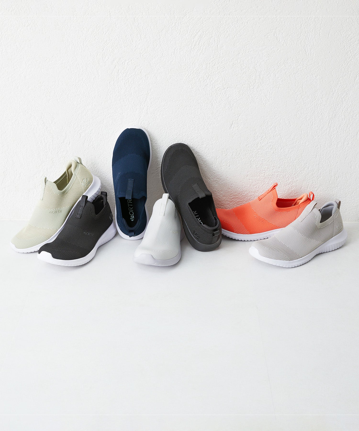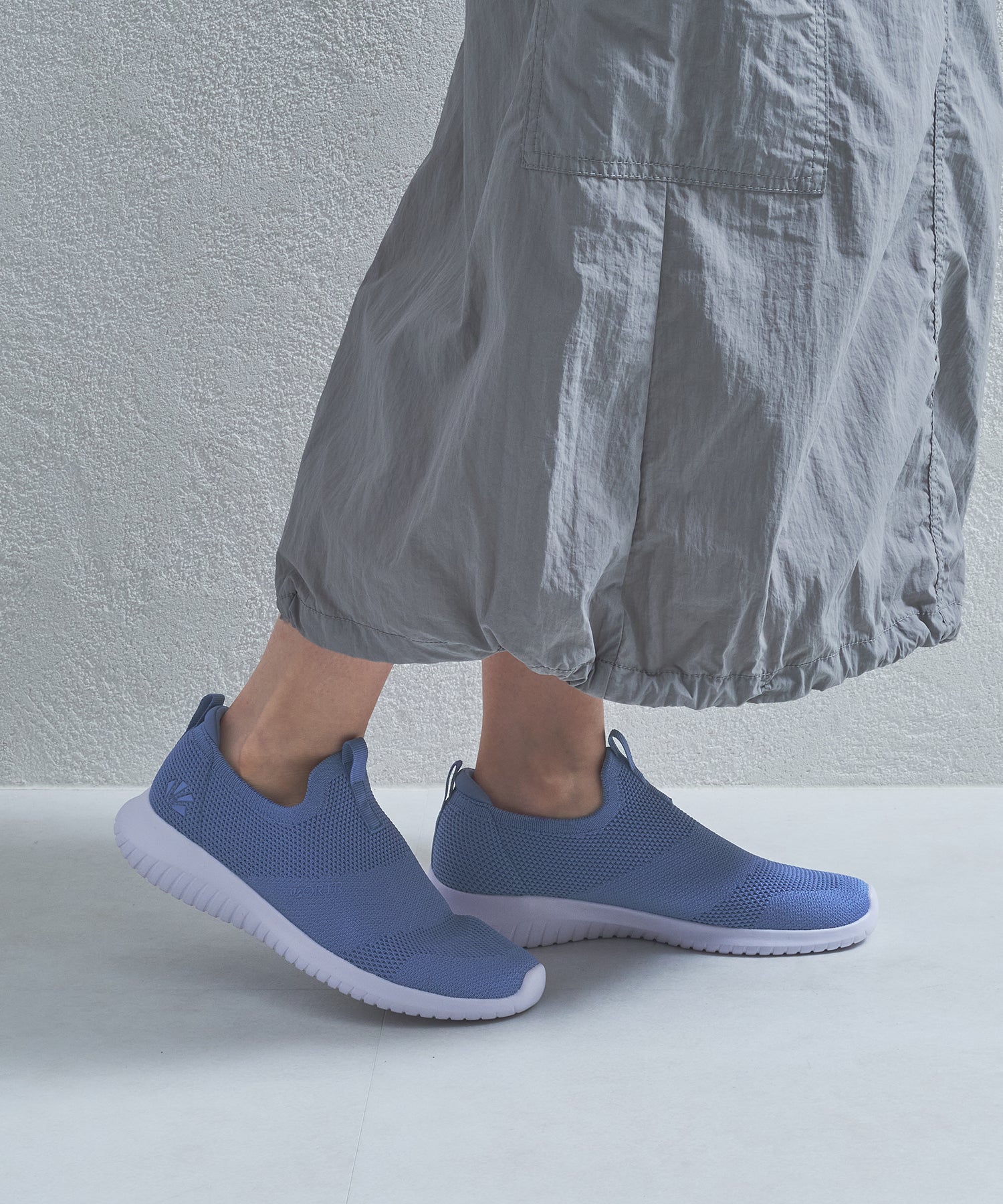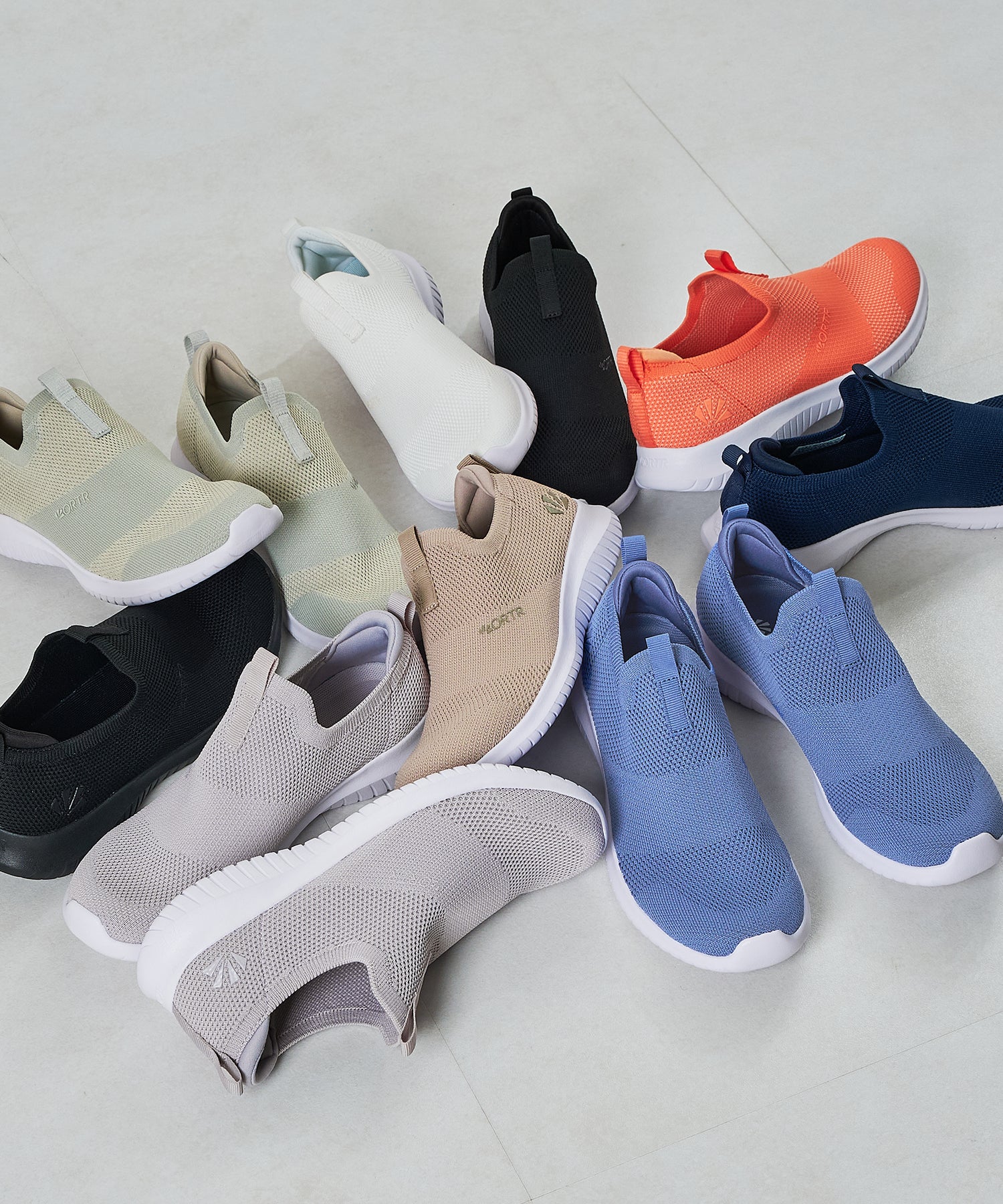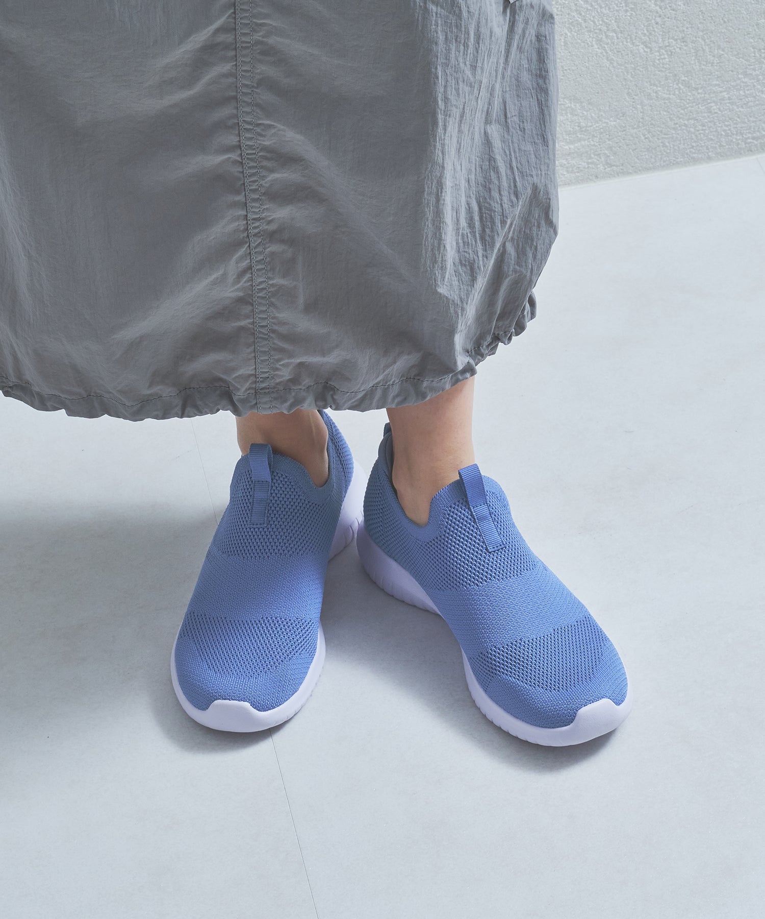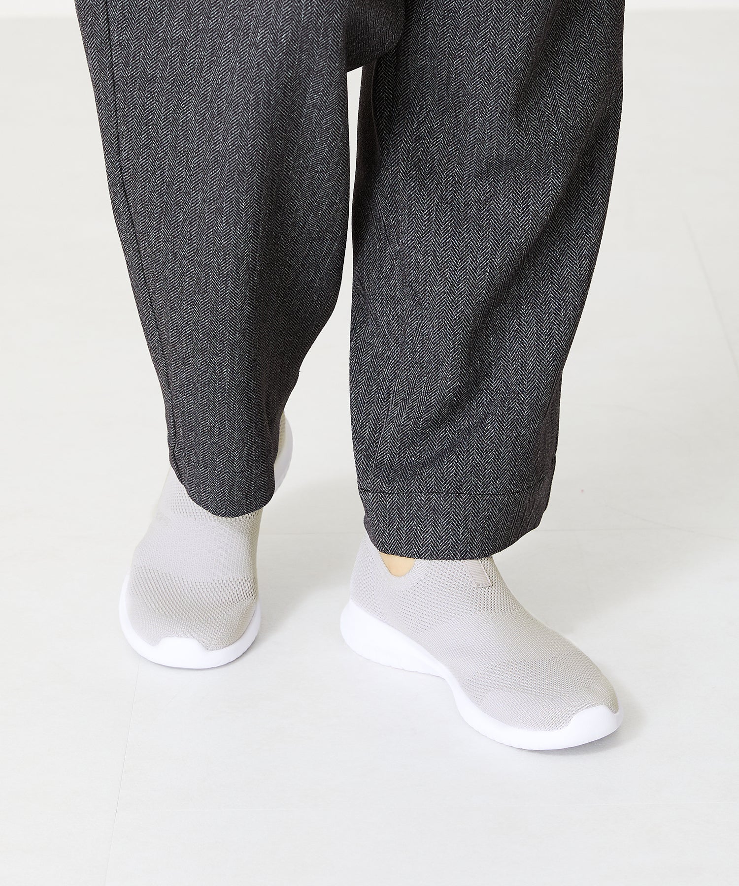 シンプルなデザインでとことん使いやすさにこだわったニットスニーカー。伸縮性のある素材で足当たりが良く、ストレスなく履けるのが嬉しい。ソールは歩きやすいよう返りの良い設計にし、軽量化を実現。お仕事用やタウンユースとしても合わせやすい1足。