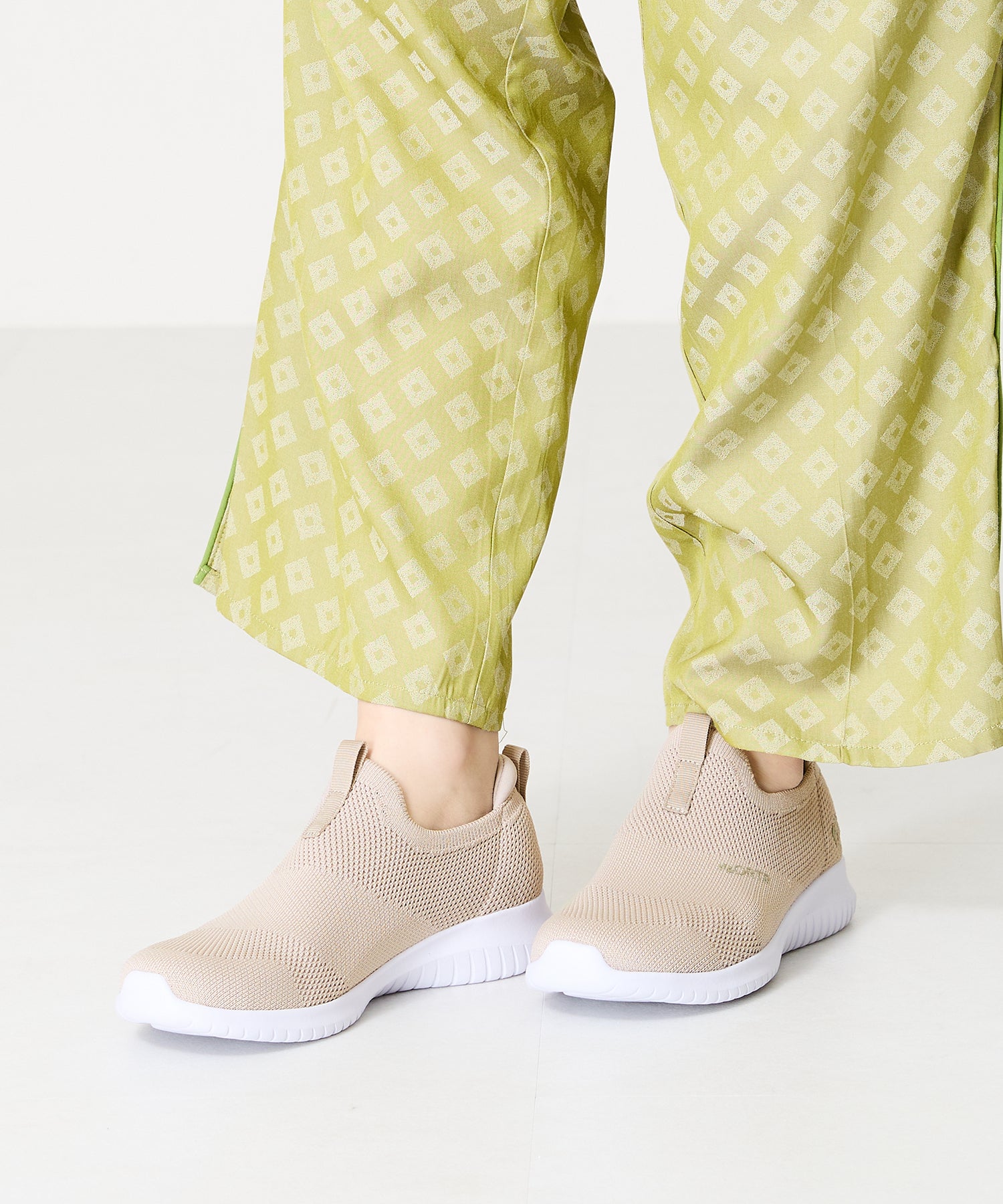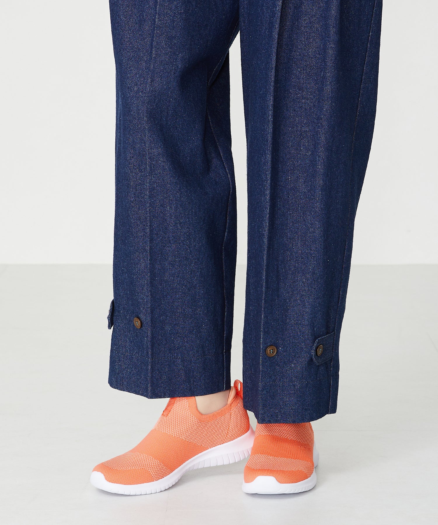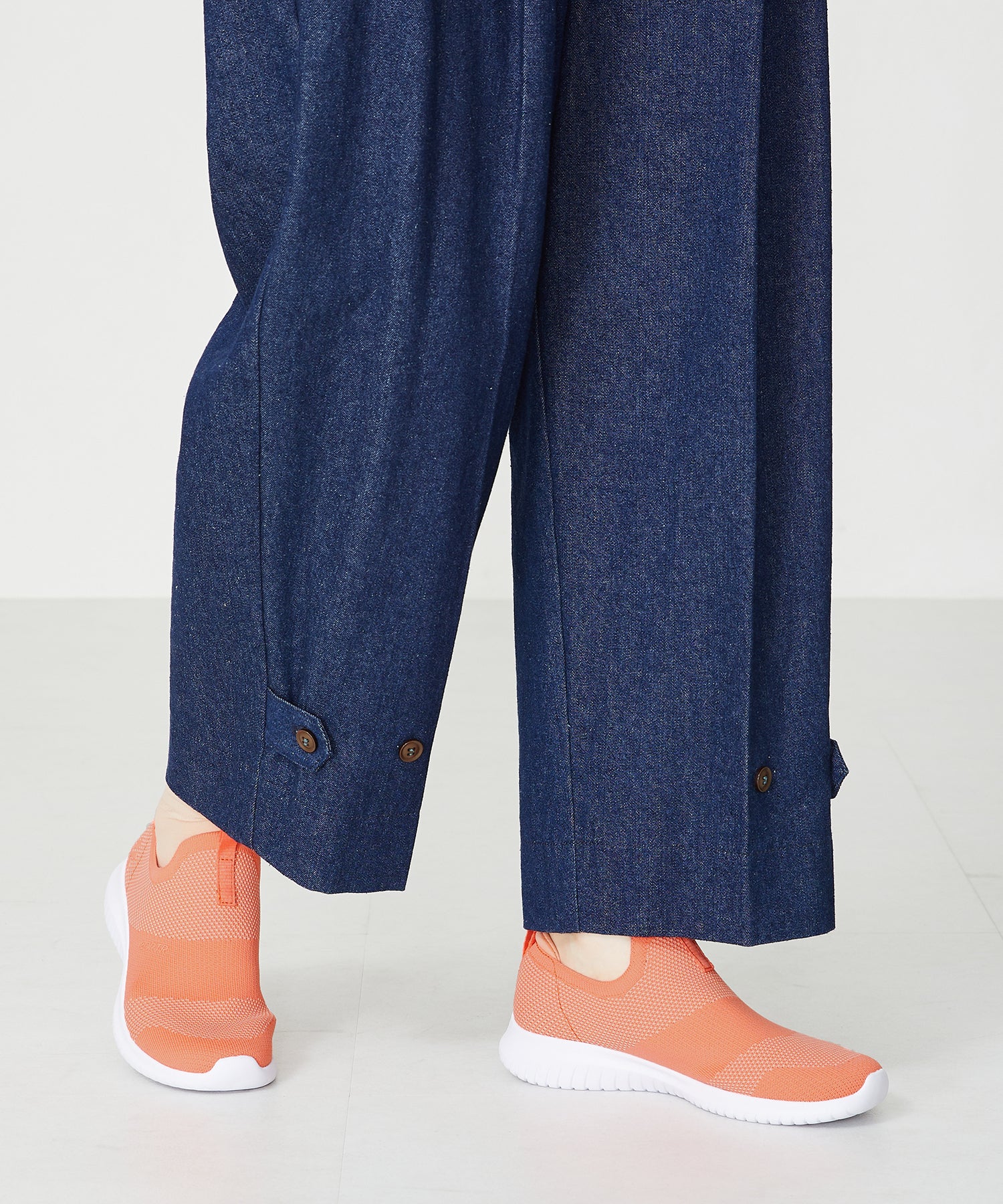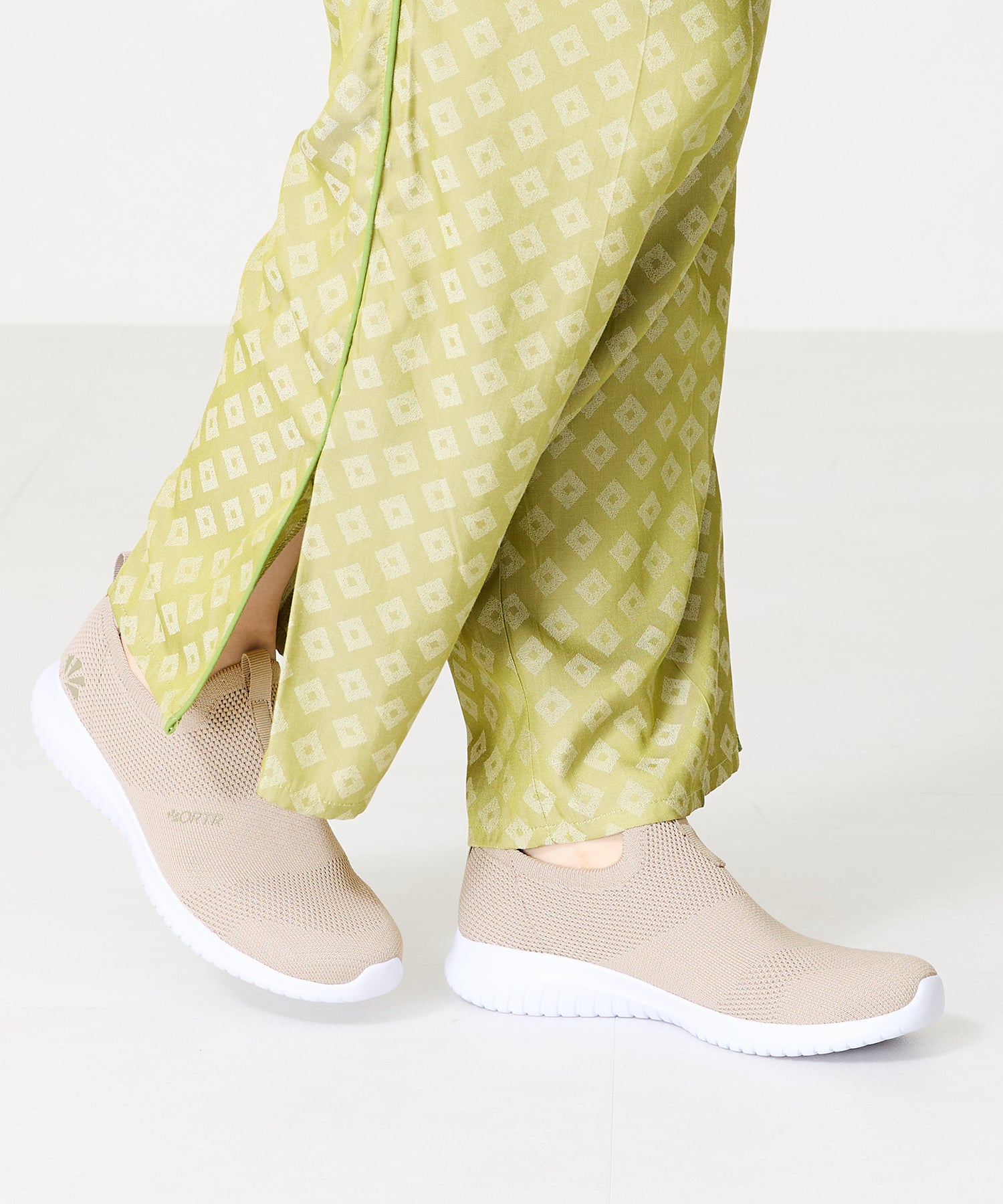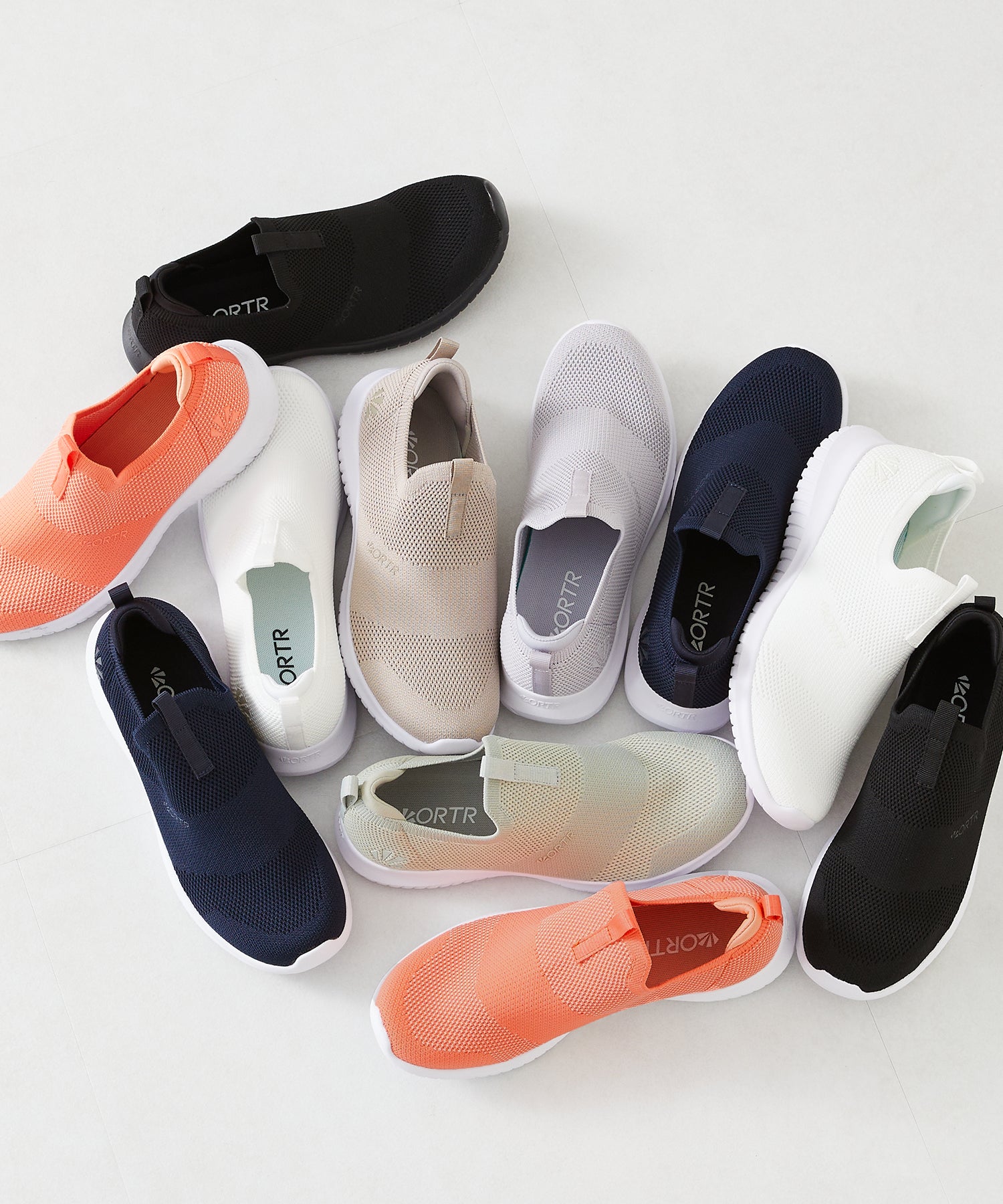 シンプルなデザインでとことん使いやすさにこだわったニットスニーカー。伸縮性のある素材で足当たりが良く、ストレスなく履けるのが嬉しい。ソールは歩きやすいよう返りの良い設計にし、軽量化を実現。お仕事用やタウンユースとしても合わせやすい1足。