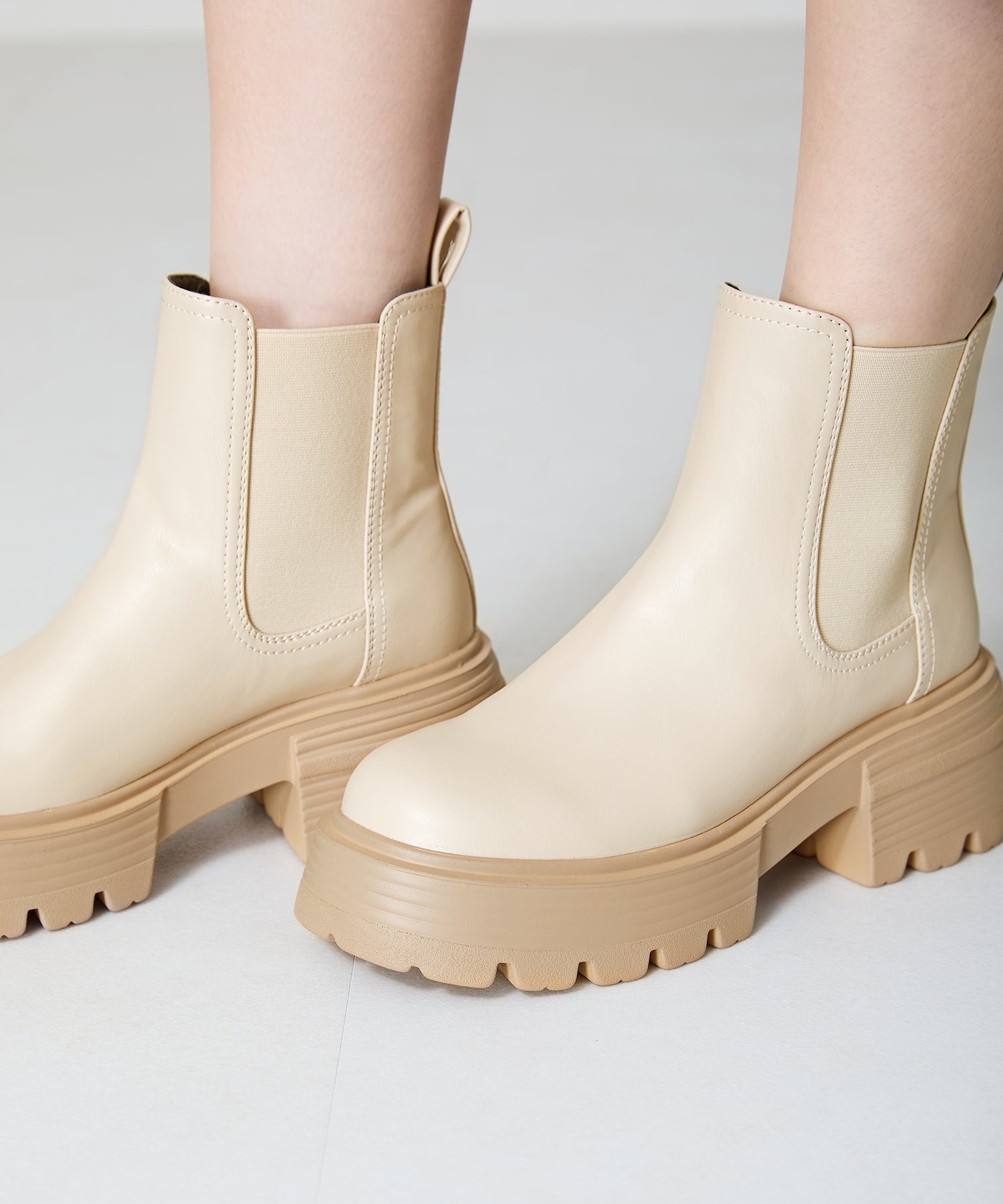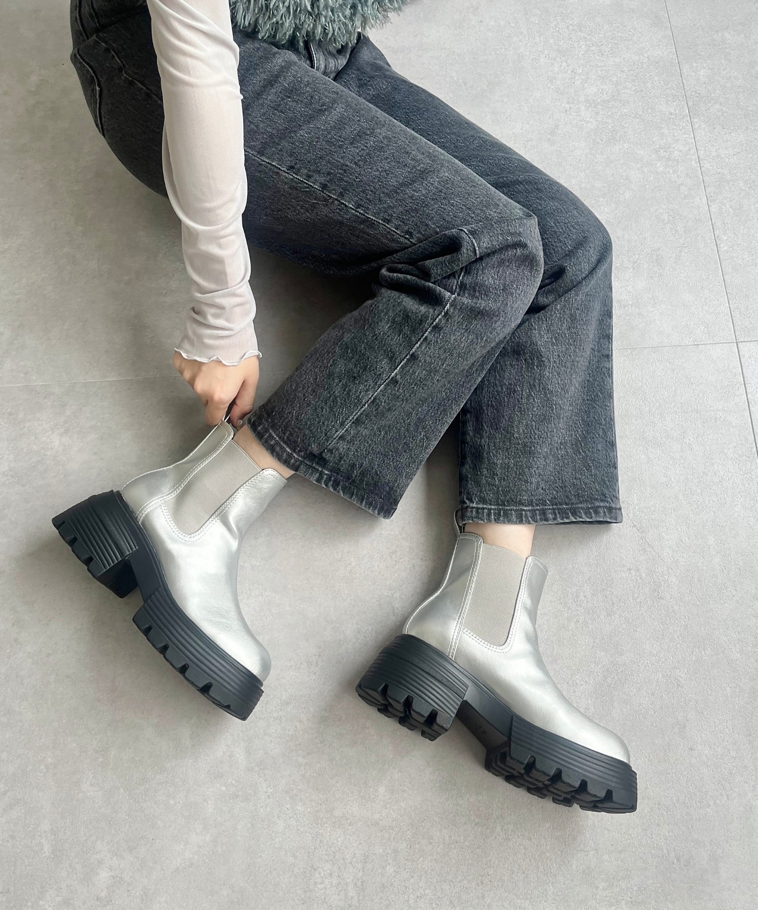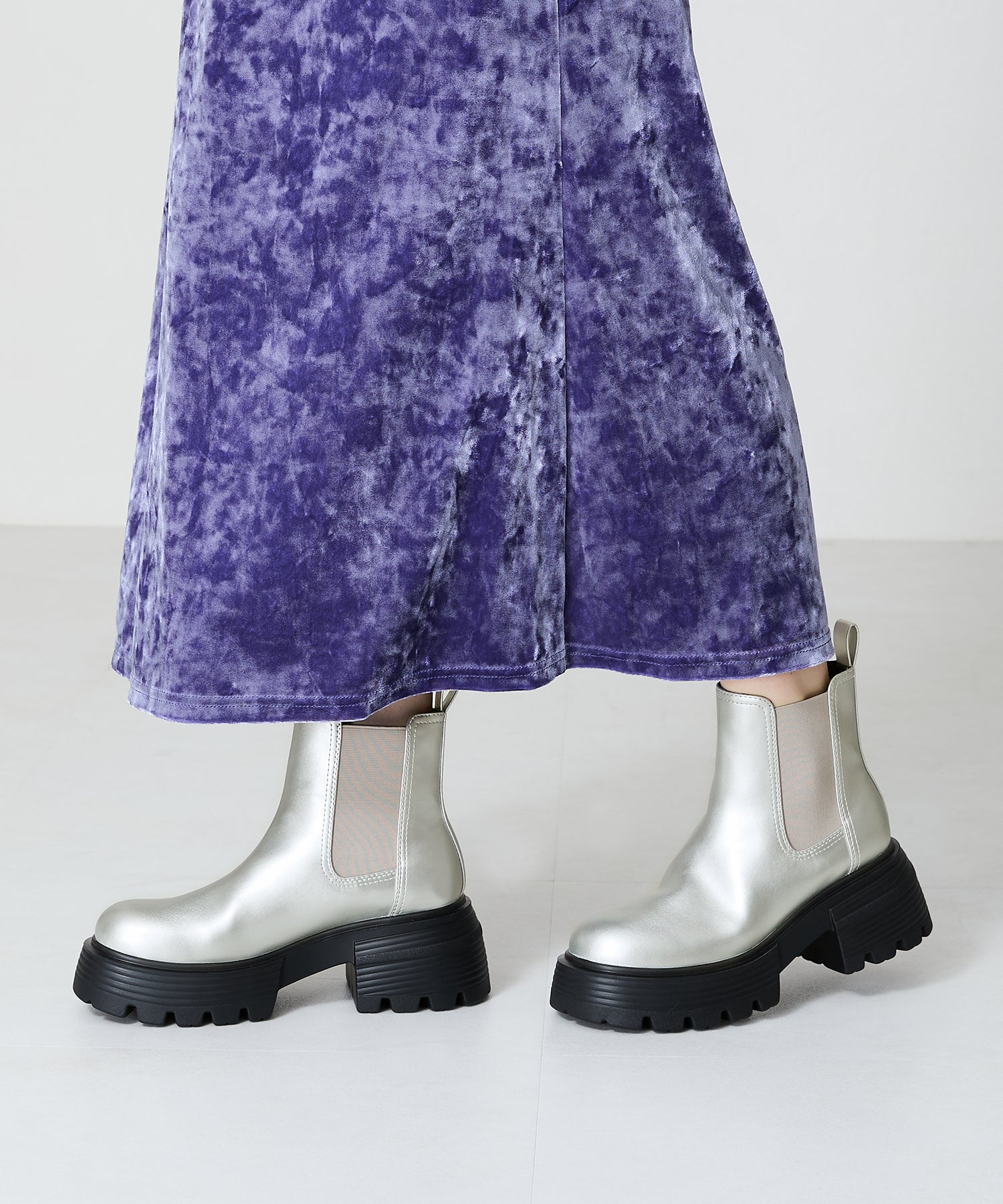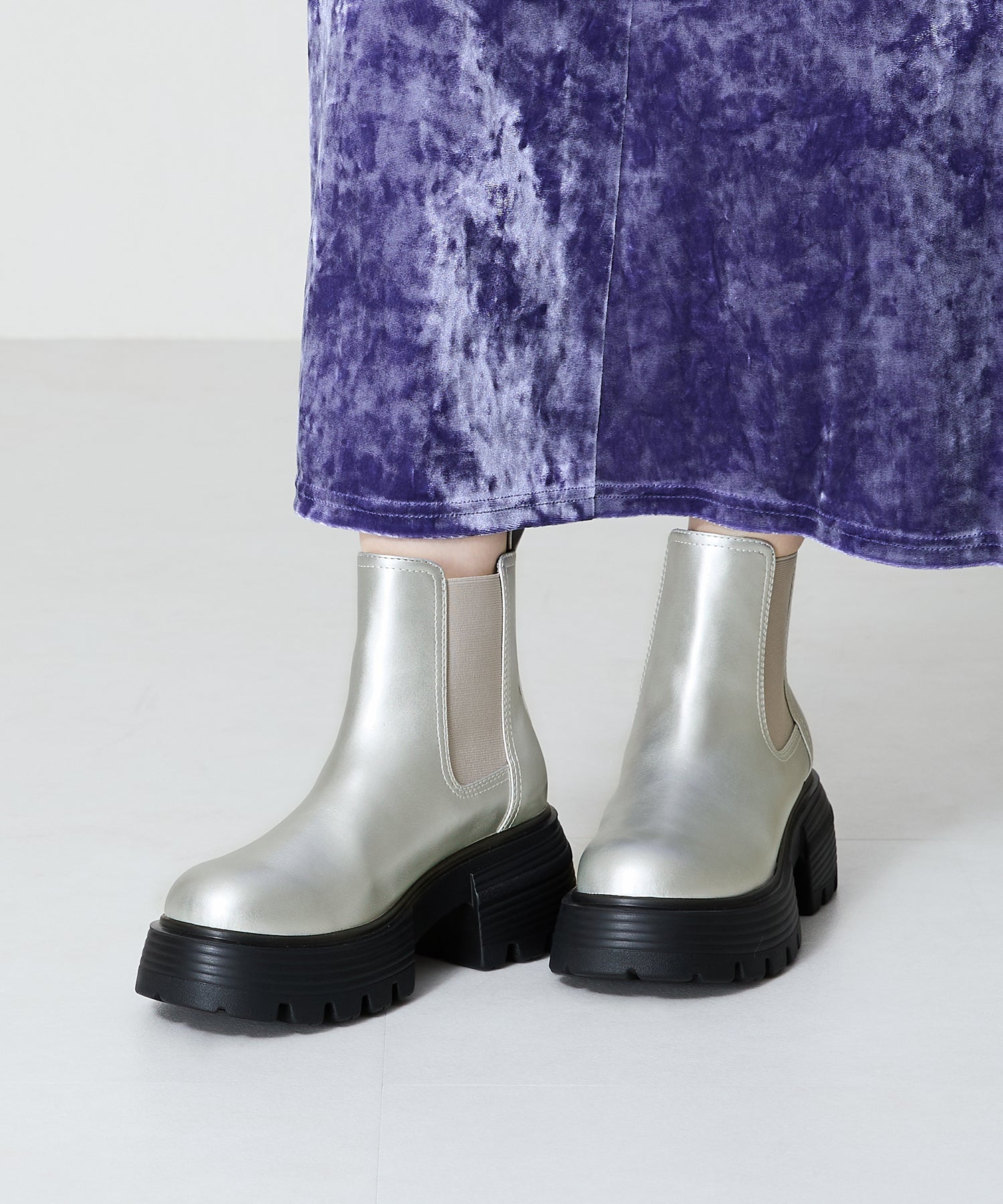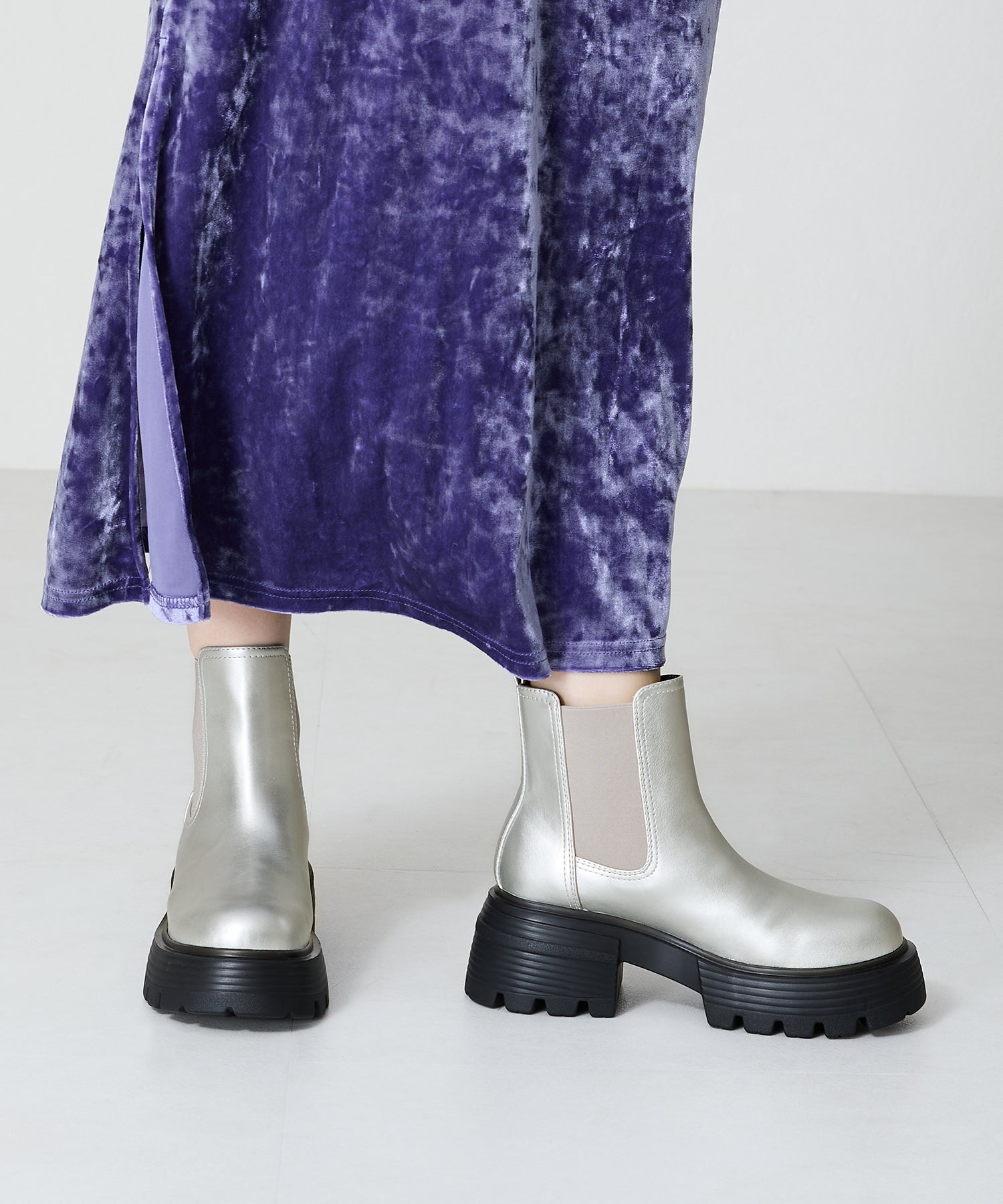 ボリューム感のあるソールとバイカラーの配色が目を引く厚底サイドゴアブーツ。存在感のあるソールは見た目以上に軽量で、高低差も少ないので足に負担がかかりにくく歩きやすい。取り入れるだけでトレンドライクなスタイルが完成する今季マストアイテム。遊び心のあるブラック×パープルはコーディネートが楽しくなるカラーリングでカジュアルコーデのアクセントにぴったり。
