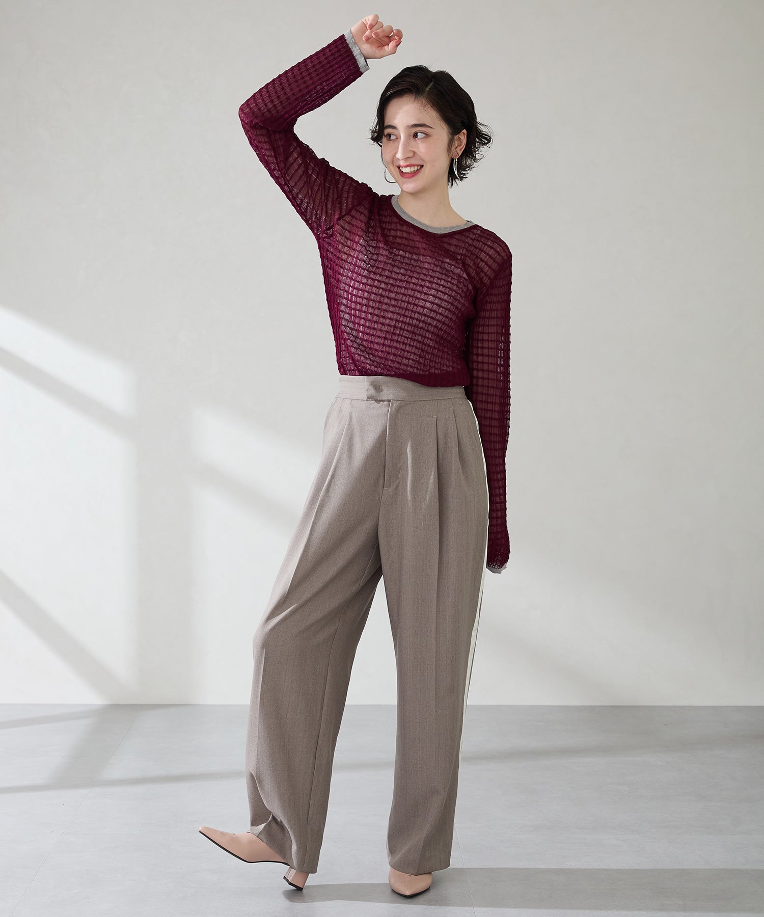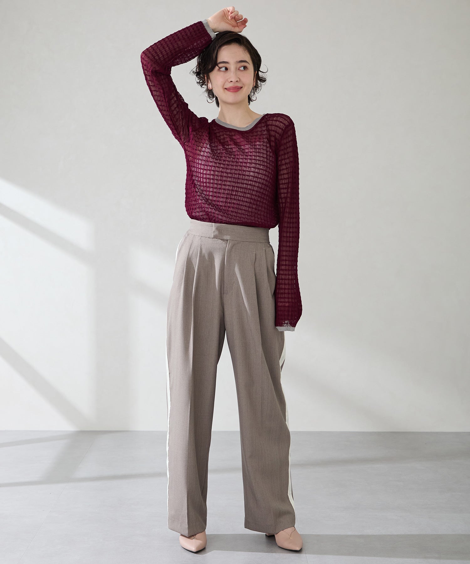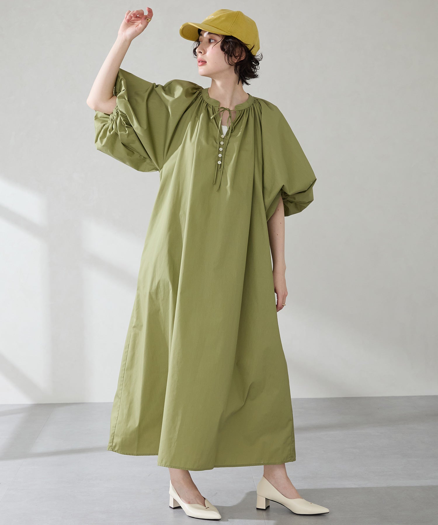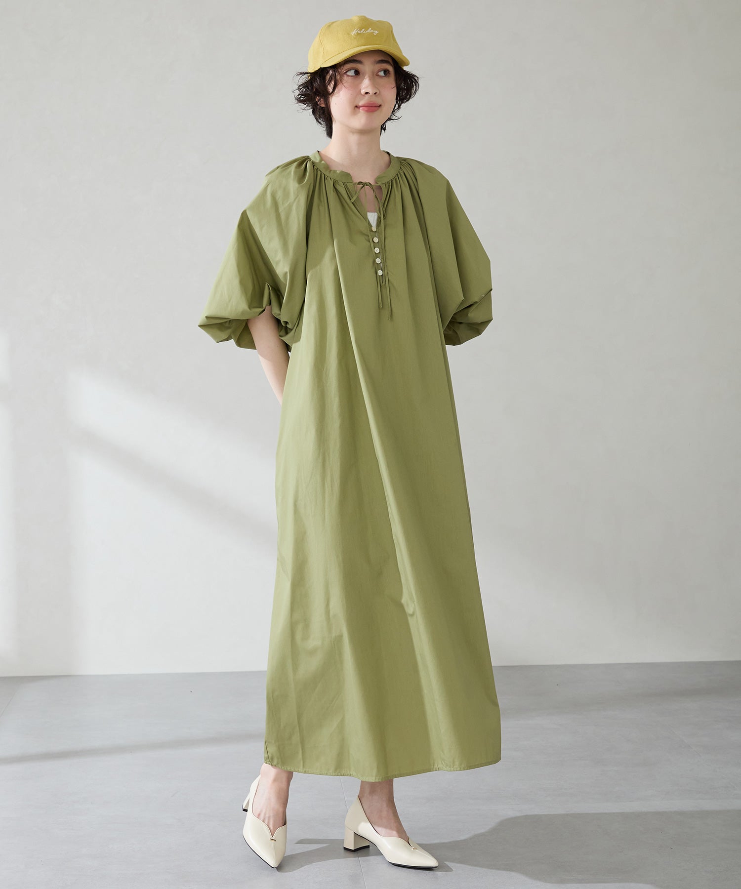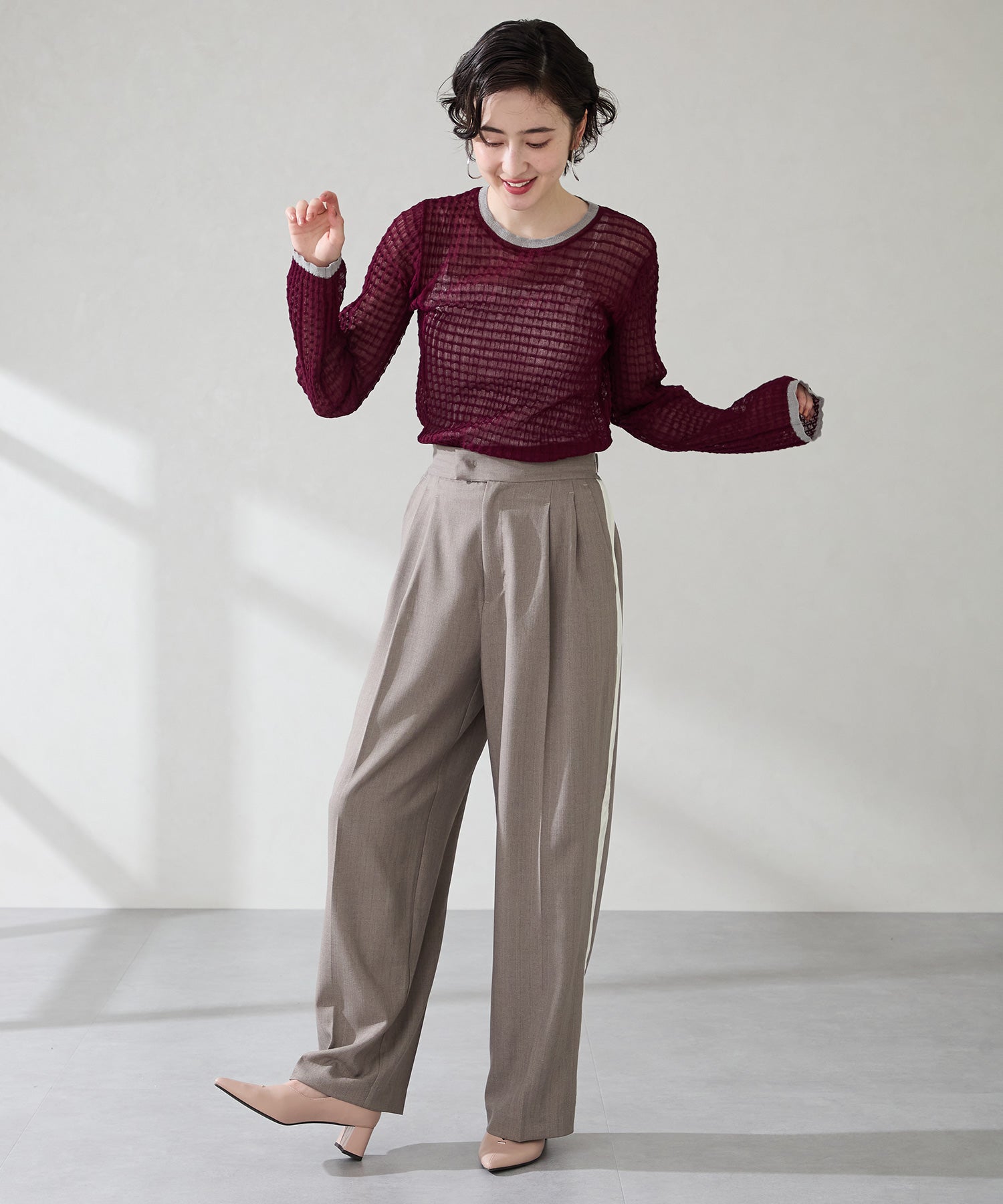 Vカットの履き口が足元をすっきりと見せてくれる美脚パンプス。アッパーのゴールドパーツがシンプルながらもさりげなくアクセントに。程よい高さのチャンキーヒールで歩きやすさと美しいシルエットを両立し、デイリーからオフィススタイルにマッチ。淡いベーシックなカラーリングとディテールにこだわったデザインが、日常のスタイリングを格上げしてくれるアイテム。