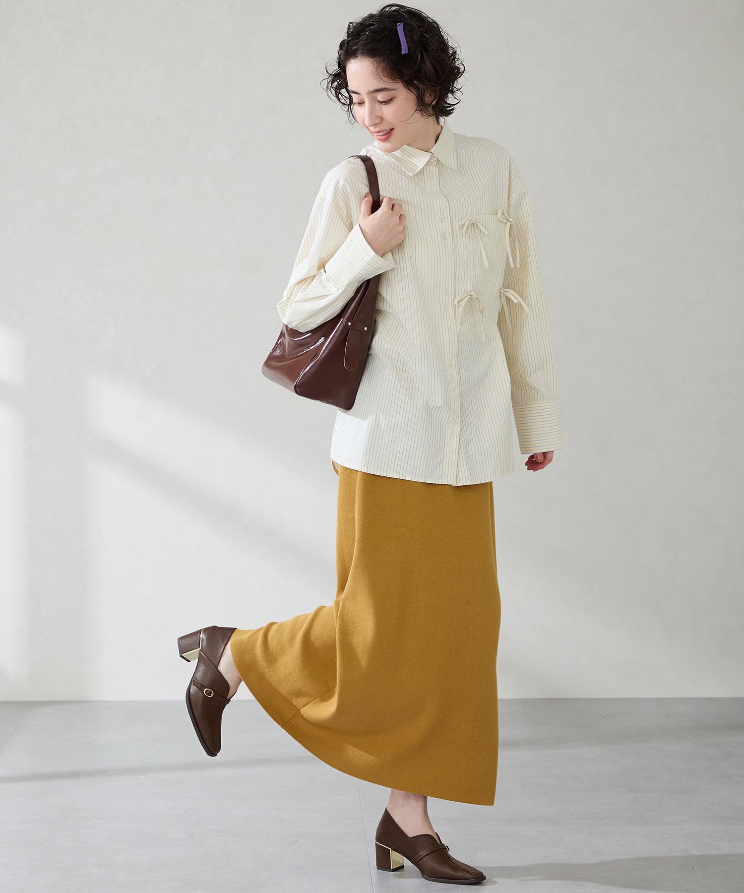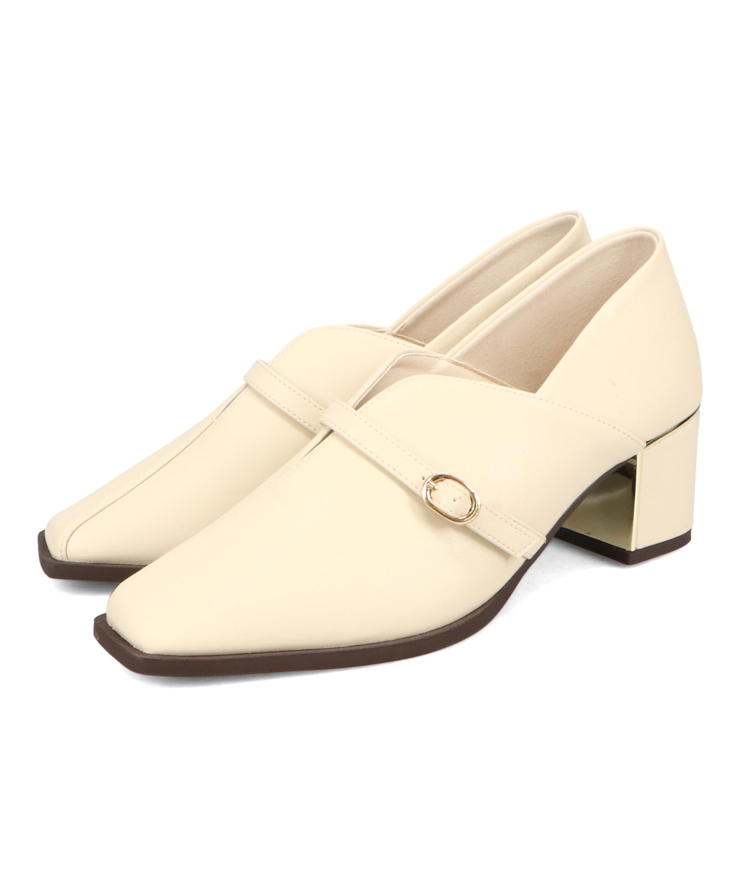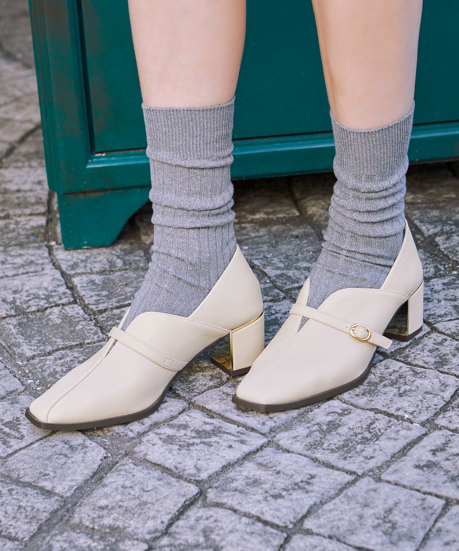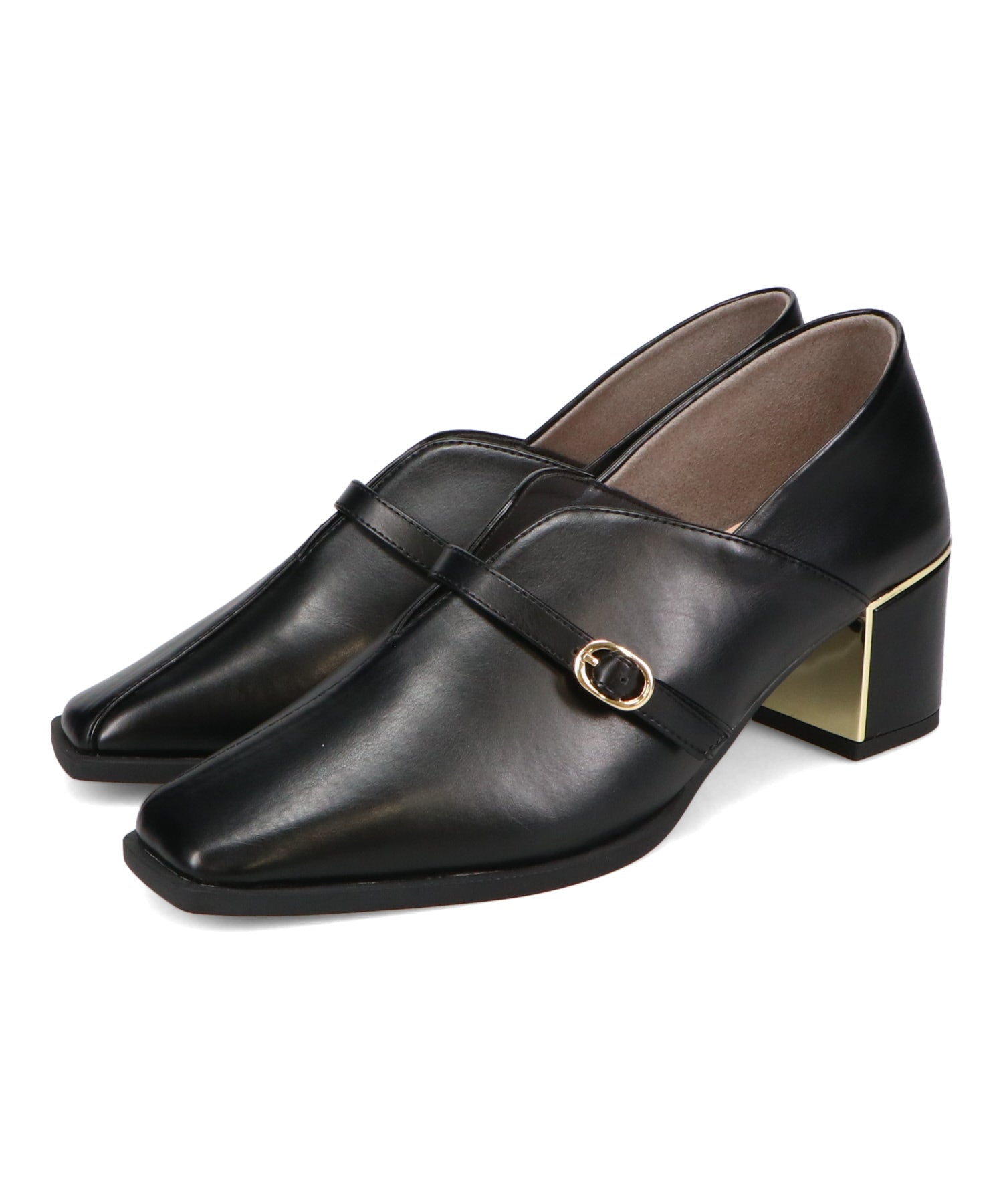 シャープなスクエアトゥと甲のカットラインが足元に抜け感を出し、ソールに付けたコバデザインでモードな雰囲気を纏った1足。太めのヒールで安定感もありつつ、ゴールドのメタリックラインがワンポイントになり、高級感を演出。脱ぎ履きが簡単な踵を踏んでも履けるバブーシュタイプで、2wayで使える優れもの。細めの甲ベルトが足元を引き締め、スタイルアップも◎。