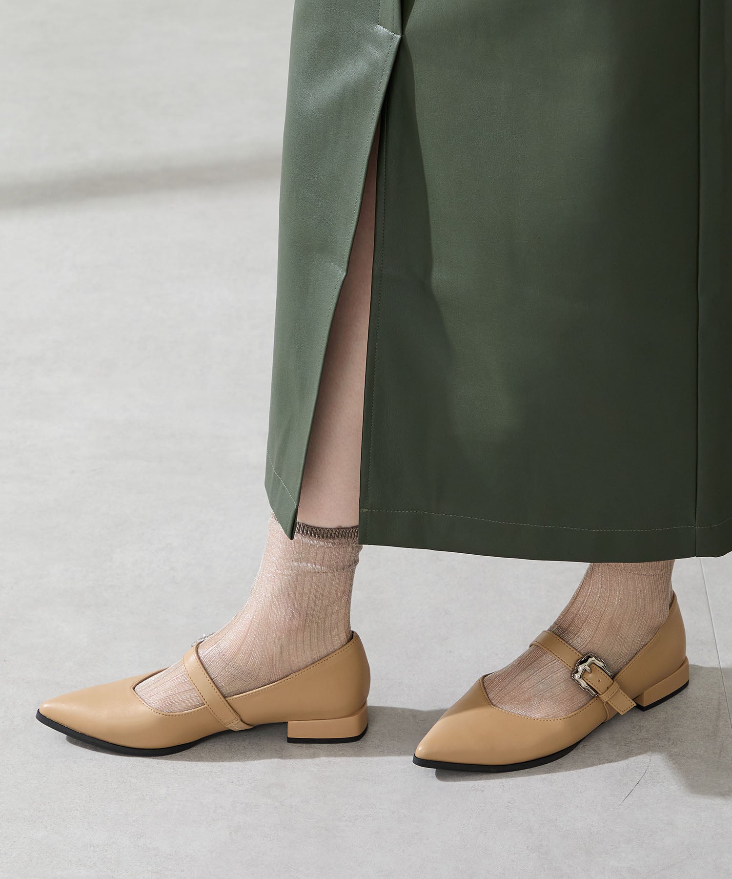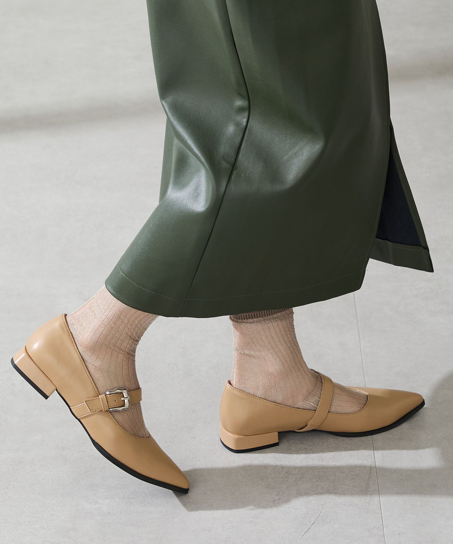 ウエスタンバックルポインテッドパンプス/51327 - ベージュ / 34/22.0cm