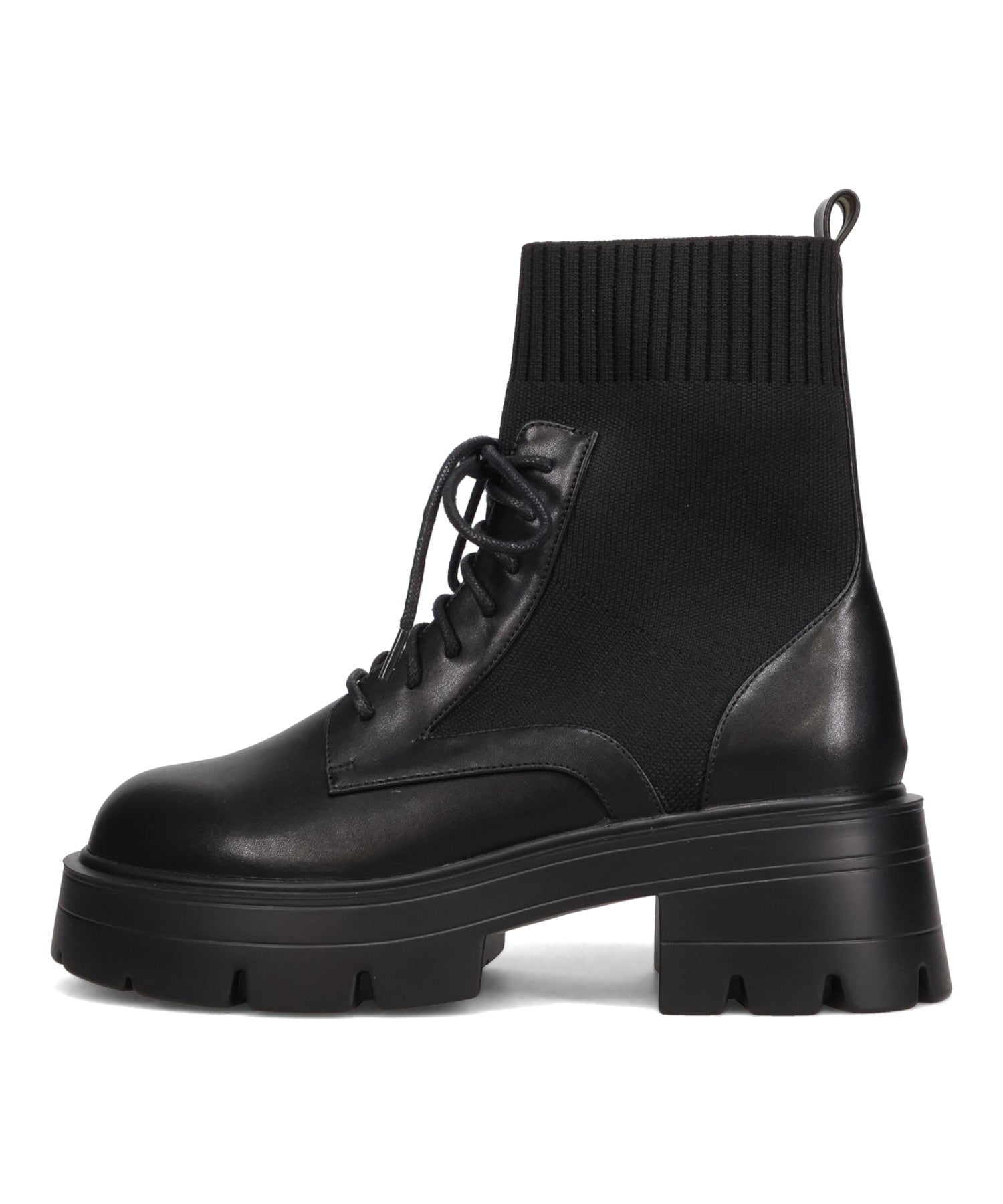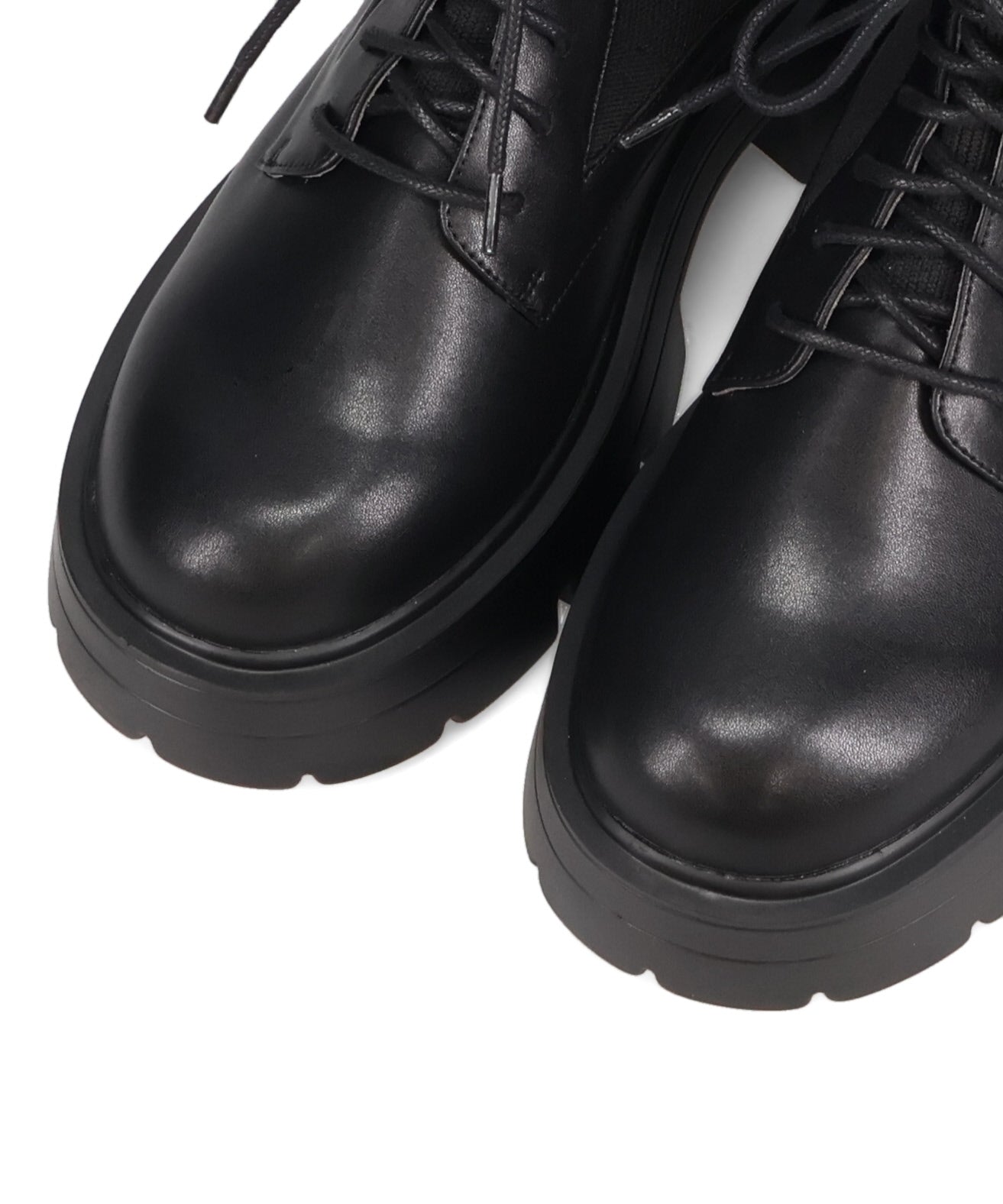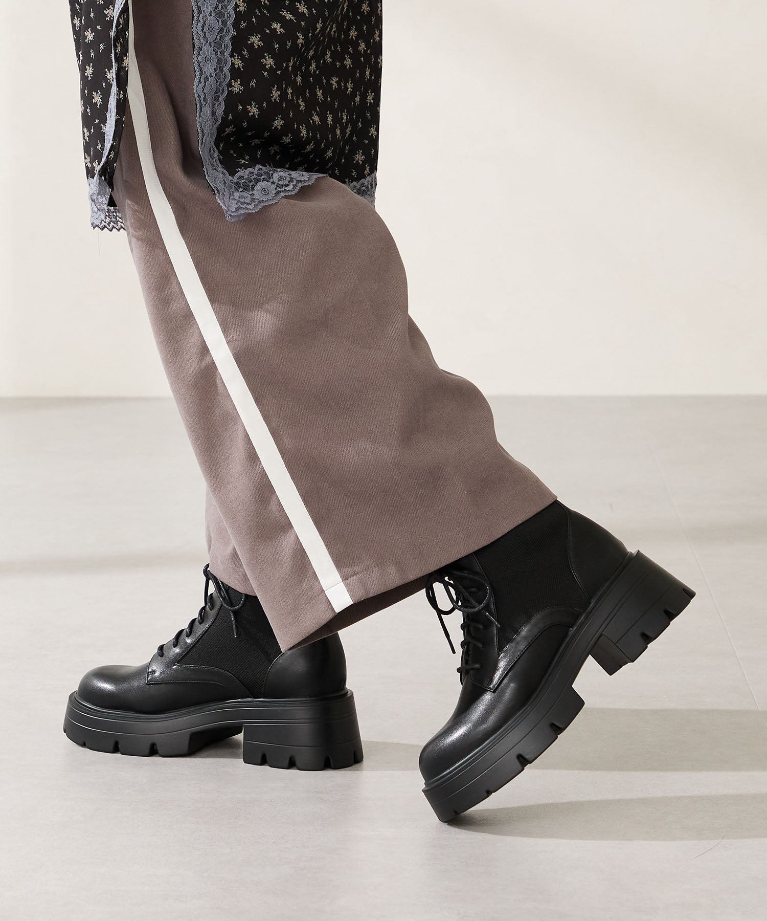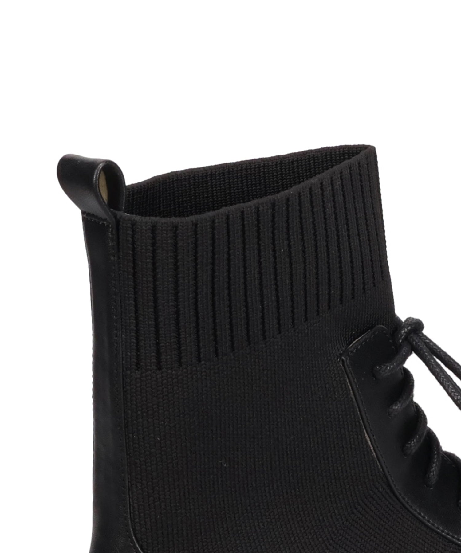 レースアップ×ニットでとことんカジュアルに仕上げたブーツ。厚みのあるソールが脚をすっきりと見せてくれ、筒まわりには伸縮性のあるリブニットを使用することで、着脱のしやすさと快適な履き心地をサポート。ボリュームのあるデザインながら見た目以上に軽く、コロンとしたラウンドトゥが幅広いスタイルに合わせやすいので、この冬重宝しそう。