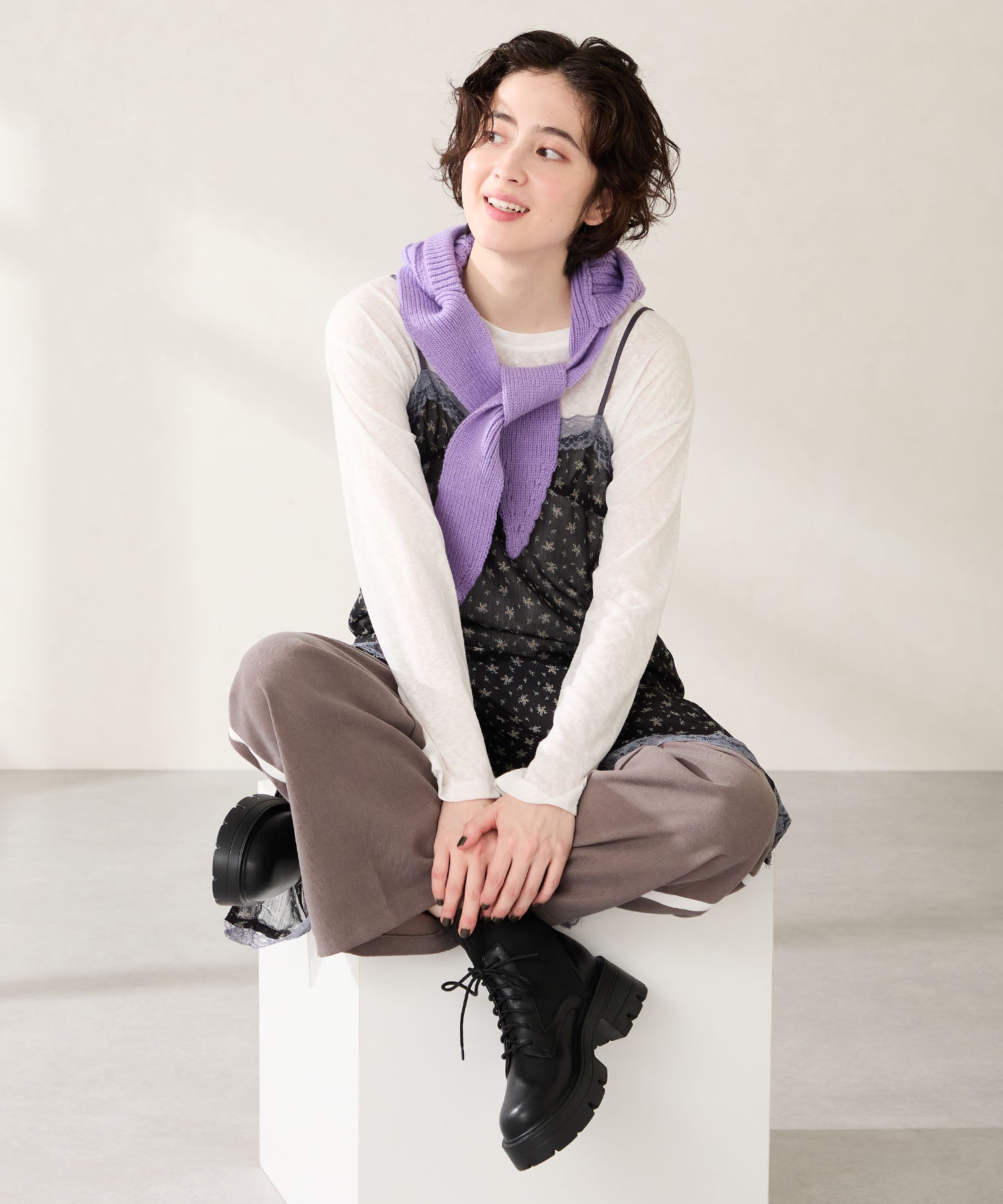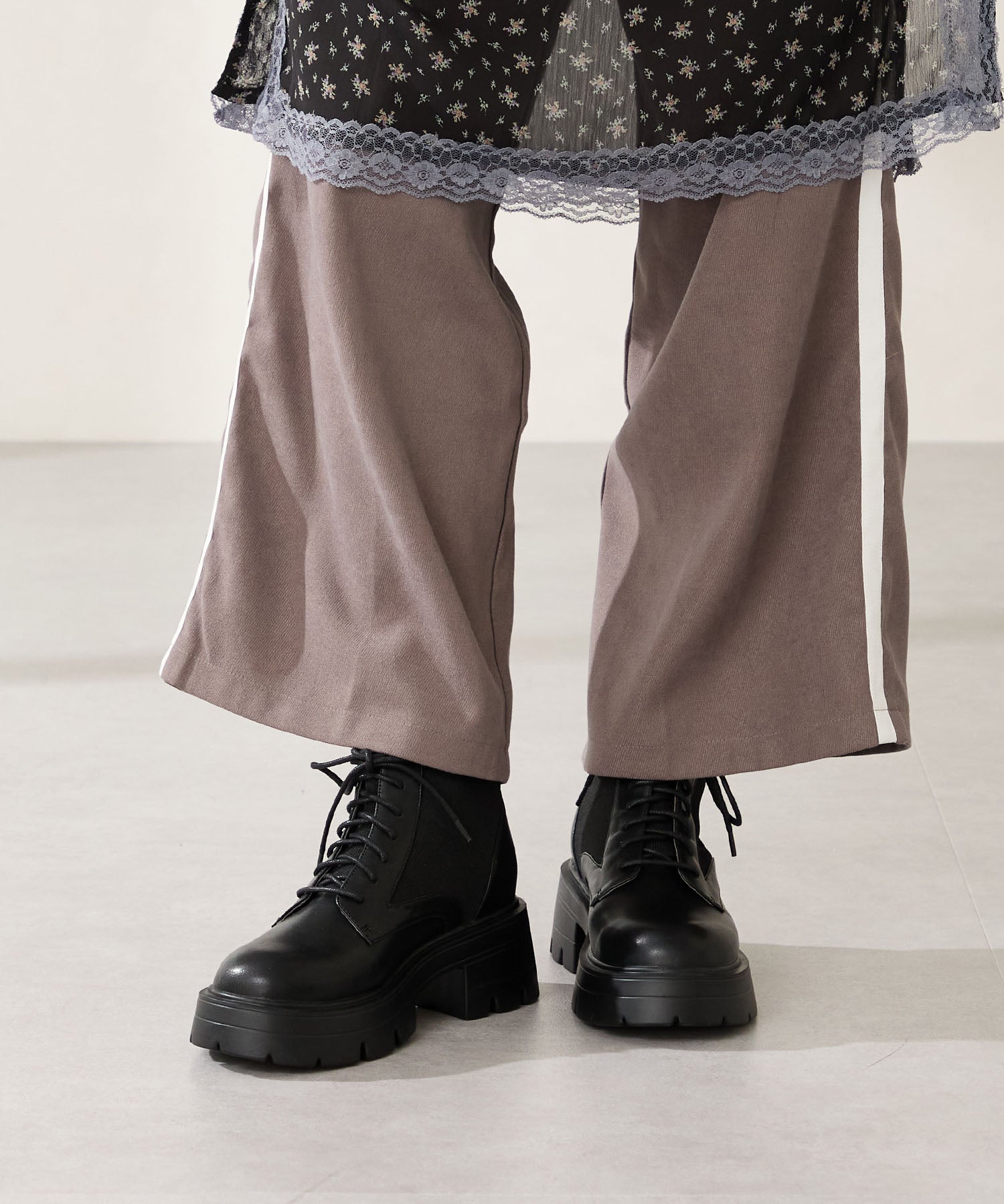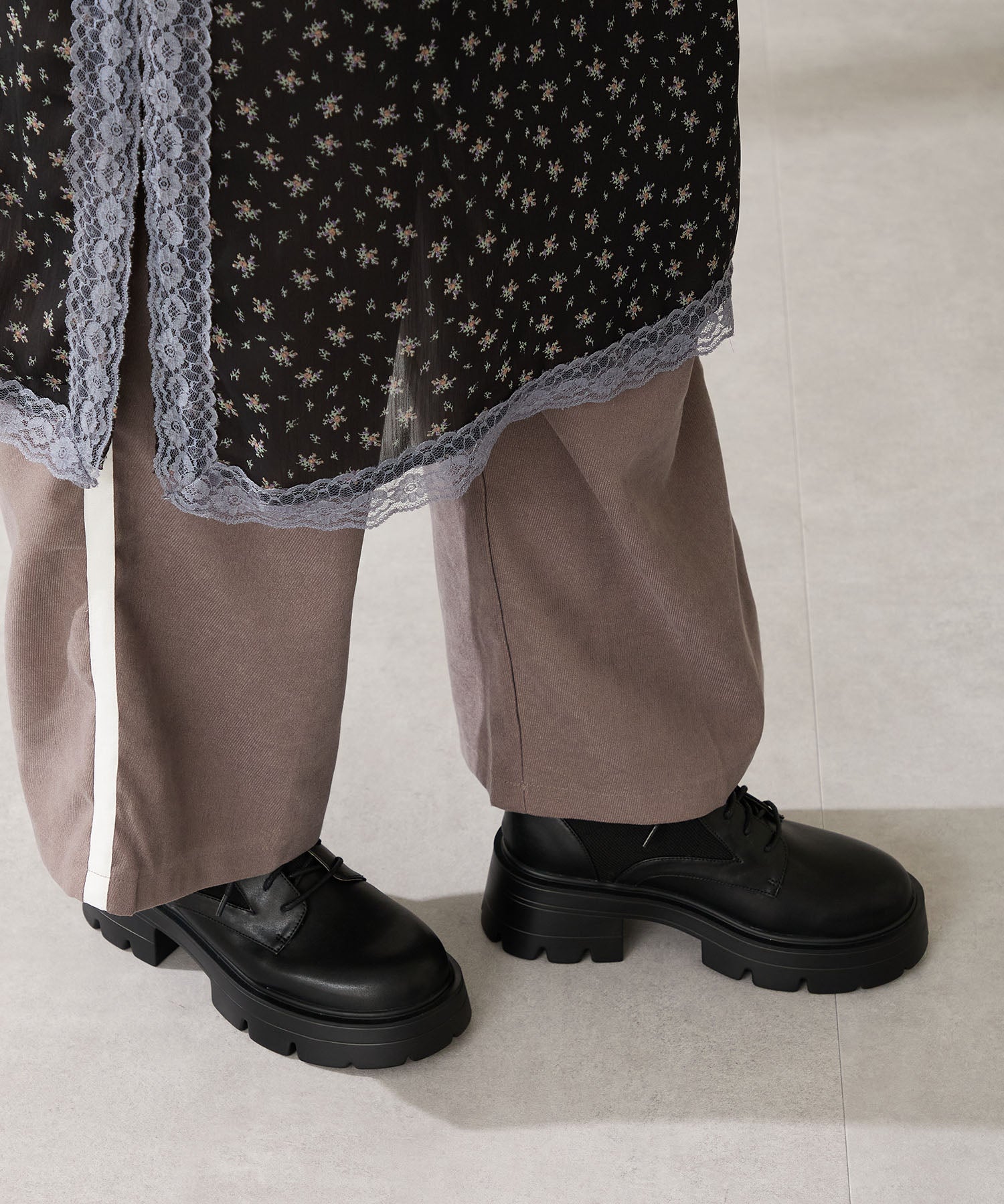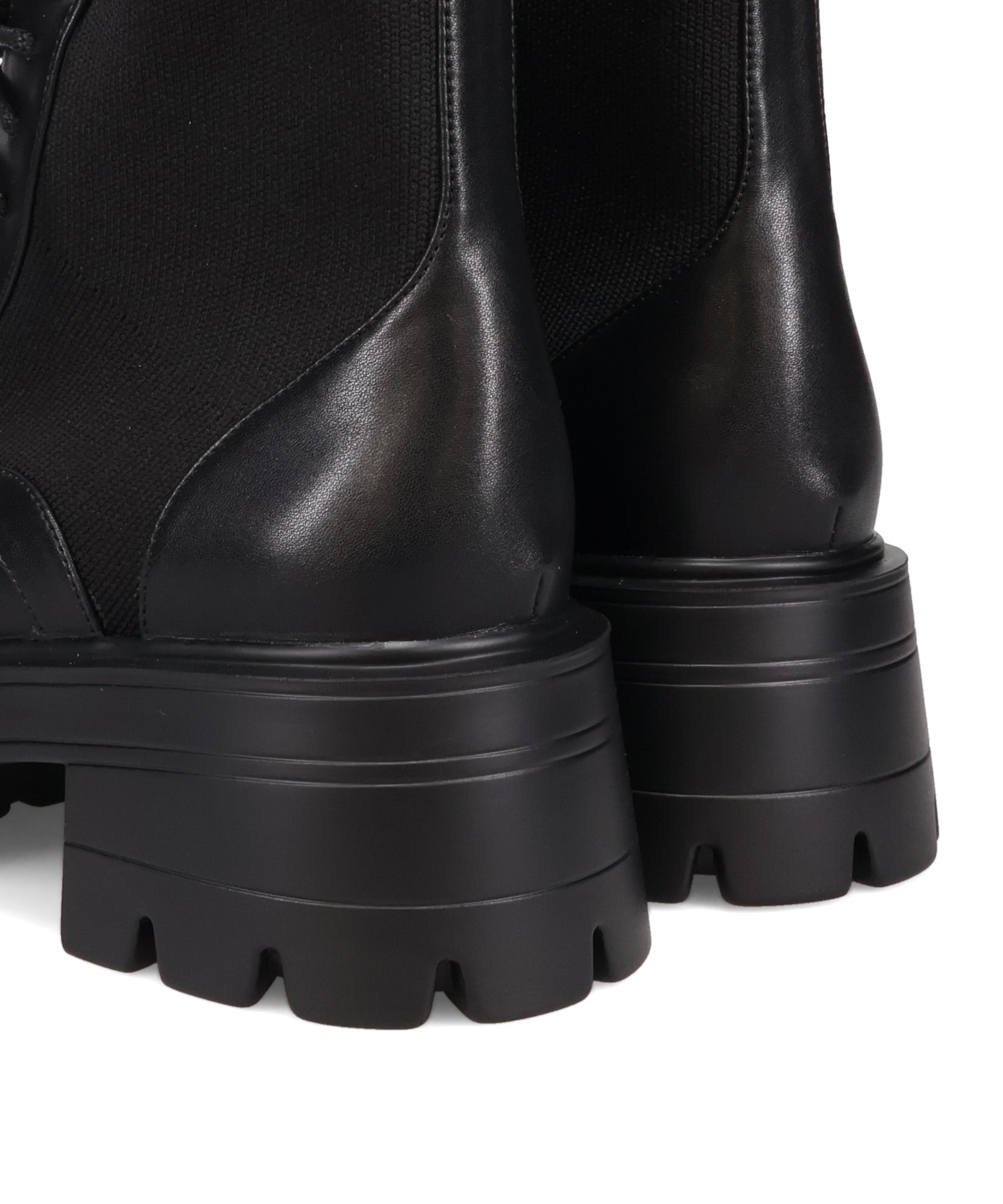 レースアップ×ニットでとことんカジュアルに仕上げたブーツ。厚みのあるソールが脚をすっきりと見せてくれ、筒まわりには伸縮性のあるリブニットを使用することで、着脱のしやすさと快適な履き心地をサポート。ボリュームのあるデザインながら見た目以上に軽く、コロンとしたラウンドトゥが幅広いスタイルに合わせやすいので、この冬重宝しそう。