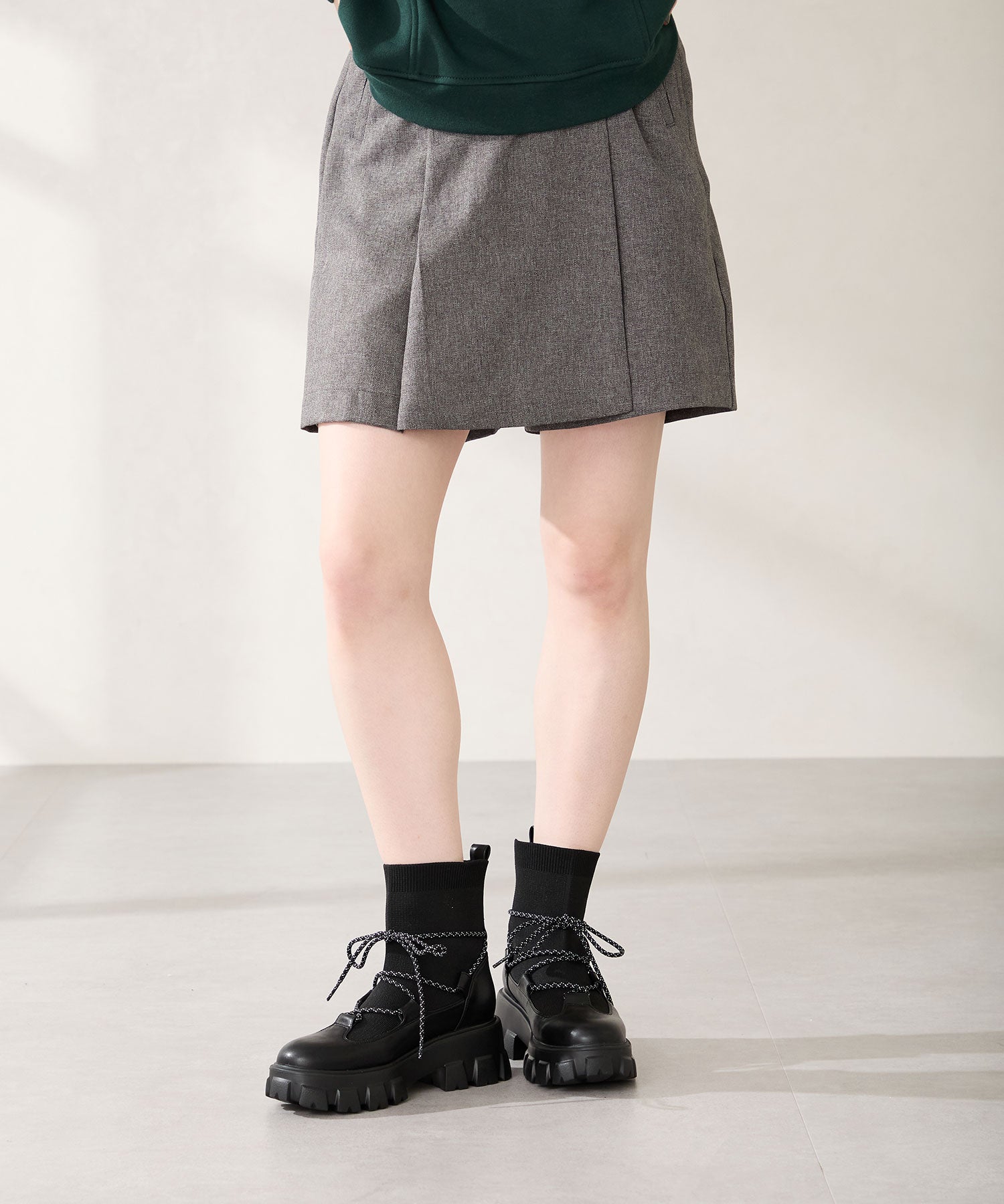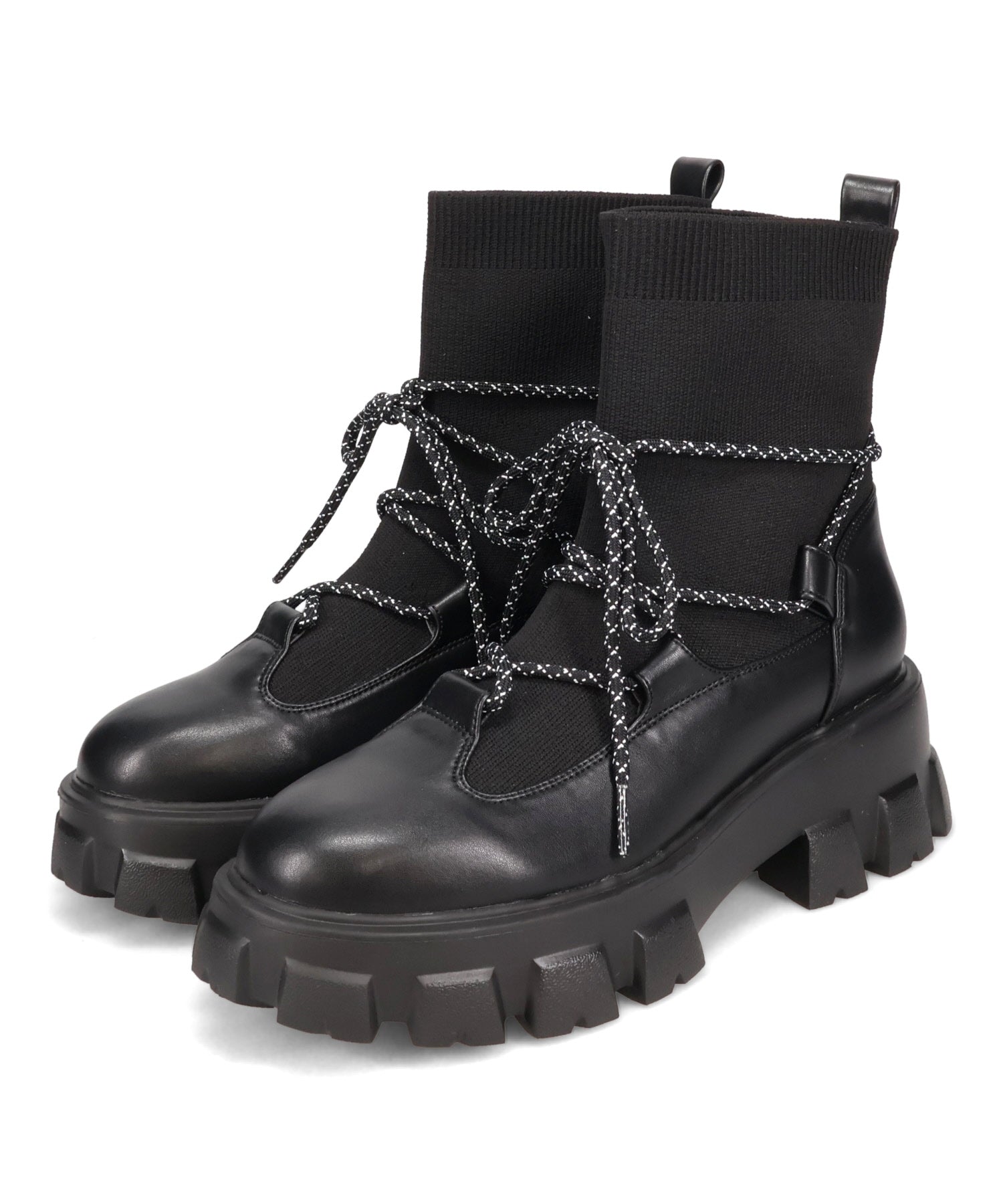 ボリュームソール編み上げニットブーツ/51406