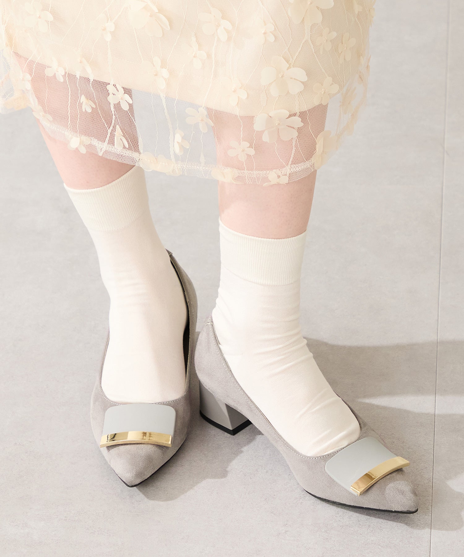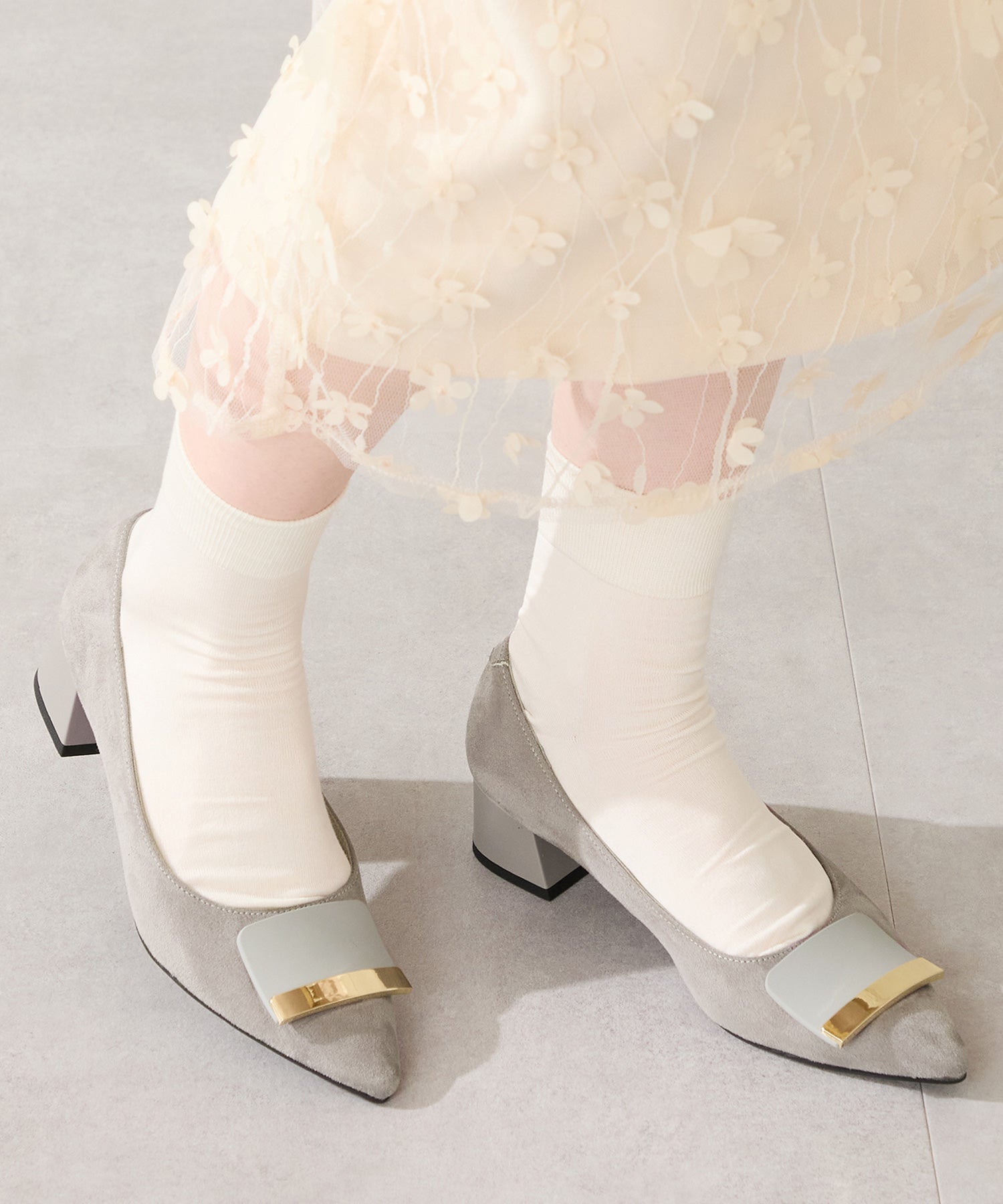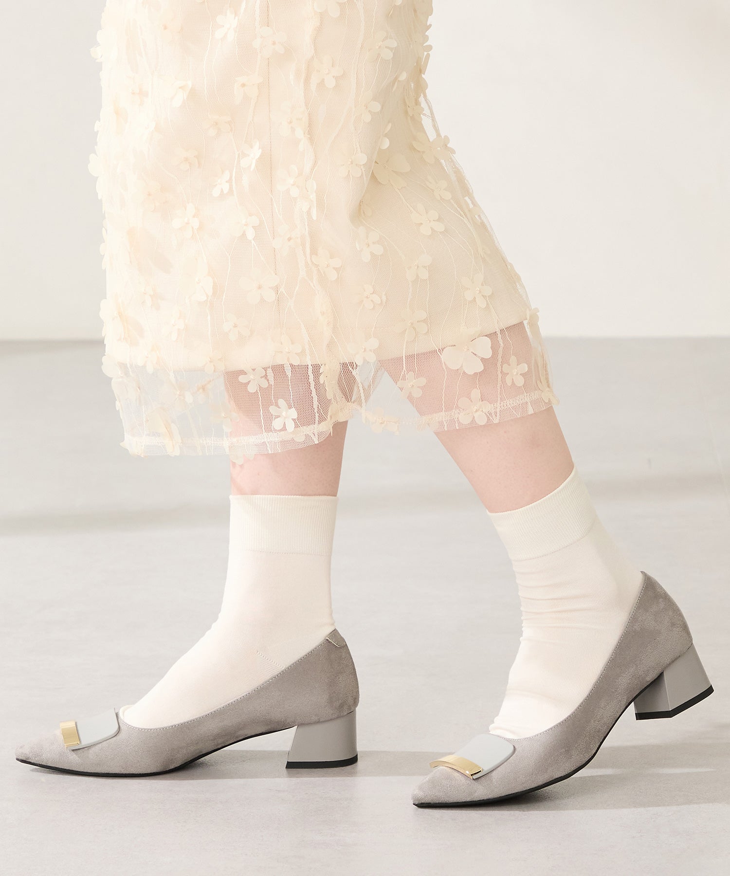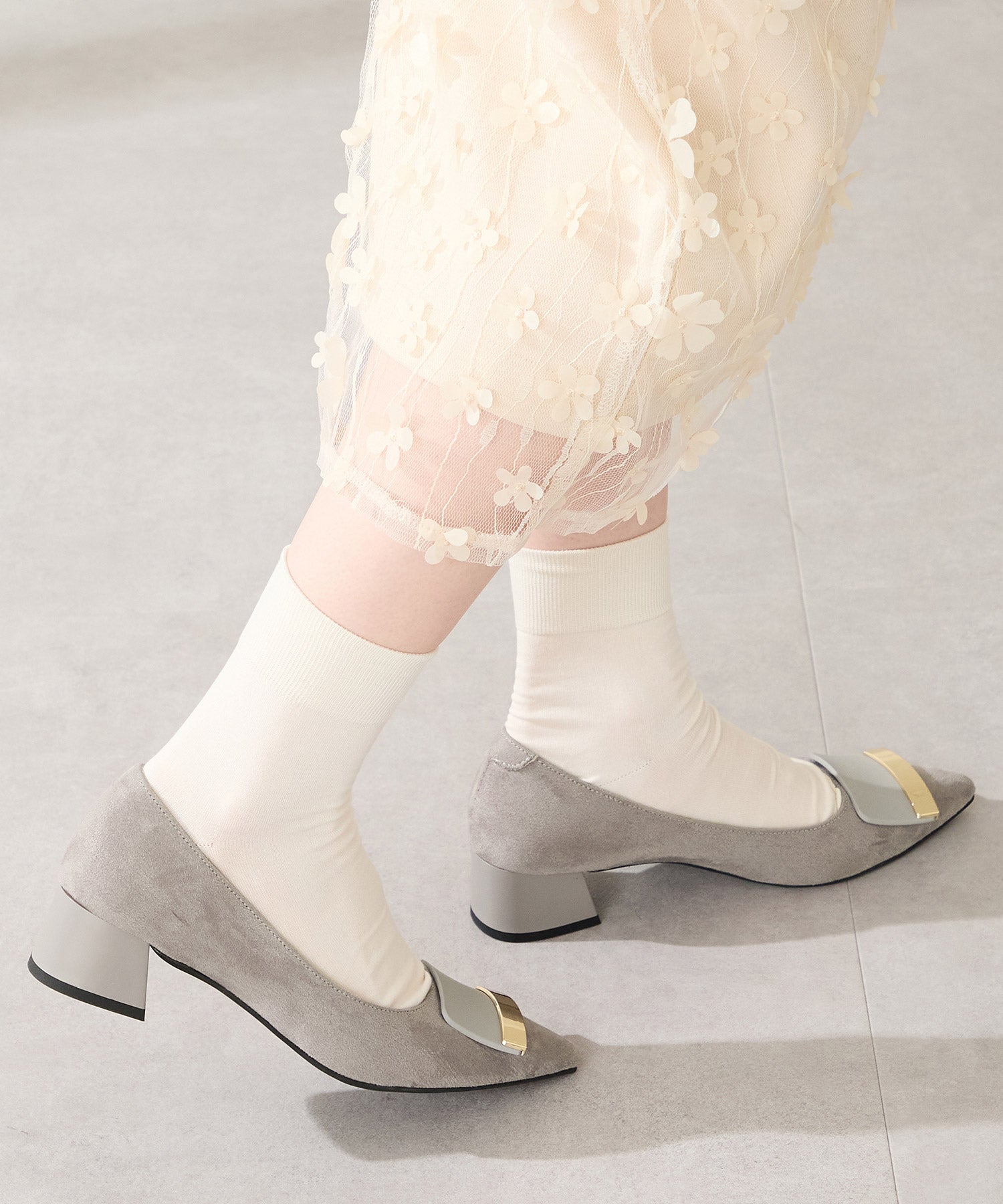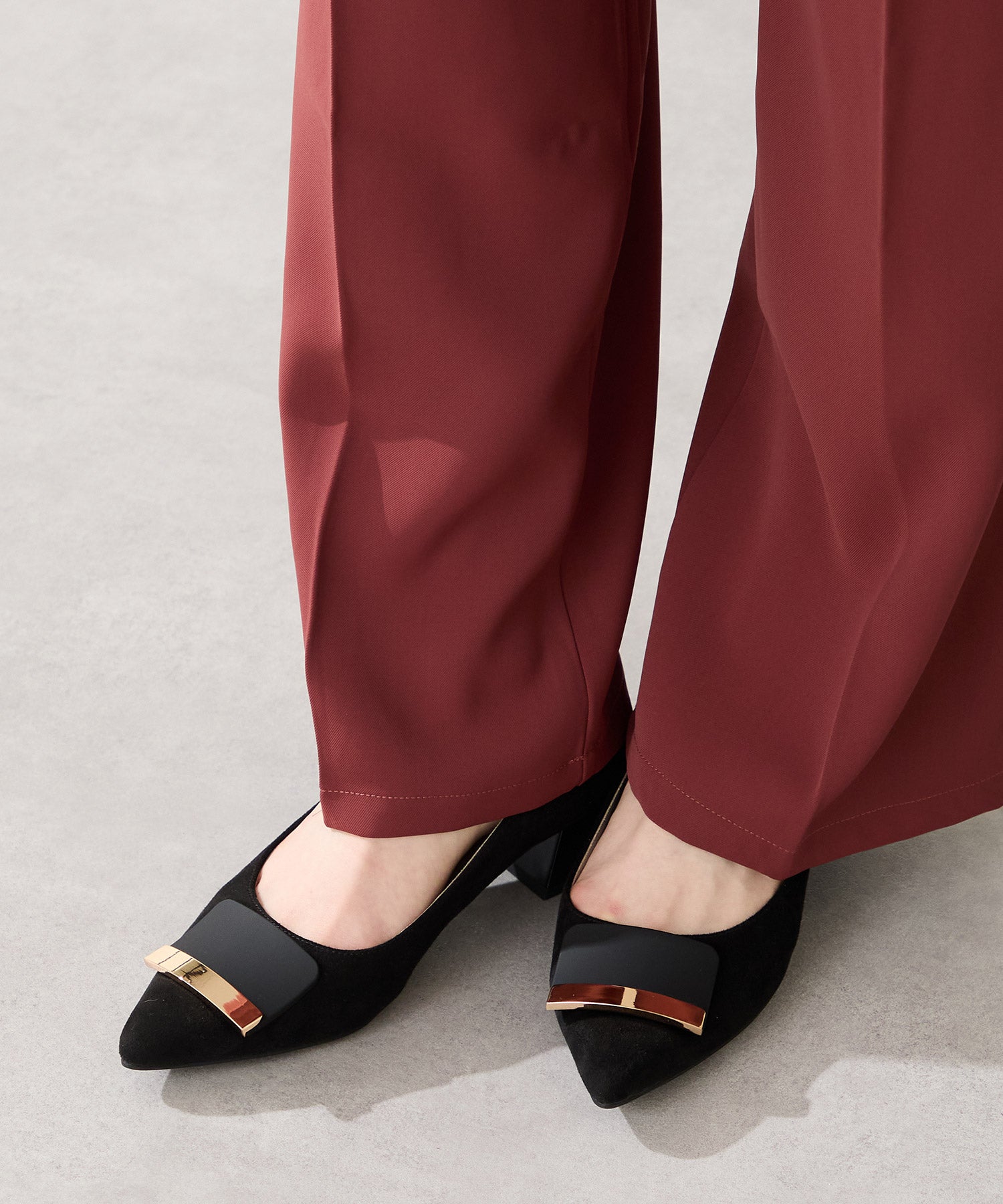 【カタログ掲載アイテム】スクエアバックルフレアヒールパンプス/52314