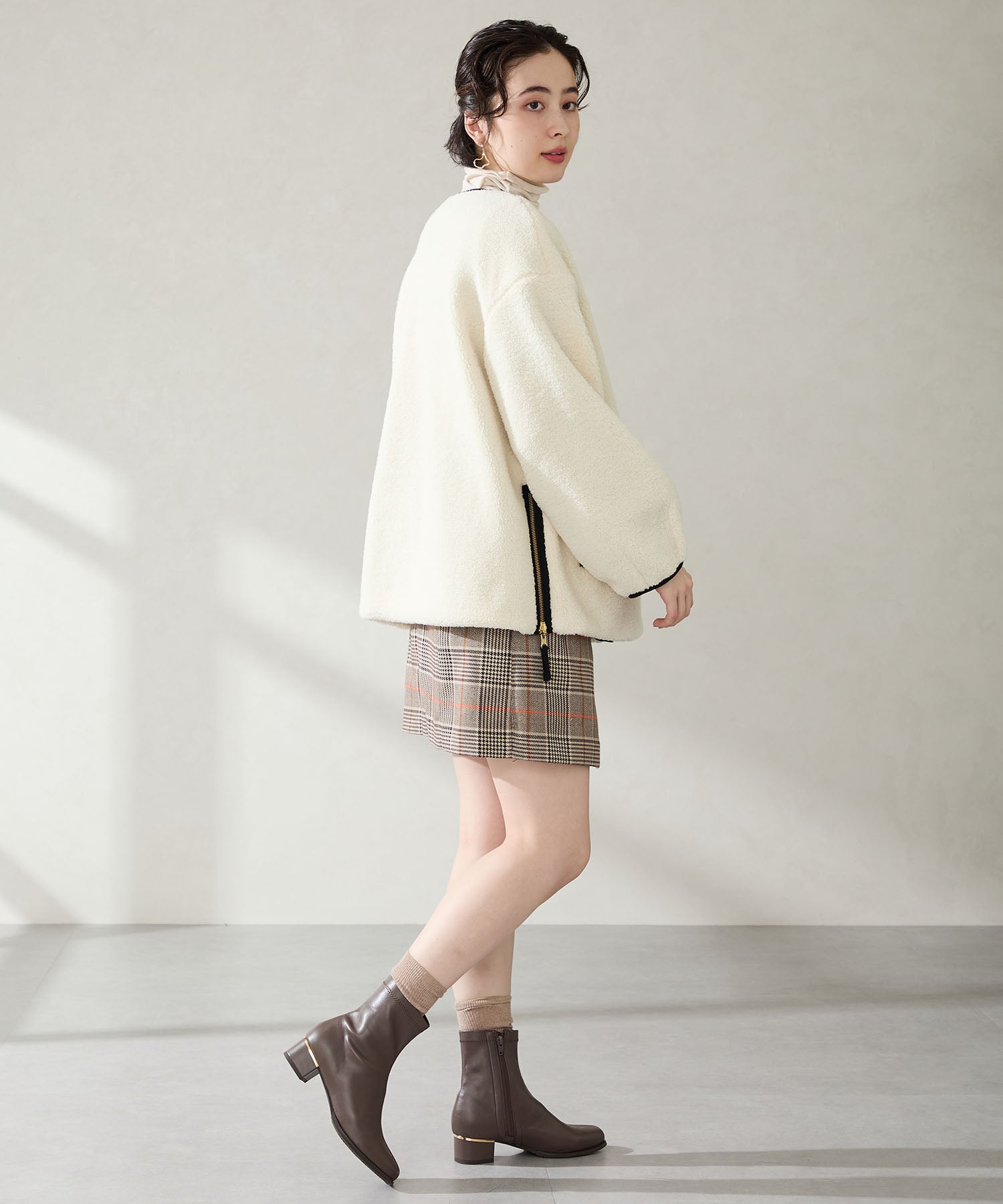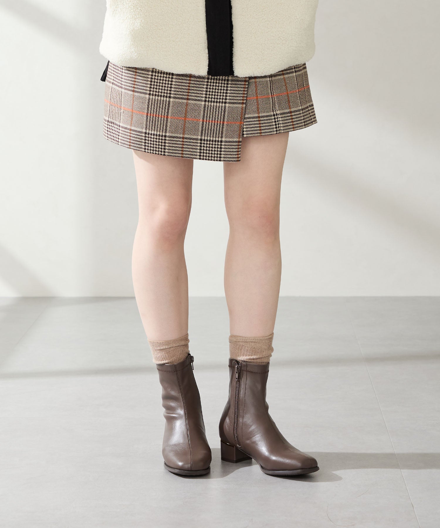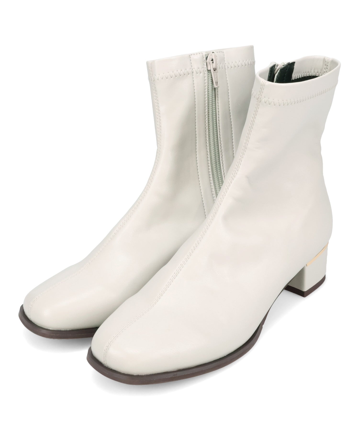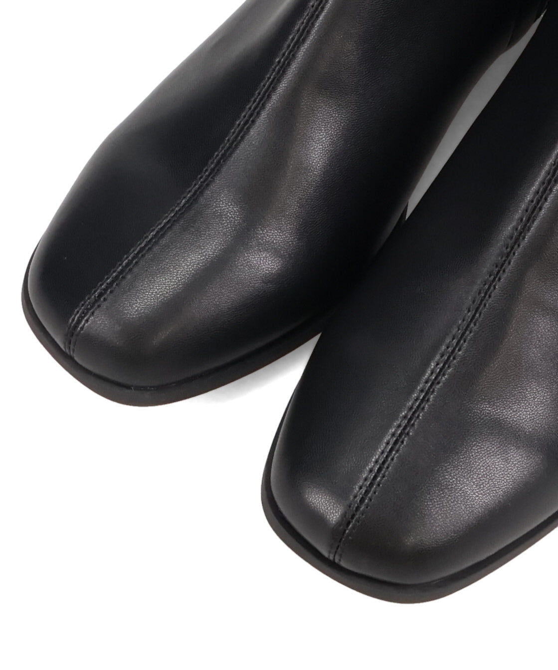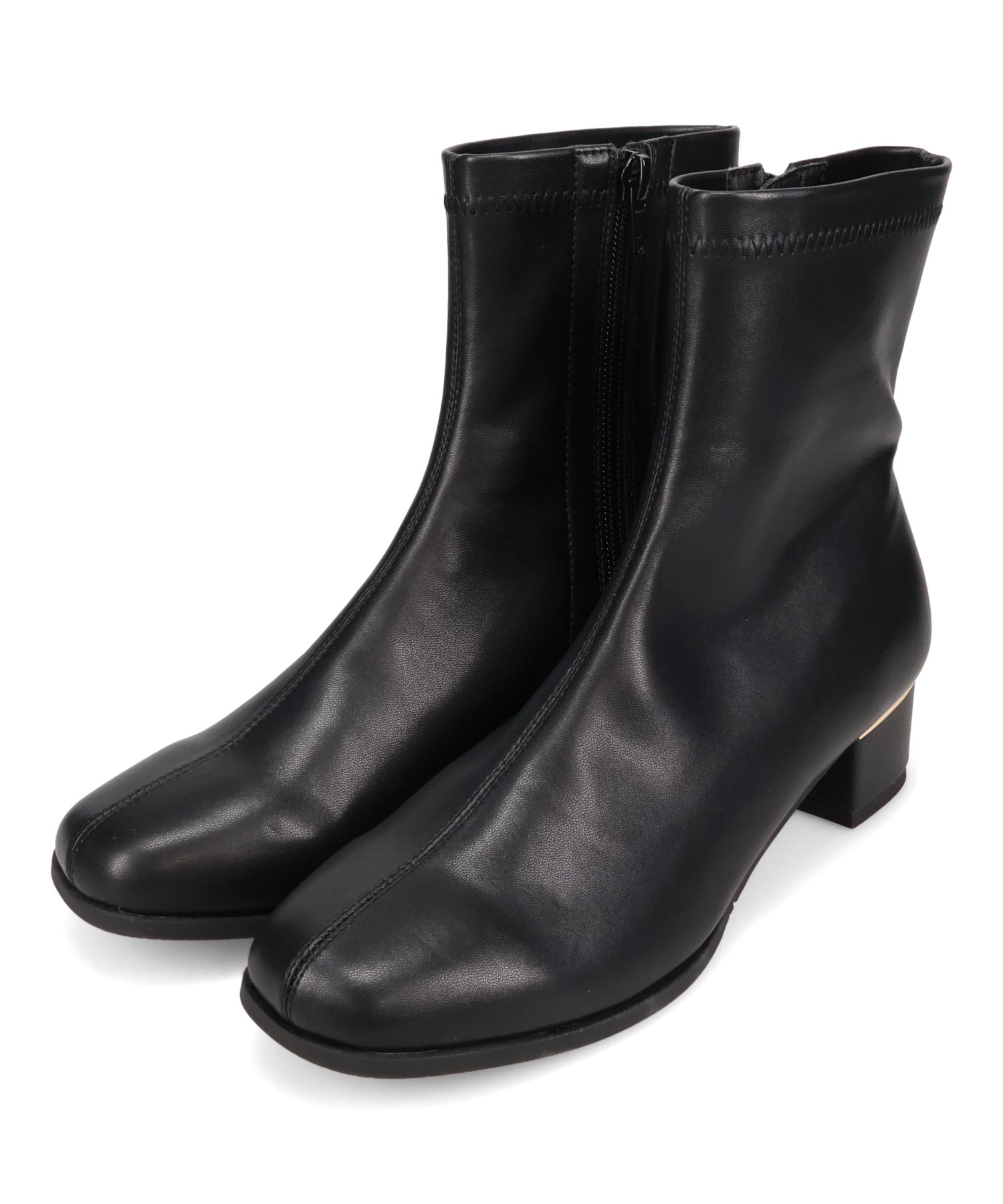 アッパー全体にストレッチの効いた素材を使用したブーツは、凹凸を付けたクッション入りのインソールで履き心地にとことんこだわった1足。低めのヒールにはゴールドのメタリックラインを施し、さりげない上品さをオン。縦のラインを強調するセンターシームのデザインに、足に沿うタイトめなシルエットで足元をすっきり見せながら、履くだけでスタイリングを引き締めてくれる。