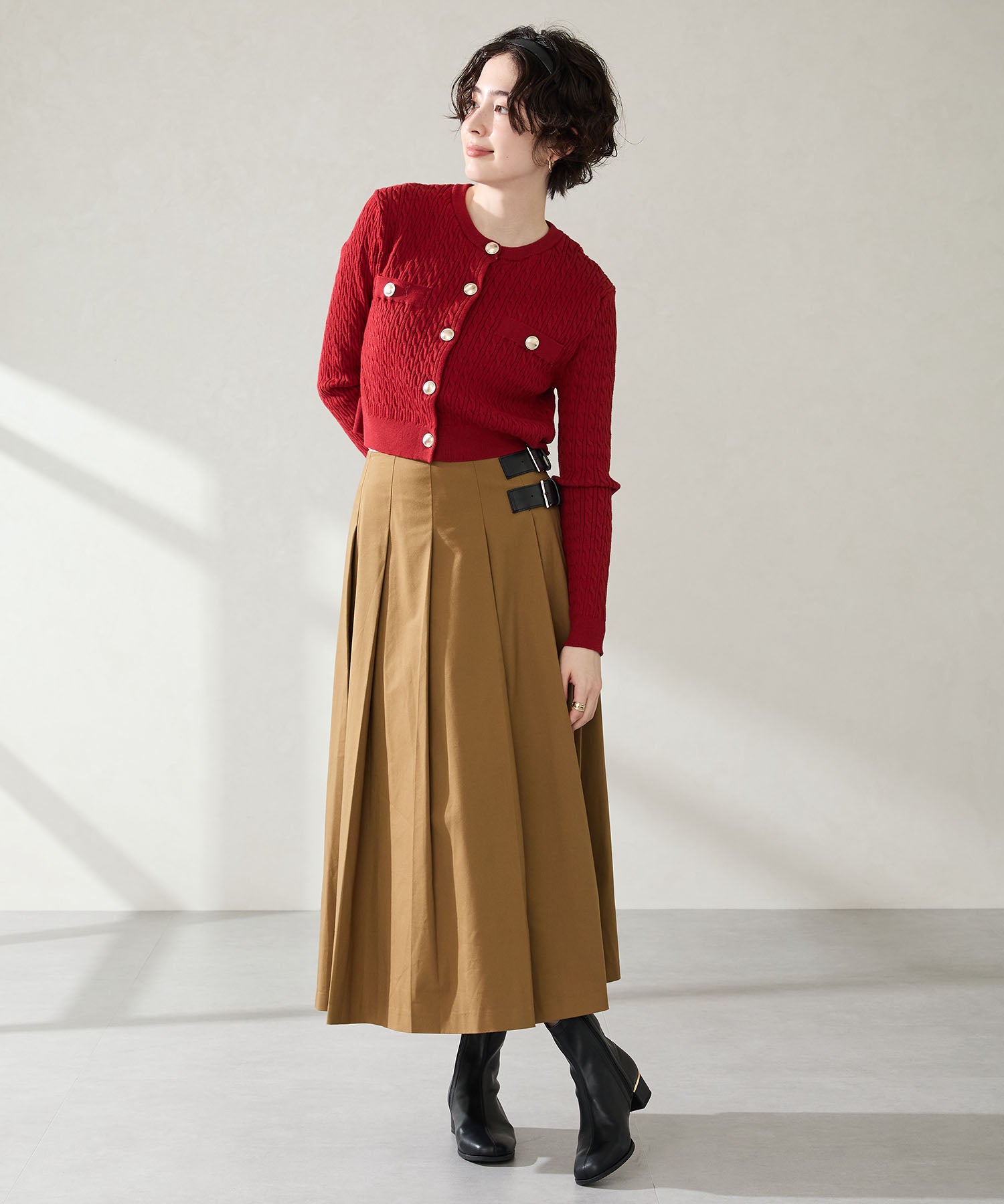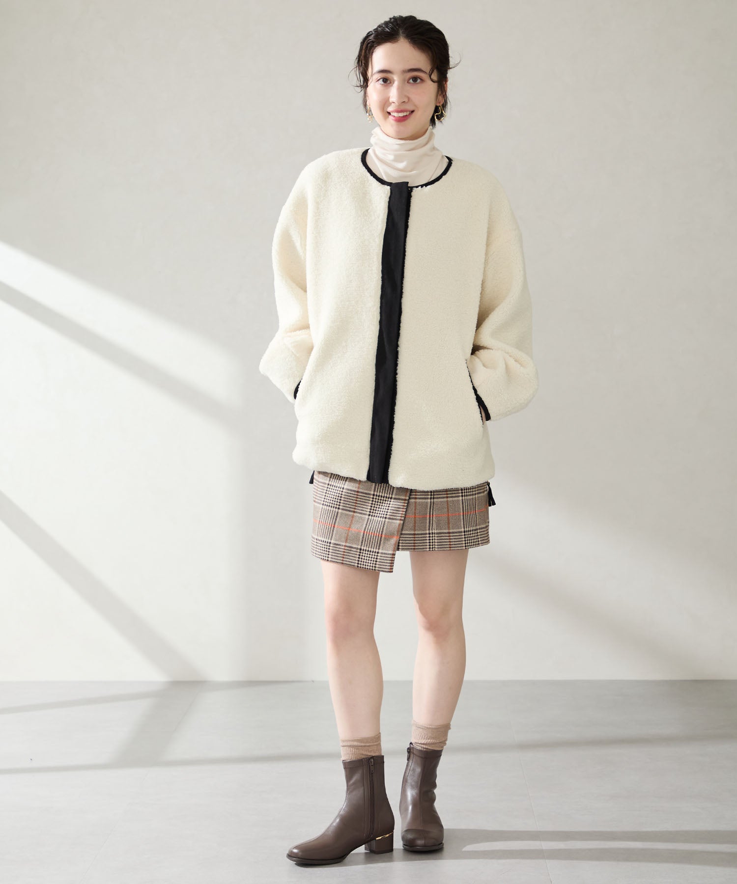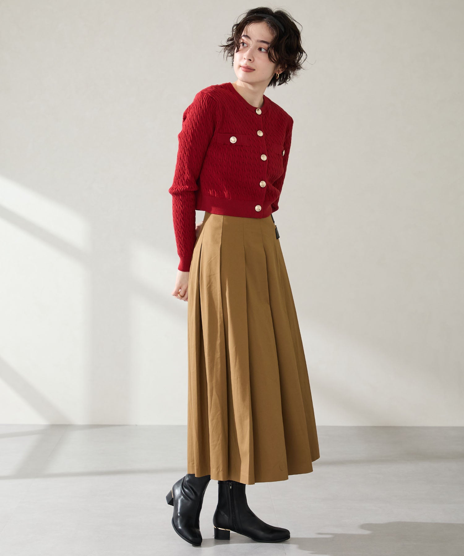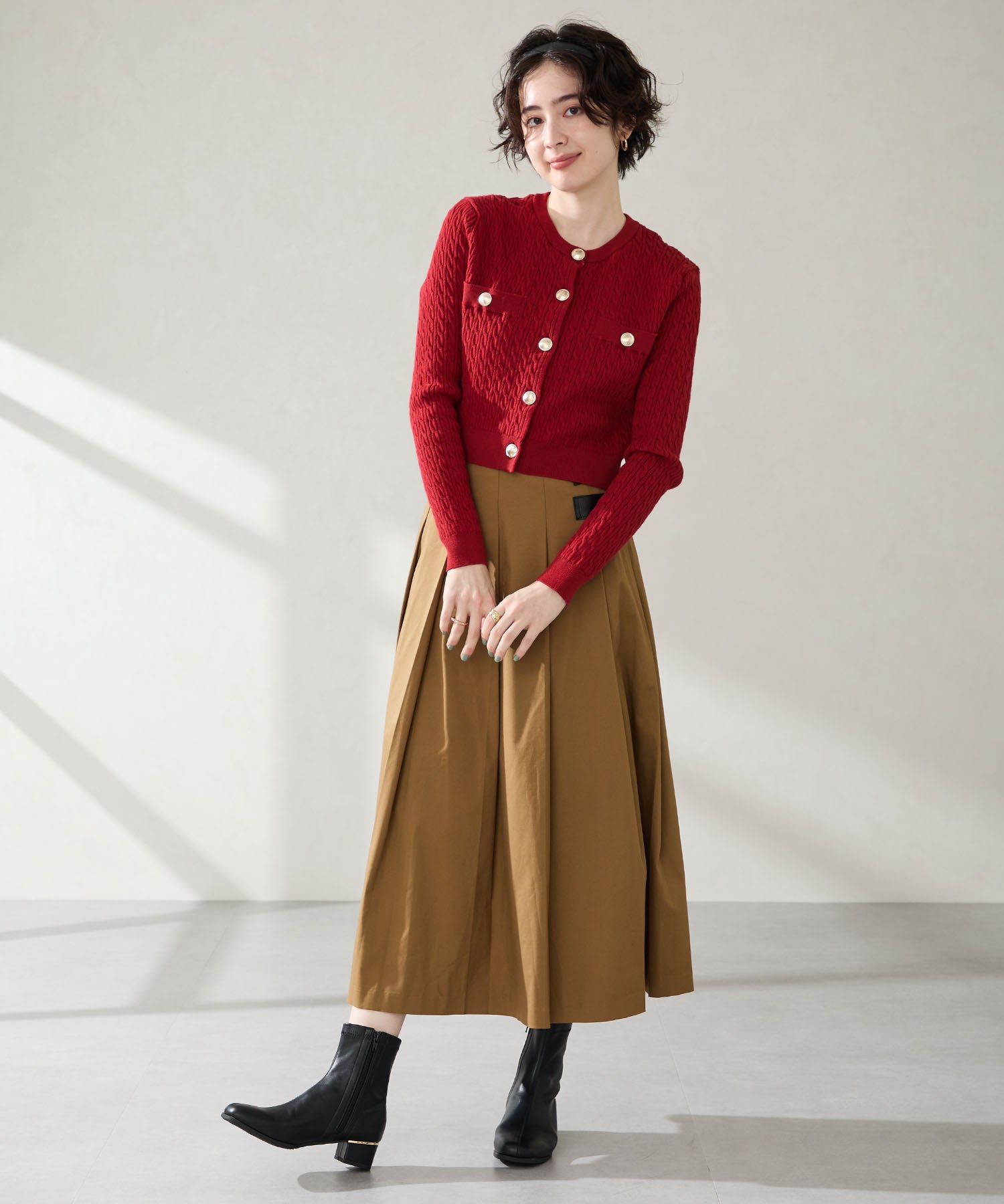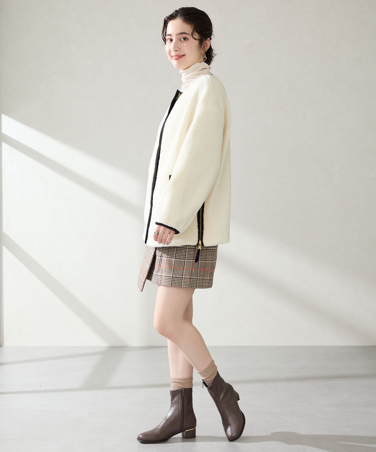 アッパー全体にストレッチの効いた素材を使用したブーツは、凹凸を付けたクッション入りのインソールで履き心地にとことんこだわった1足。低めのヒールにはゴールドのメタリックラインを施し、さりげない上品さをオン。縦のラインを強調するセンターシームのデザインに、足に沿うタイトめなシルエットで足元をすっきり見せながら、履くだけでスタイリングを引き締めてくれる。