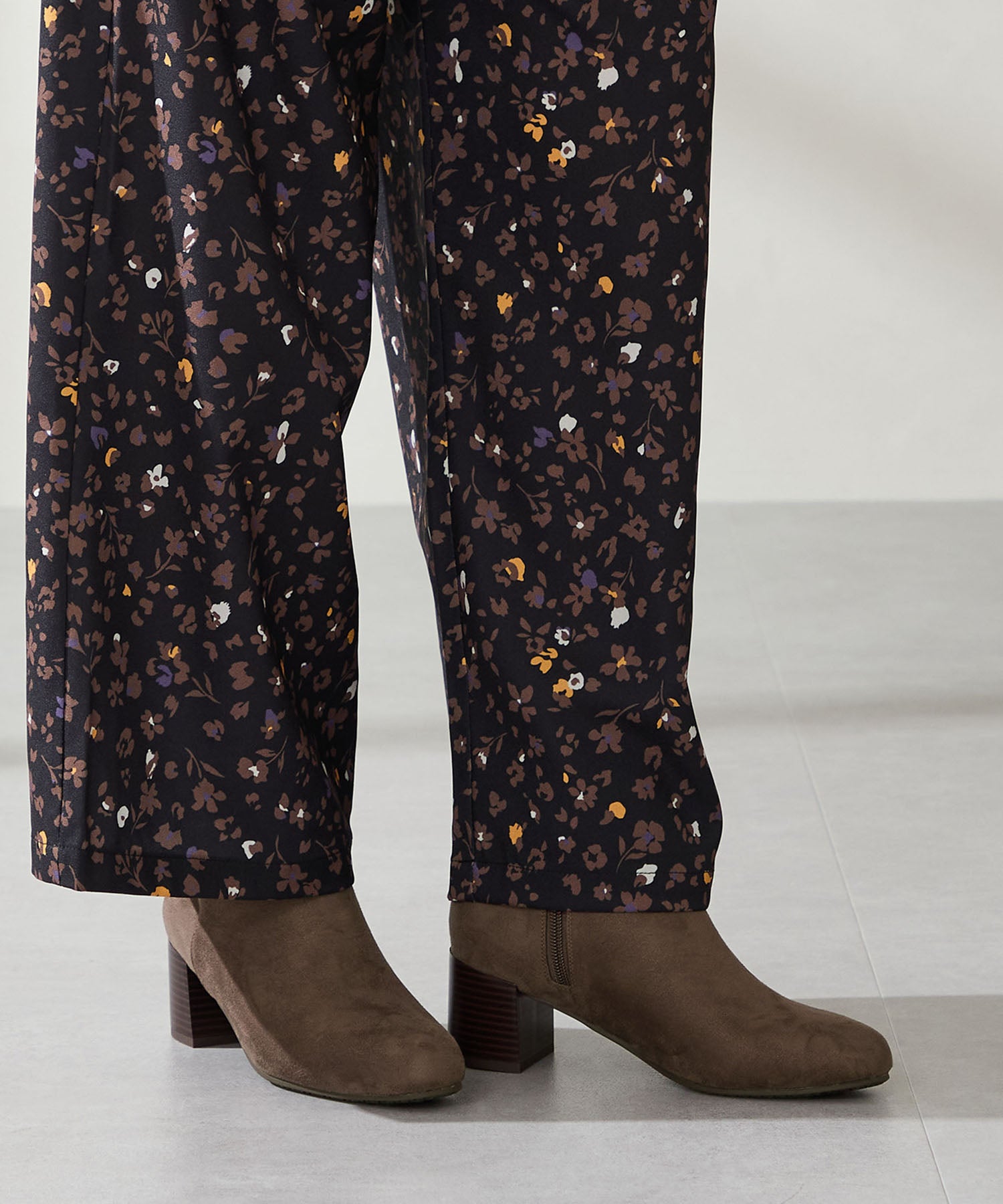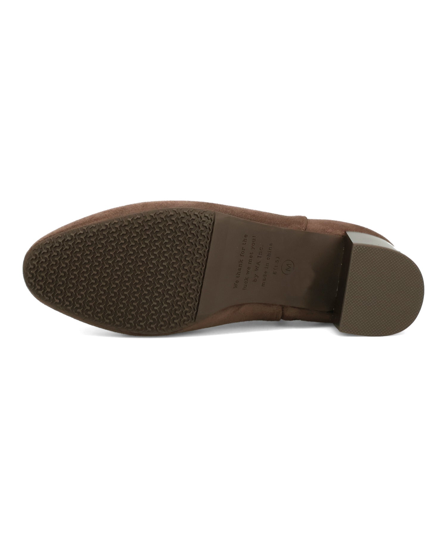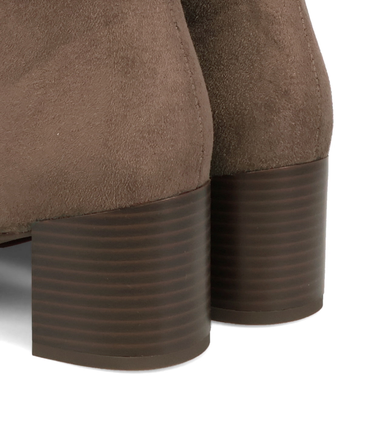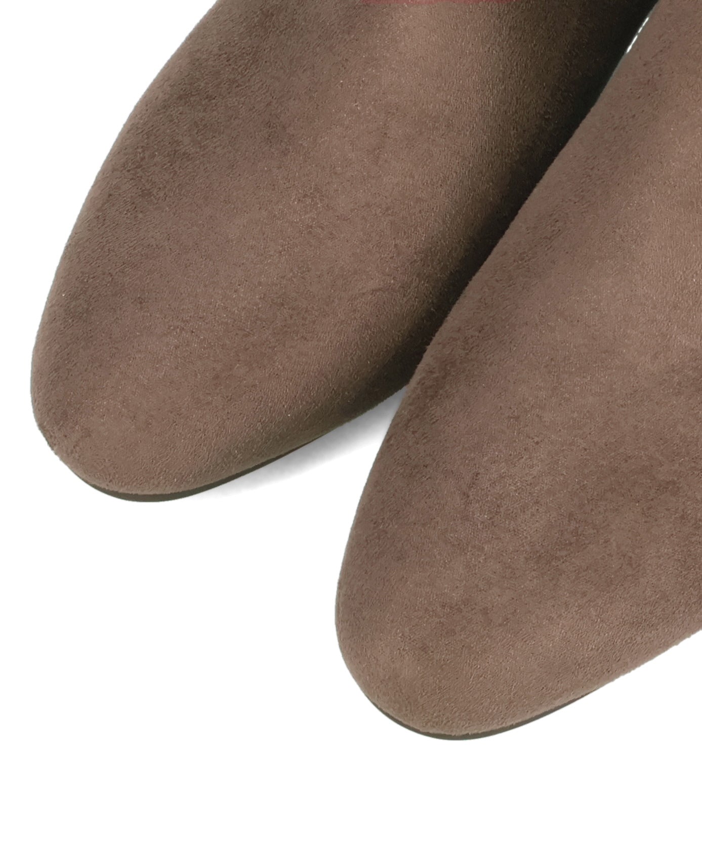 すっきりとした細身のシルエットに、ゴールドの華奢なビットモチーフをあしらったレディライクなショートブーツ。中敷には起毛のナイロン素材を使用することで、足当たりがソフトな優しい履き心地に。シーズンムード高まる暖かみのあるスエード素材で足馴染みが良く、足首が隠れる短めの丈感で、ボトムスを選ばないデイリーに使える1足。