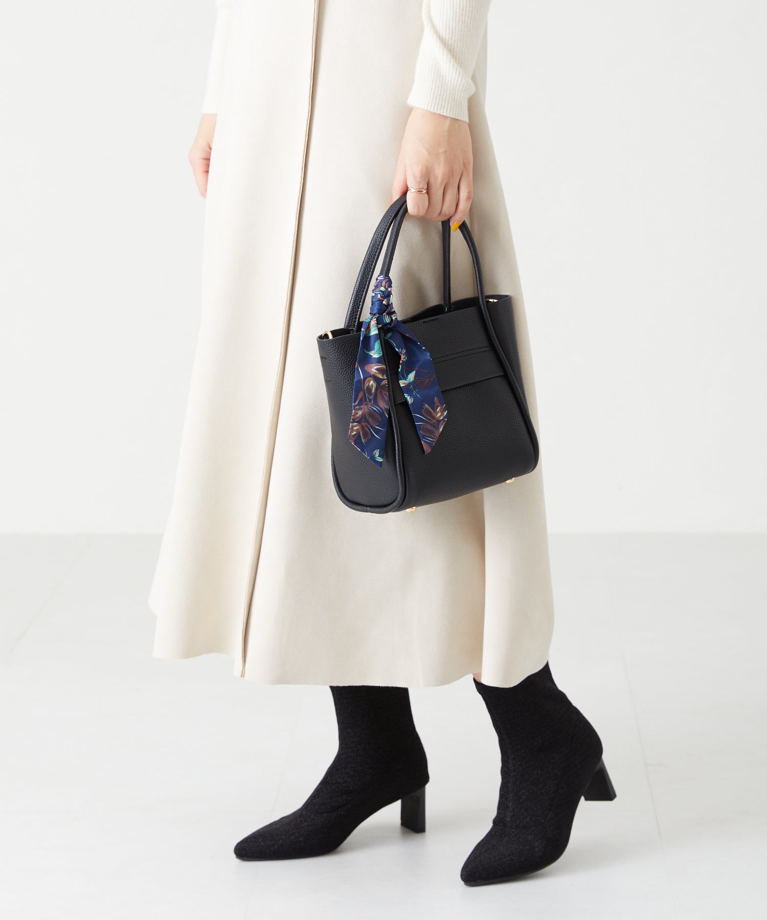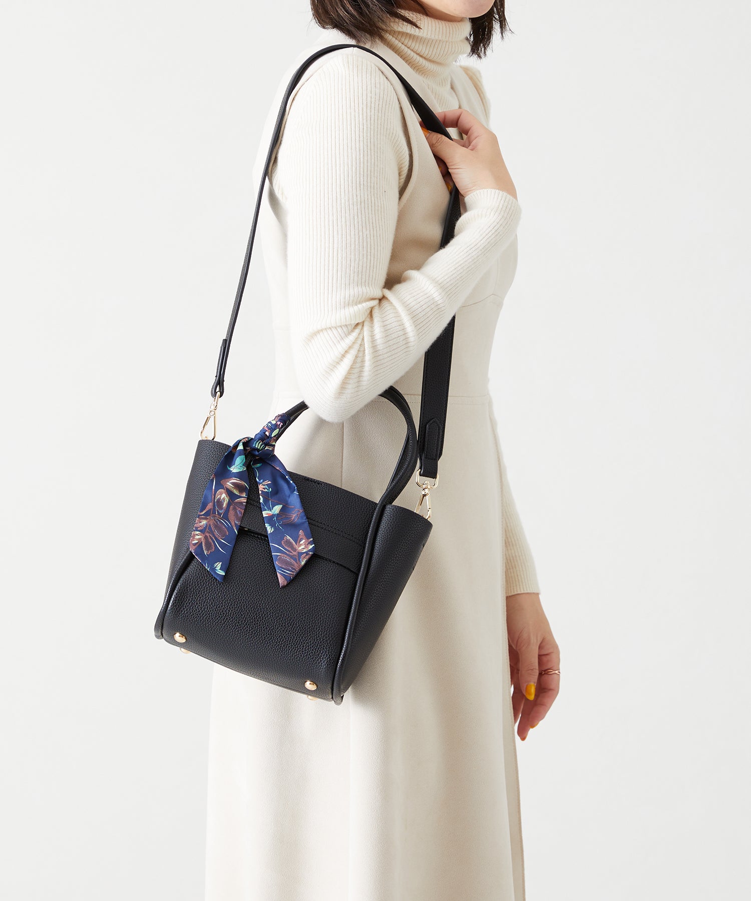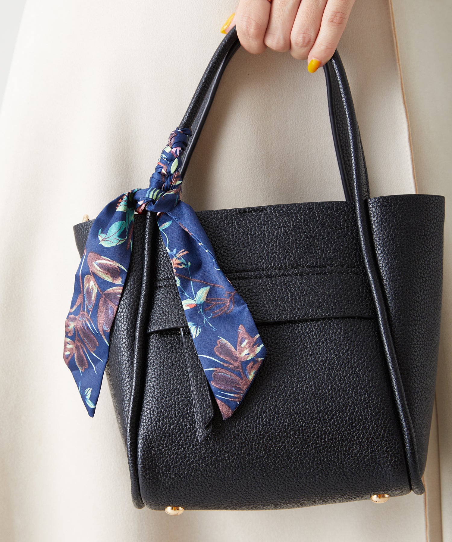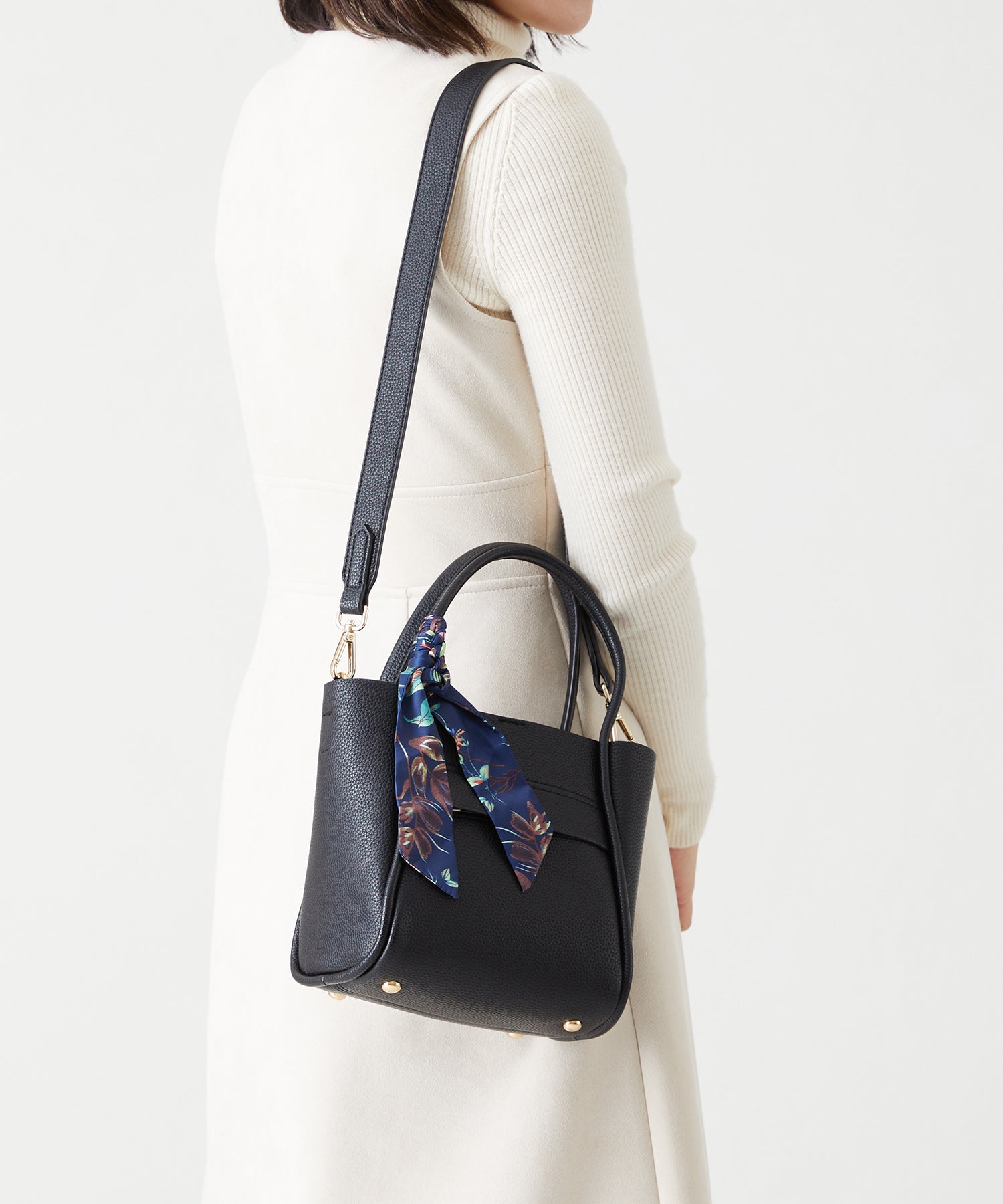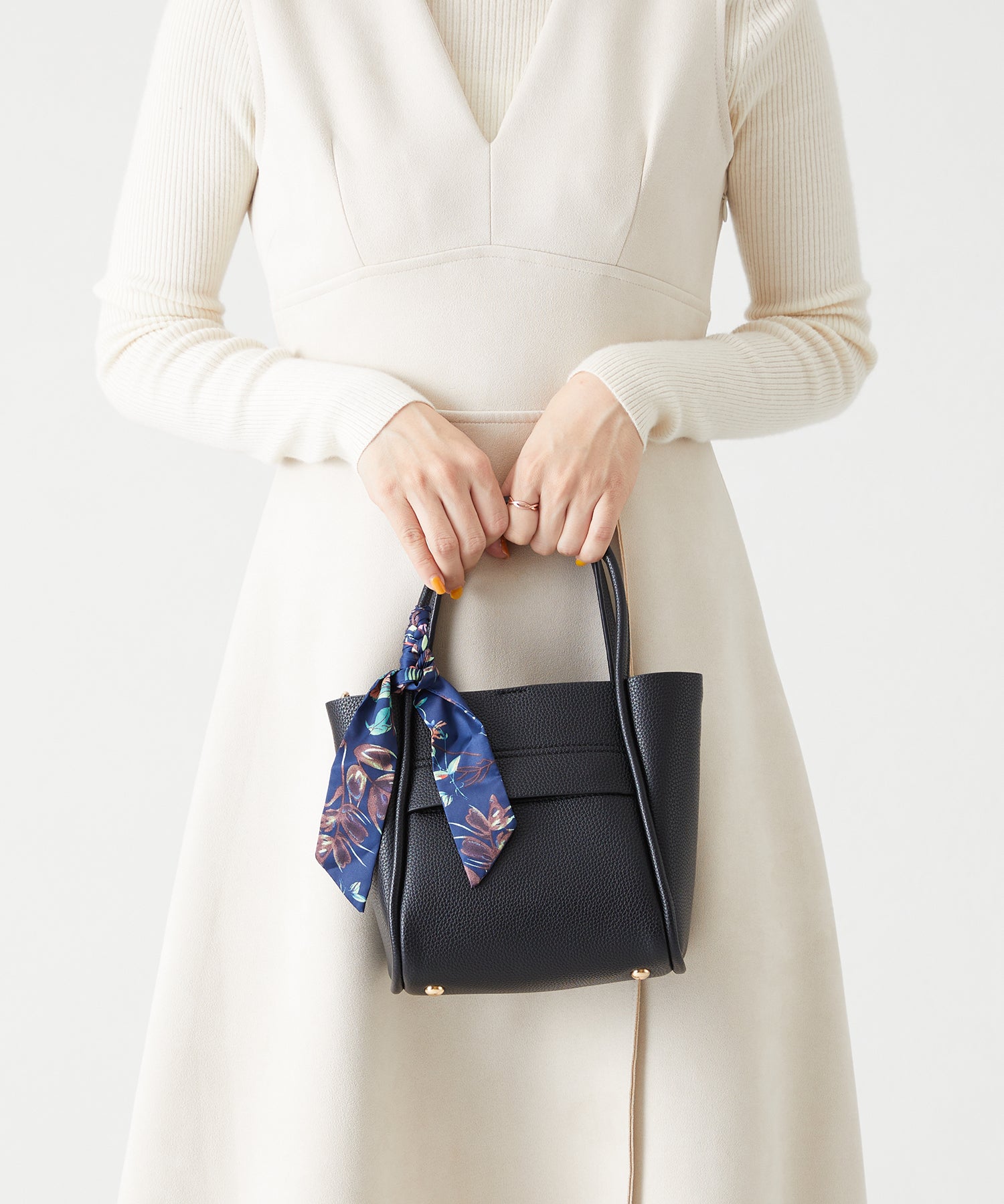ハンドルに施したスカーフが上品な印象に格上げするハンドバッグ。コンパクトなサイズ感ながらもマチが広めなので見た目以上にしっかり荷物が入れられるのも魅力的。バッグインバッグは取り外しも可能なので、入れる物に合わせて調整もできる。太さの異なる2種類のショルダーストラップ付きで何通りも楽しめる優れもの。