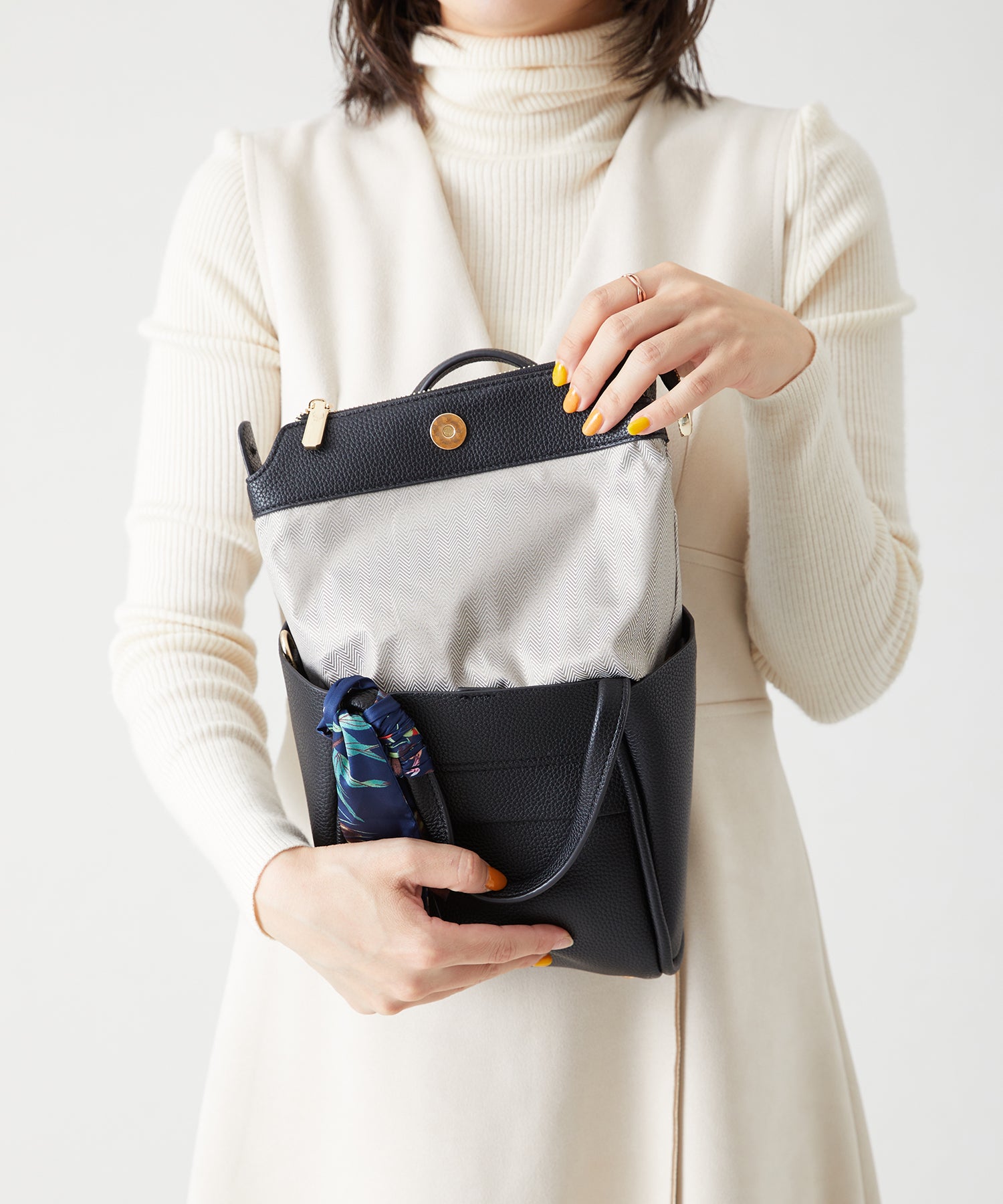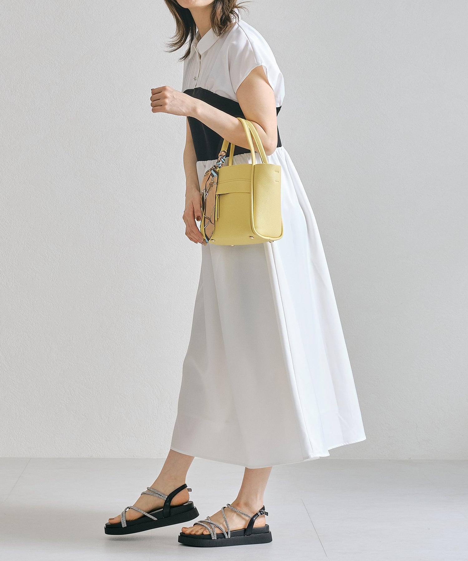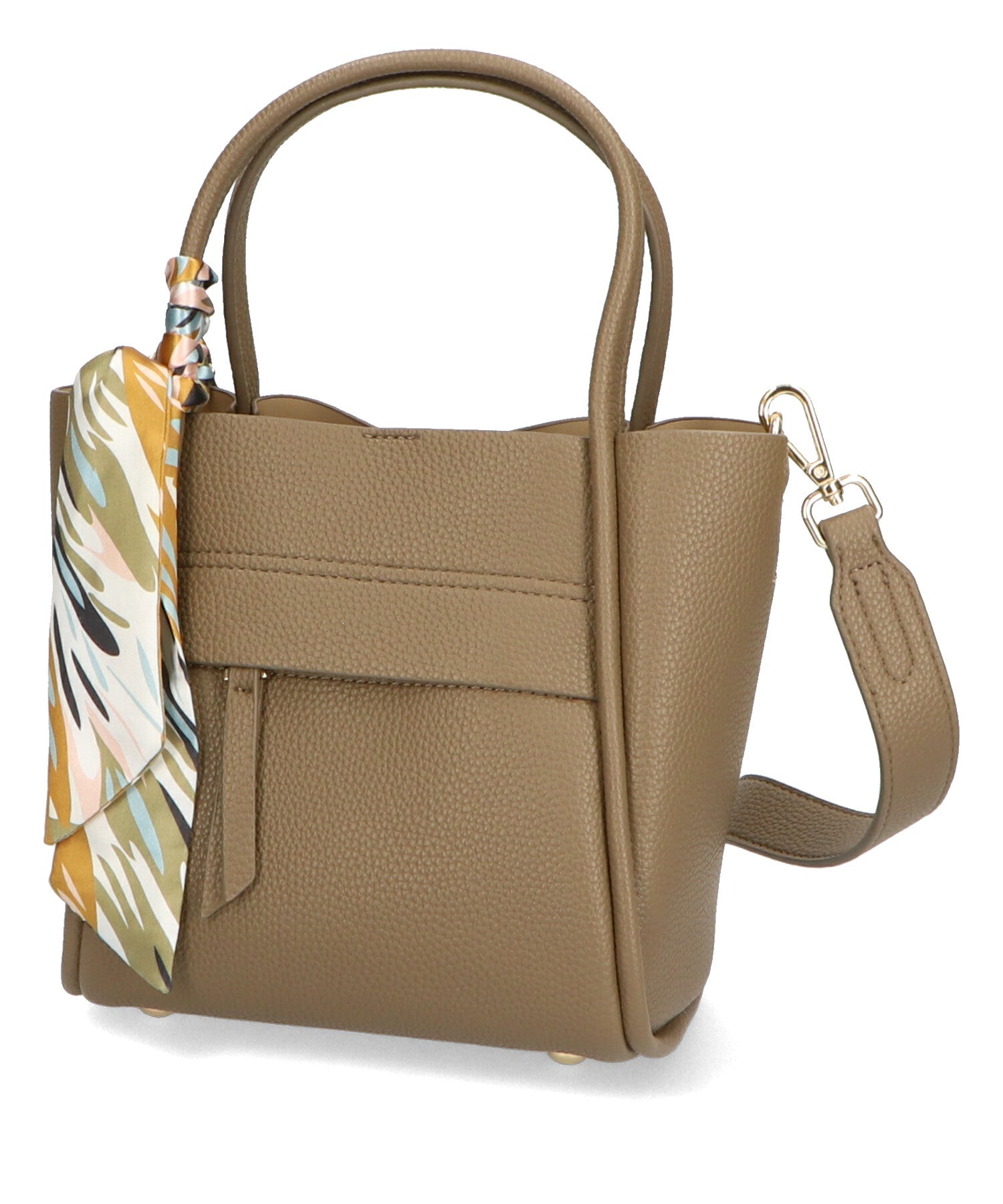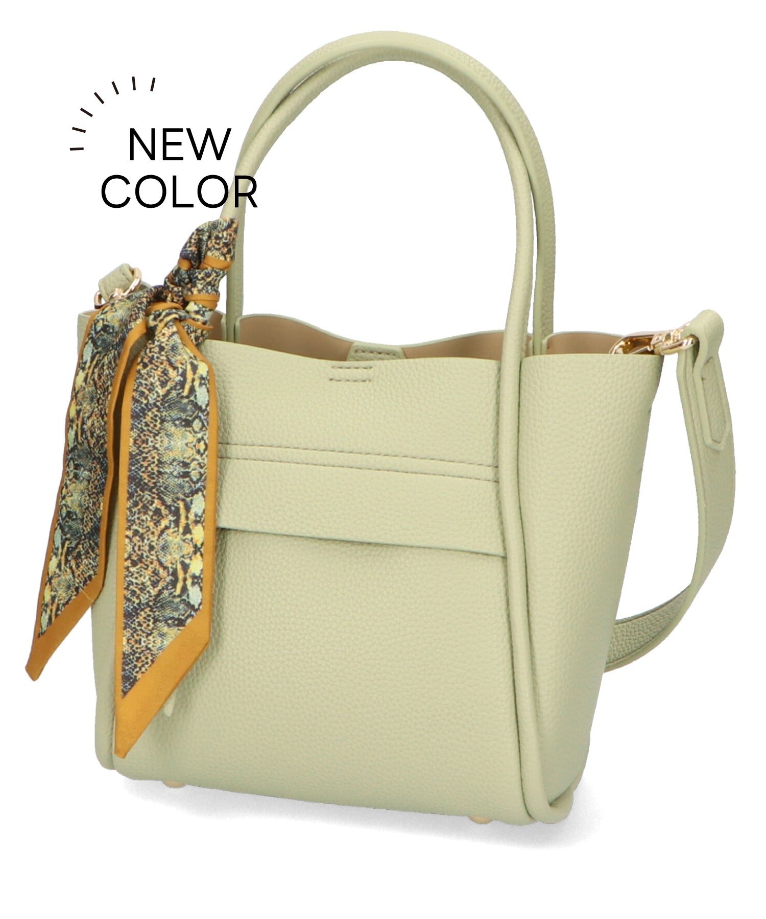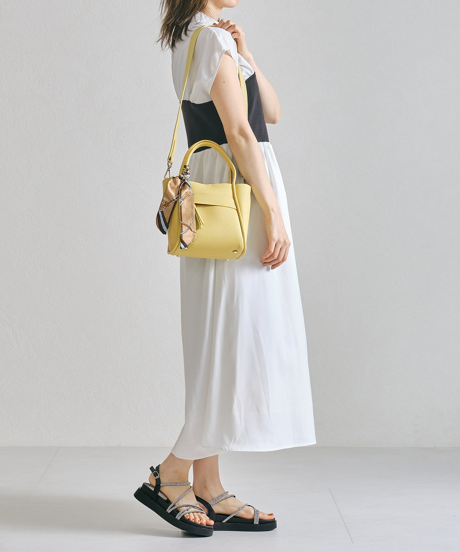 ハンドルに施したスカーフが上品な印象に格上げするハンドバッグ。コンパクトなサイズ感ながらもマチが広めなので見た目以上にしっかり荷物が入れられるのも魅力的。バッグインバッグは取り外しも可能なので、入れる物に合わせて調整もできる。太さの異なる2種類のショルダーストラップ付きで何通りも楽しめる優れもの。