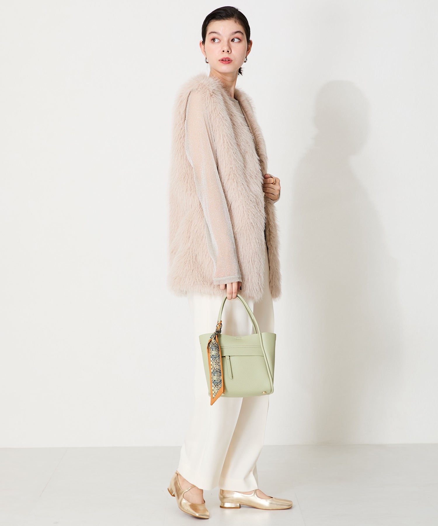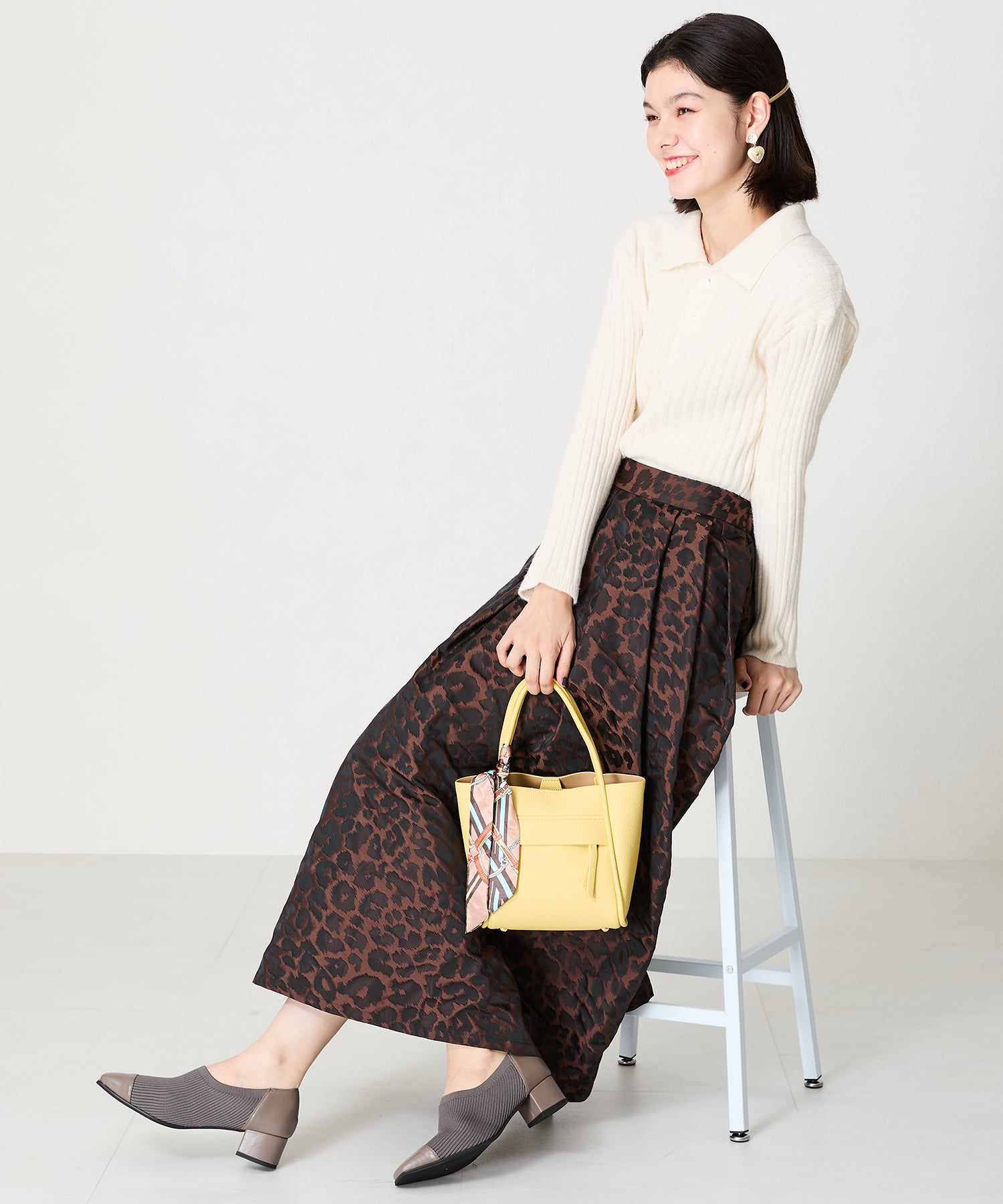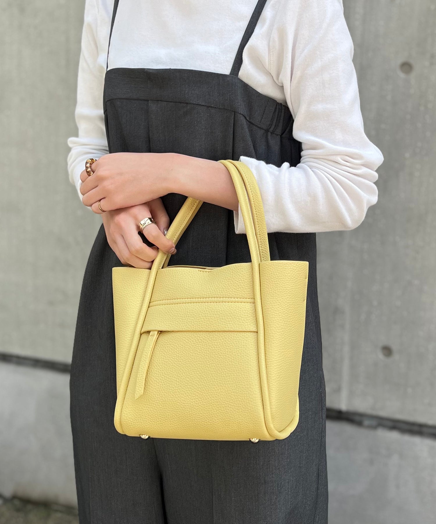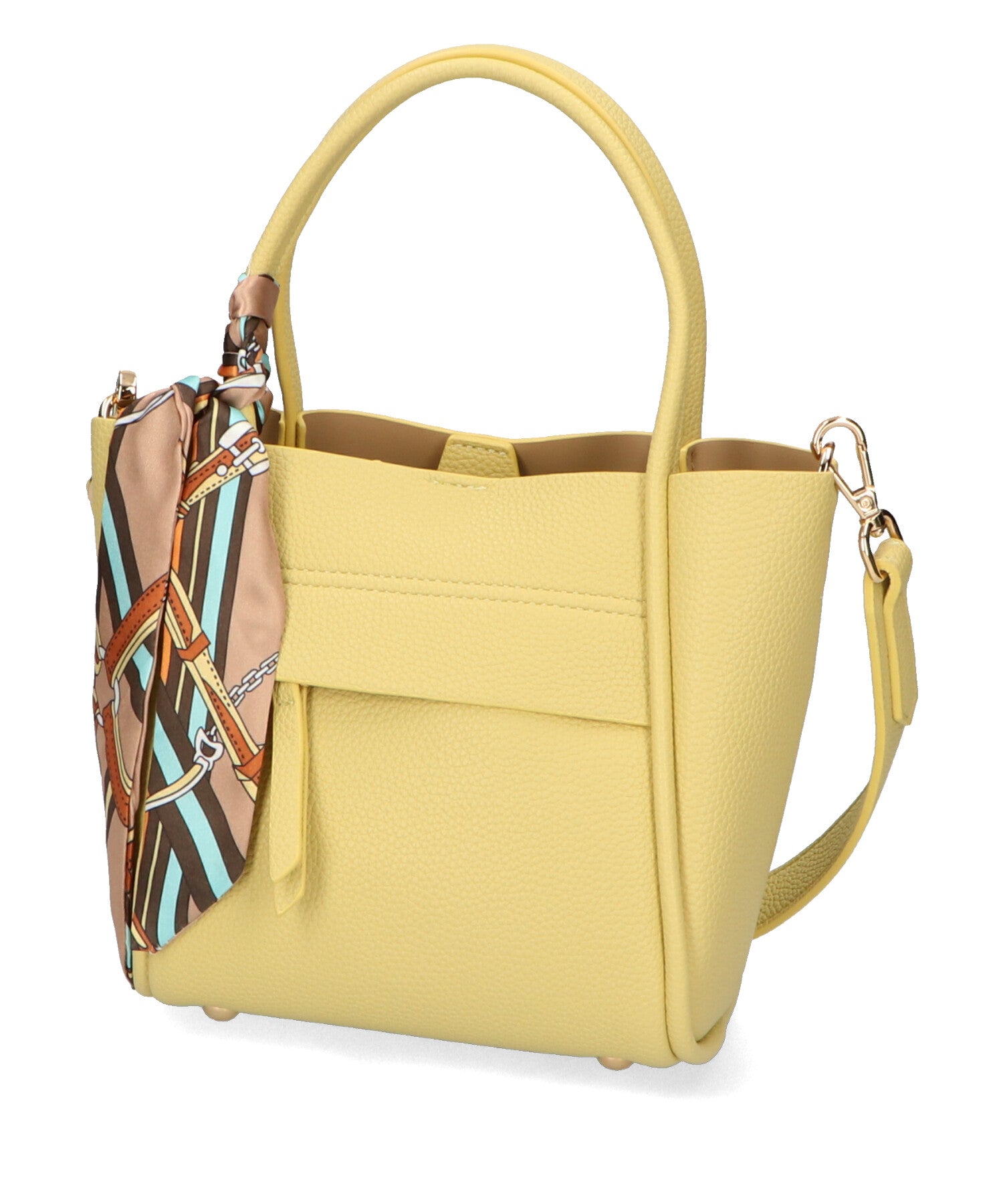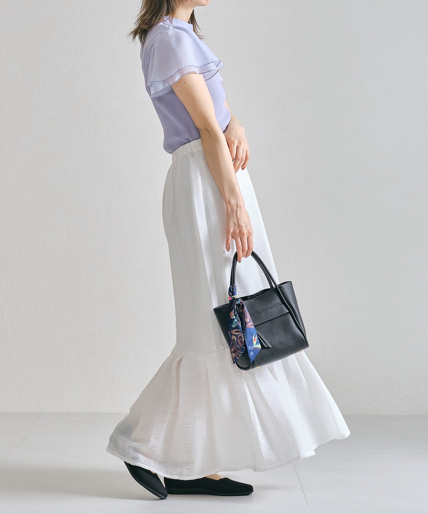 ハンドルに施したスカーフが上品な印象に格上げするハンドバッグ。コンパクトなサイズ感ながらもマチが広めなので見た目以上にしっかり荷物が入れられるのも魅力的。バッグインバッグは取り外しも可能なので、入れる物に合わせて調整もできる。太さの異なる2種類のショルダーストラップ付きで何通りも楽しめる優れもの。