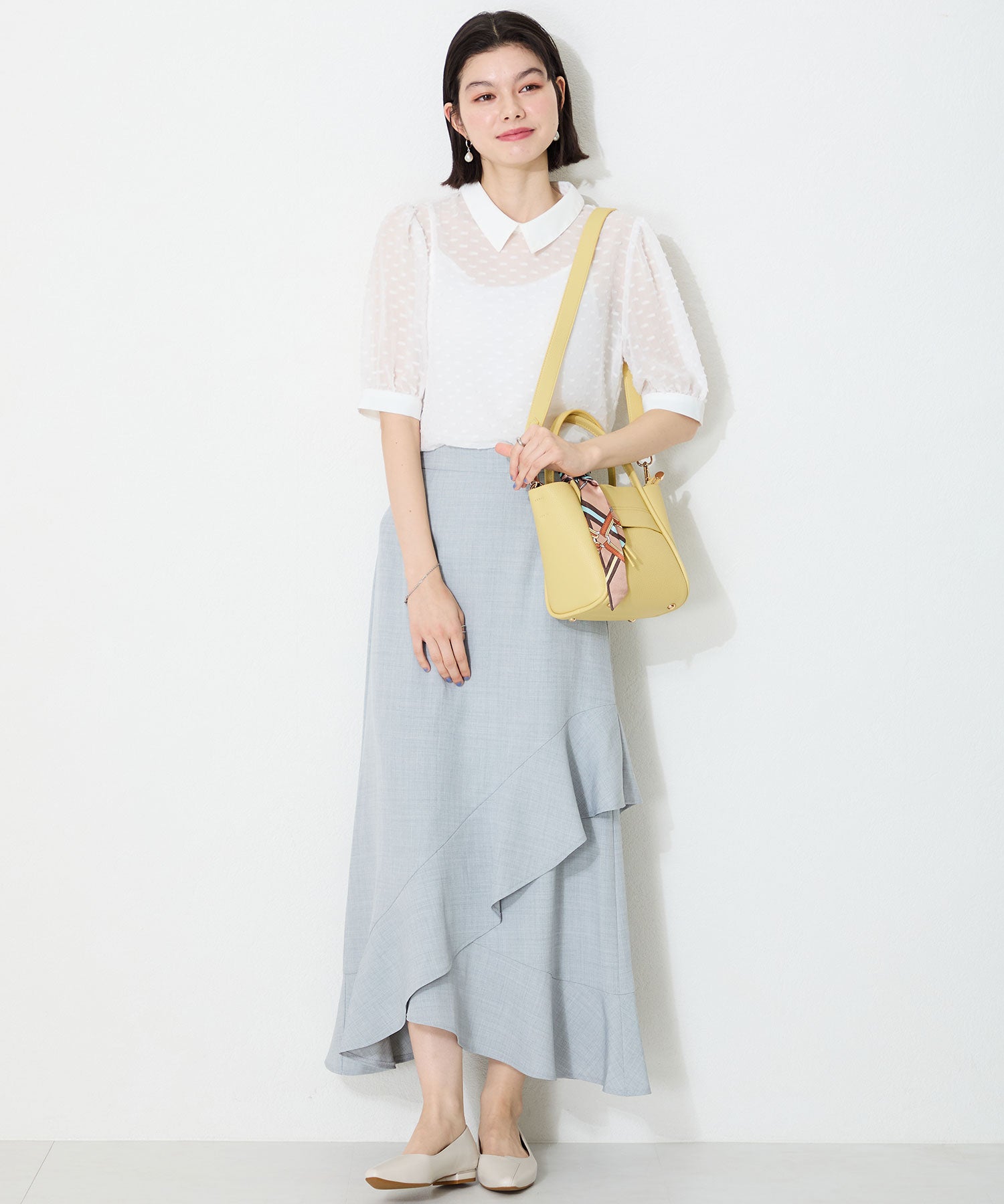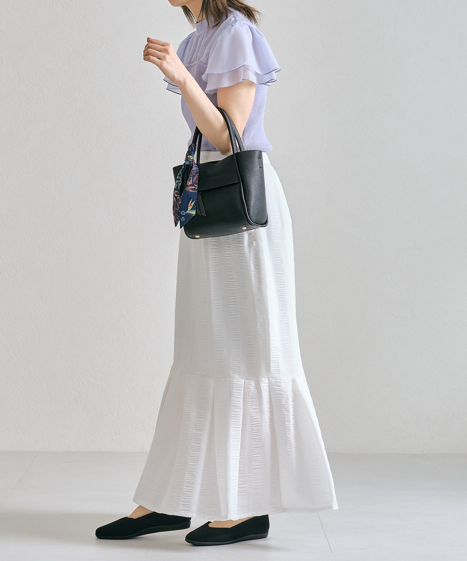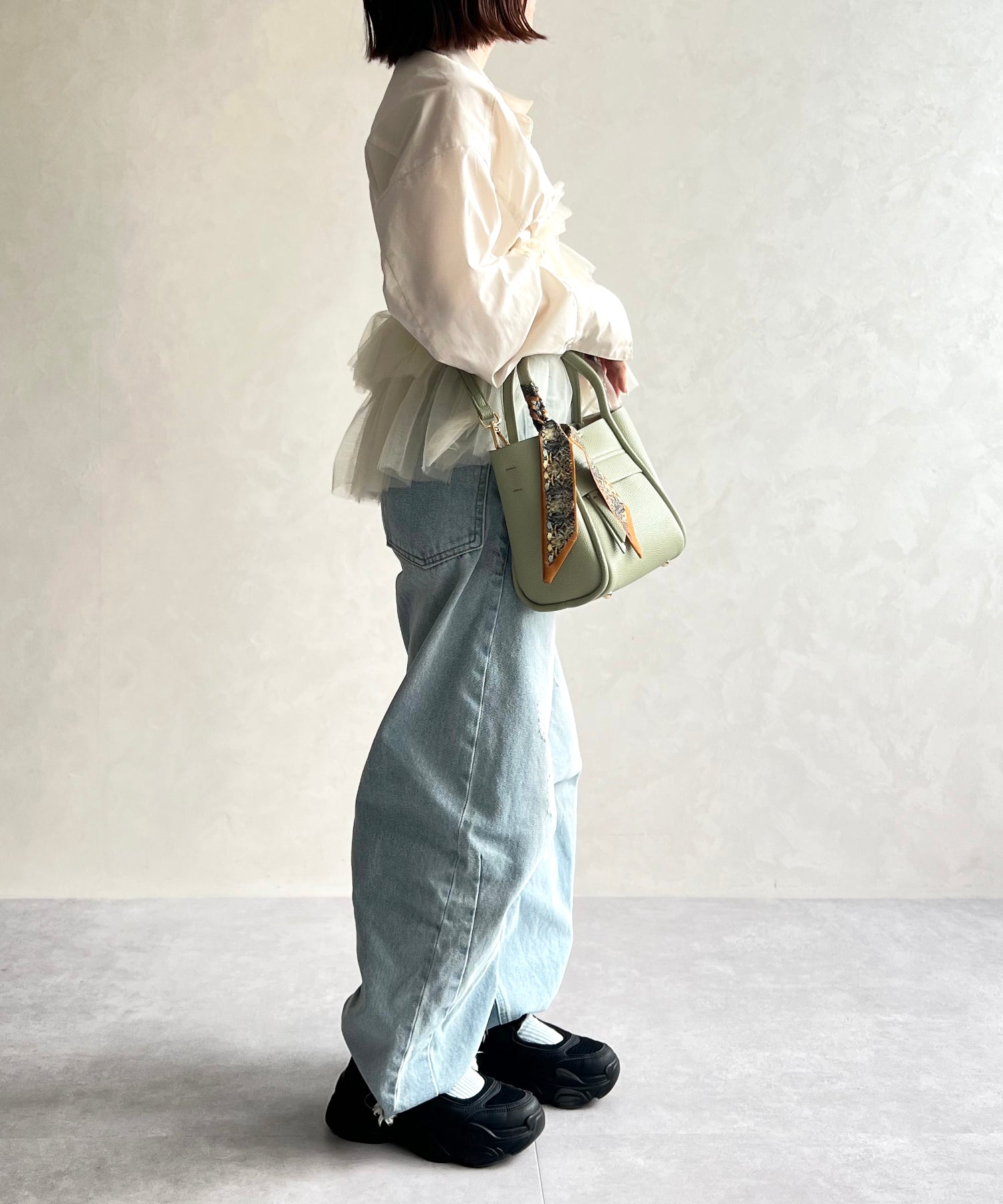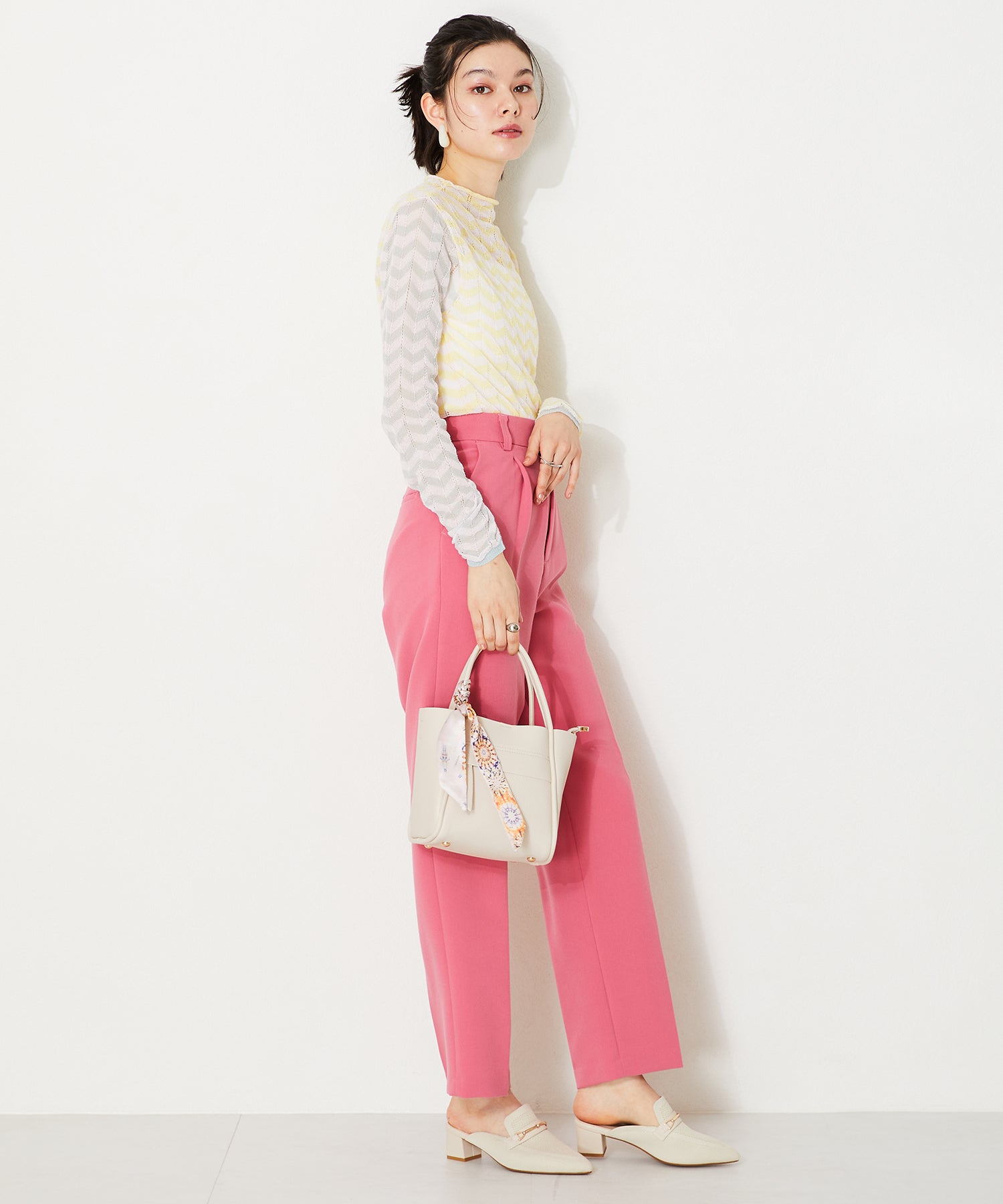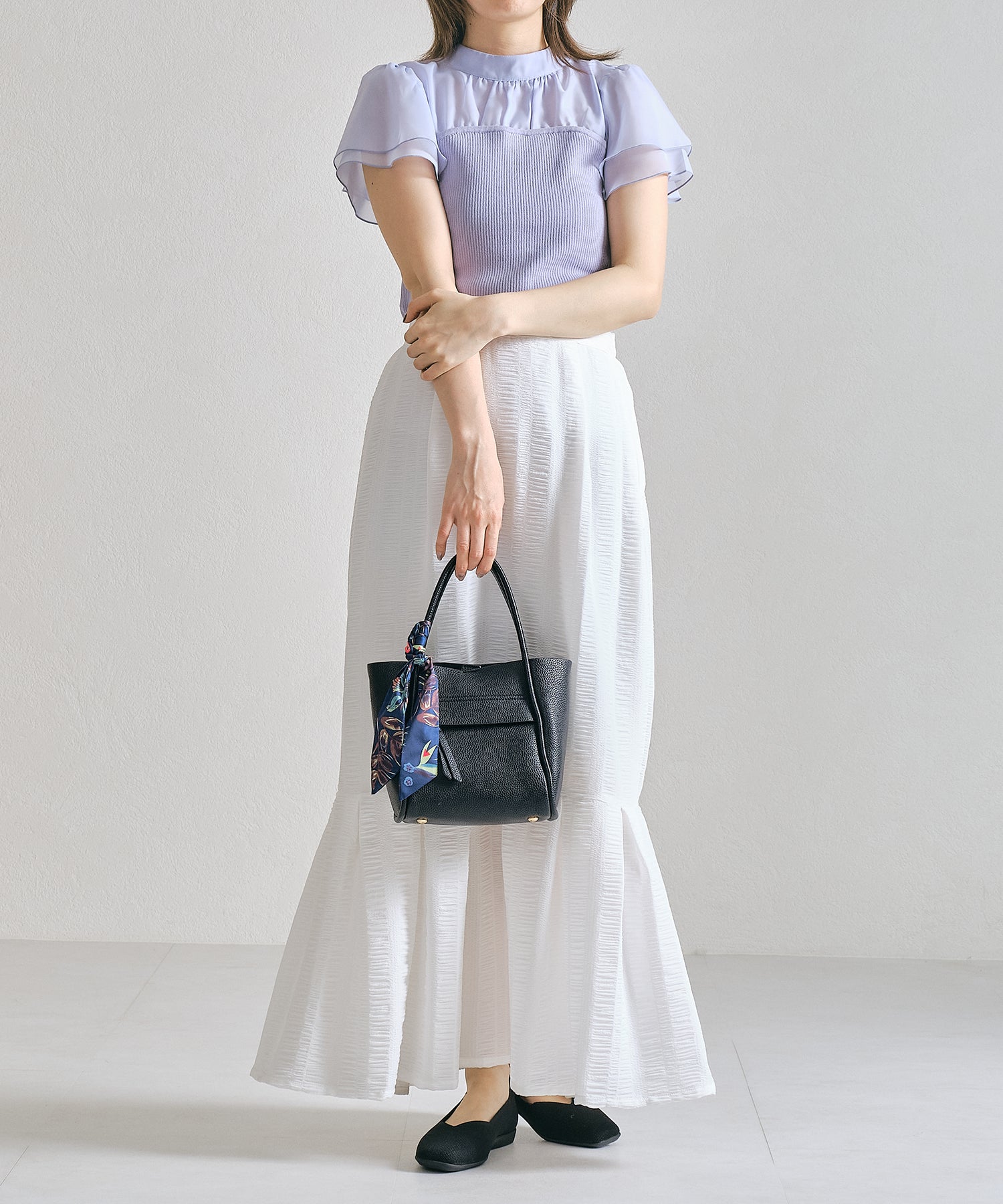ハンドルに施したスカーフが上品な印象に格上げするハンドバッグ。コンパクトなサイズ感ながらもマチが広めなので見た目以上にしっかり荷物が入れられるのも魅力的。バッグインバッグは取り外しも可能なので、入れる物に合わせて調整もできる。太さの異なる2種類のショルダーストラップ付きで何通りも楽しめる優れもの。