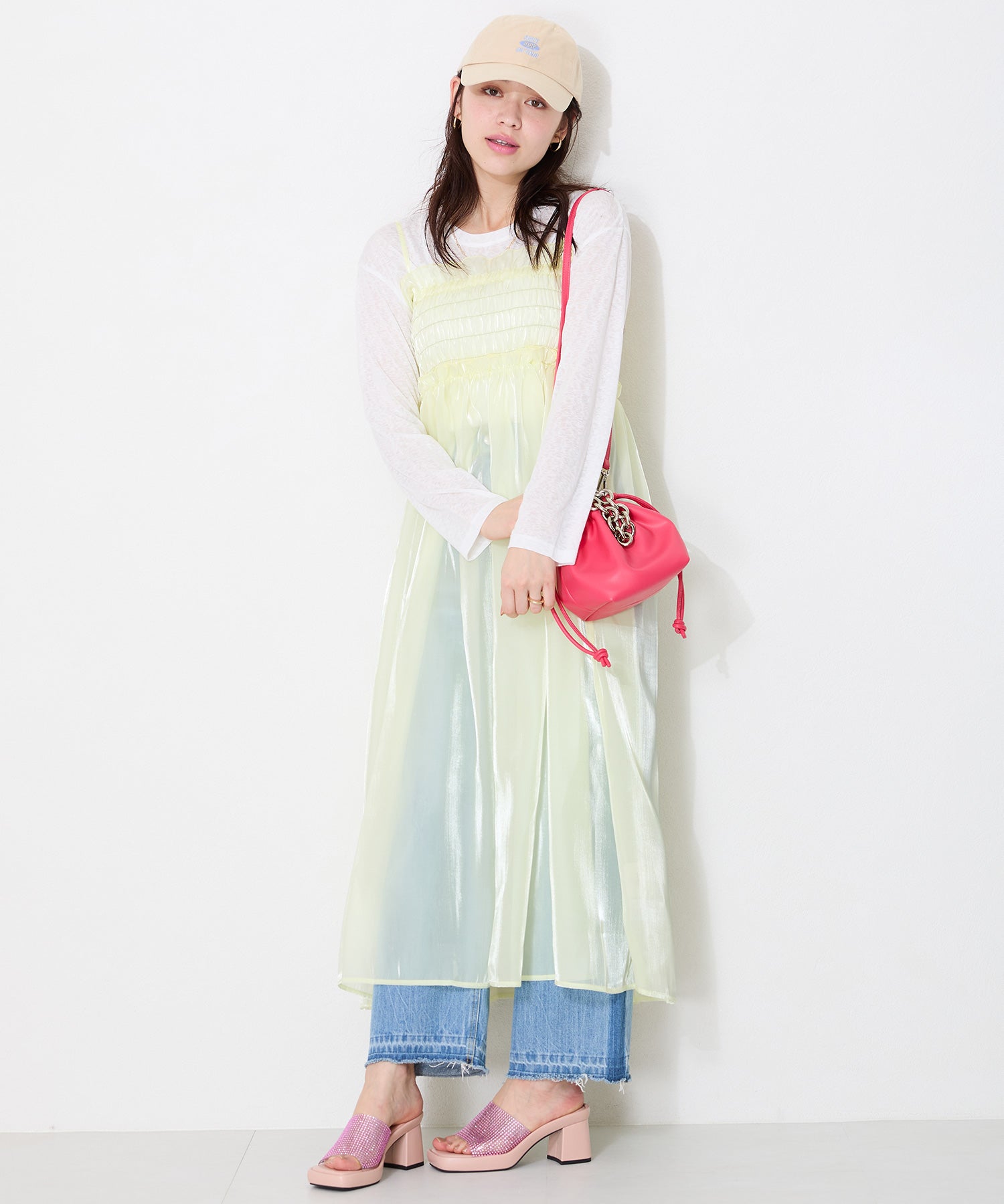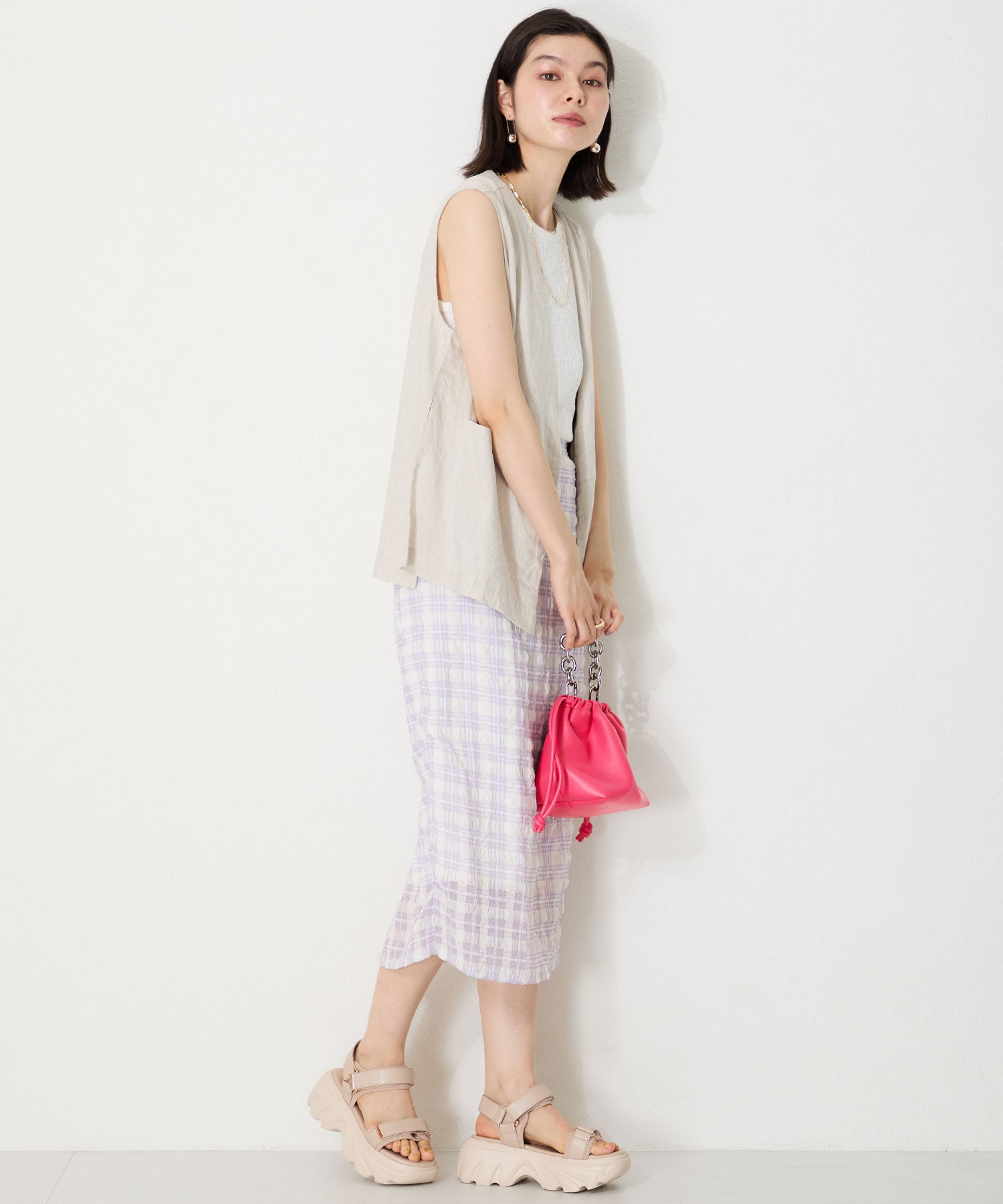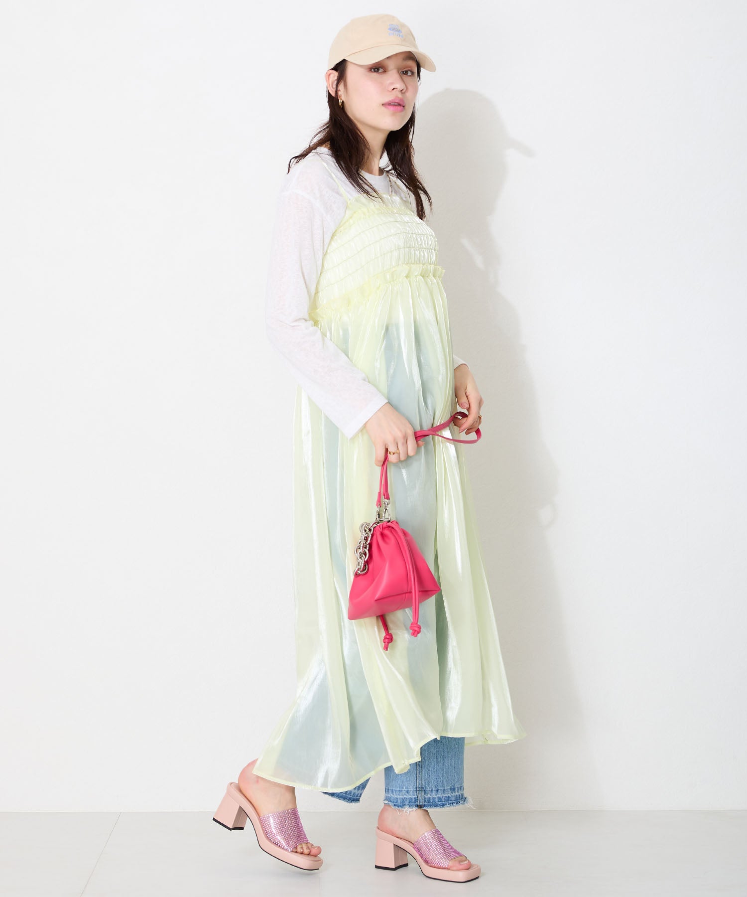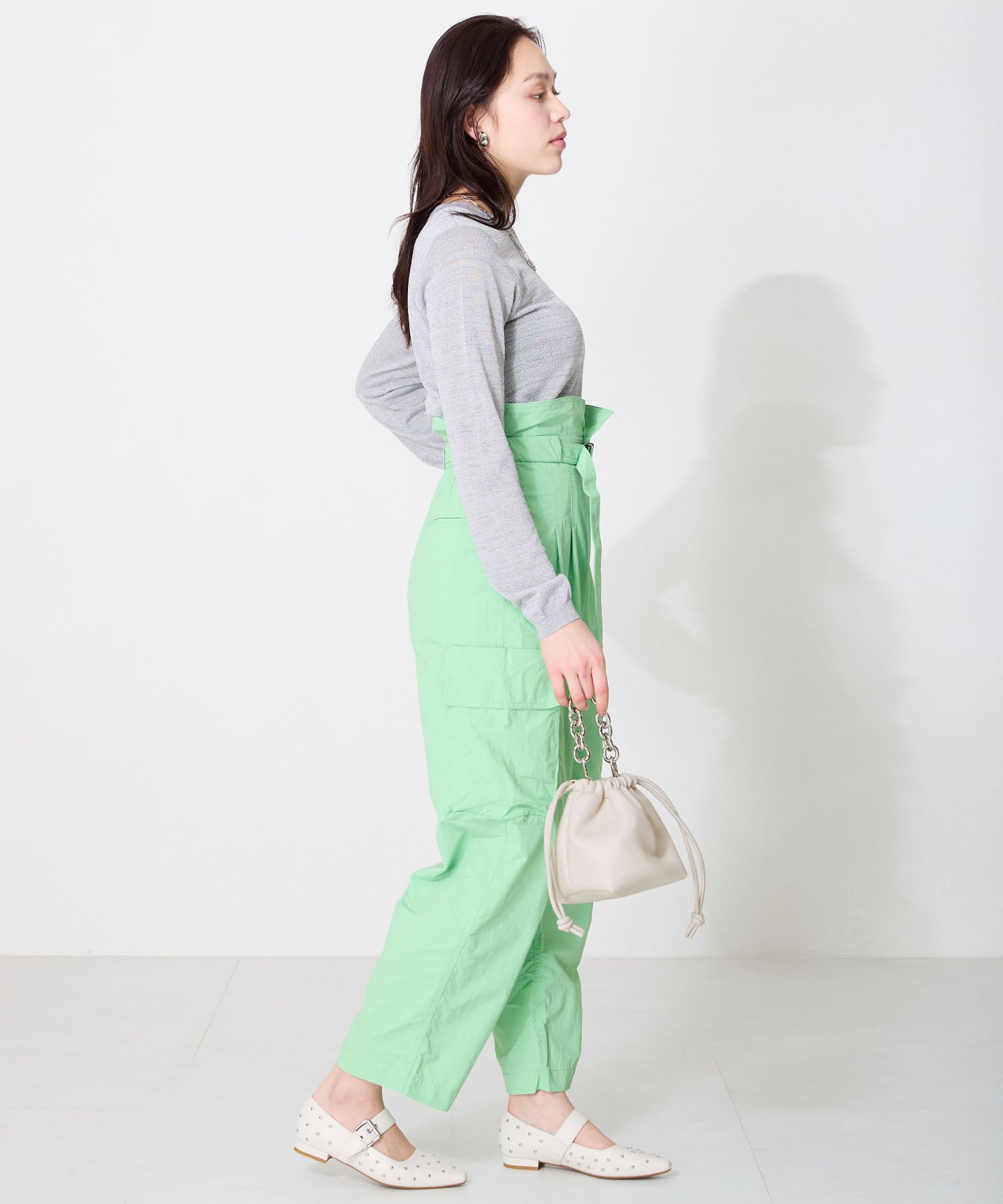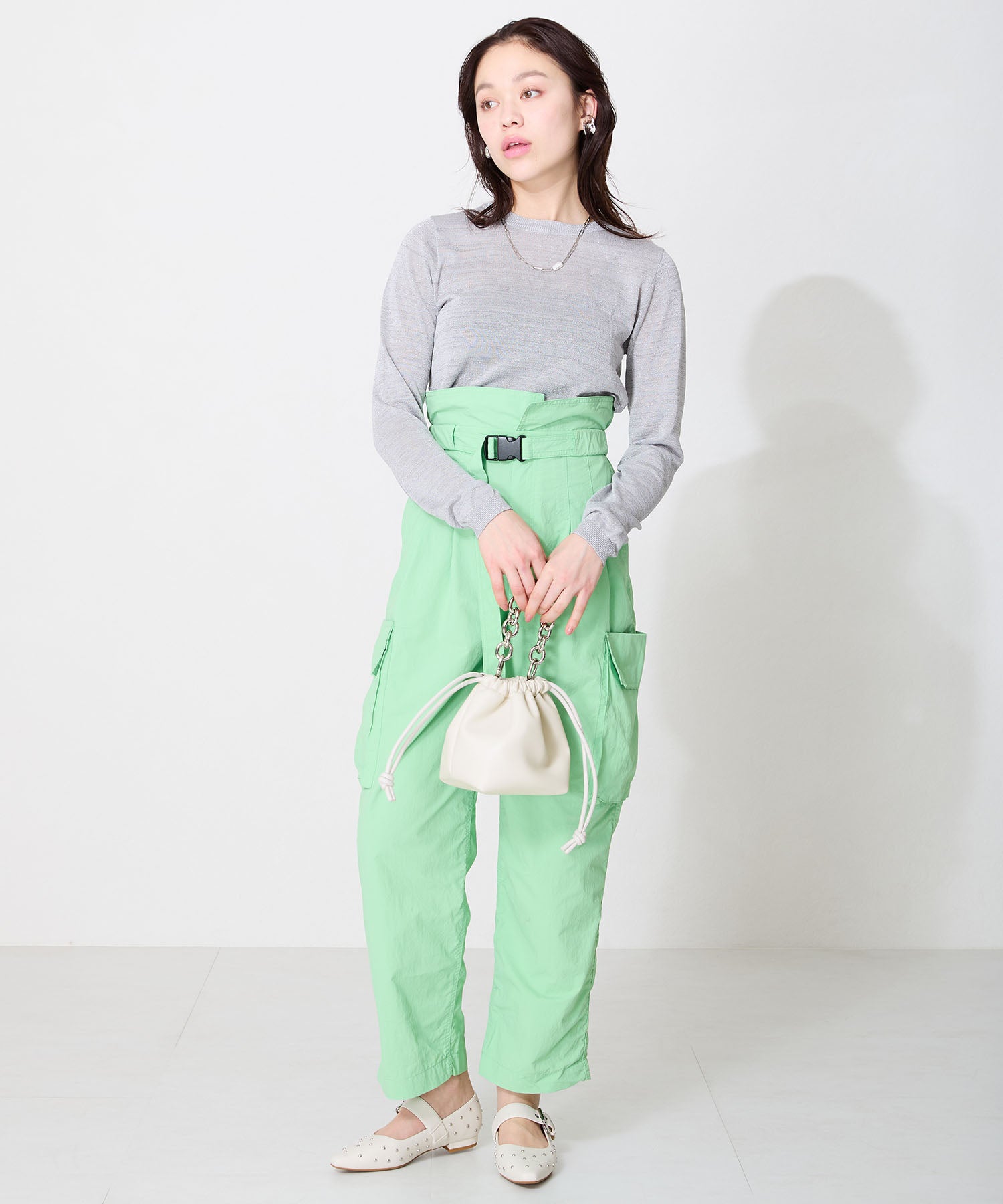 コロンとしたフォルムが可愛い巾着バッグは取り外し可能な太めのチェーンストラップで一気に雰囲気が変わるアイテム。本体と同色のショルダーストラップも付いているのでハンドバッグとしてだけではなく、肩掛けや斜め掛けも出来る優秀さも魅力。シンプルなデザインで季節問わず、どんなスタイルにも合わせやすい。