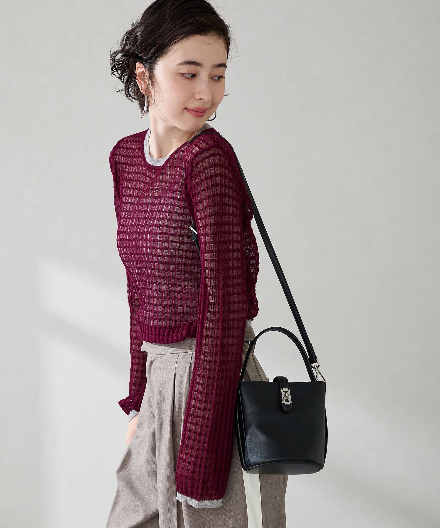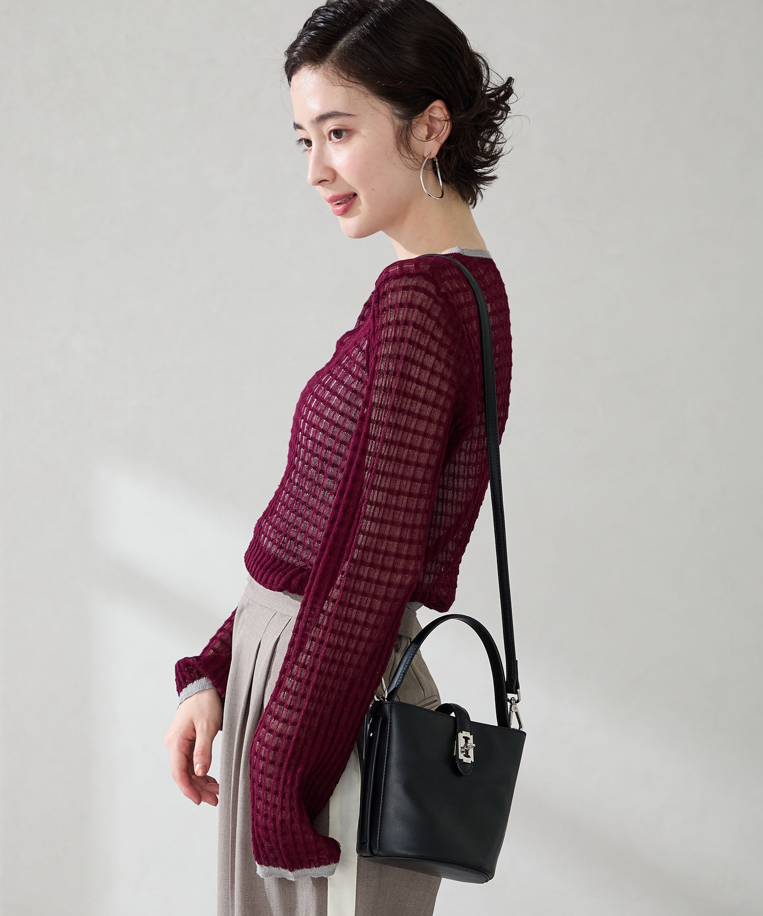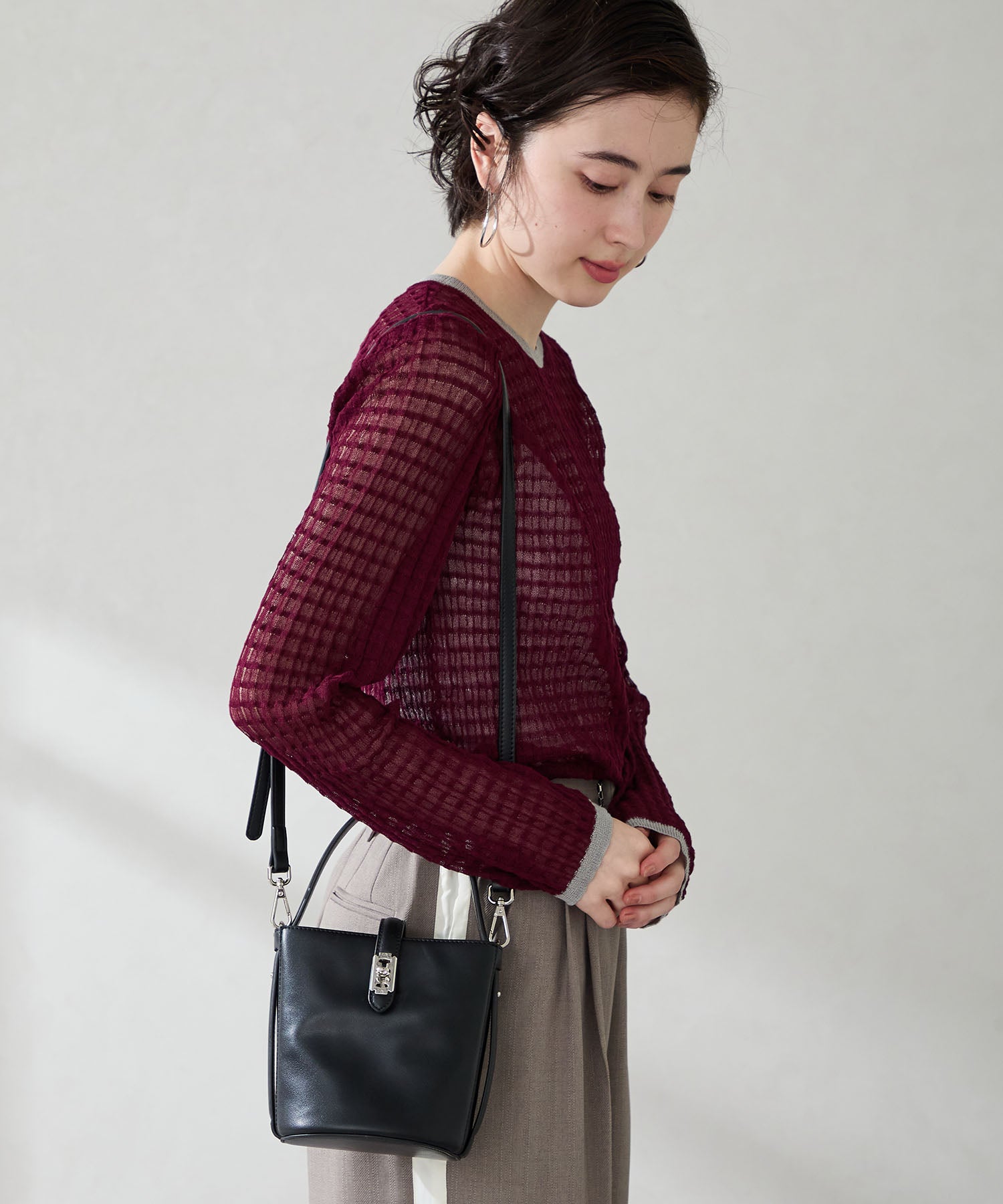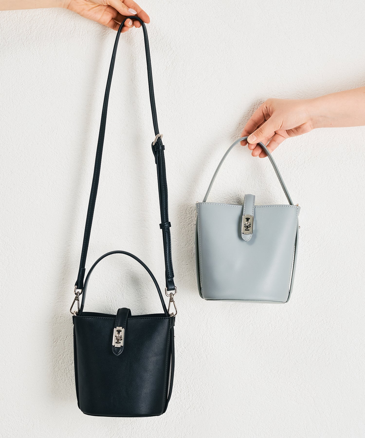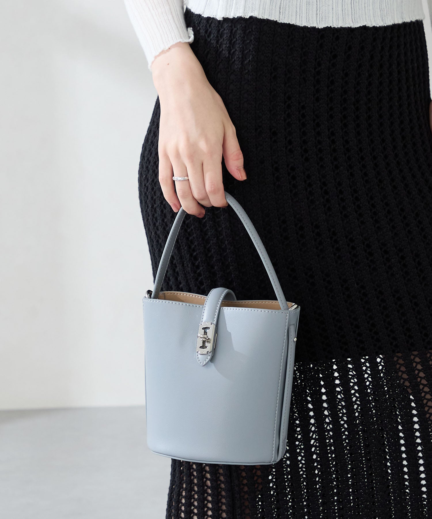 バケツ型のフォルムとトレンド感のある小さめサイズで女性らしさを楽しめるアイテム。コンパクトながらもマチは大きく自立するので使い勝手が良く、間口を大きく広げて使え機能面にもこだわったバッグ。付属のストラップは取り外しが可能でハンドバッグとしても斜め掛けのショルダーバッグとしても使えるのも嬉しい。