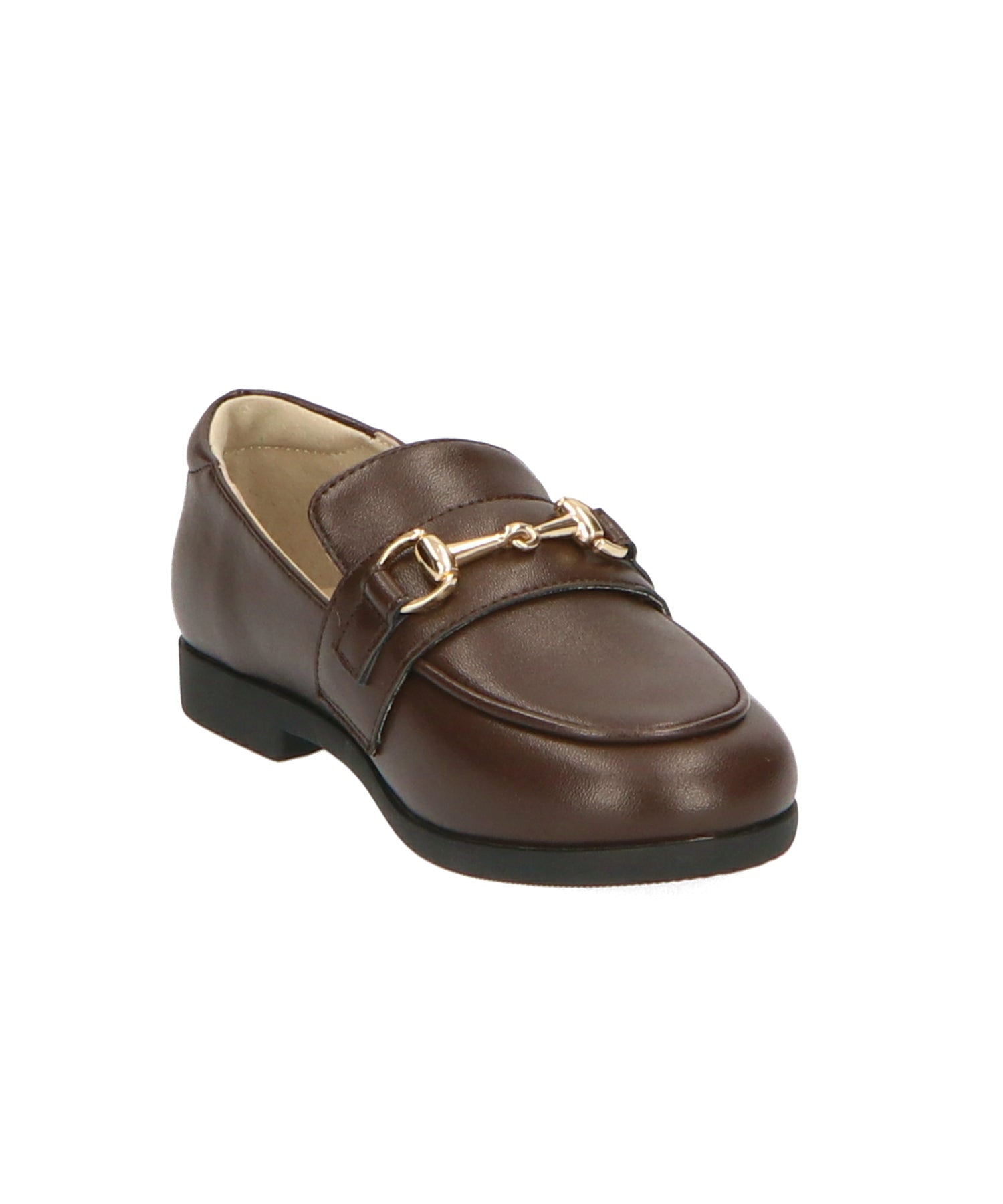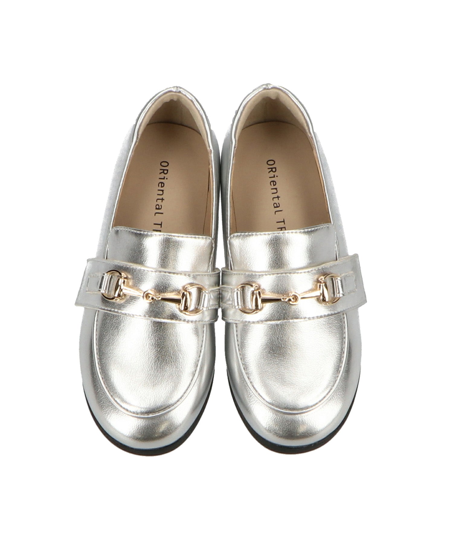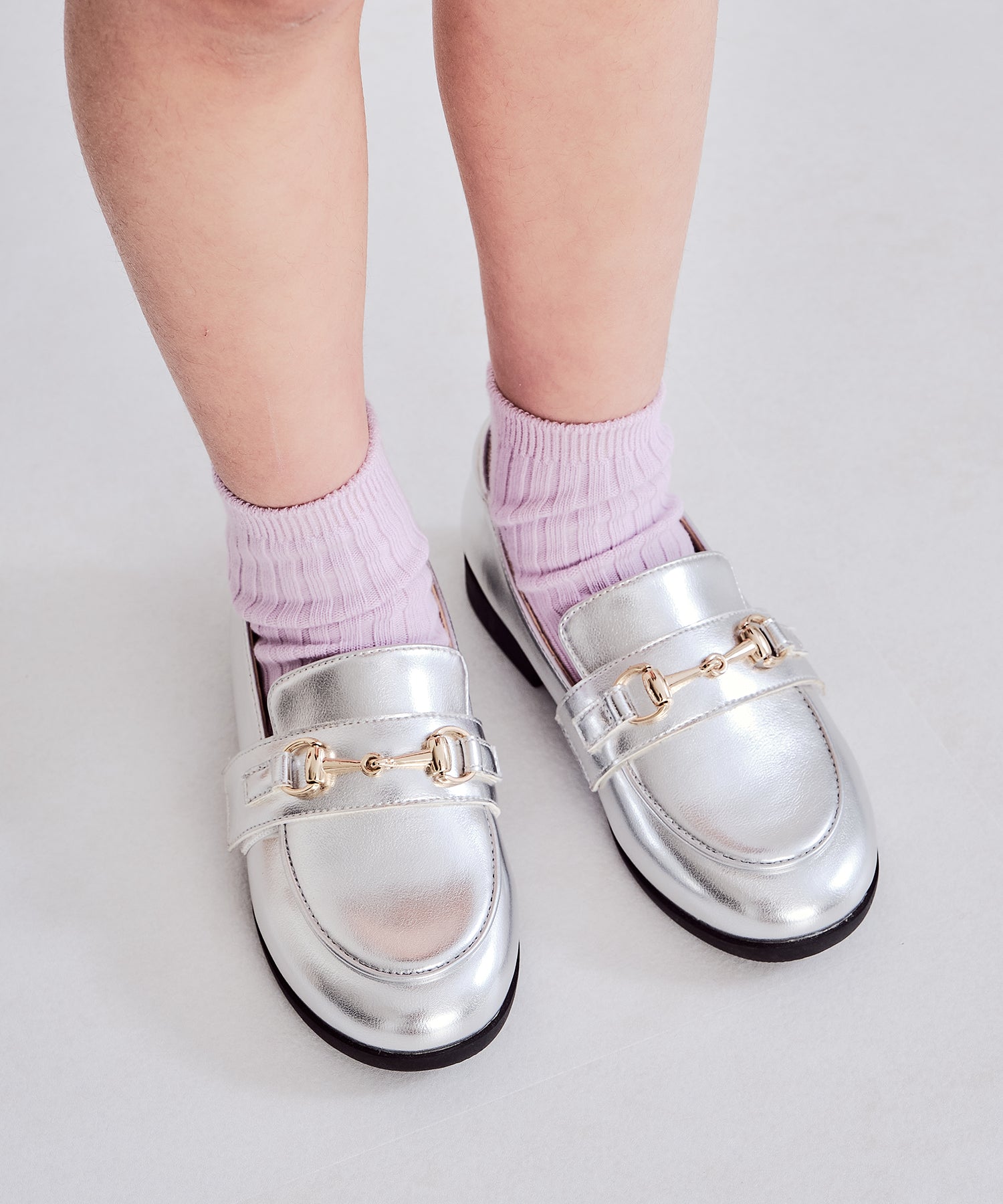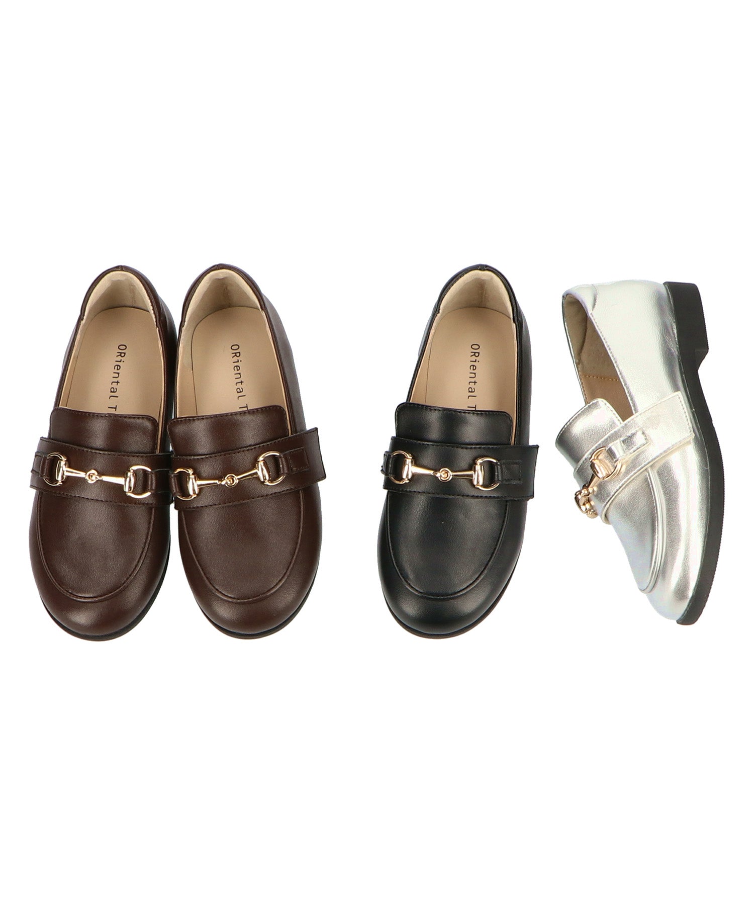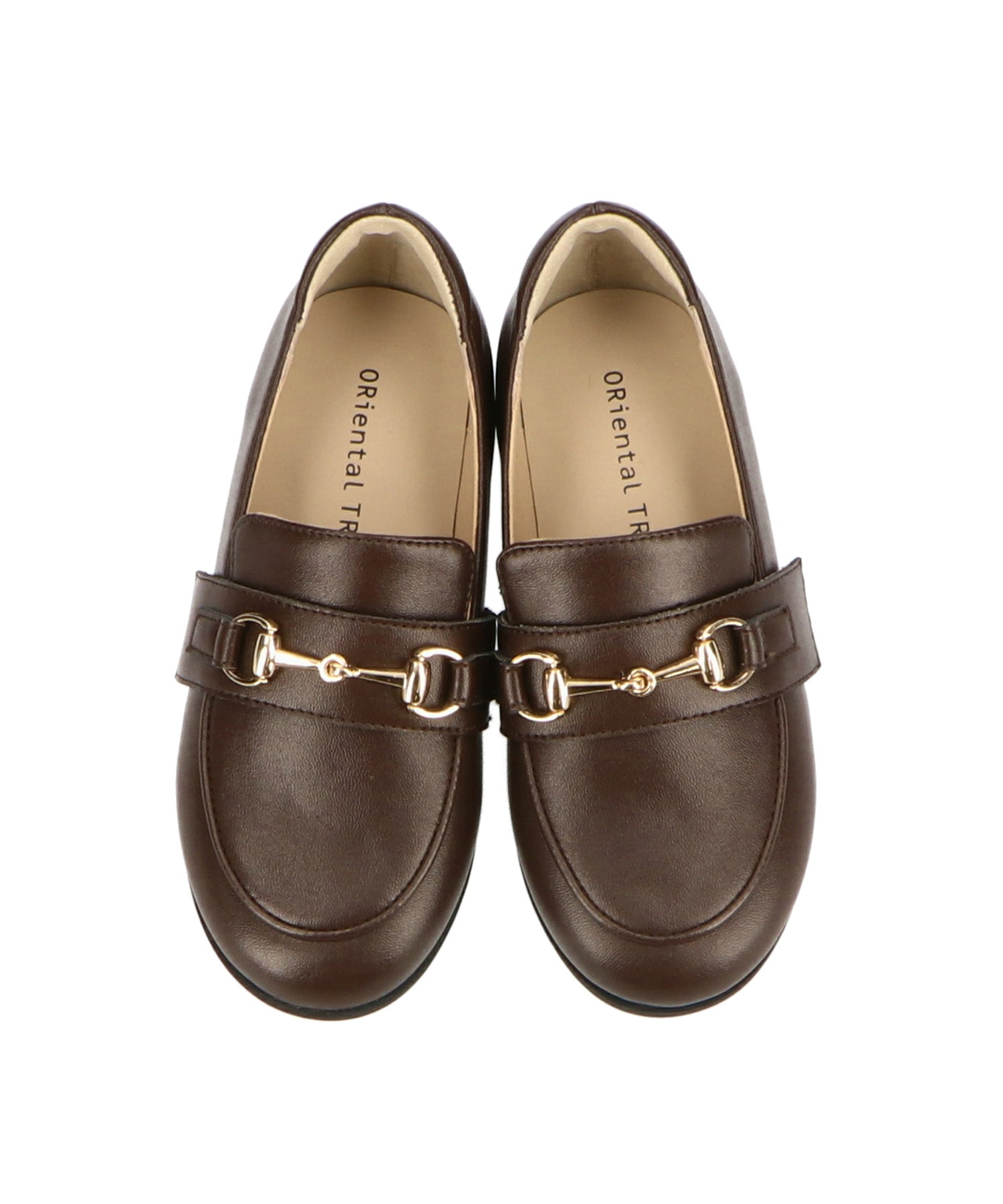 ゴールドのビットモチーフが高級感たっぷりなローファーは、マットな質感のスムース素材を使用し、カジュアルでもオケージョンでも使いやすく仕上げた1足。甲部分はマジックテープで着脱ができ、クッション入りで履き心地も抜群。靴下やタイツ合わせもおすすめ。