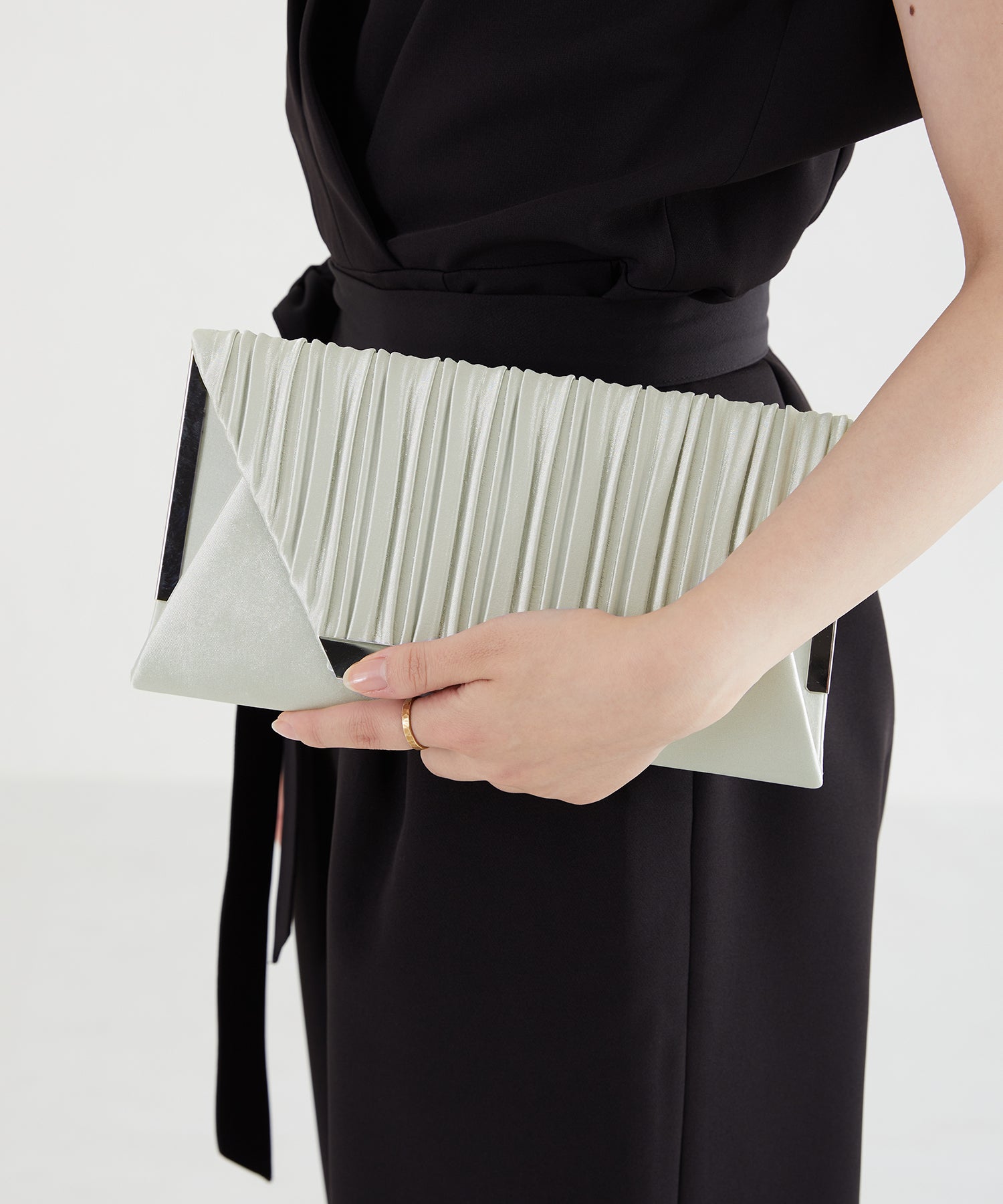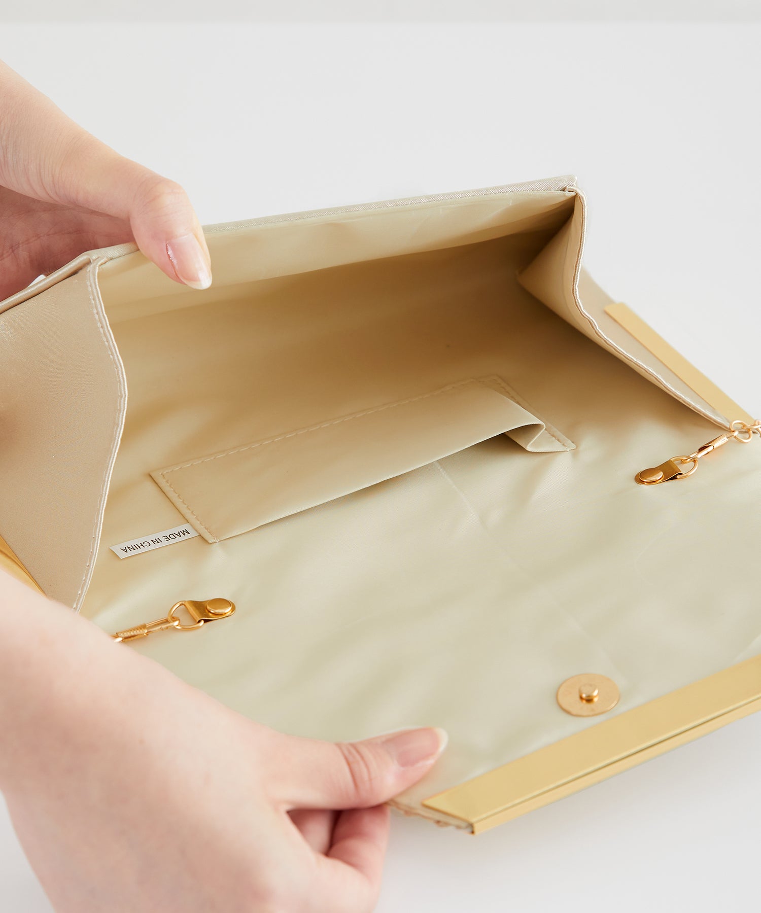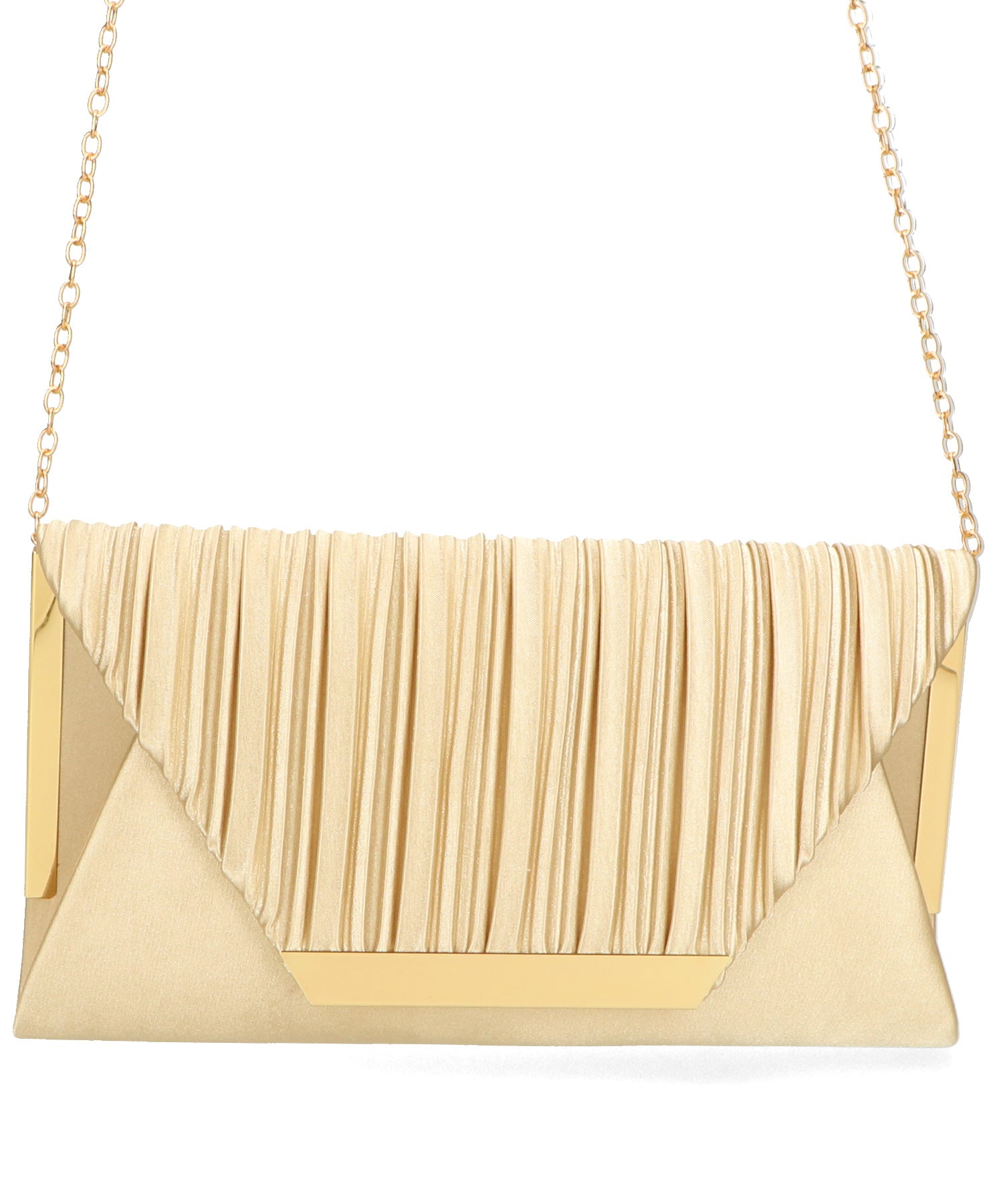 クラシカルで上品な雰囲気漂うレター型のクラッチバッグ。どんなスタイルにも合わせやすいシンプルなデザインの中にも、プレート装飾やプリーツサテンなど、ふんだんに華やかさをプラス。ショルダーチェーン付きでシーンに合わせて持ち替えられる2way仕様。