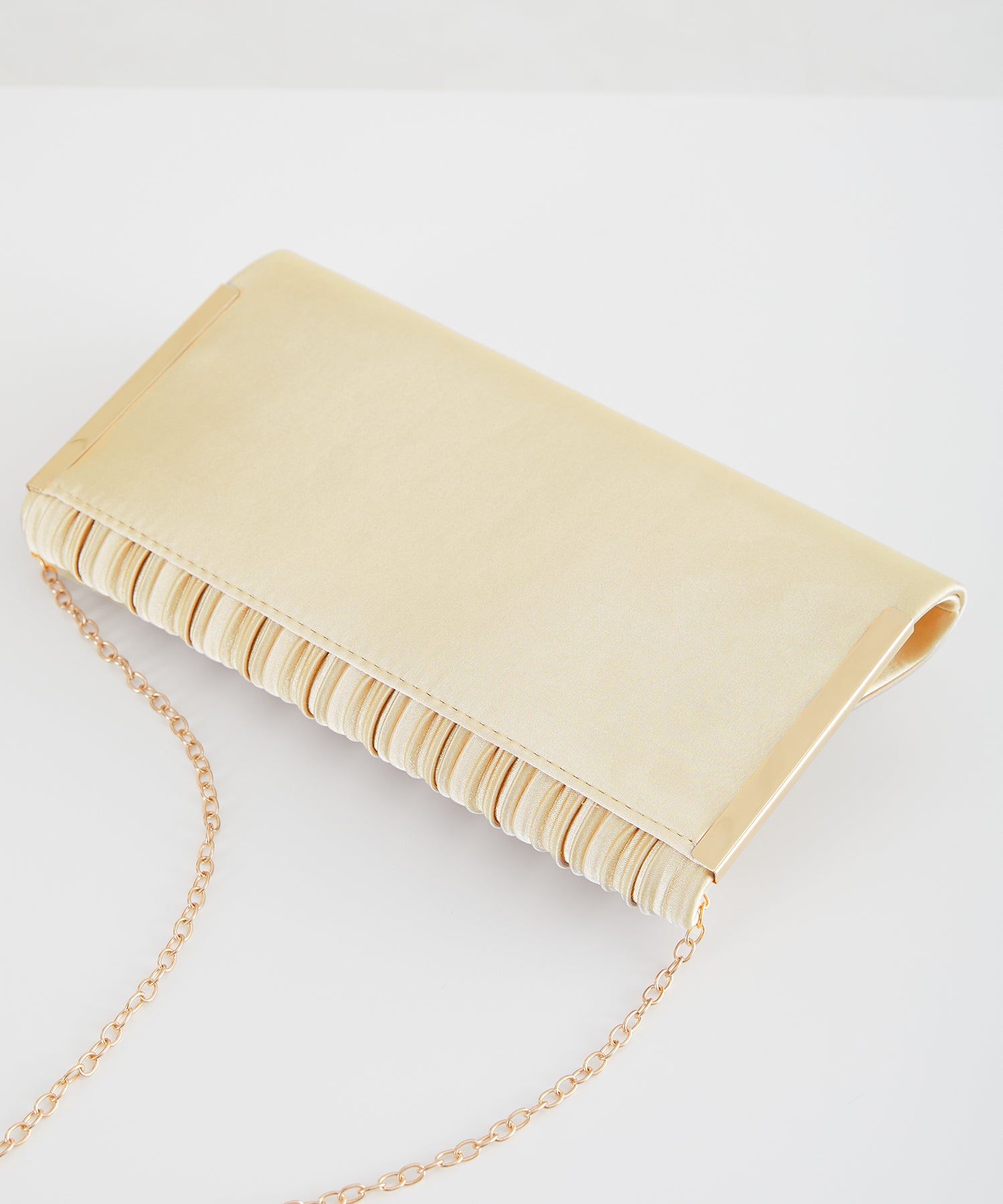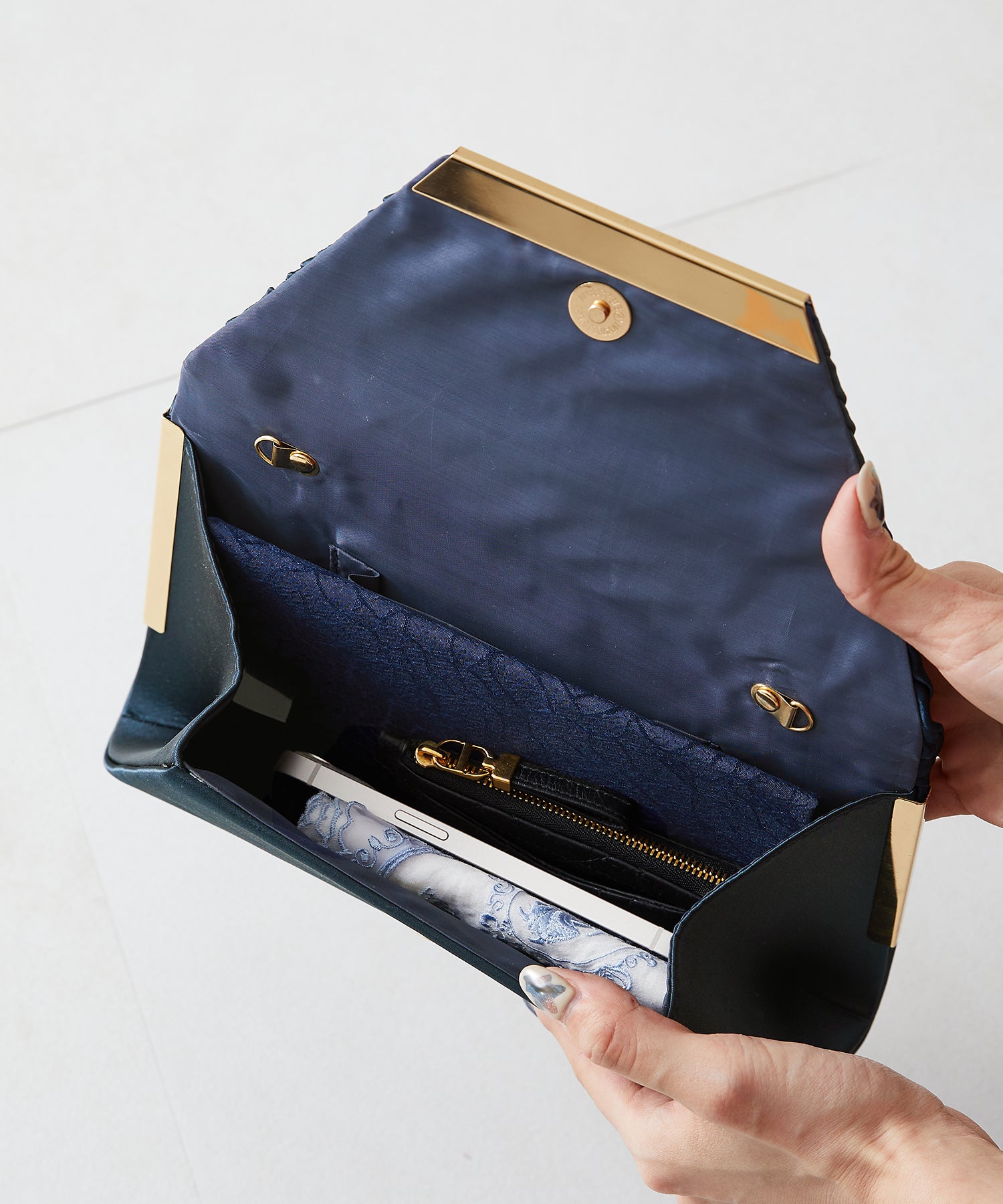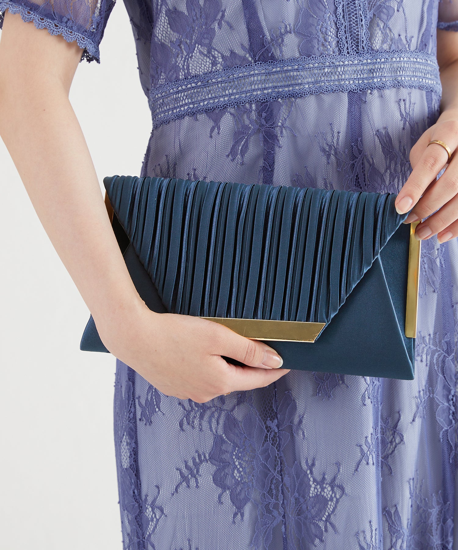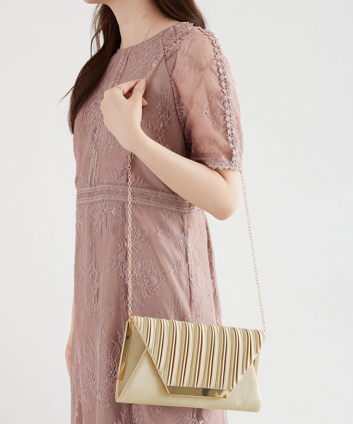クラシカルで上品な雰囲気漂うレター型のクラッチバッグ。どんなスタイルにも合わせやすいシンプルなデザインの中にも、プレート装飾やプリーツサテンなど、ふんだんに華やかさをプラス。ショルダーチェーン付きでシーンに合わせて持ち替えられる2way仕様。