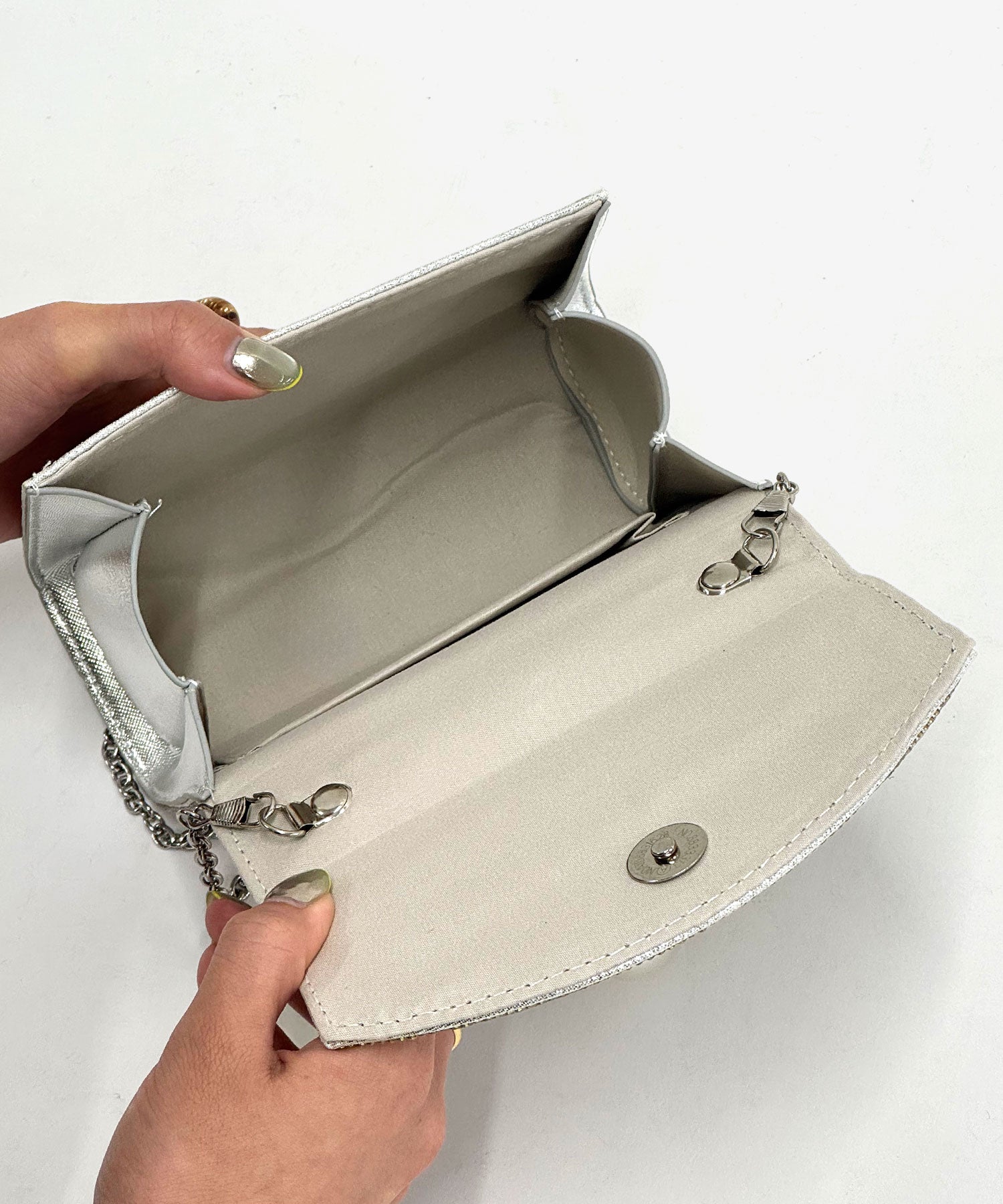 本体:ラインストーン×メタリック合皮(合成皮革)