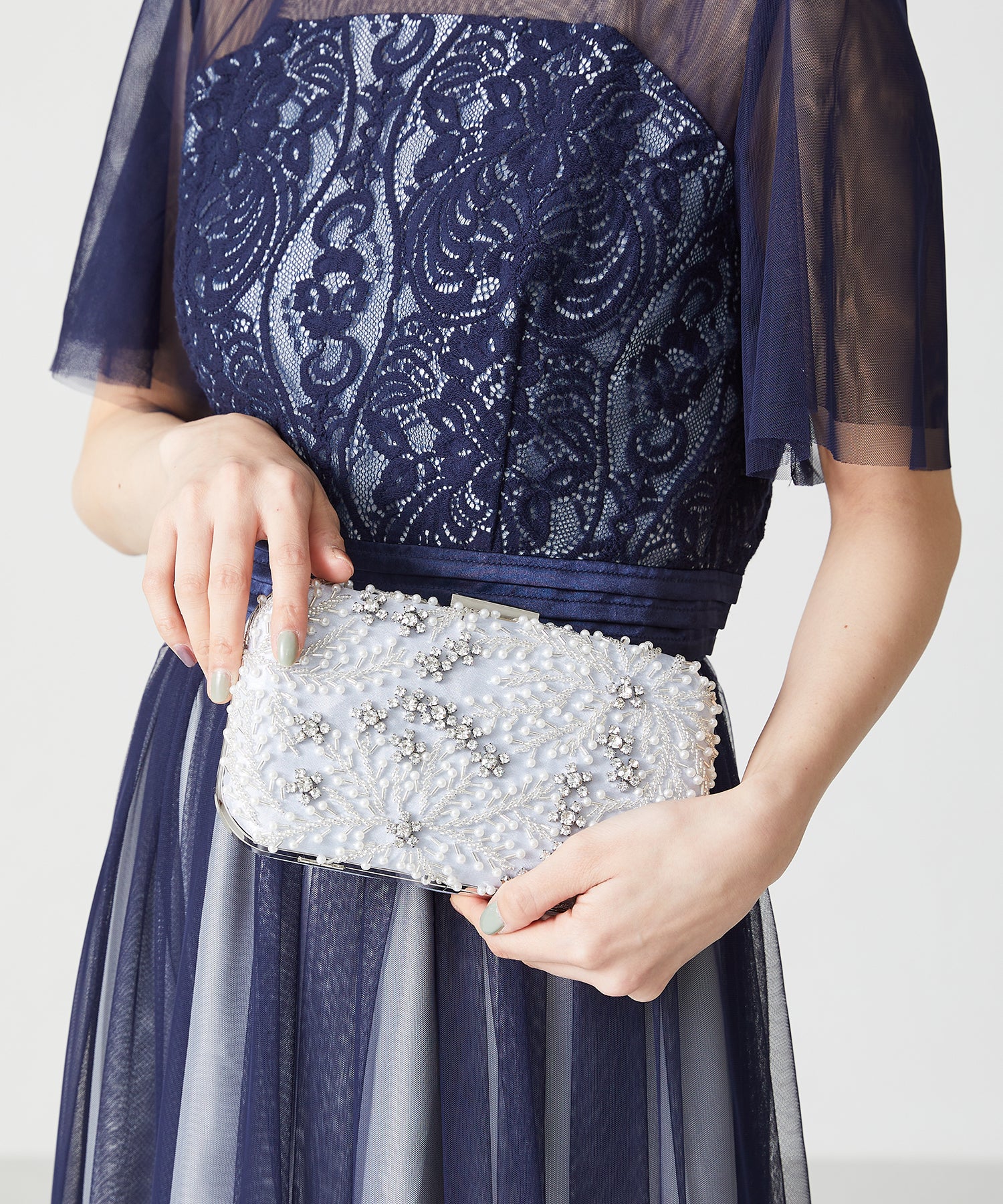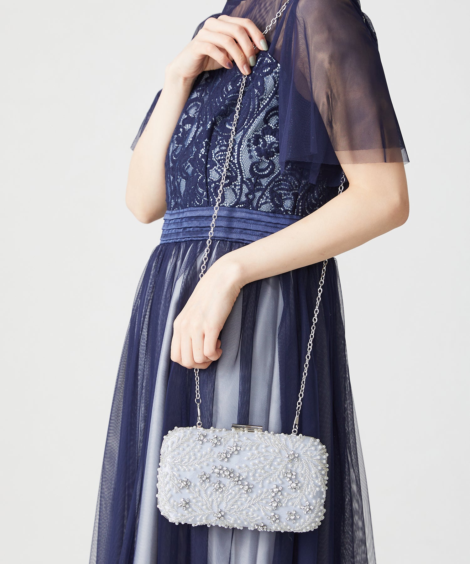 ビーズ刺繍ボックスクラッチバッグ/MOB008【結婚式/オケージョン/パーティー】