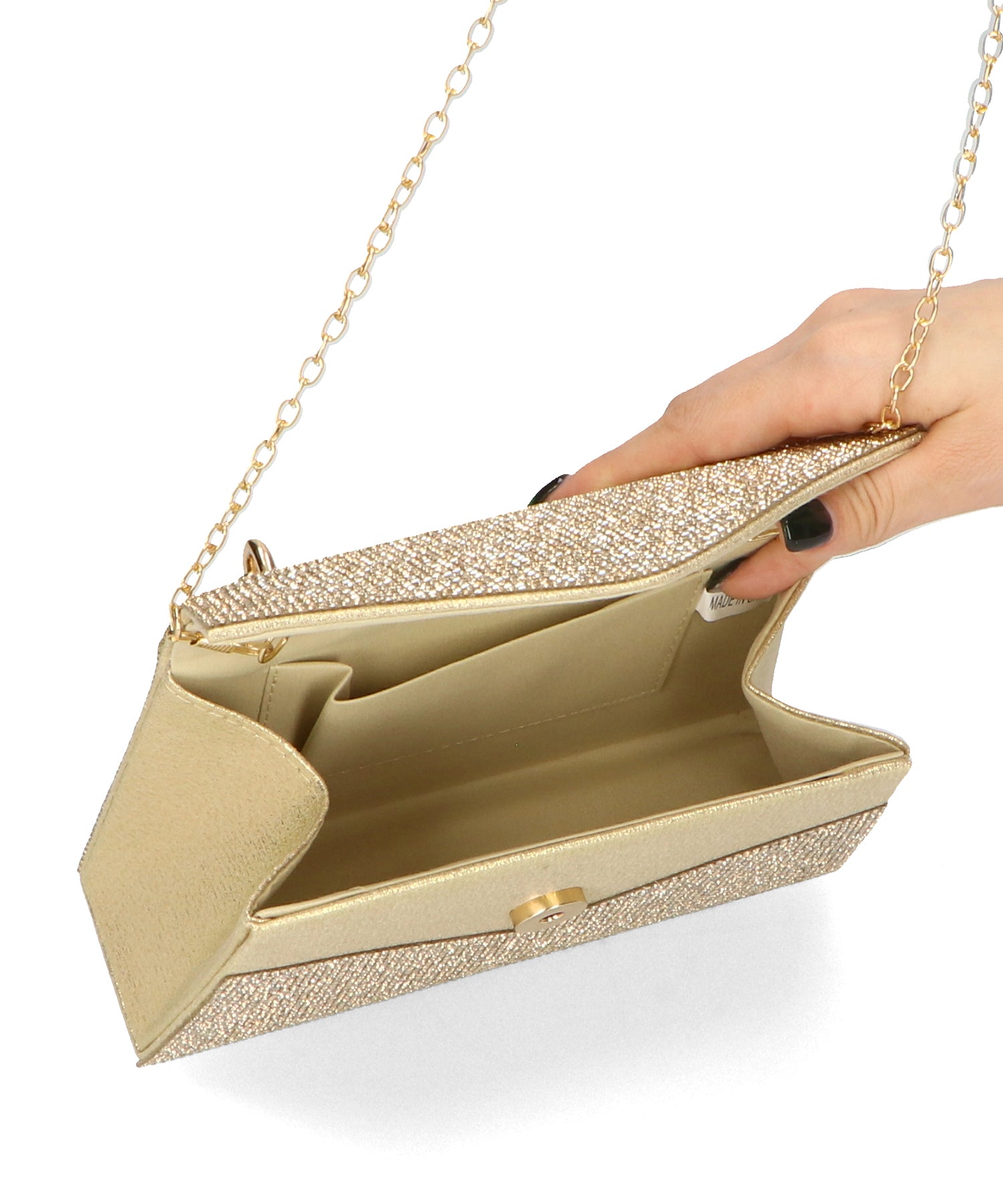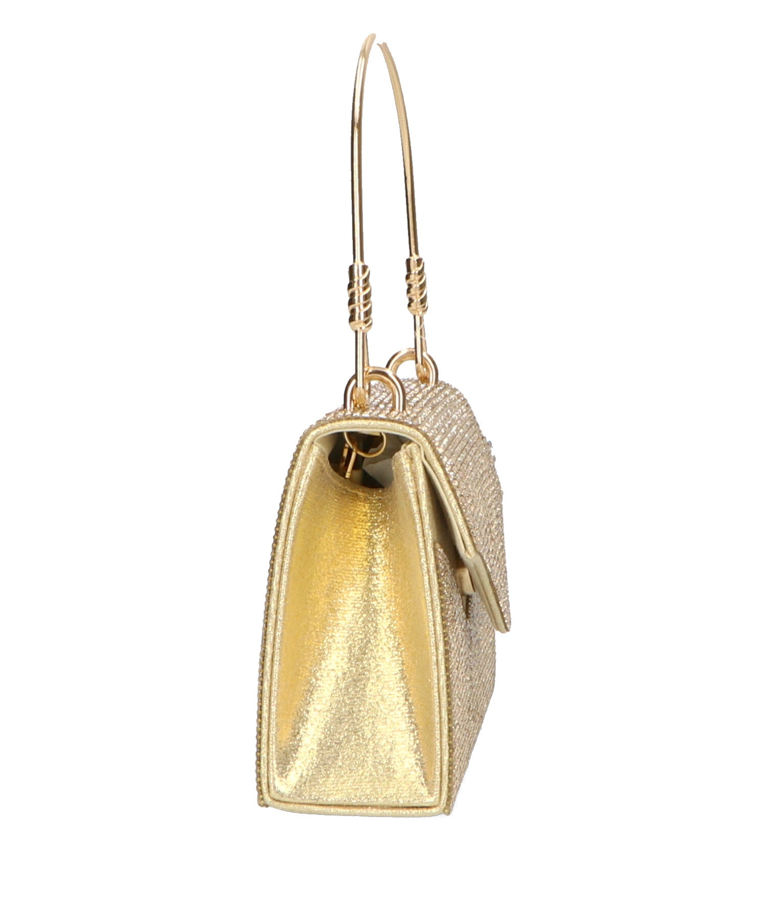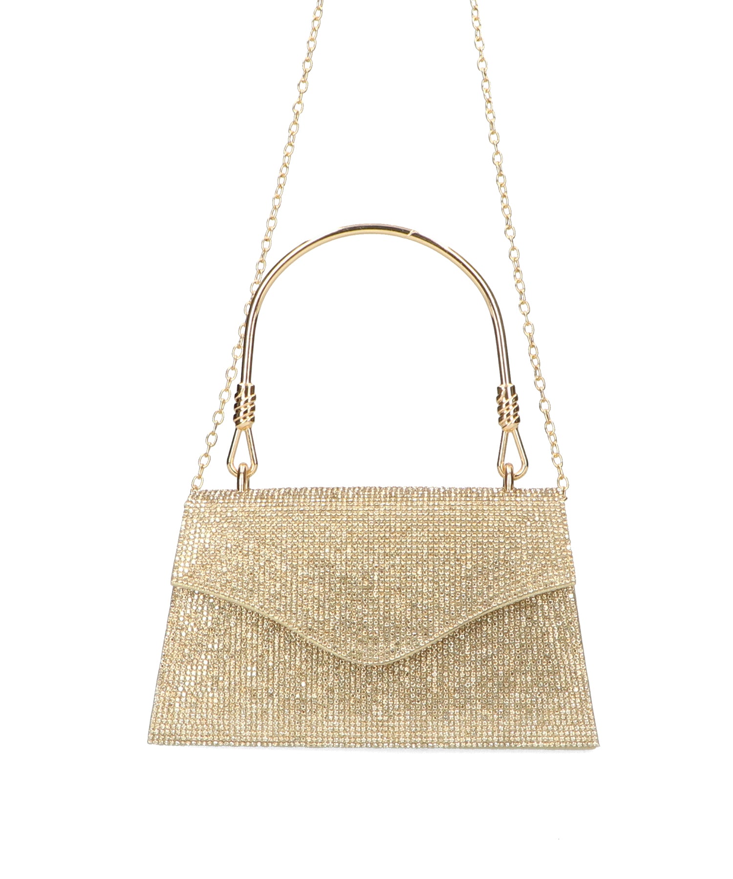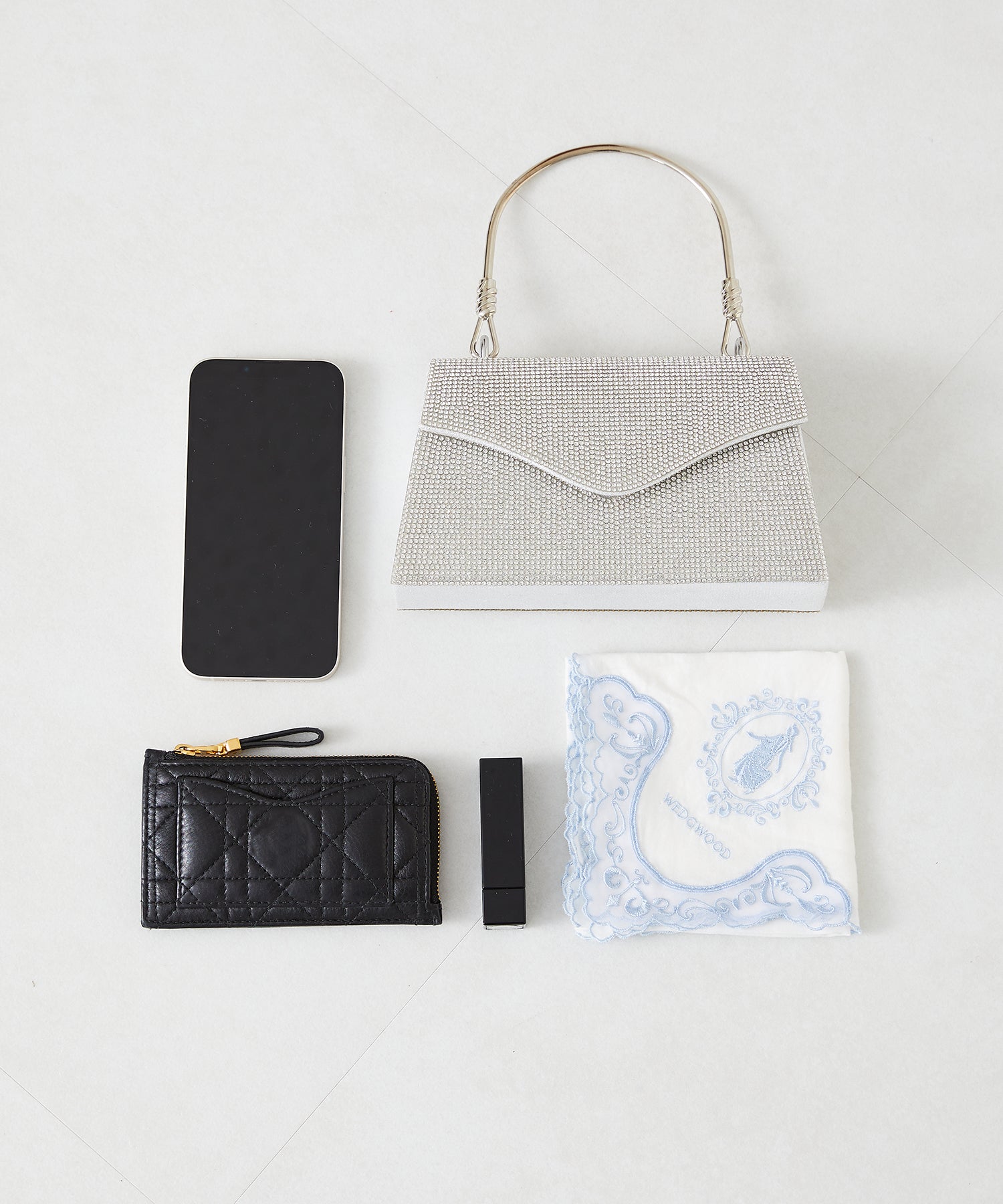 キラキラと輝くラインストーンや、金具の持ち手で高級感溢れるアイテム。アクセサリー感覚で使えるコンパクトなサイズで、パーティースタイルにさりげないアクセントをプラスしてくれる。ショルダーバッグとして使ったり、チェーンを外してハンドバッグにしたりと何通りも楽しめるのでどんなシーンにも活躍しそう。