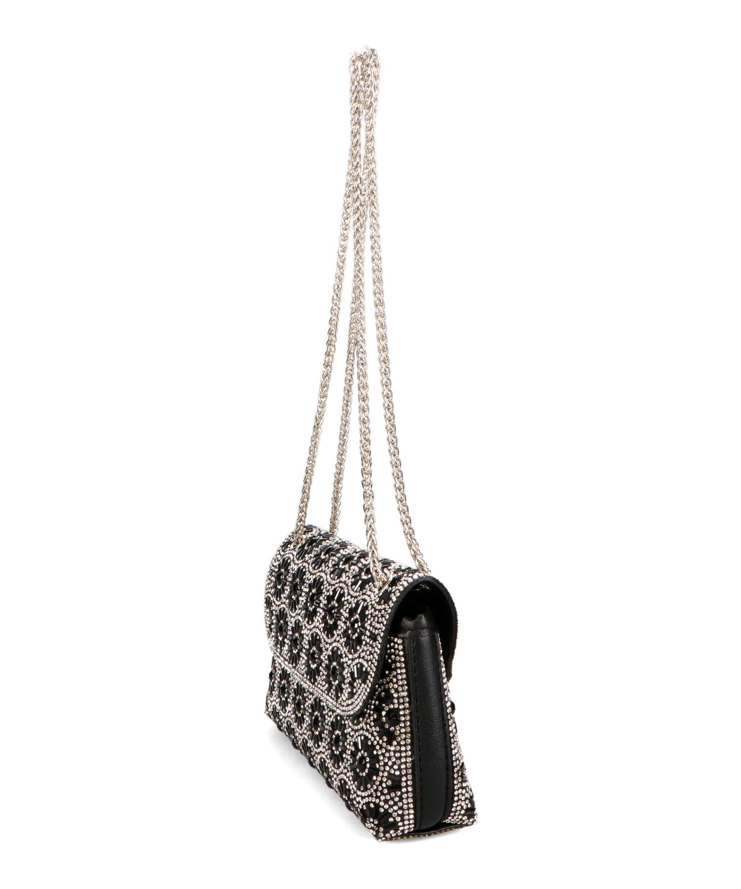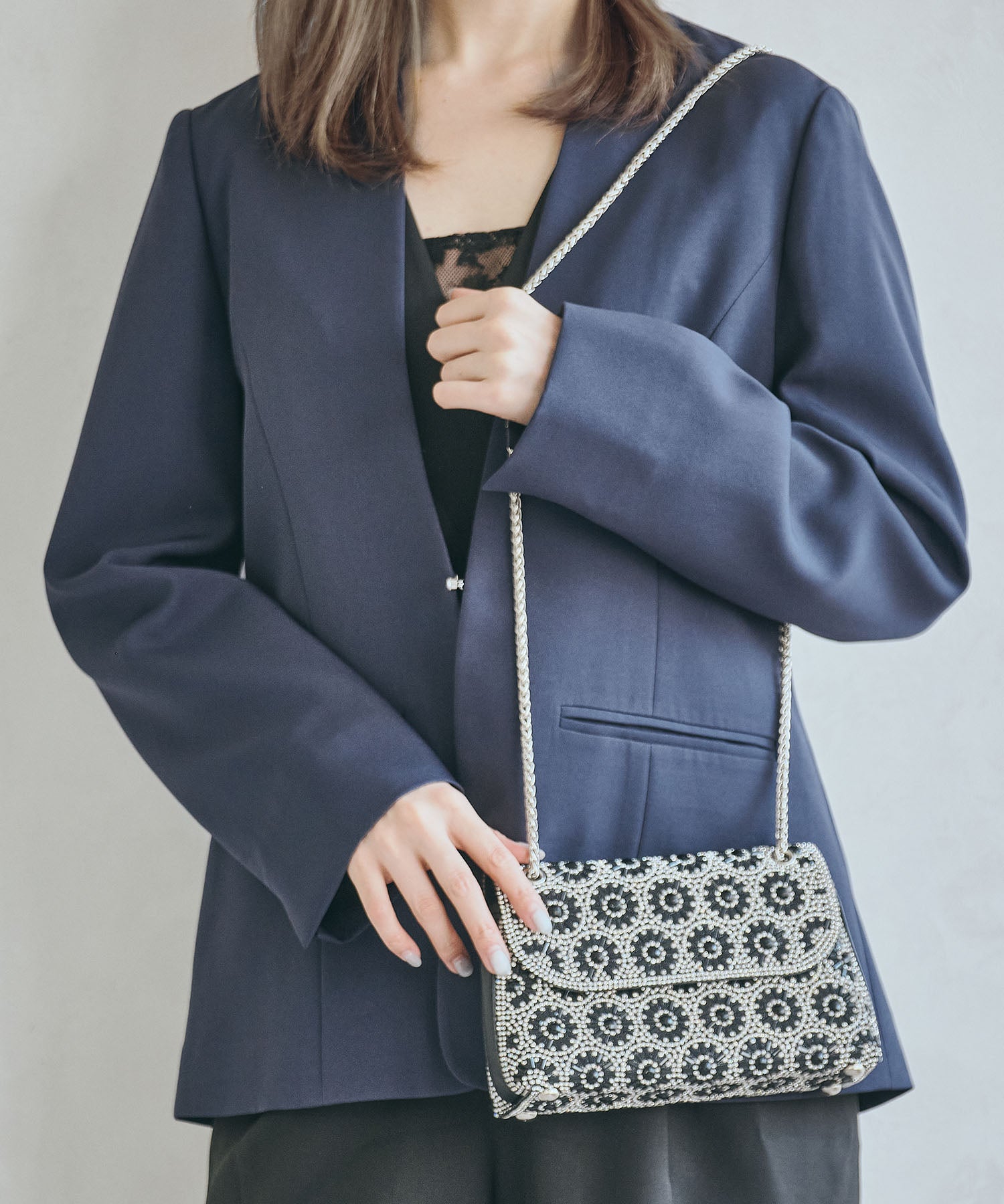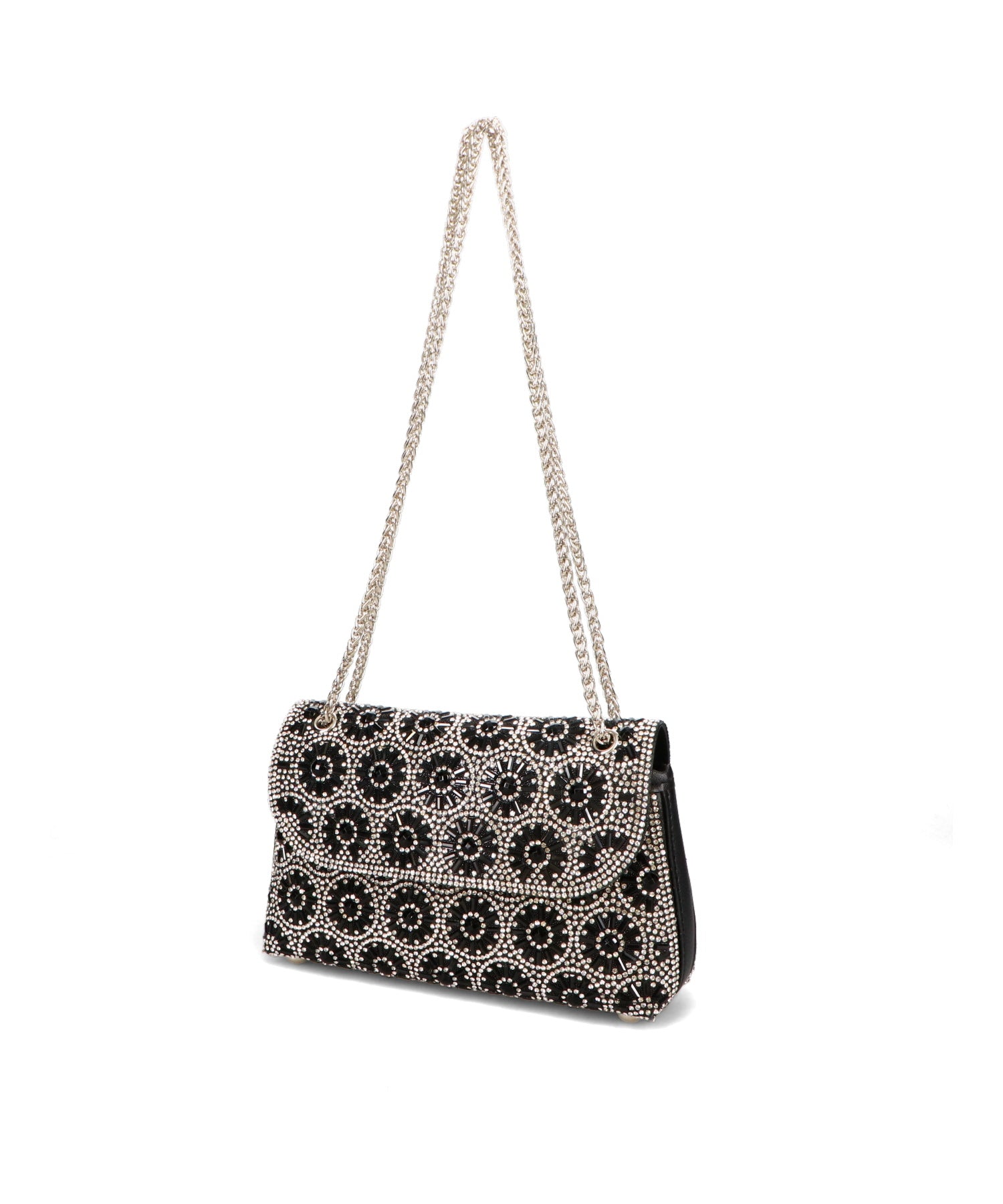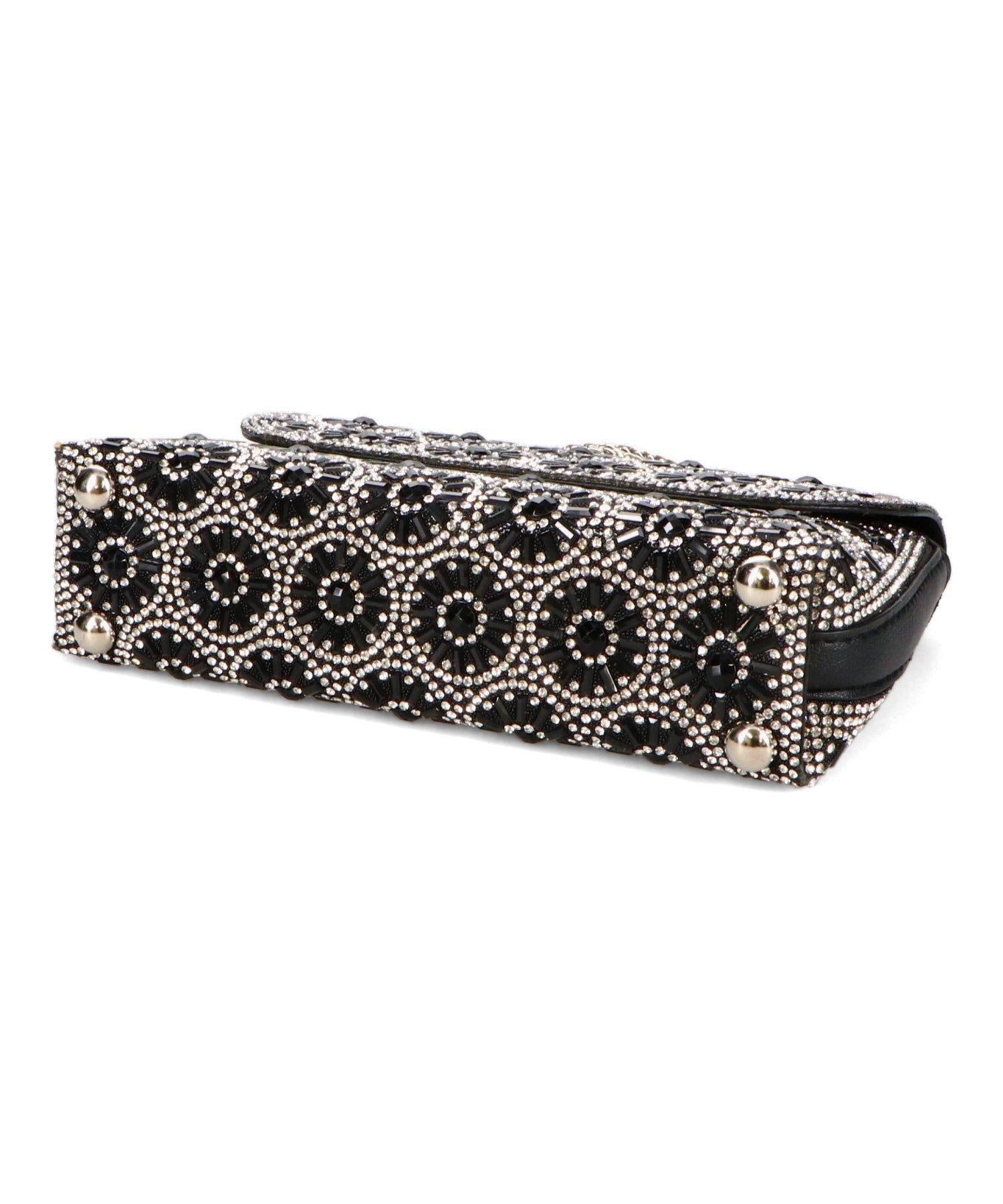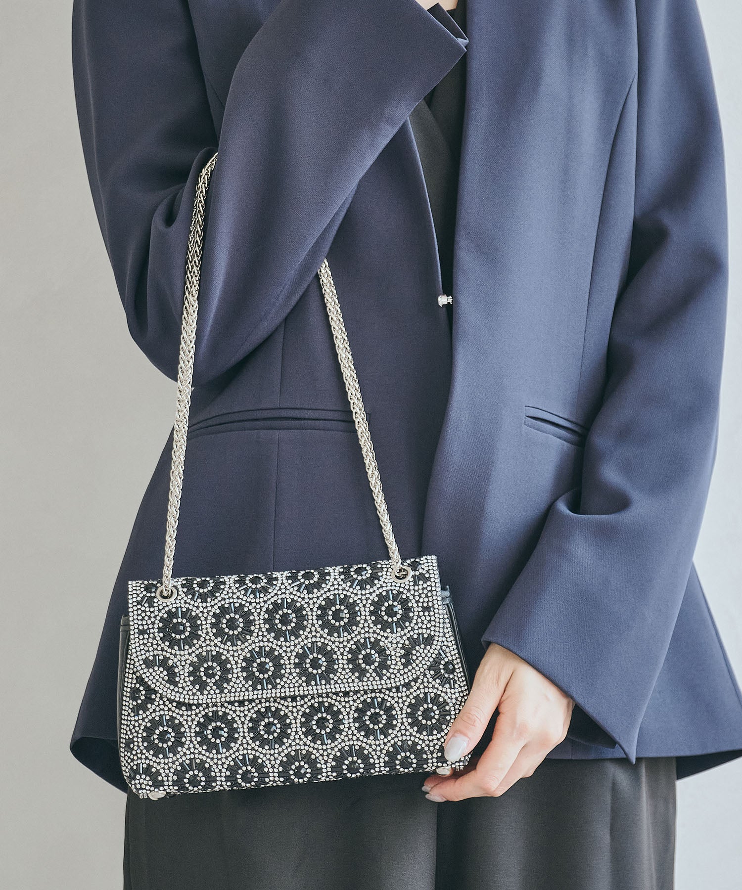 ビジューのフラワーデザインを全面にあしらったレディライクなバッグは、持つだけでワンランク上のドレスコーデに決まるアイテム。マチがしっかりあるので、小ぶりな見た目ながらも収納力もばっちり。持ち手のチェーンは短くしてハンドバッグ、片方を伸ばしてショルダーとして使うことも可能。