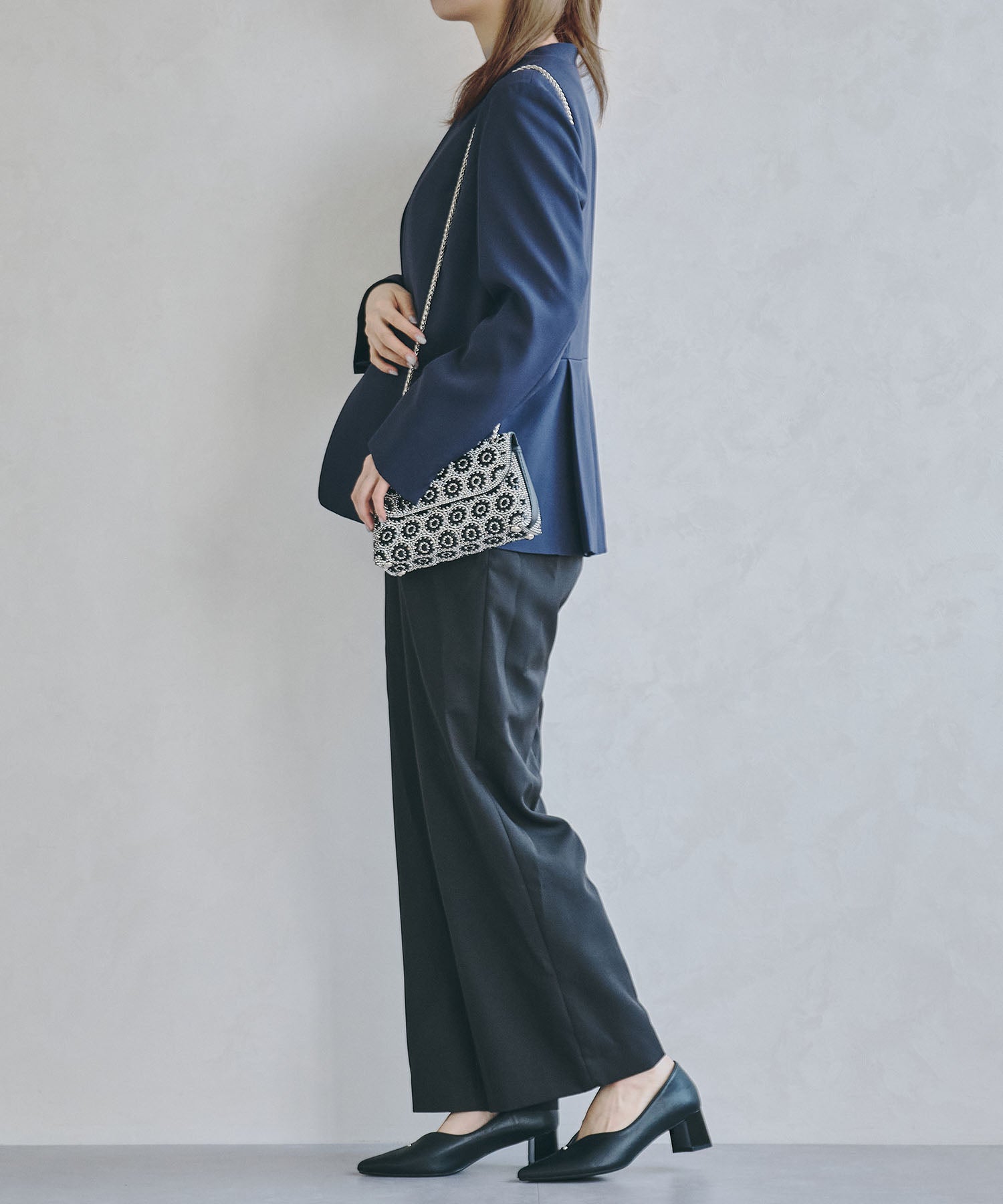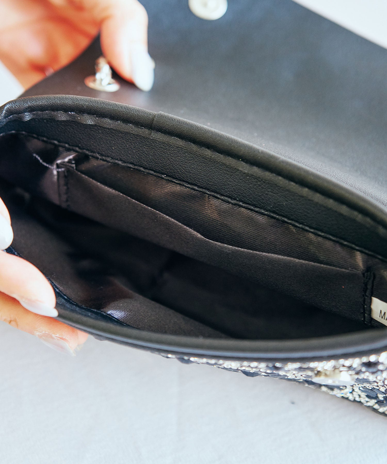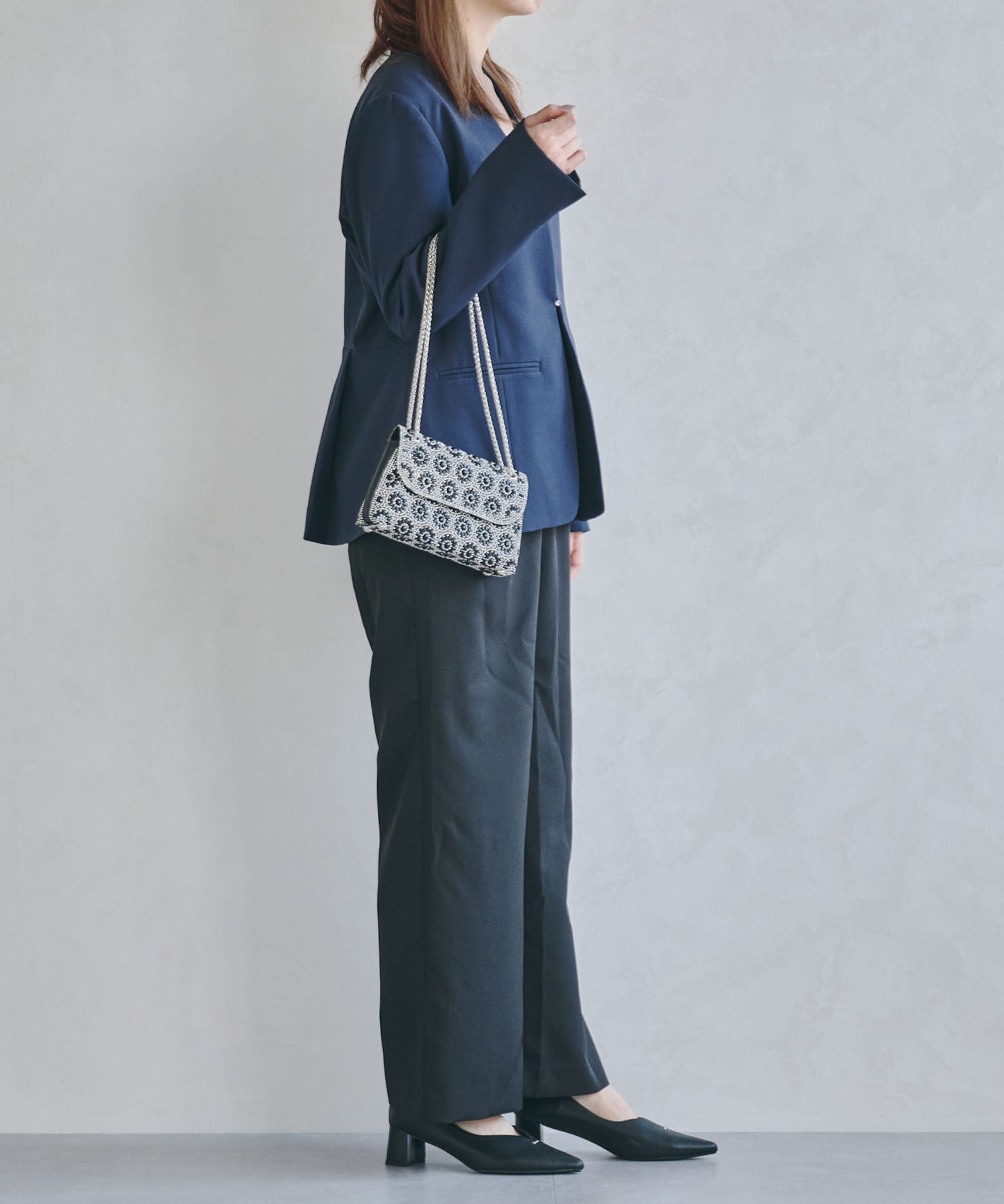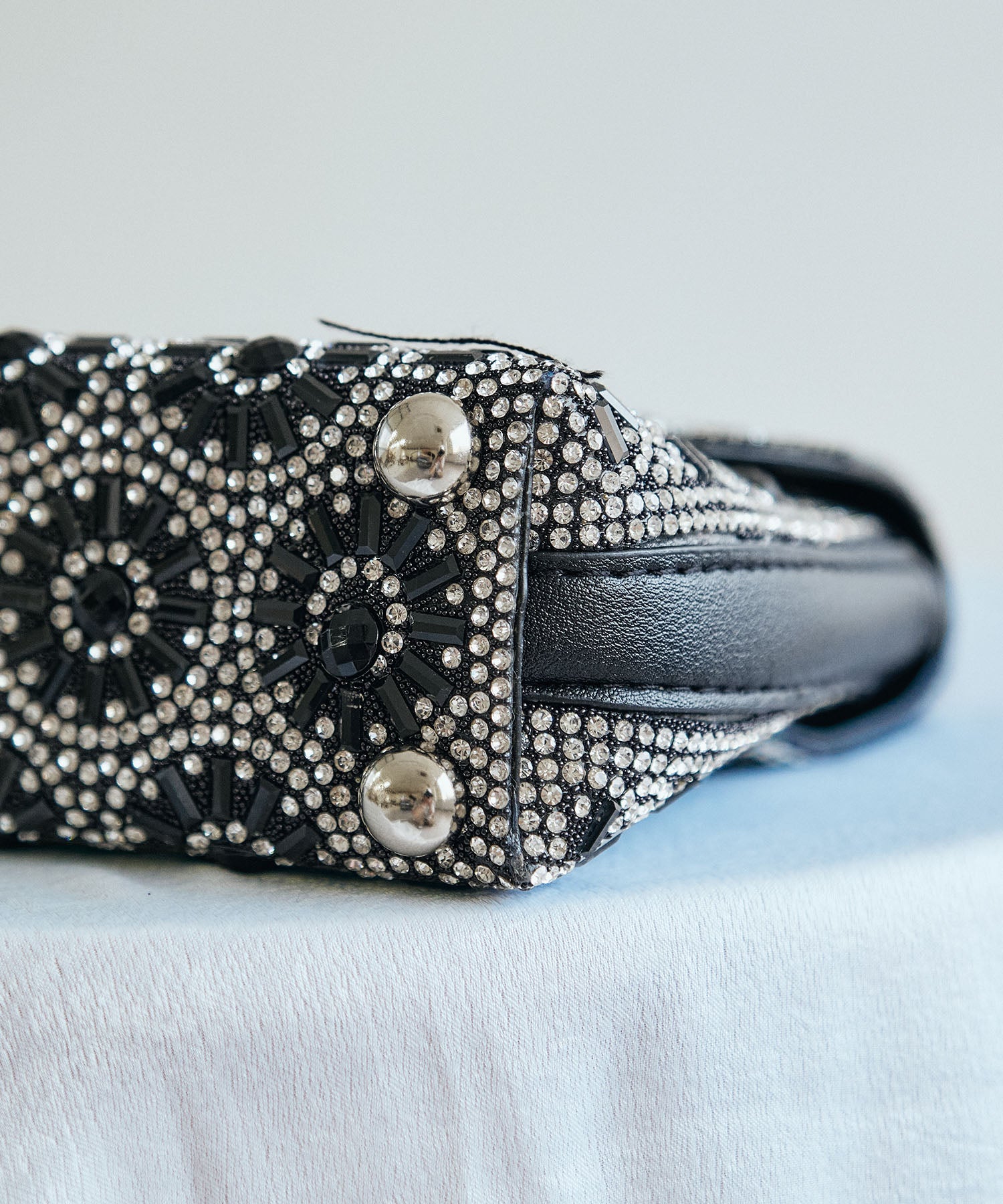ビジューのフラワーデザインを全面にあしらったレディライクなバッグは、持つだけでワンランク上のドレスコーデに決まるアイテム。マチがしっかりあるので、小ぶりな見た目ながらも収納力もばっちり。持ち手のチェーンは短くしてハンドバッグ、片方を伸ばしてショルダーとして使うことも可能。