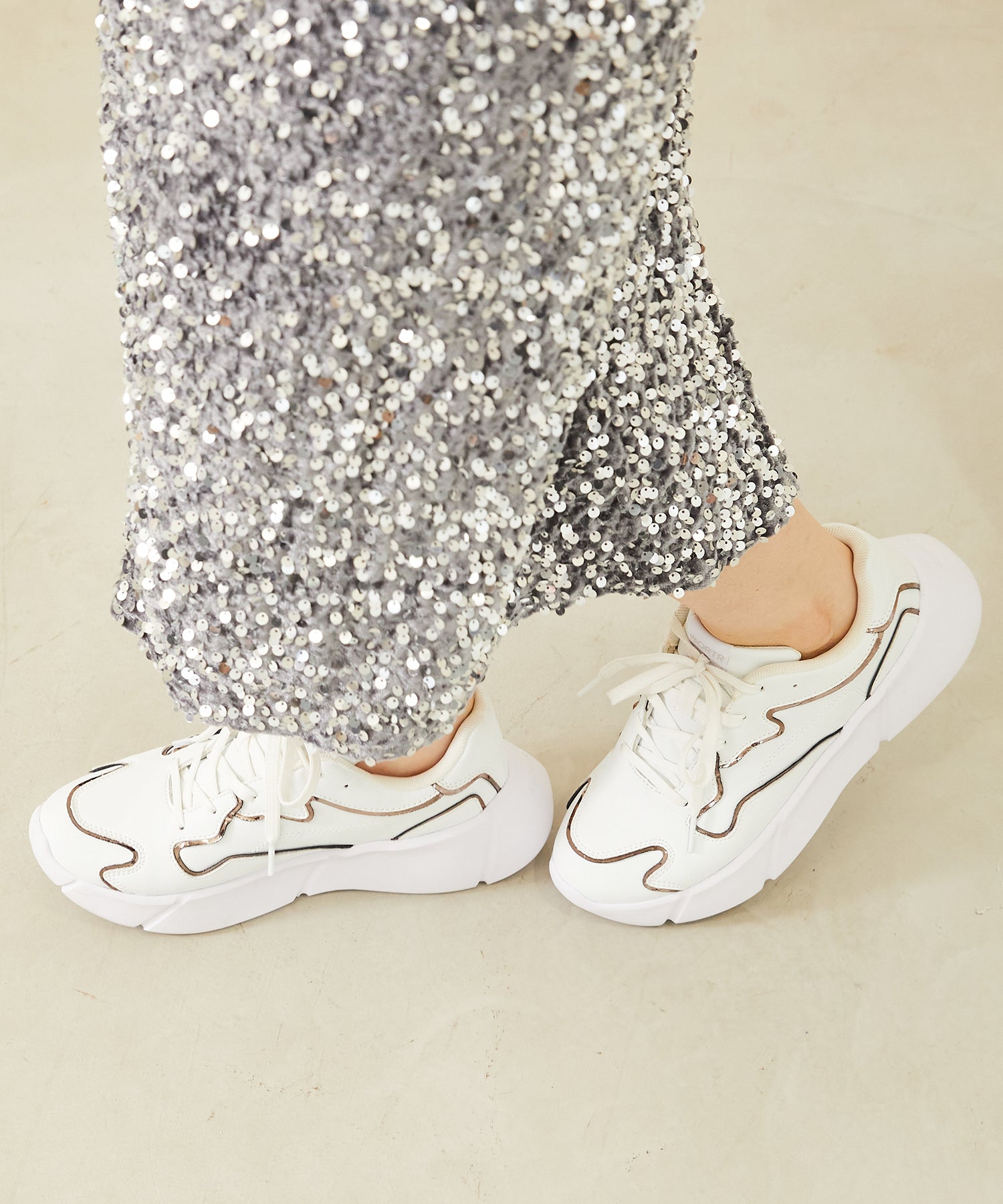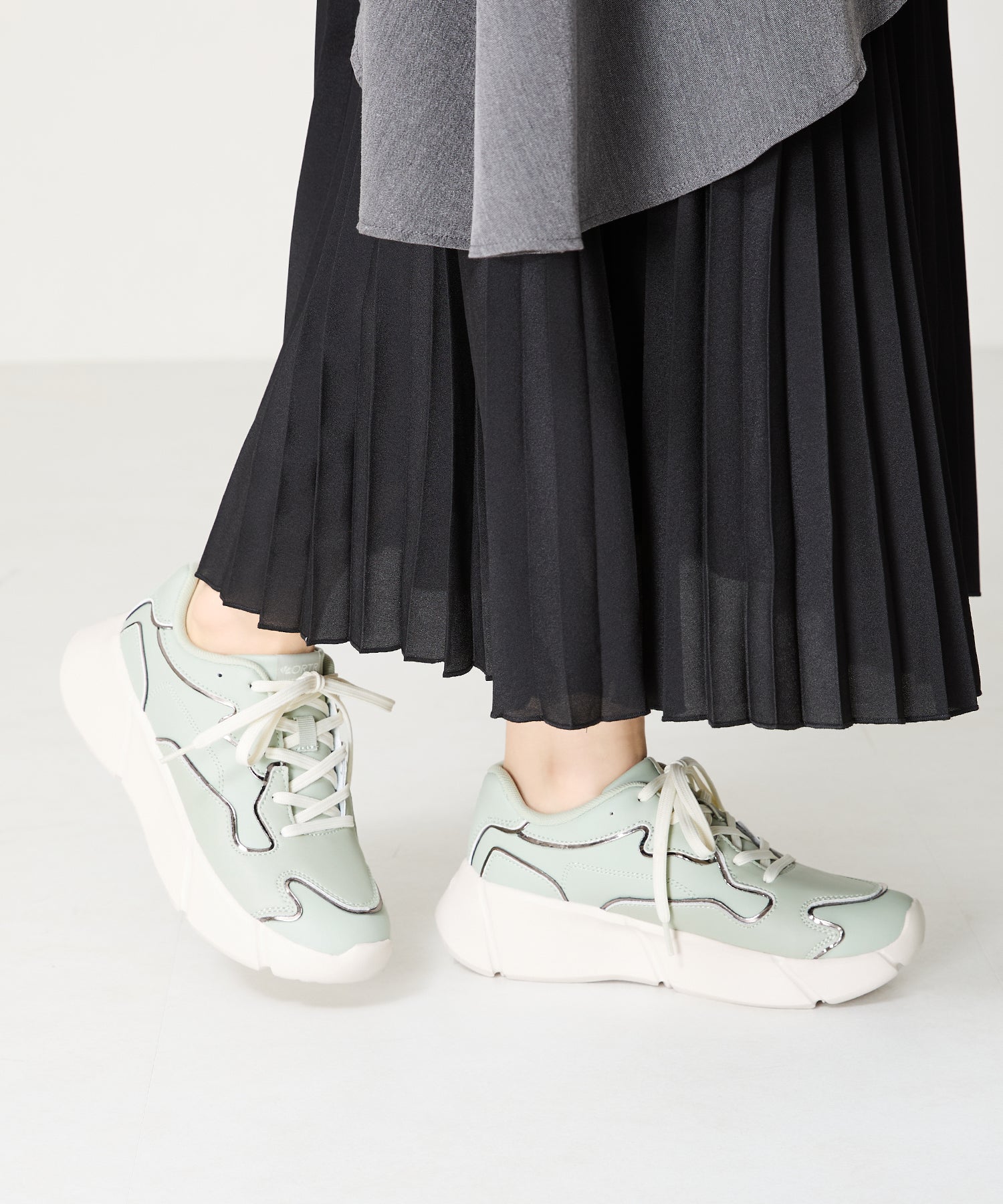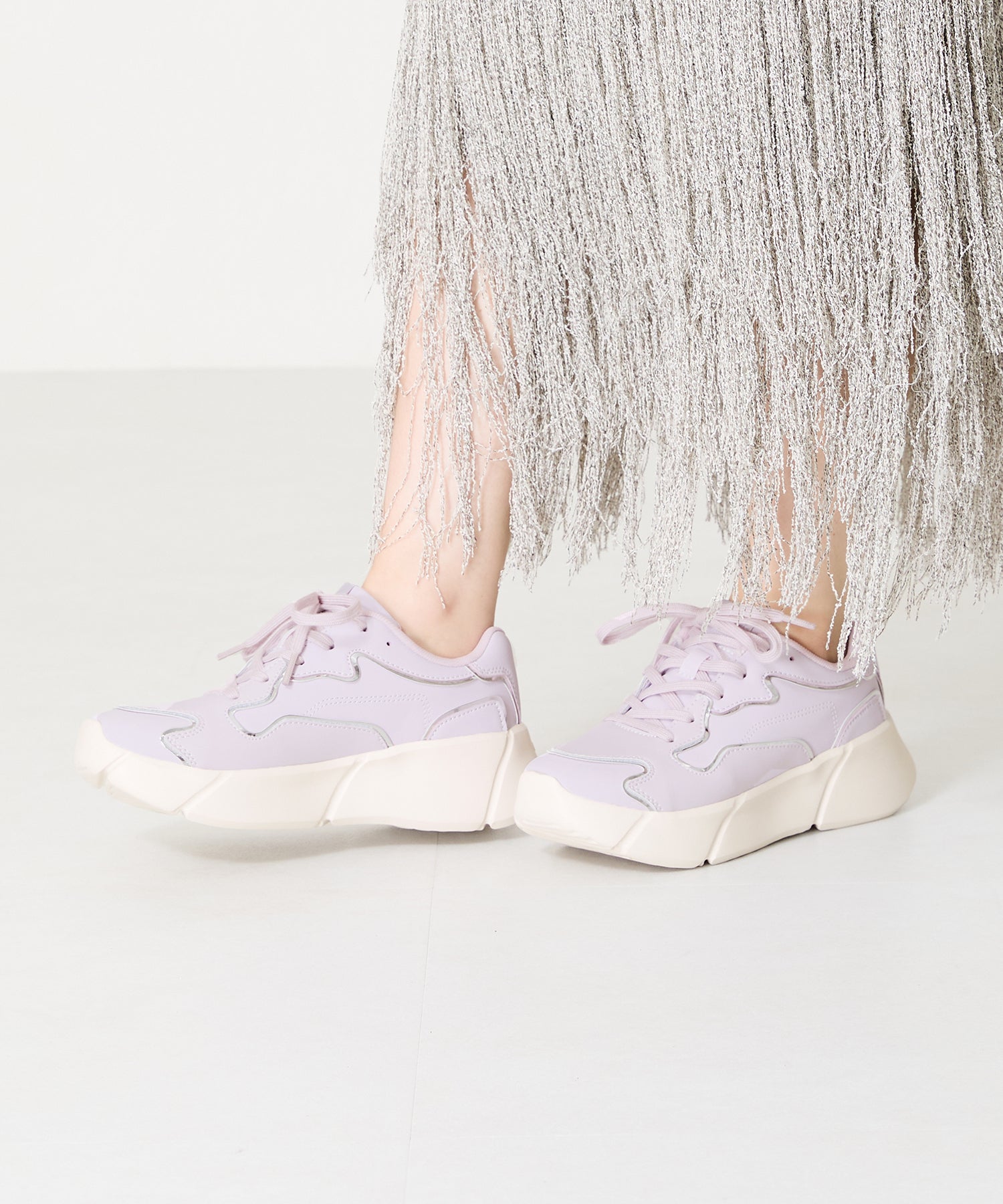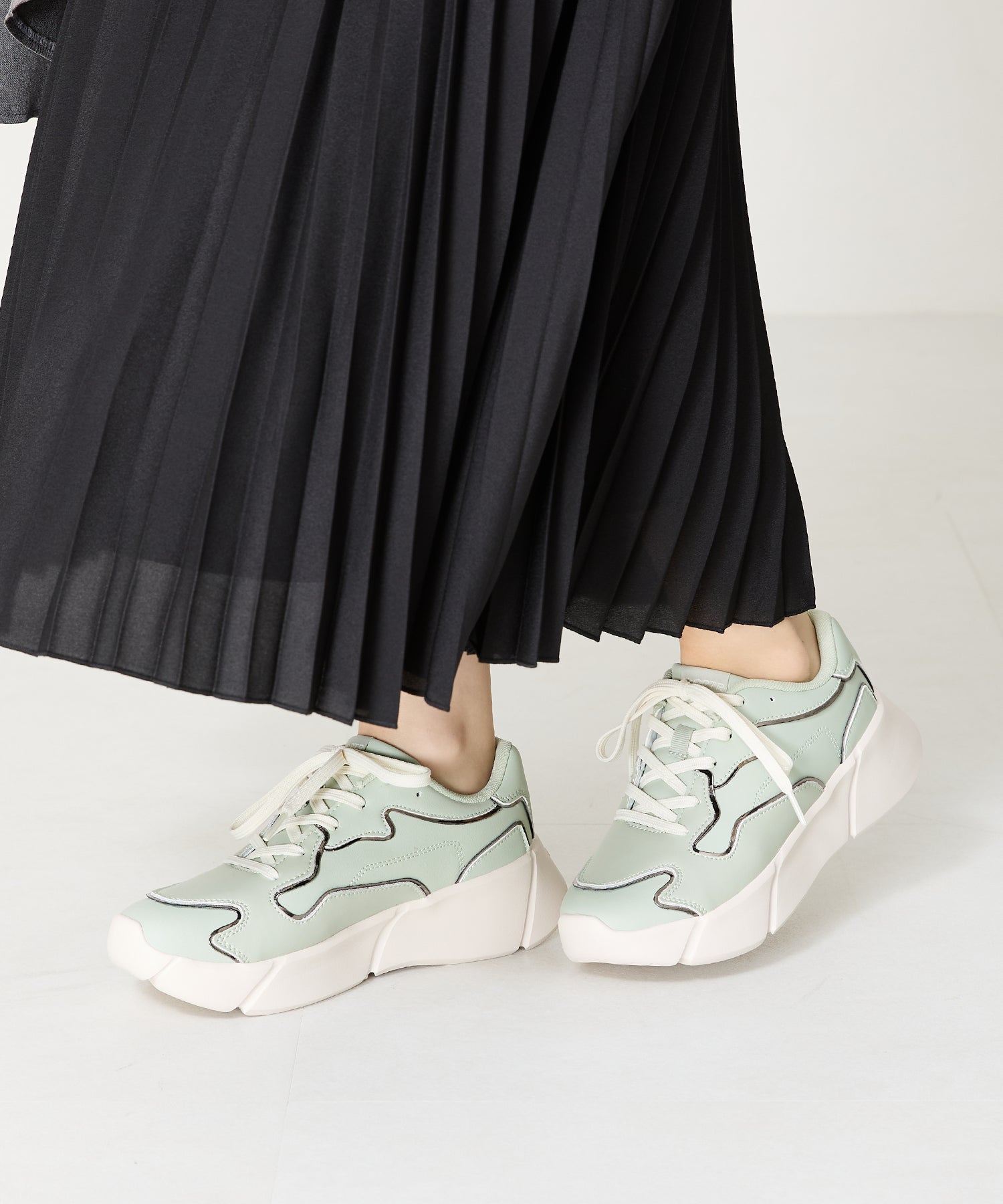 アッパーにメタリックラインを施すことで足元を華やかにしてくれるスニーカーは、コロンとしたフォルムでフェミニン派の方でも取り入れやすい。使いやすいホワイトとブラックに加え、淡いトーンのピンクとグリーンにパープルが仲間入り。パステルカラーが女性らしく、ソールはベージュにすることで甘くなりすぎずカジュアルからフェミニンまで幅広いコーディネートにマッチしてくれる。