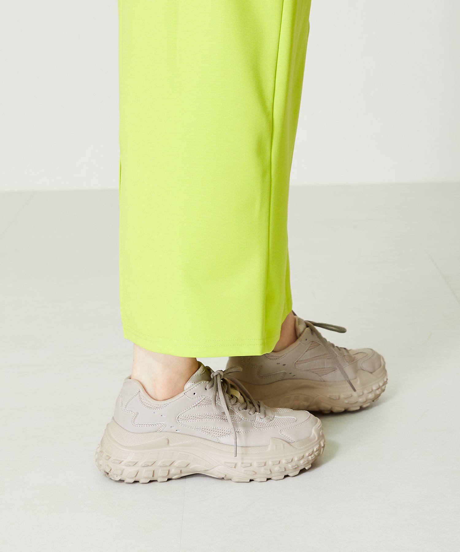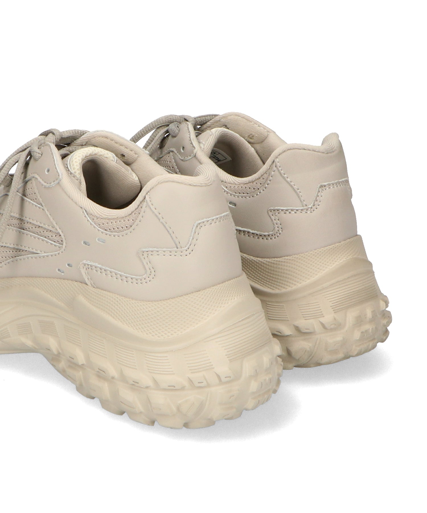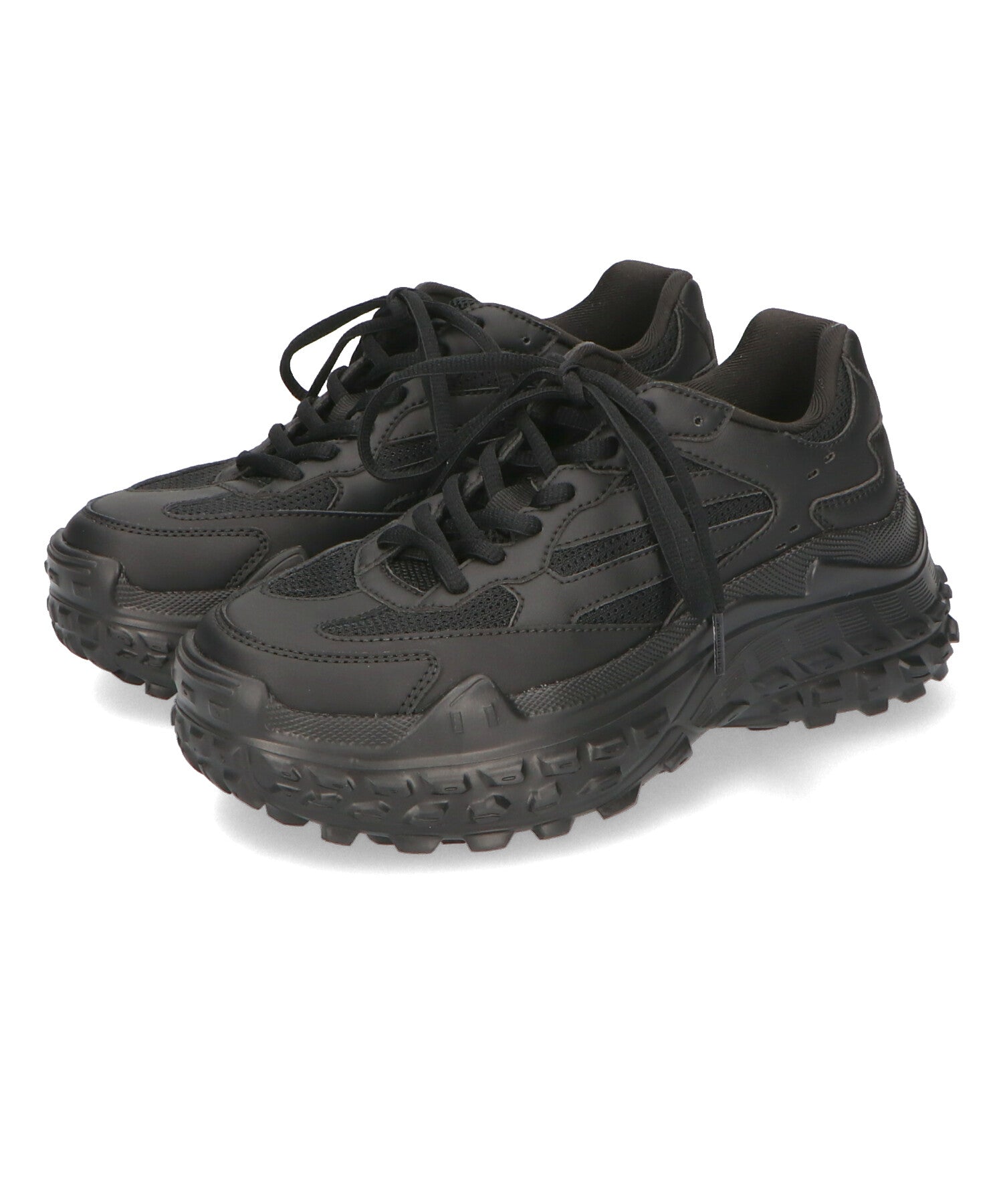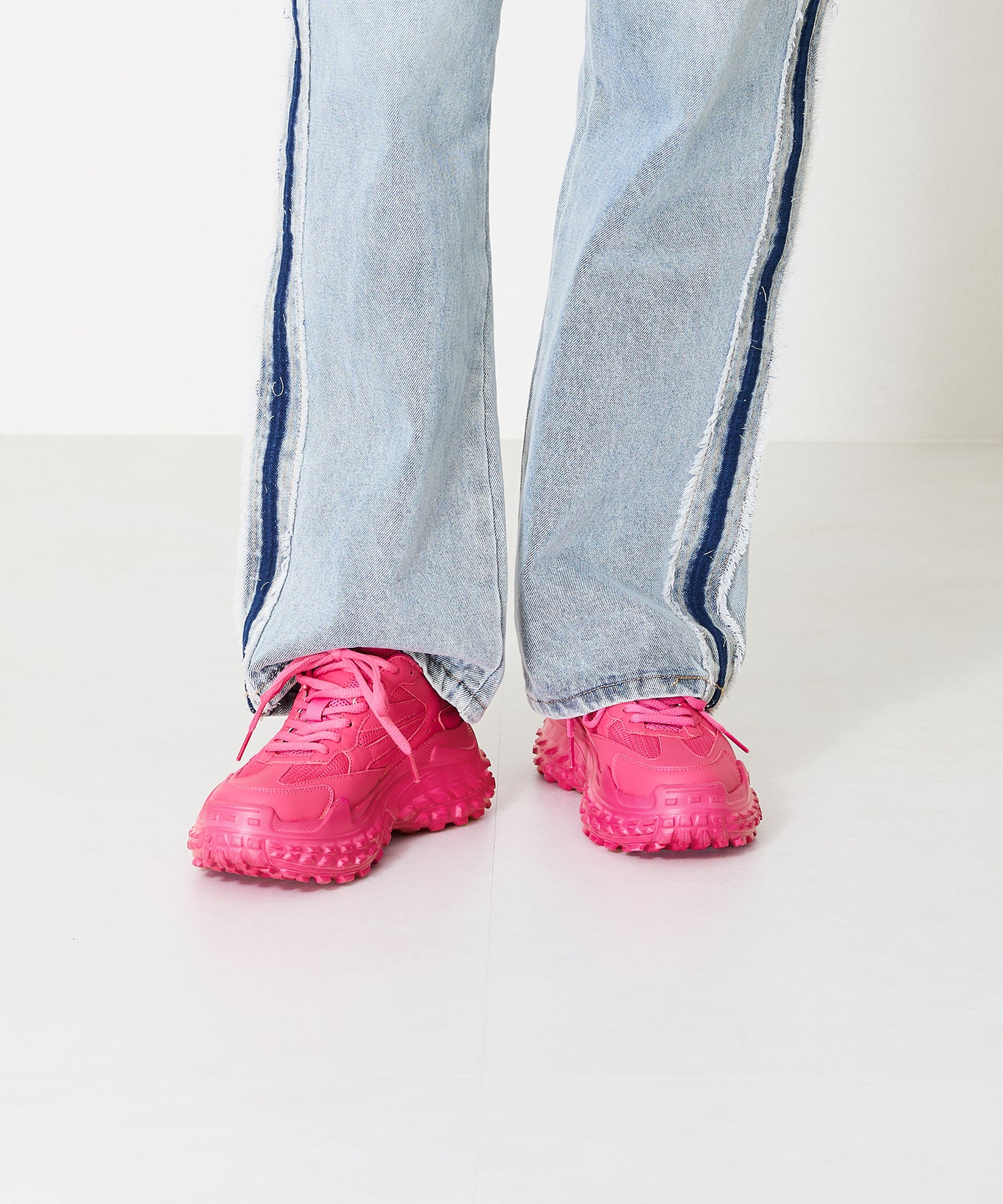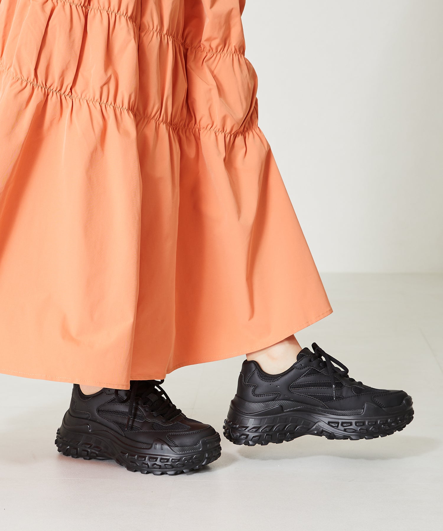 ごつごつとしたソールが新鮮なスニーカーは足元に取り入れるだけで旬なコーディネートに。全体を丸いシルエットにすることでメンズっぽくなりすぎず履けるのが嬉しい。ソールからアッパーまで同色でまとめることで形のユニークさもありながら、コーディネートとの馴染みの良さも両立。メッシュ素材を取り入れ通気性が良く軽量でラクチンな履き心地。