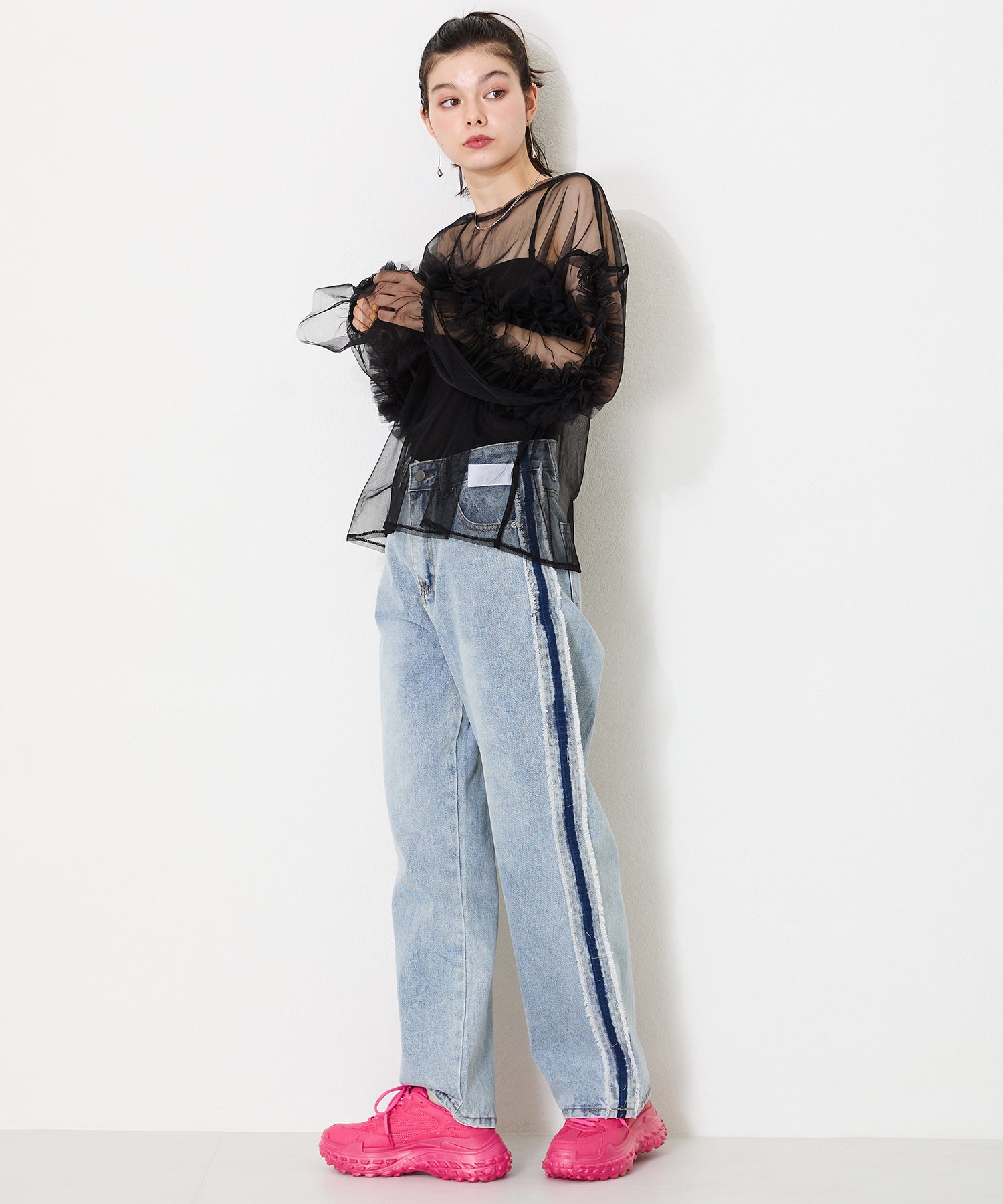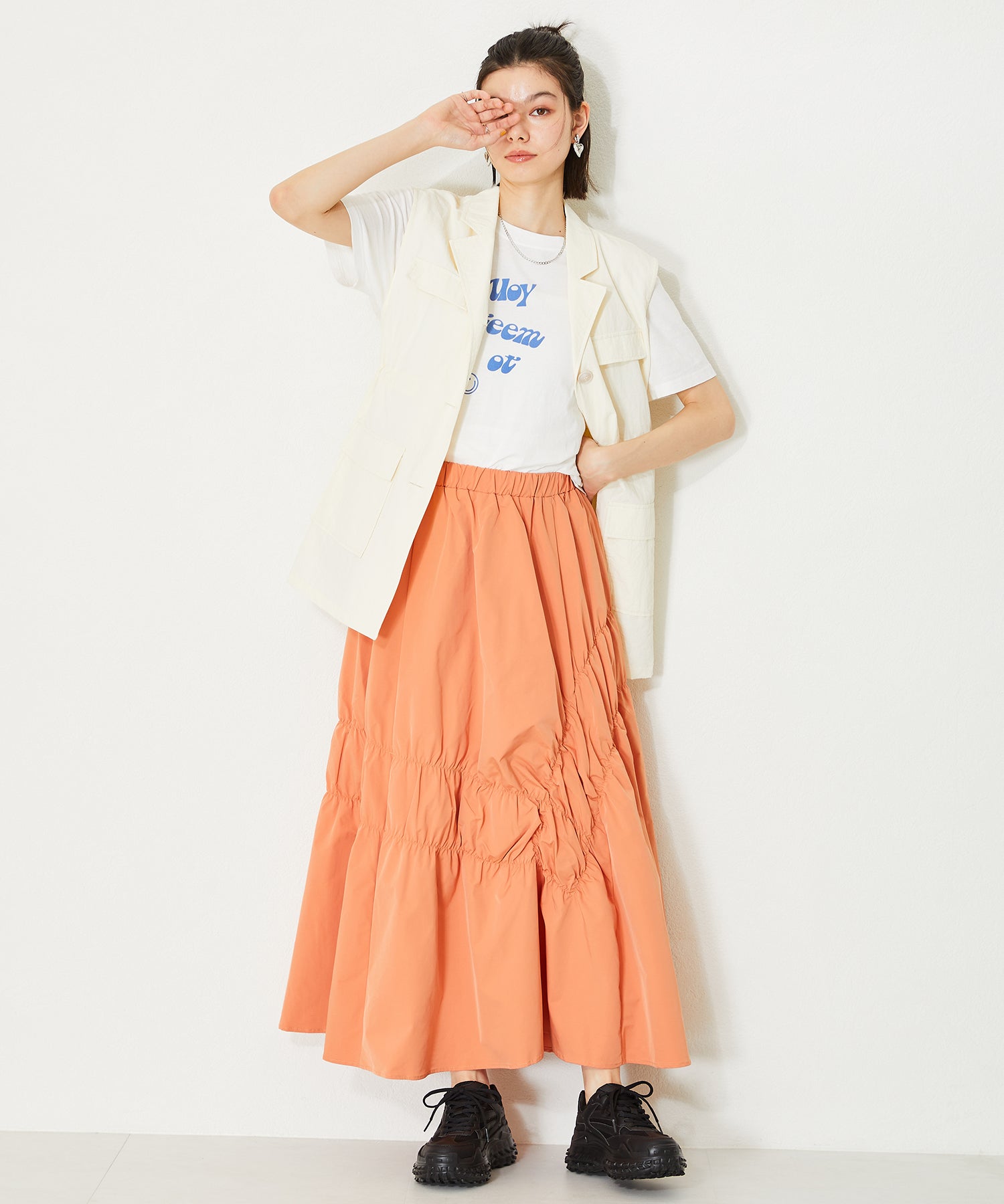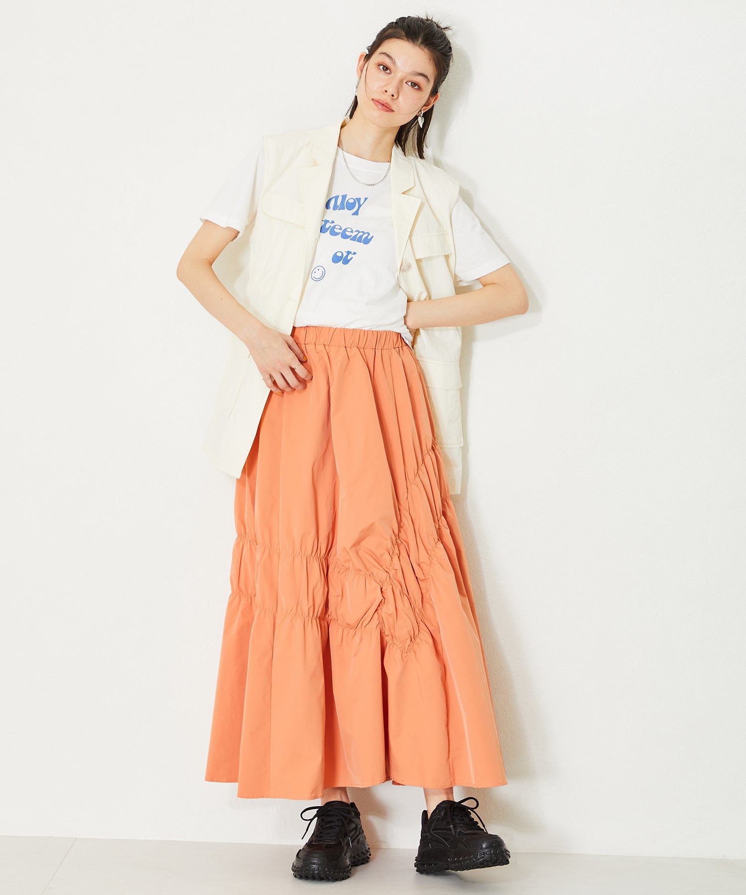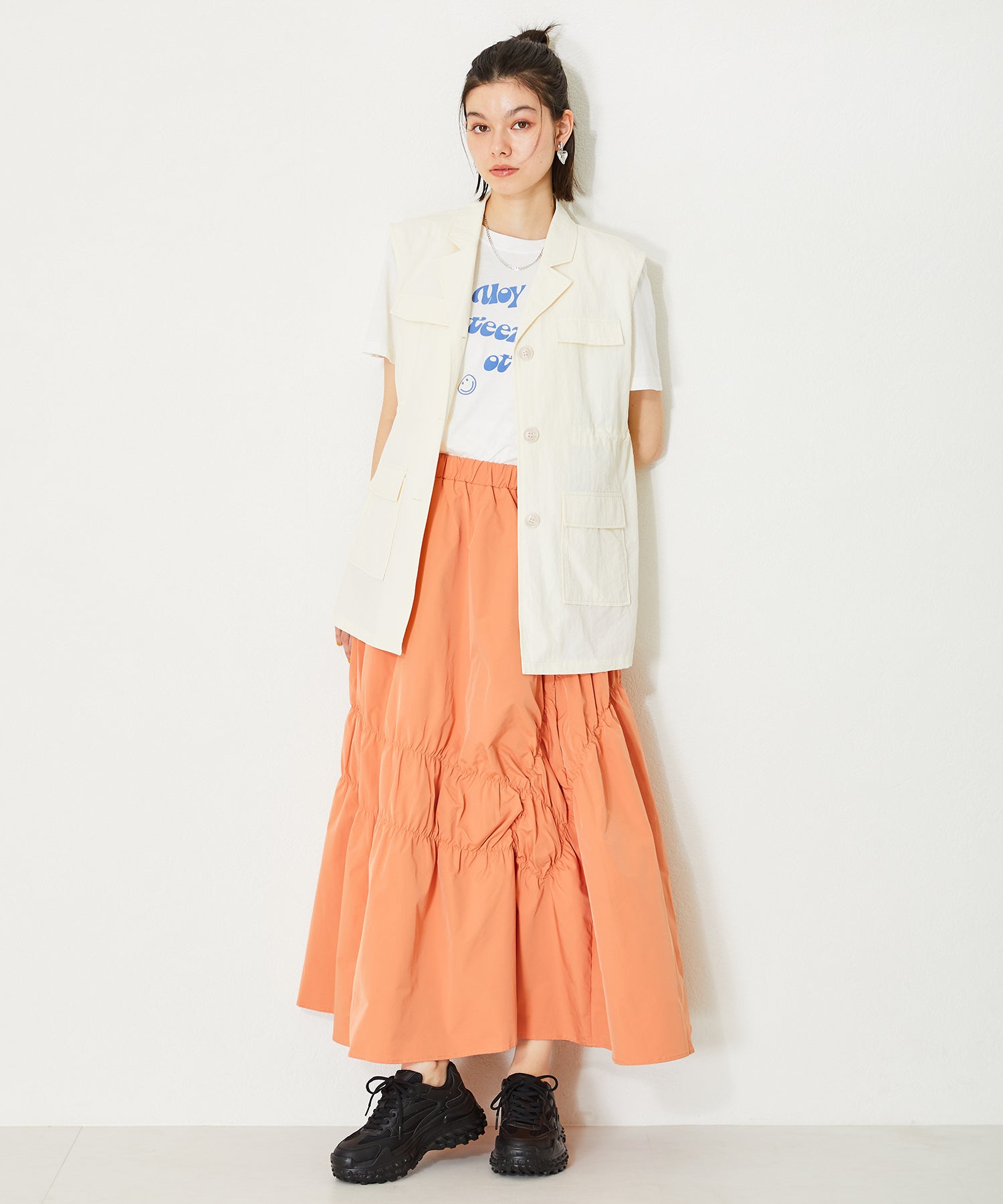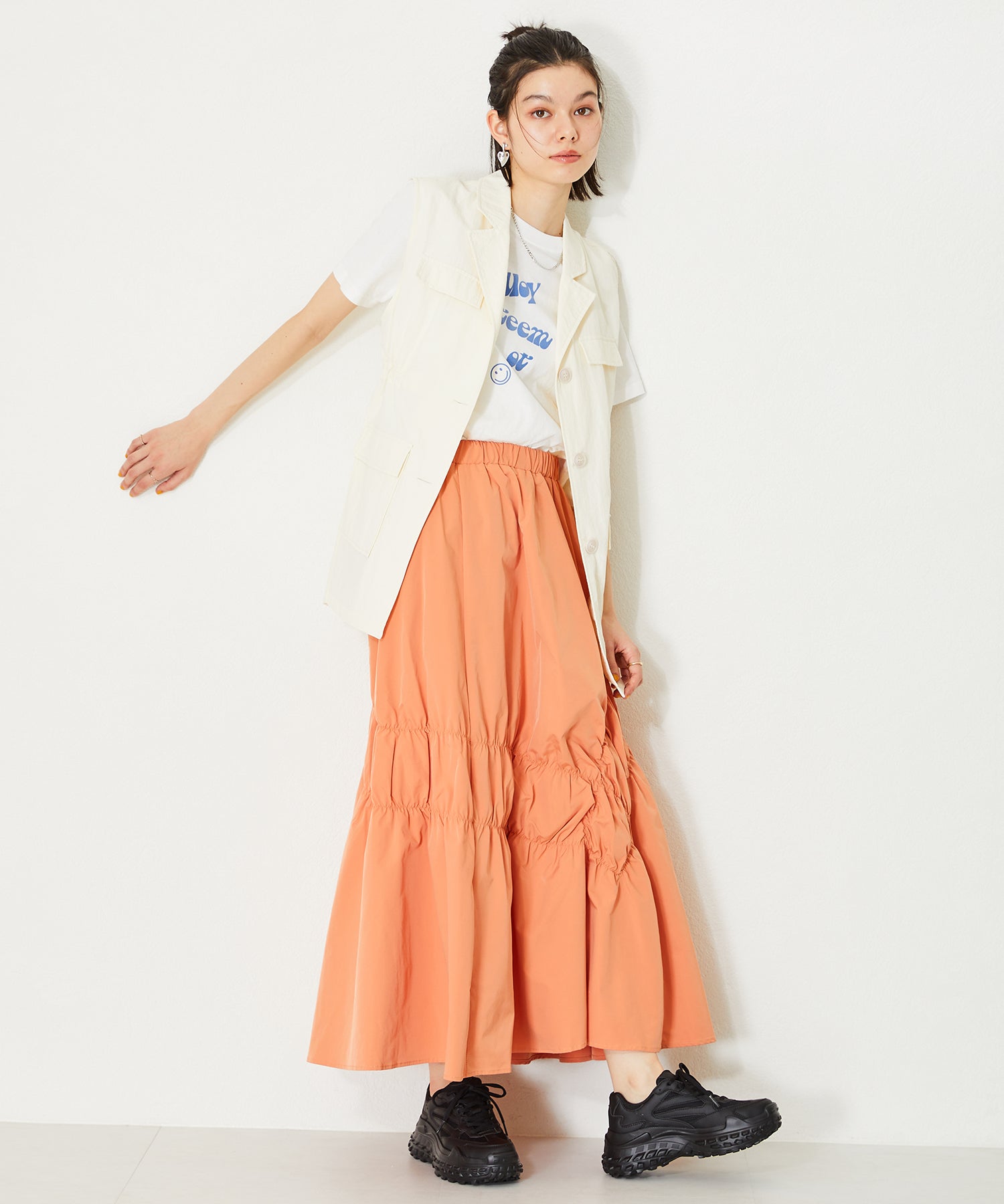 ごつごつとしたソールが新鮮なスニーカーは足元に取り入れるだけで旬なコーディネートに。全体を丸いシルエットにすることでメンズっぽくなりすぎず履けるのが嬉しい。ソールからアッパーまで同色でまとめることで形のユニークさもありながら、コーディネートとの馴染みの良さも両立。メッシュ素材を取り入れ通気性が良く軽量でラクチンな履き心地。